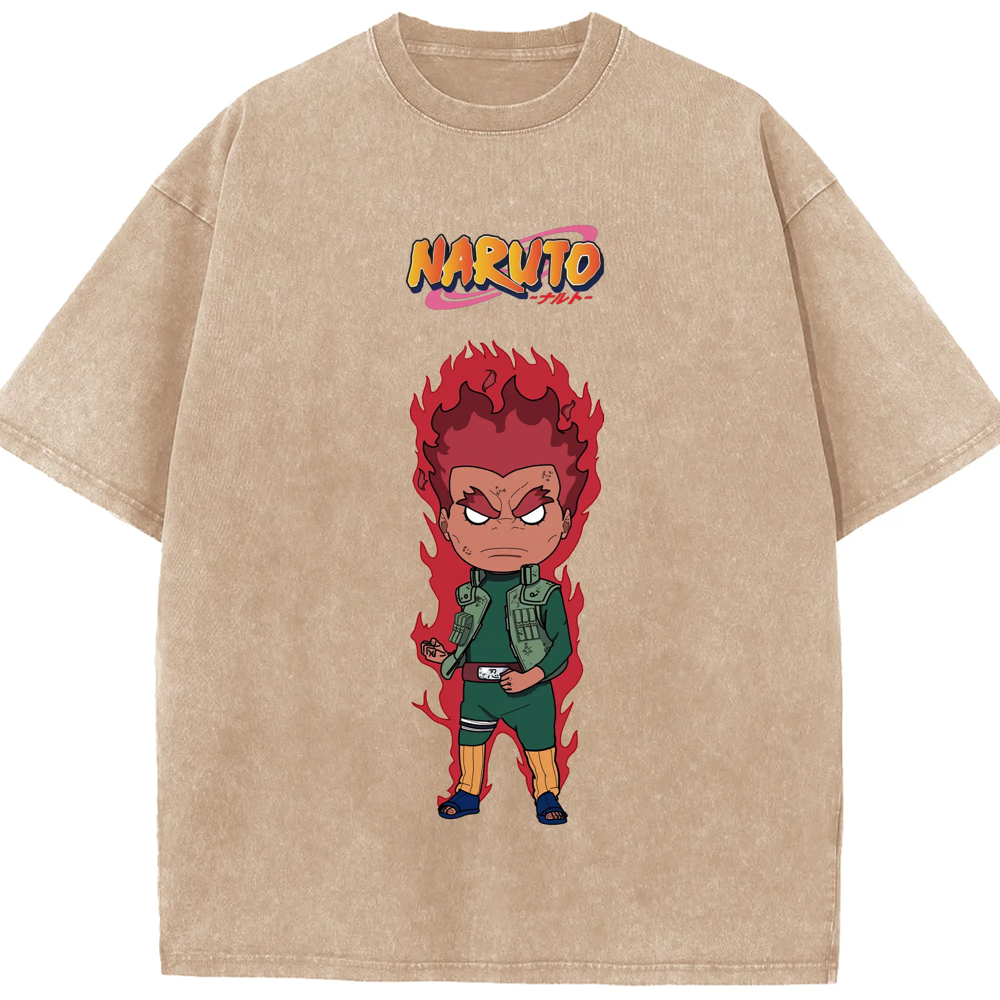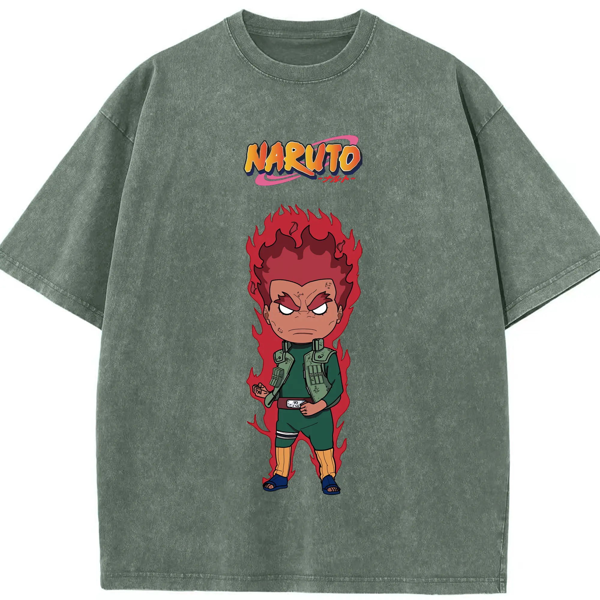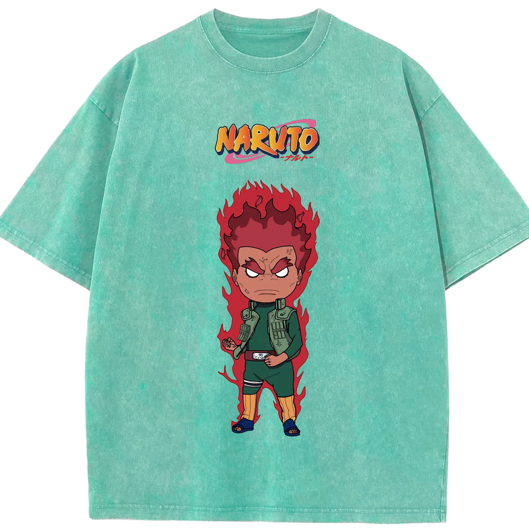 ナルト グッズ マイト・ガイ - 綿100% ヴィンテージ風 半袖Tシャツ ・ 背面プリント ・ 柔らか肌触り ・ 通気性 快適 ・ スポーツ カジュアル 外出用