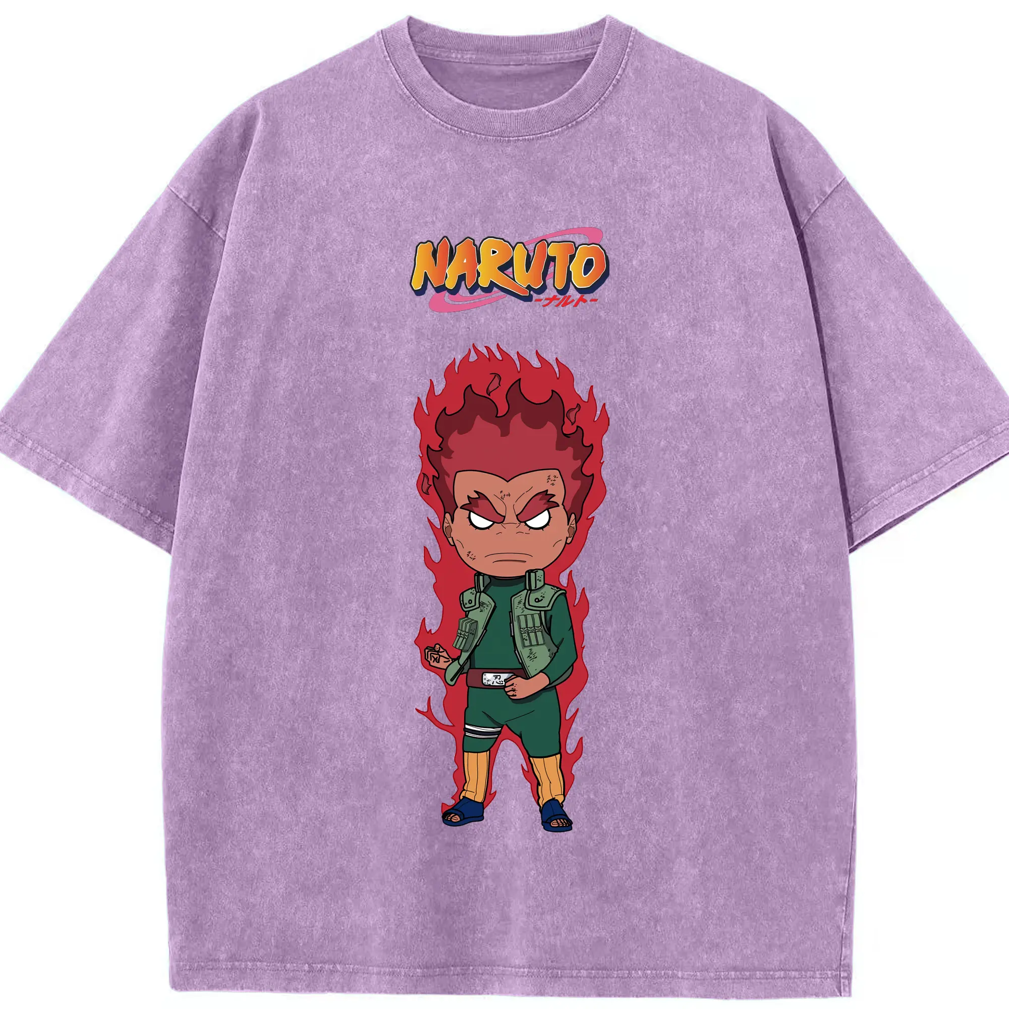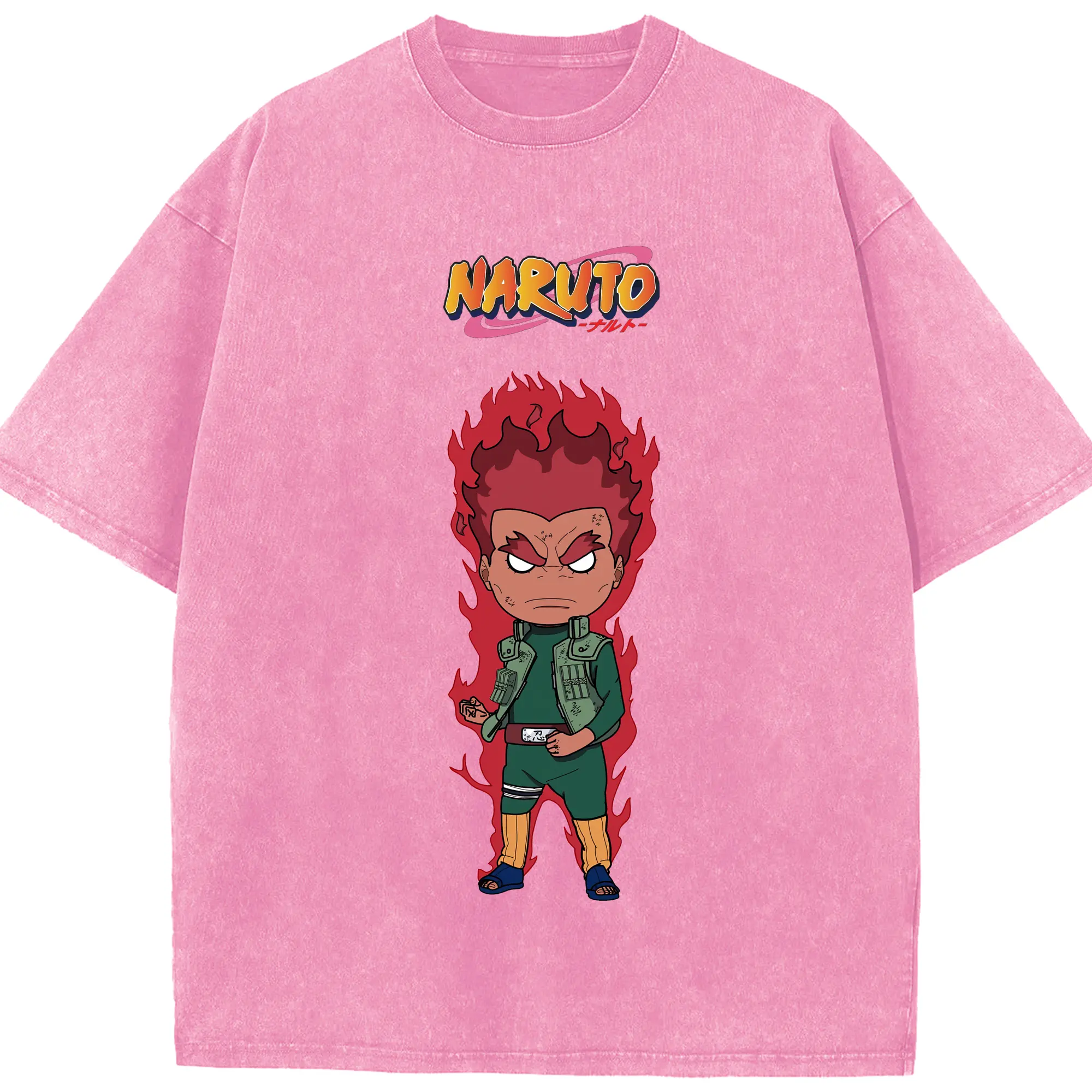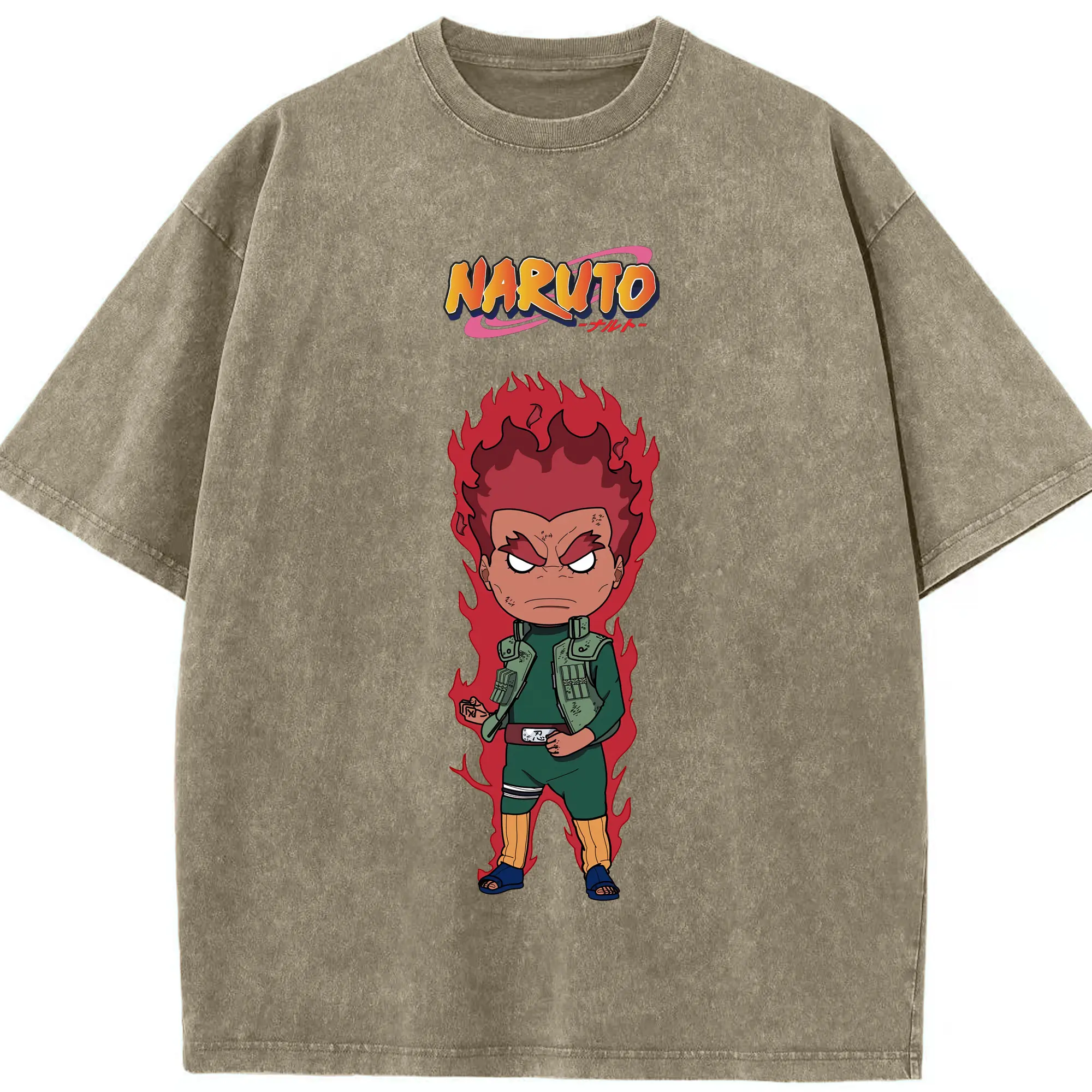 ナルト グッズ マイト・ガイ - 綿100% ヴィンテージ風 半袖Tシャツ ・ 背面プリント ・ 柔らか肌触り ・ 通気性 快適 ・ スポーツ カジュアル 外出用