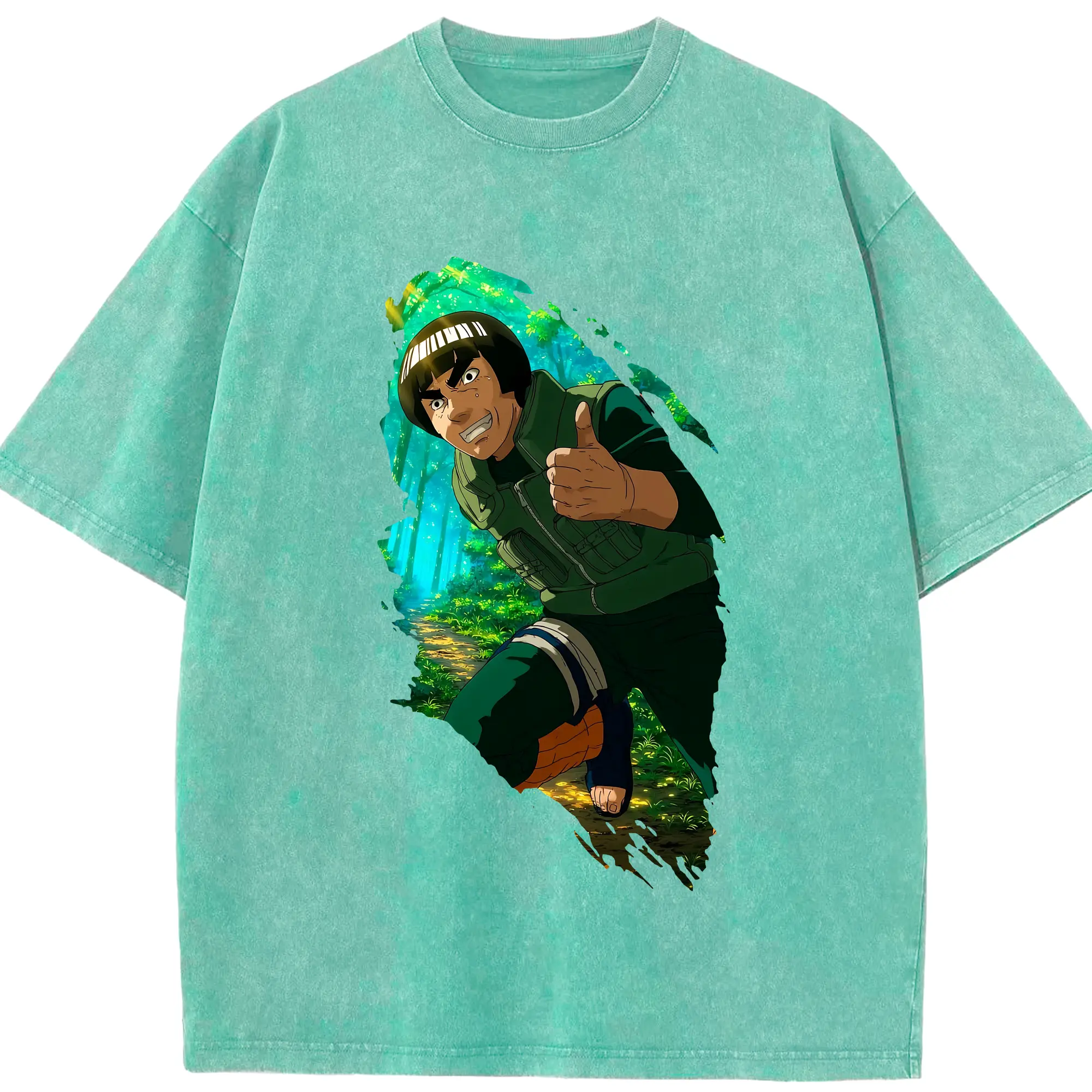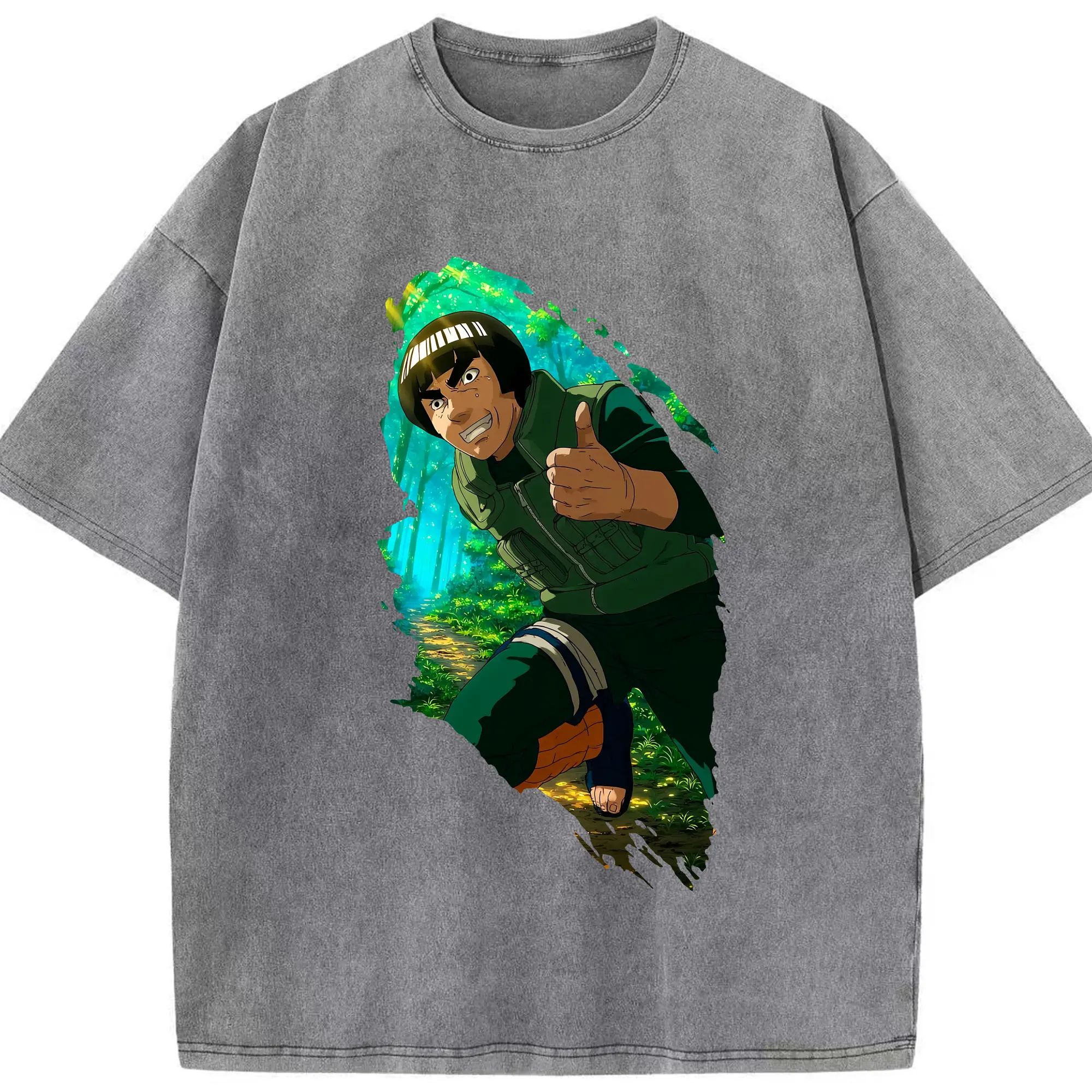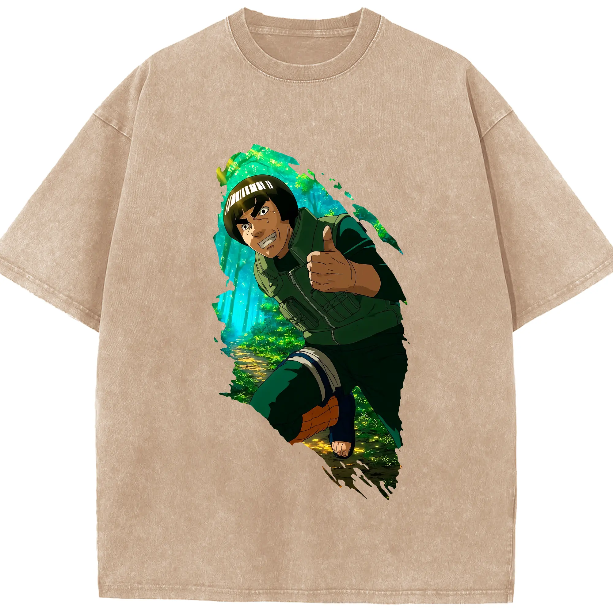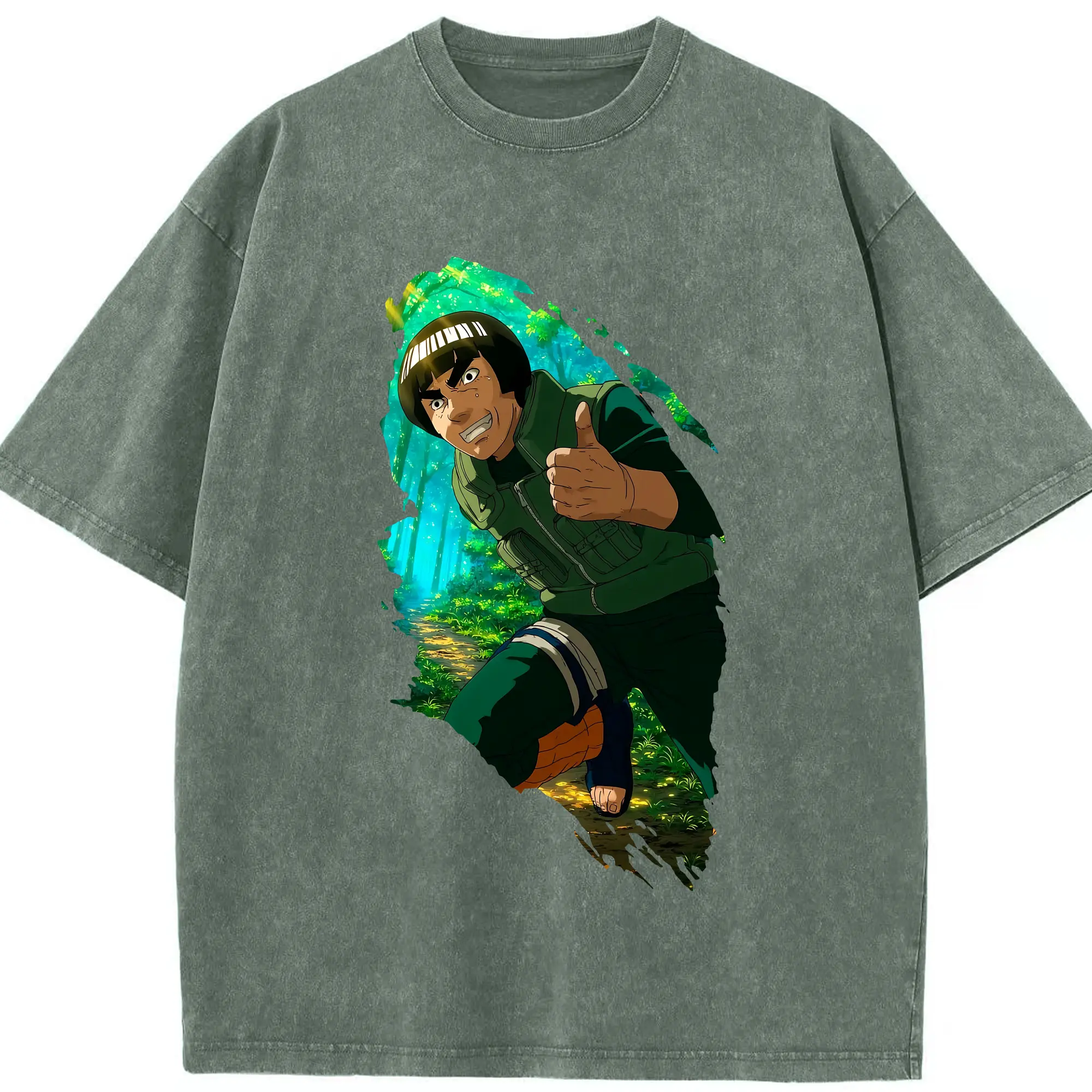 ナルト グッズ マイト・ガイ - 綿100% ヴィンテージ風 半袖Tシャツ ・ 背面プリント ・ 柔らか肌触り ・ 通気性 快適 ・ スポーツ カジュアル 外出用
