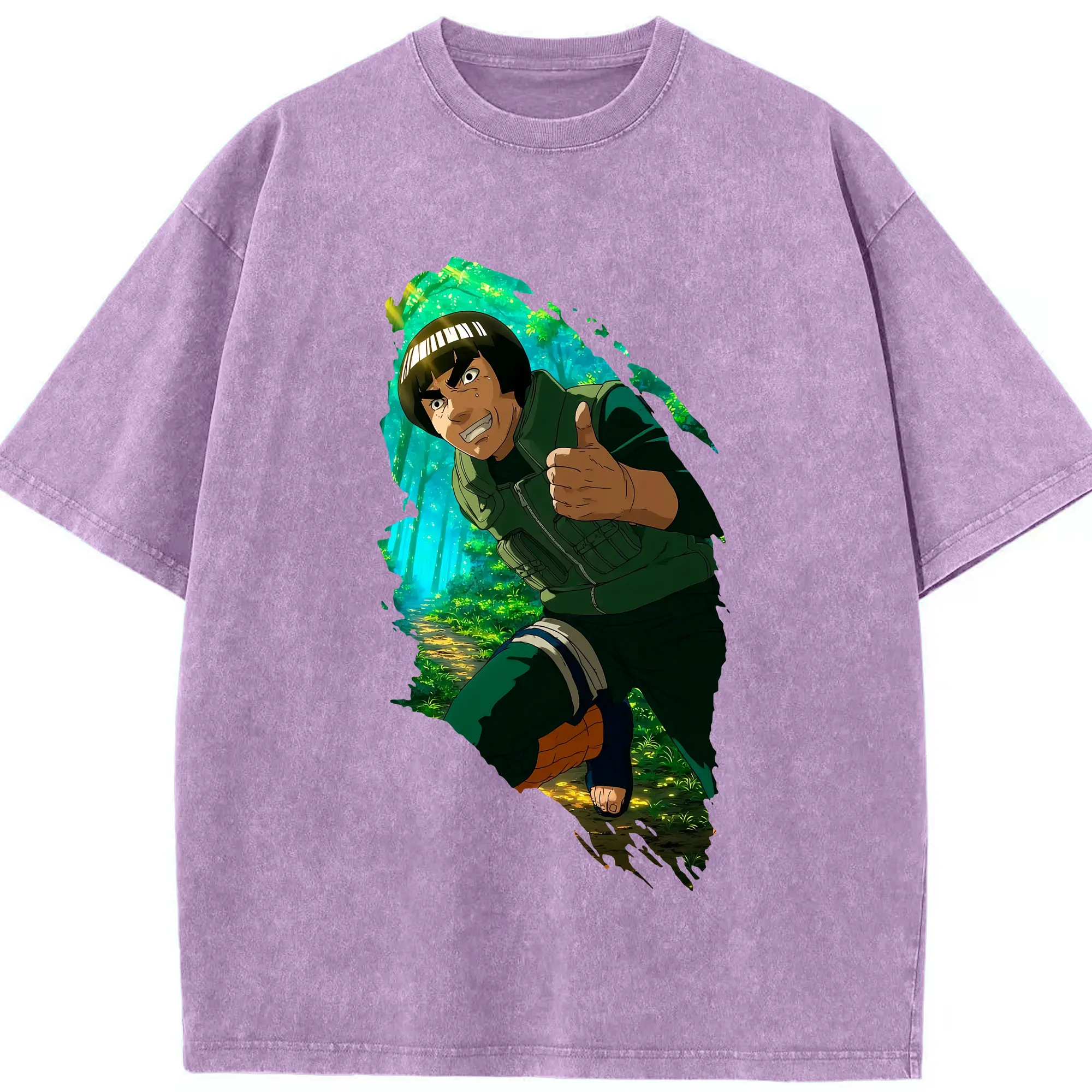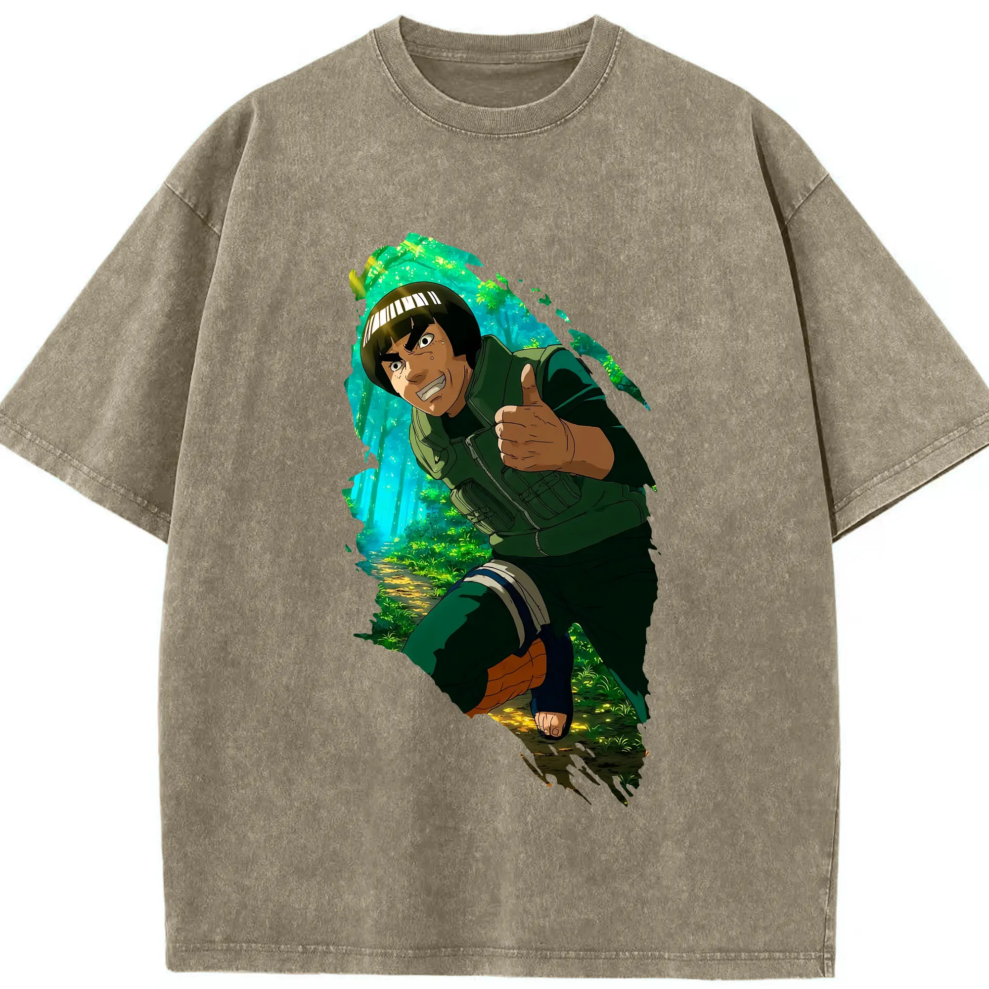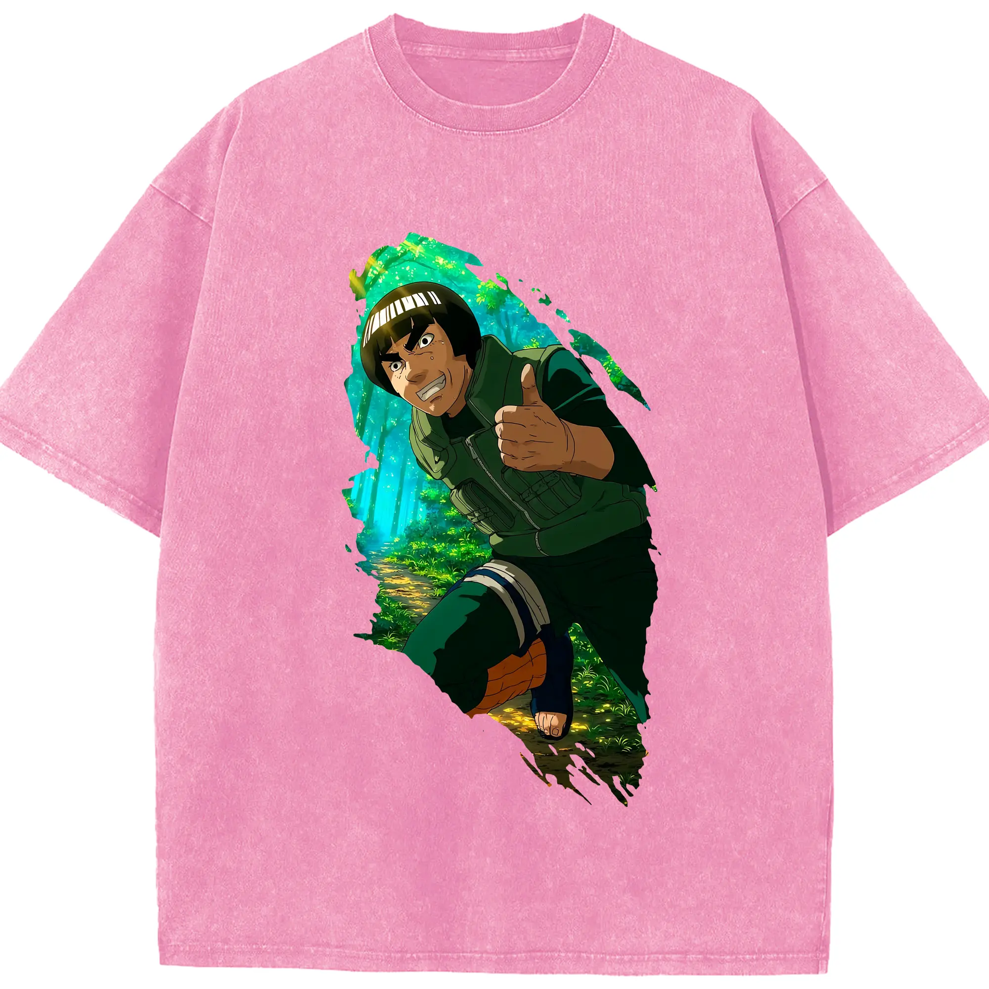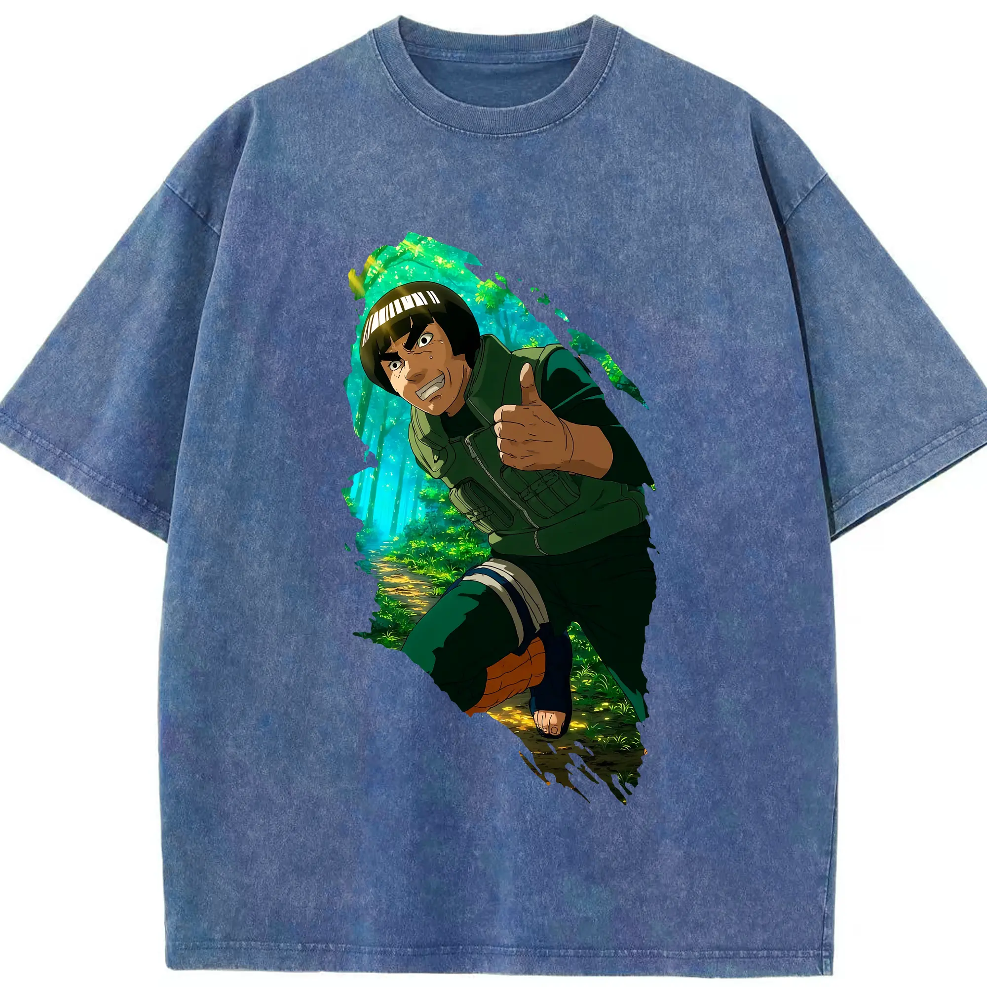ナルト グッズ マイト・ガイ - 綿100% ヴィンテージ風 半袖Tシャツ ・ 背面プリント ・ 柔らか肌触り ・ 通気性 快適 ・ スポーツ カジュアル 外出用