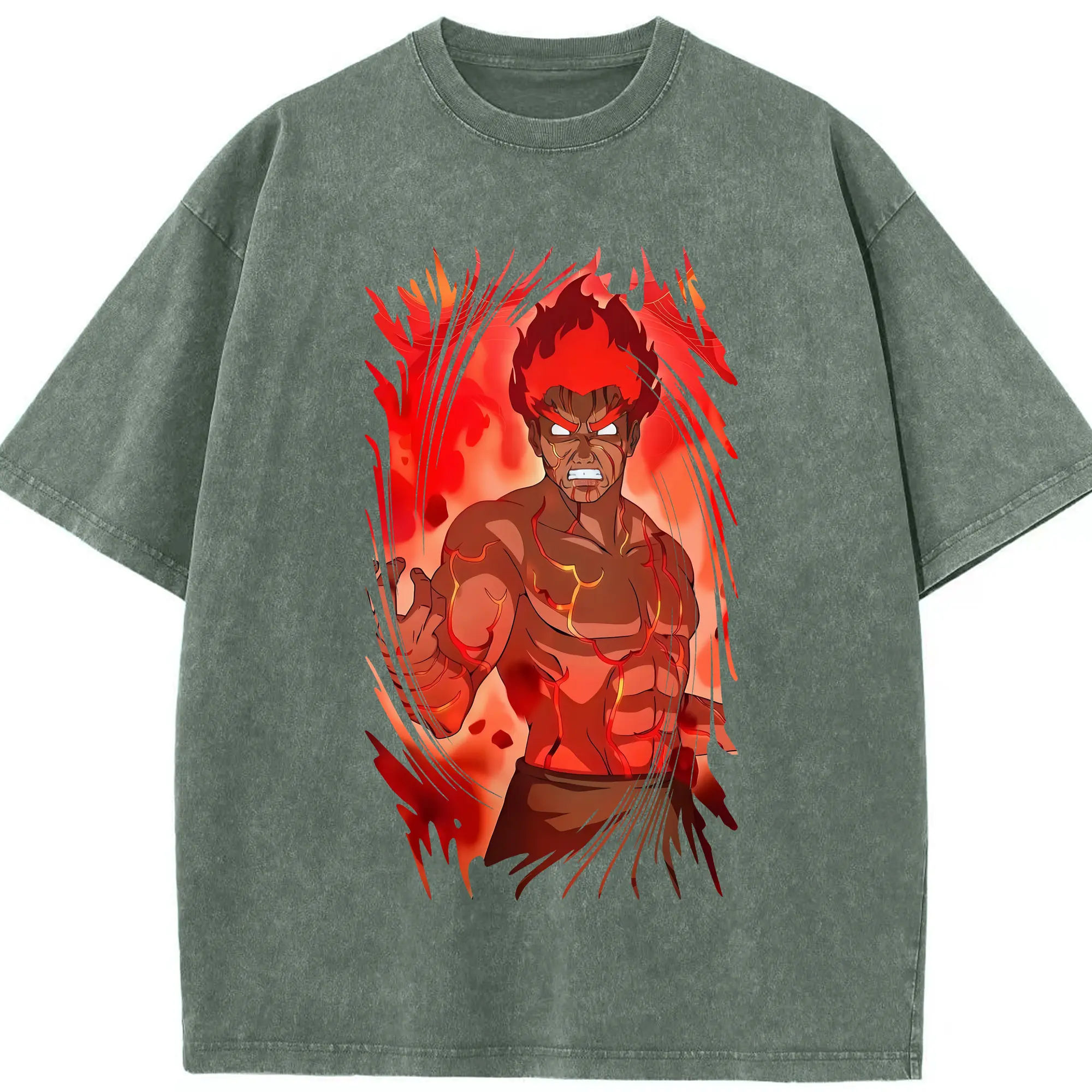 鬼滅の刃 グッズ,煉獄 杏寿郎 - 綿100% ヴィンテージ風 半袖Tシャツ ・ フロントプリント ・ 柔らか肌触り ・ 通気性 快適 ・ スポーツ カジュアル 外出用
