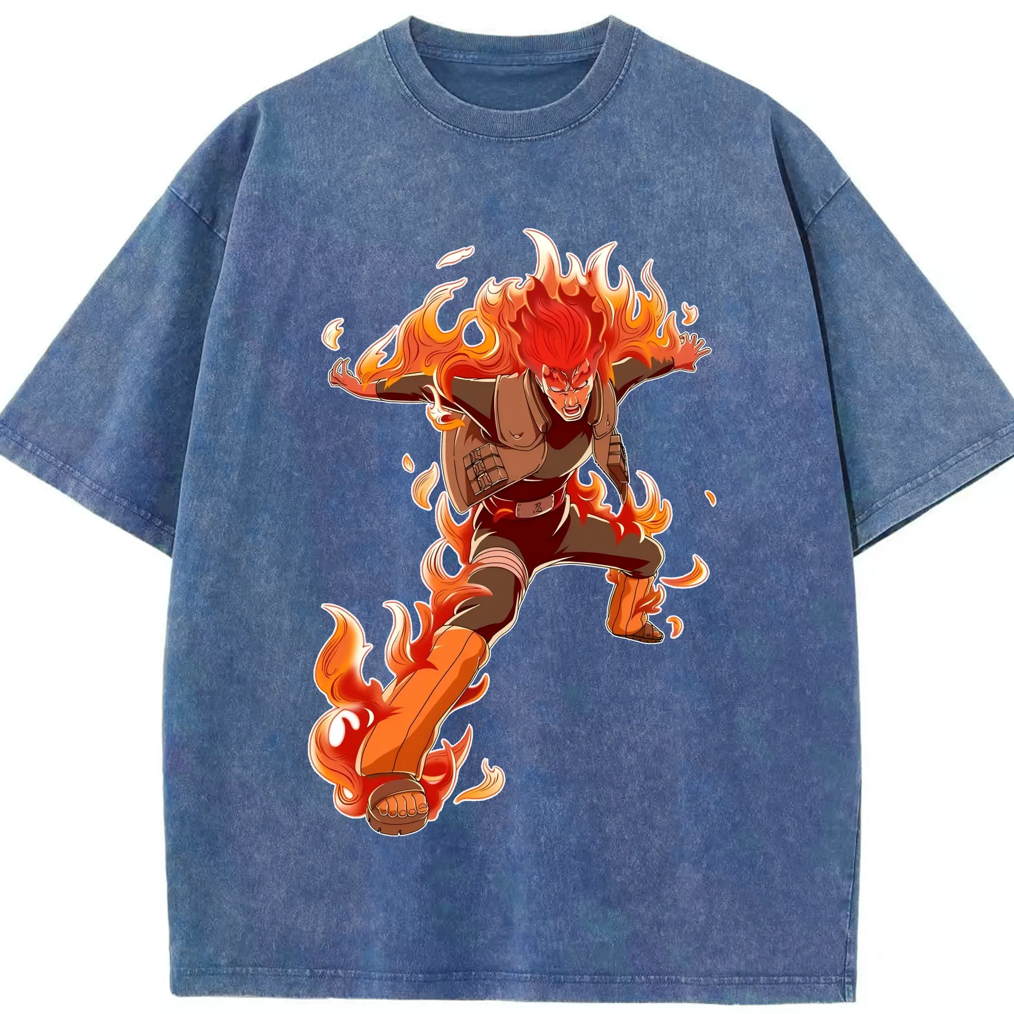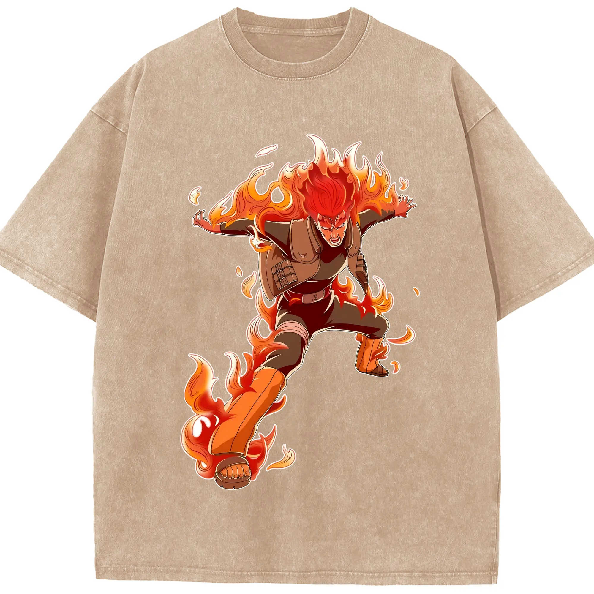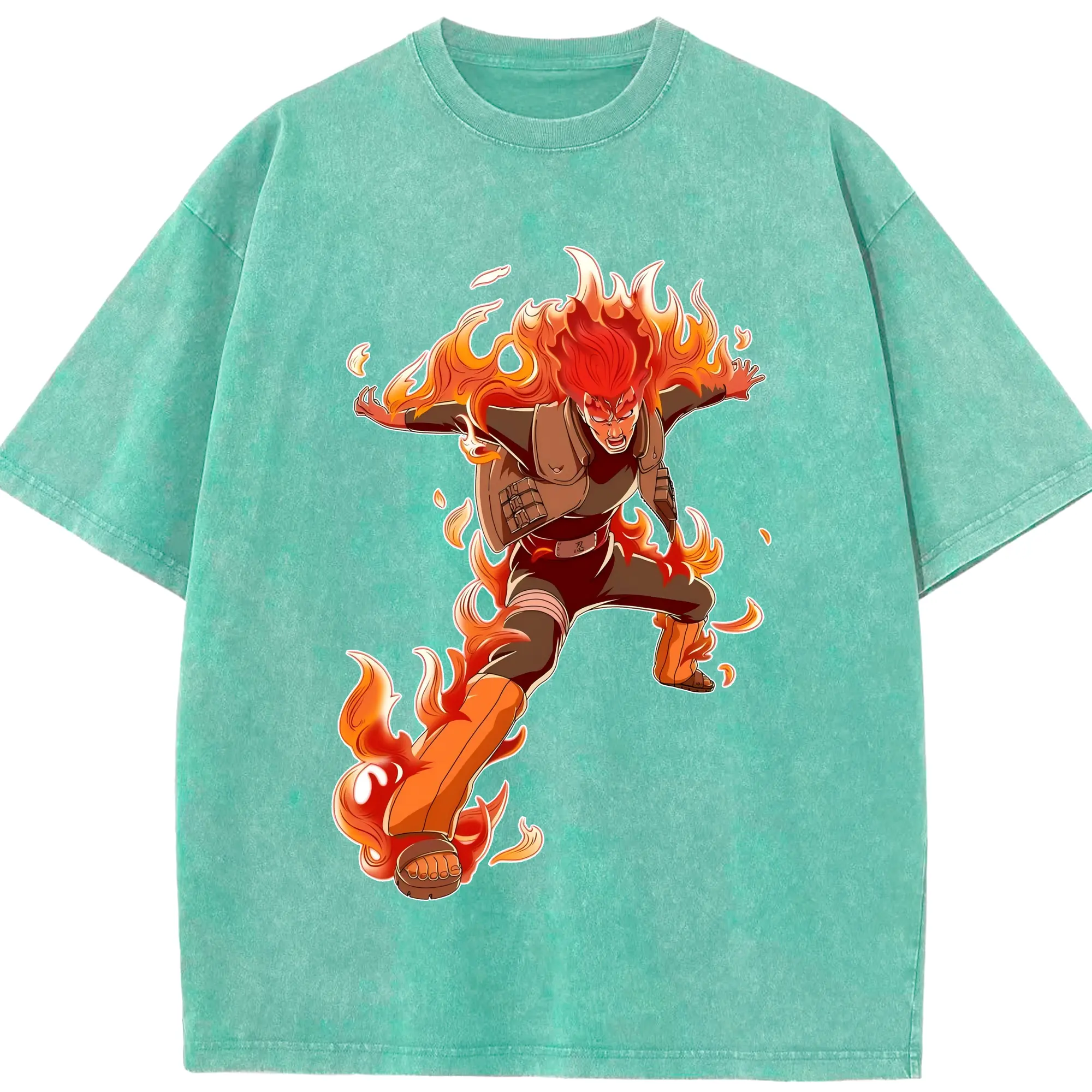 ナルト グッズ マイト・ガイ - 綿100% ヴィンテージ風 半袖Tシャツ ・ 背面プリント ・ 柔らか肌触り ・ 通気性 快適 ・ スポーツ カジュアル 外出用