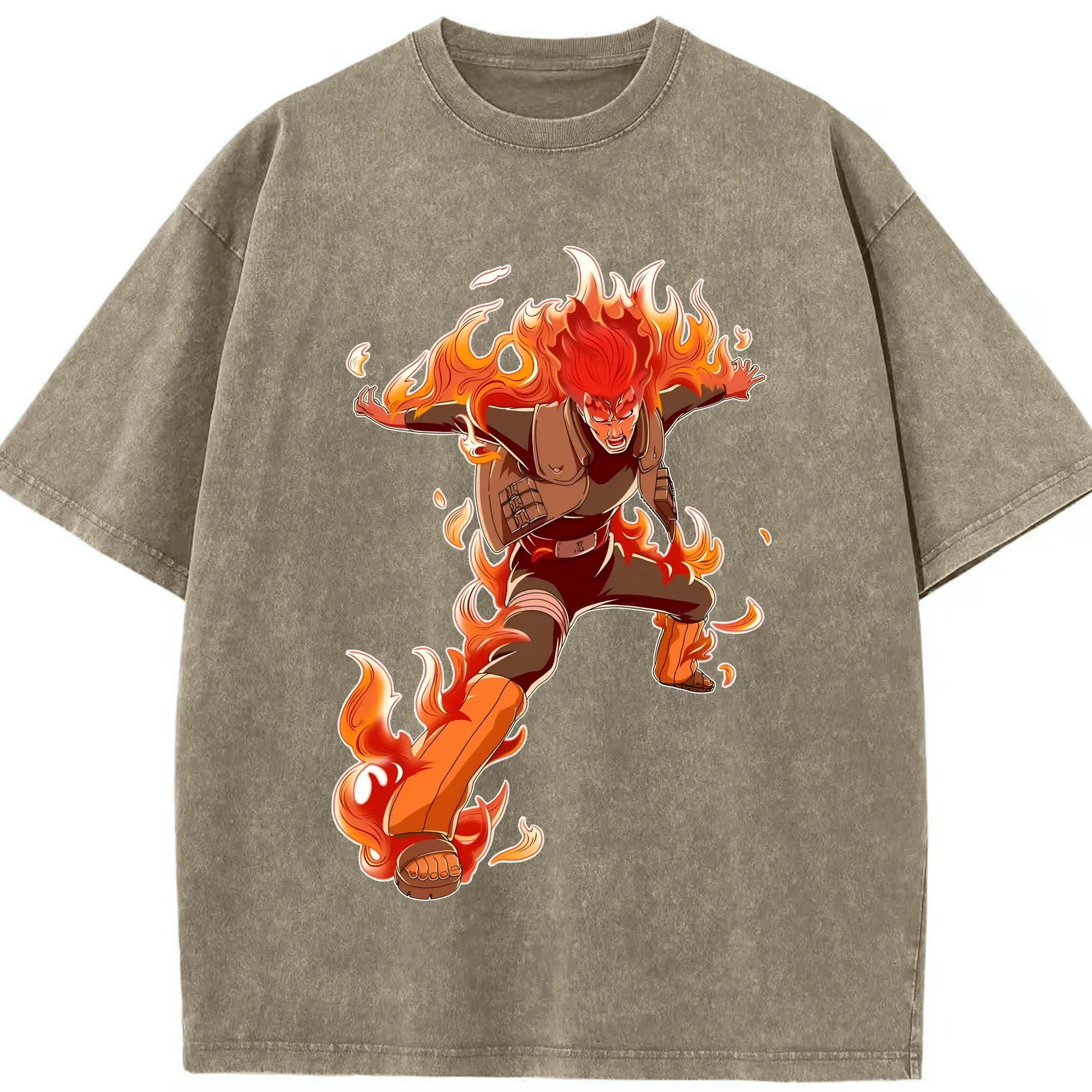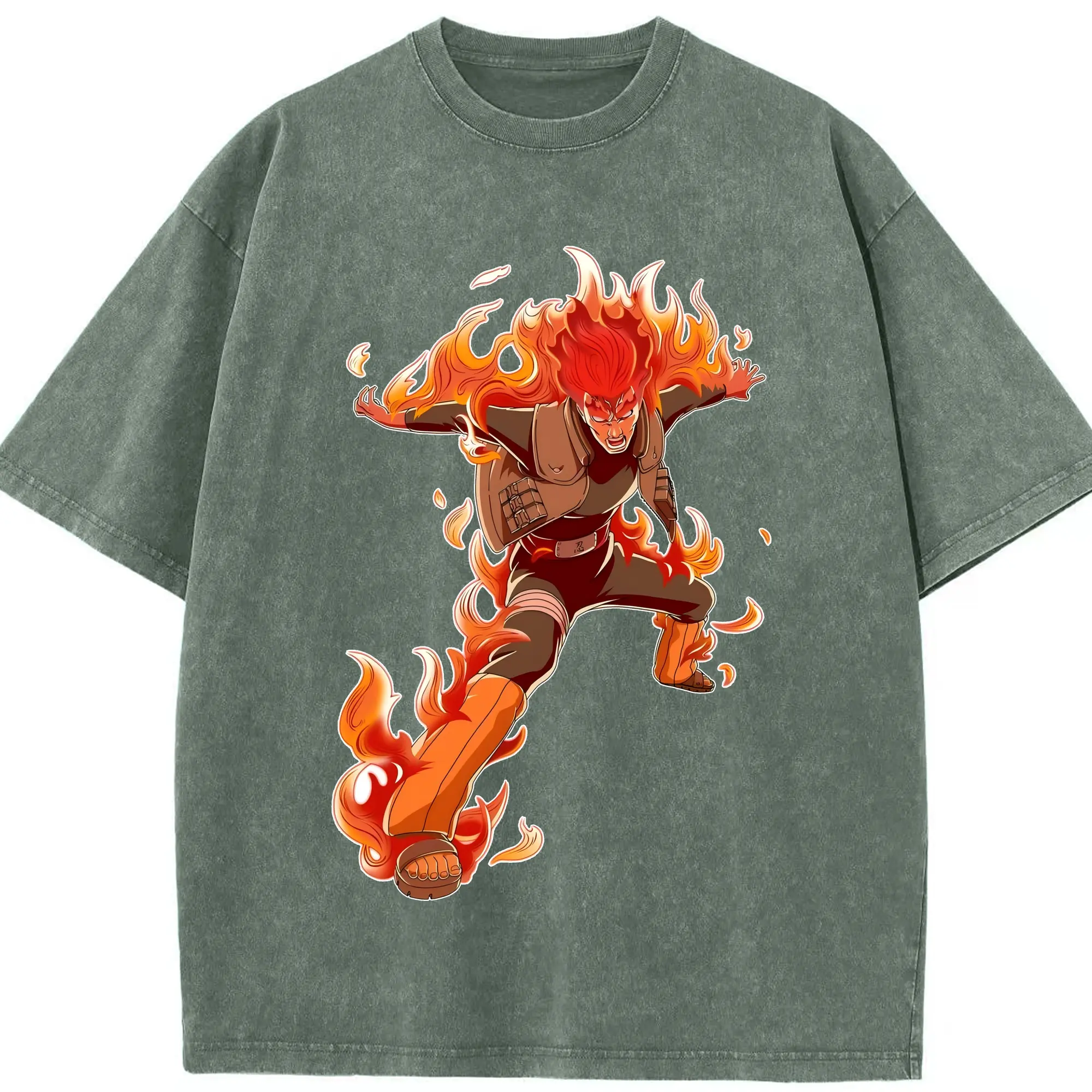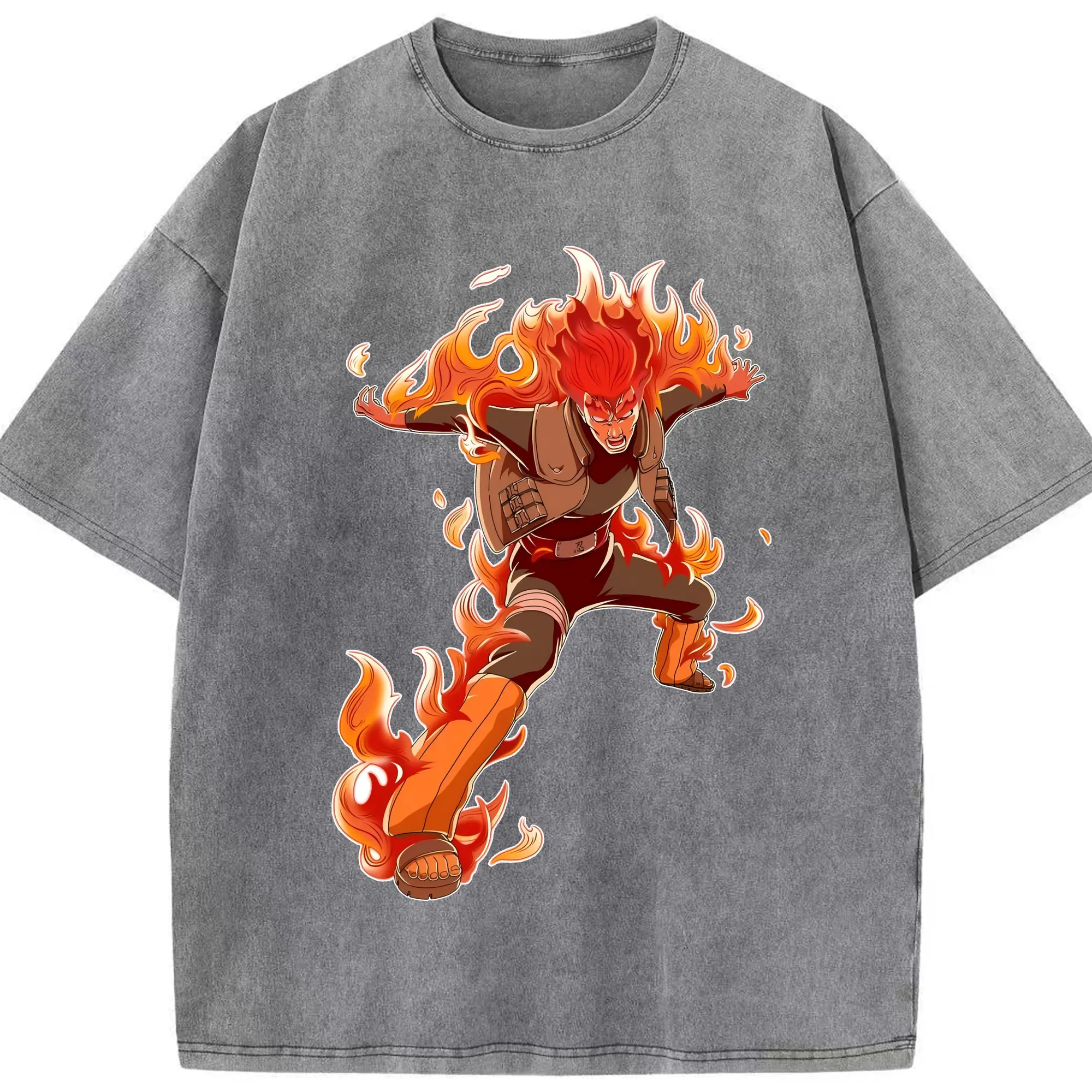 ナルト グッズ マイト・ガイ - 綿100% ヴィンテージ風 半袖Tシャツ ・ 背面プリント ・ 柔らか肌触り ・ 通気性 快適 ・ スポーツ カジュアル 外出用
