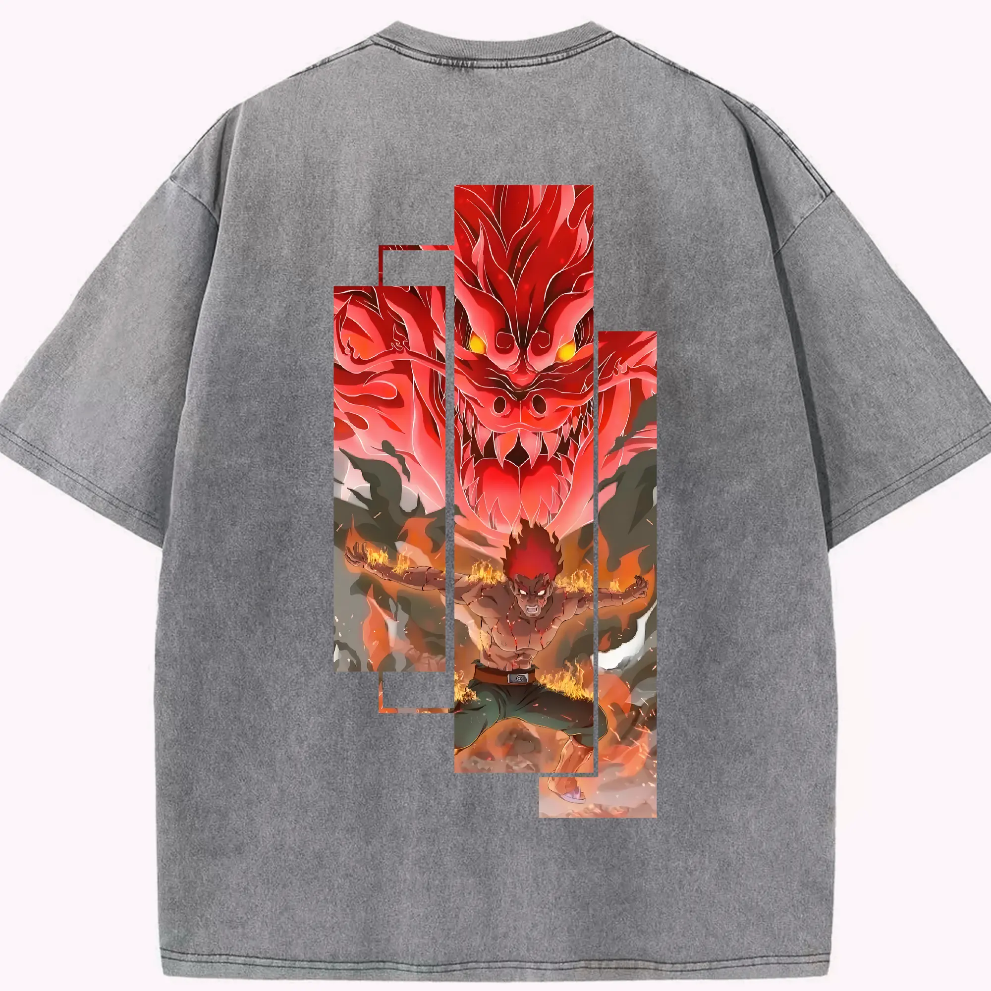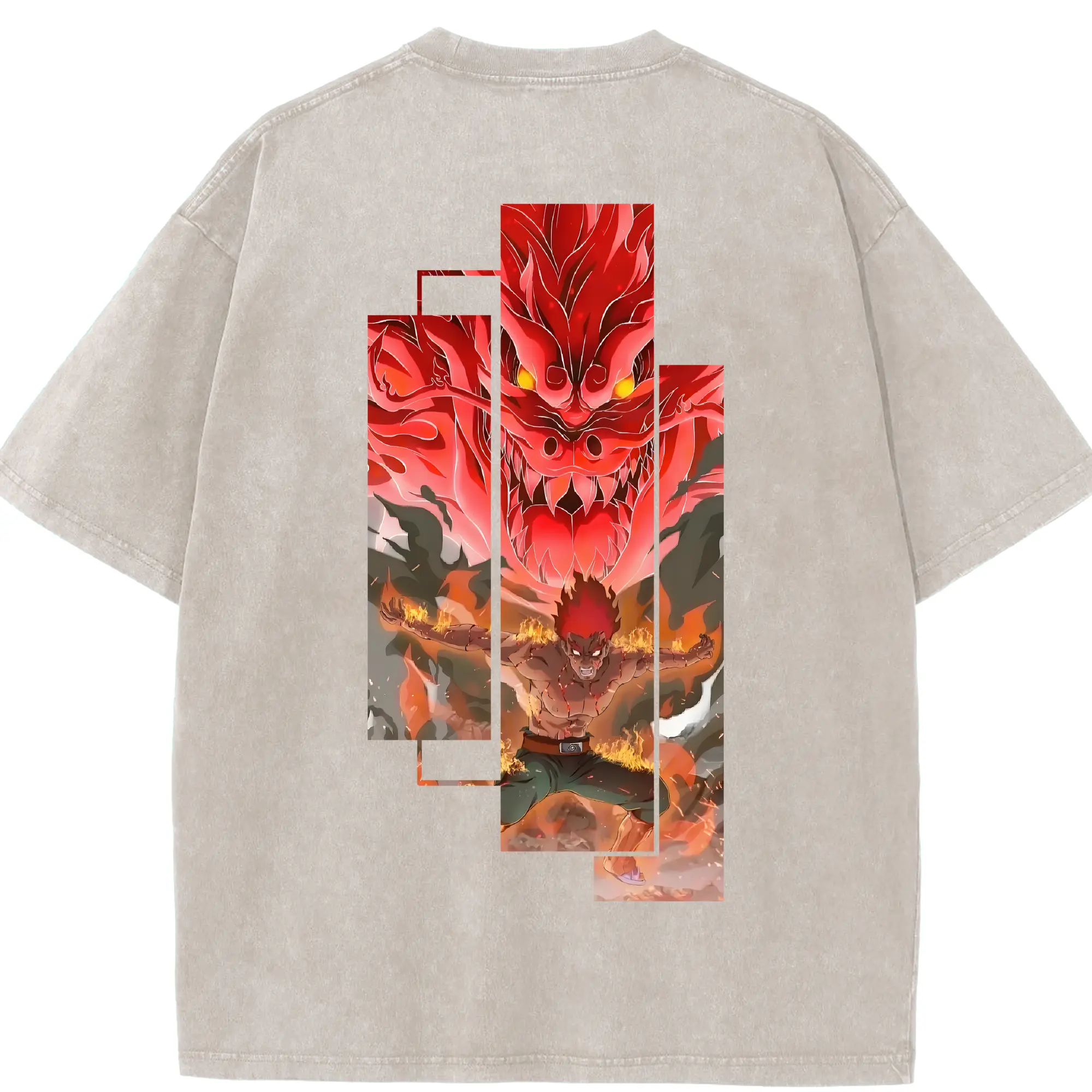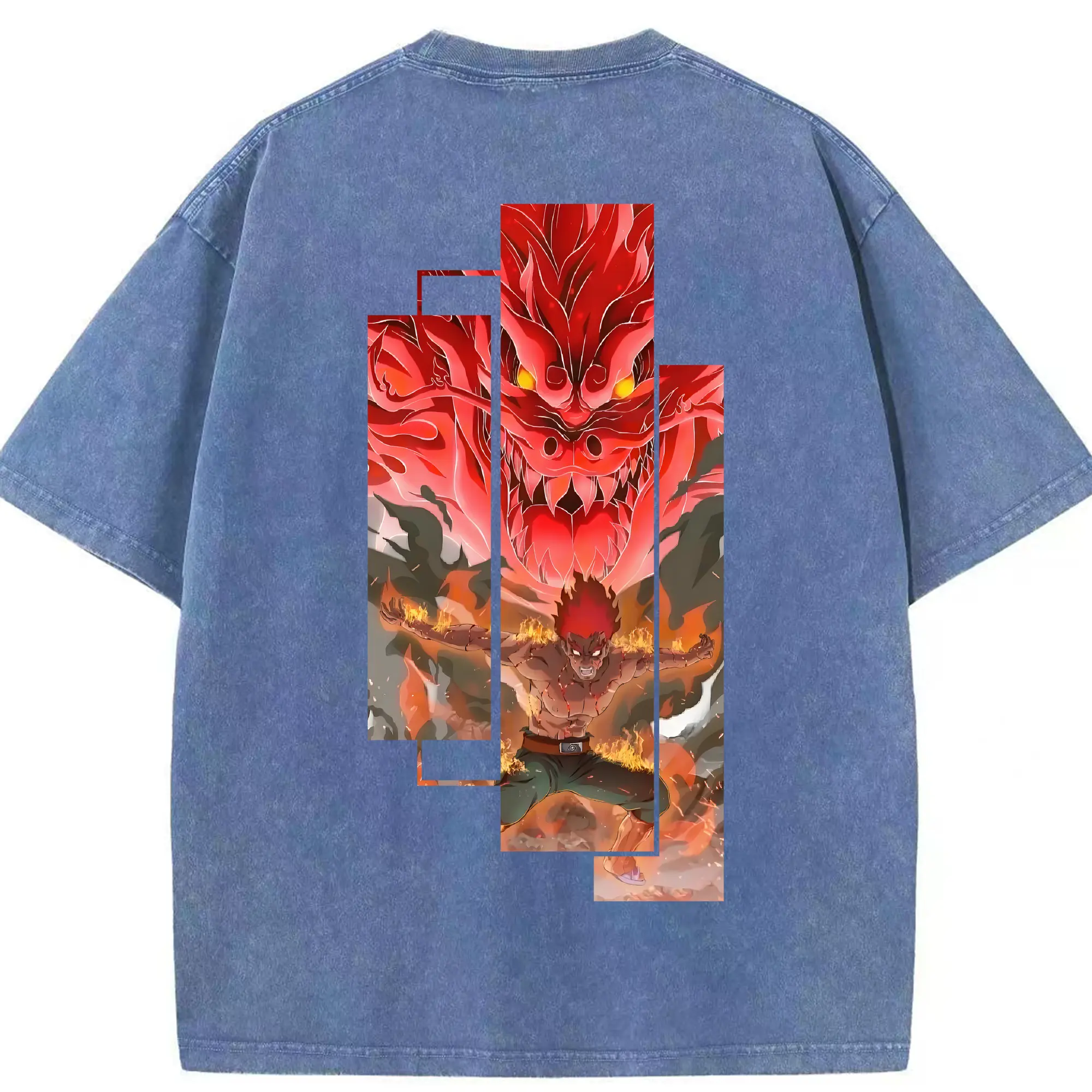 ナルト グッズ マイト・ガイ - 綿100% ヴィンテージ風 半袖Tシャツ ・ フロントプリント ・ 柔らか肌触り ・ 通気性 快適 ・ スポーツ カジュアル 外出用