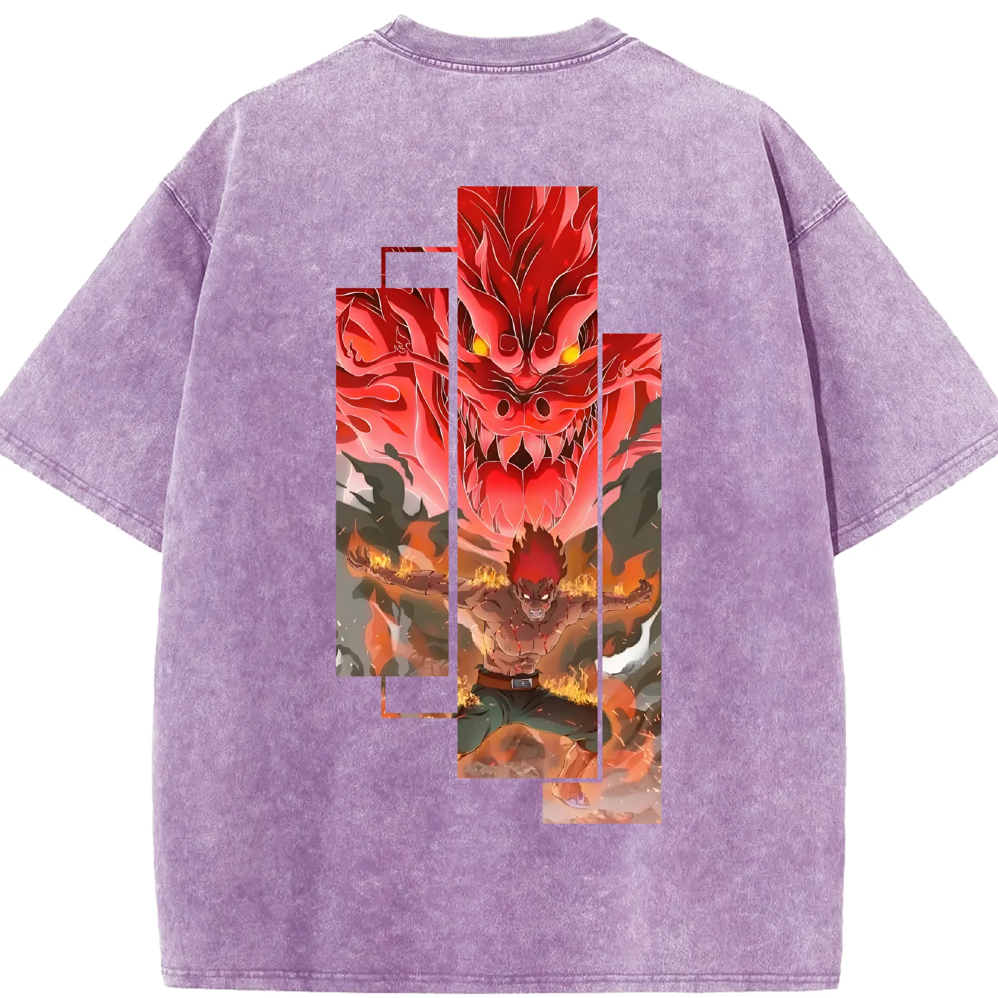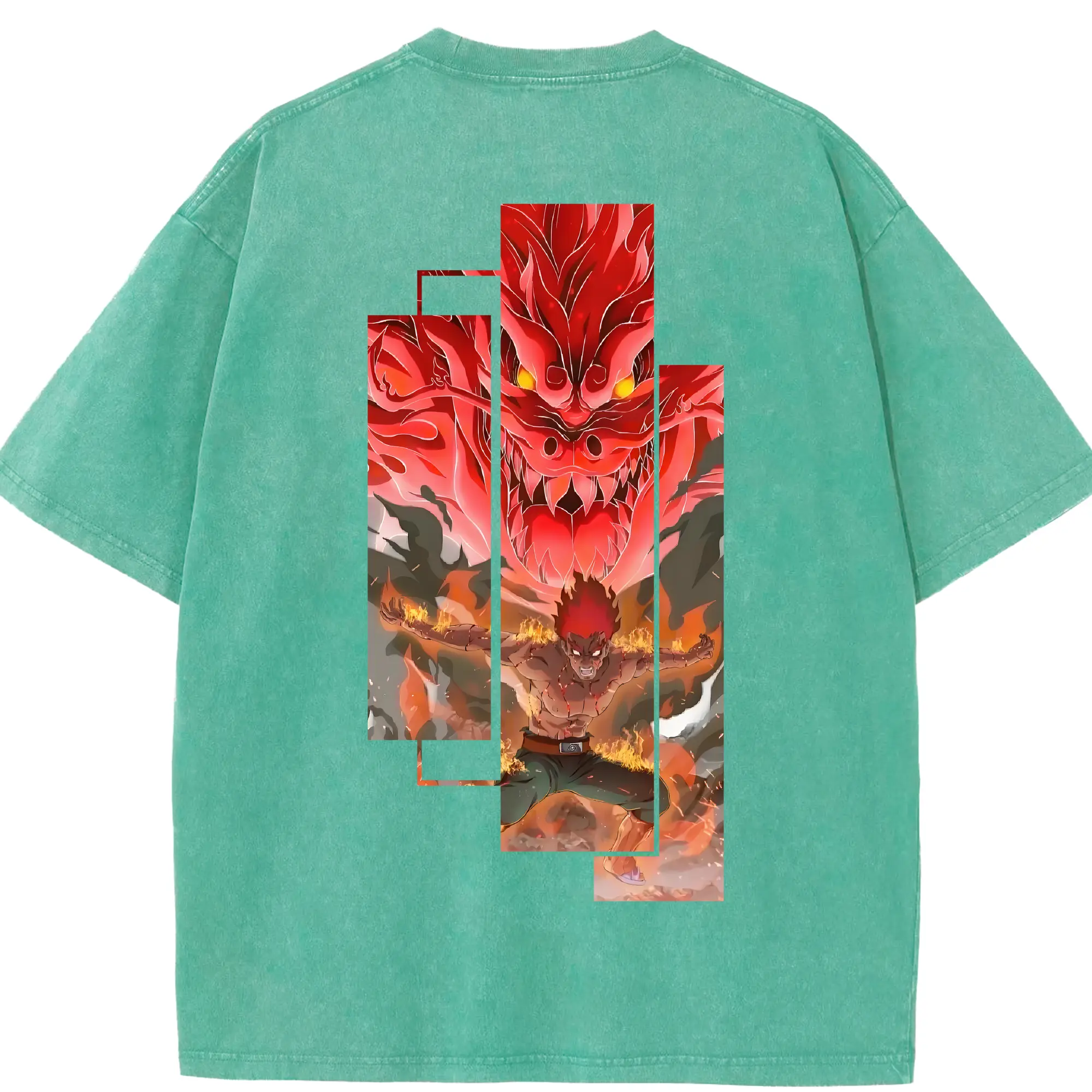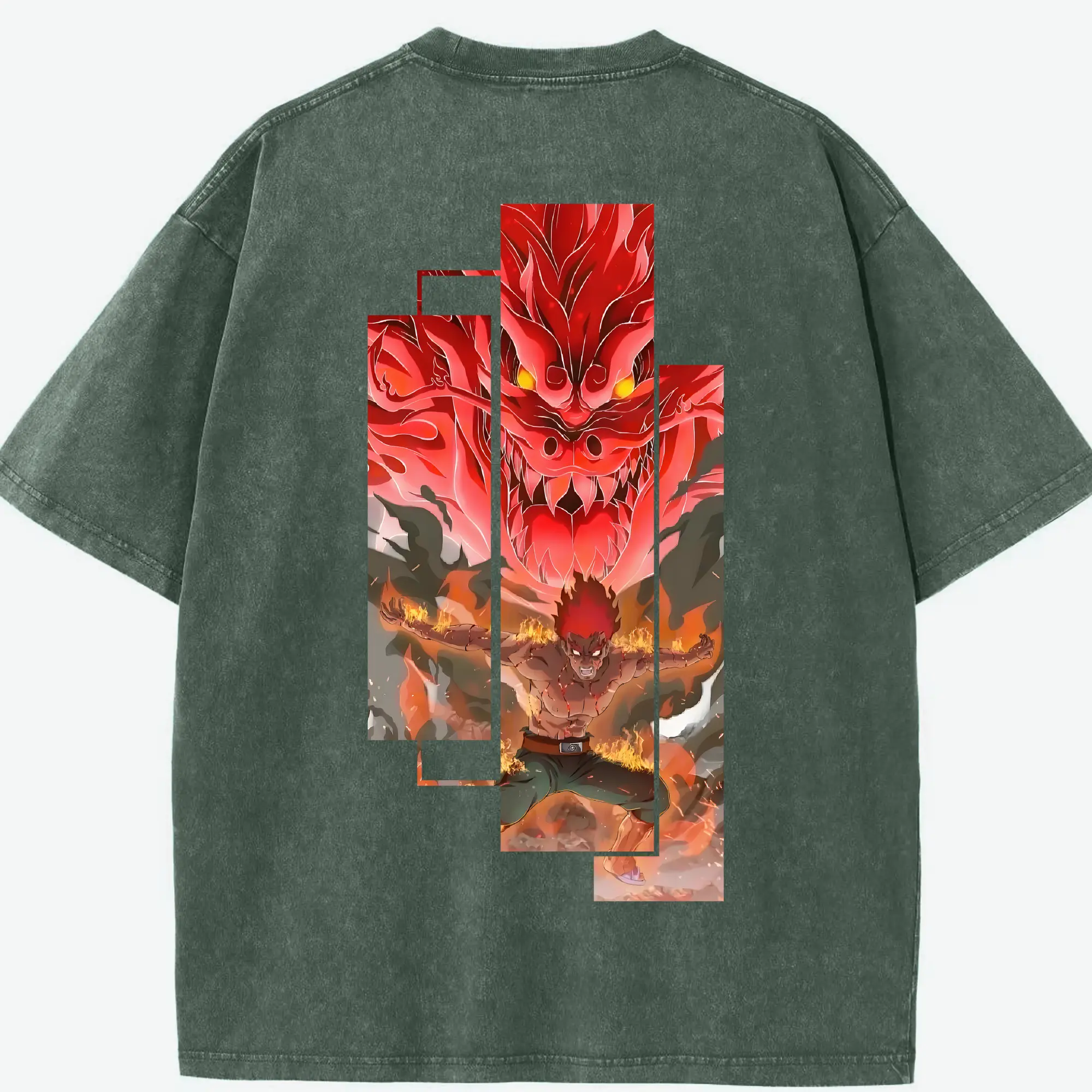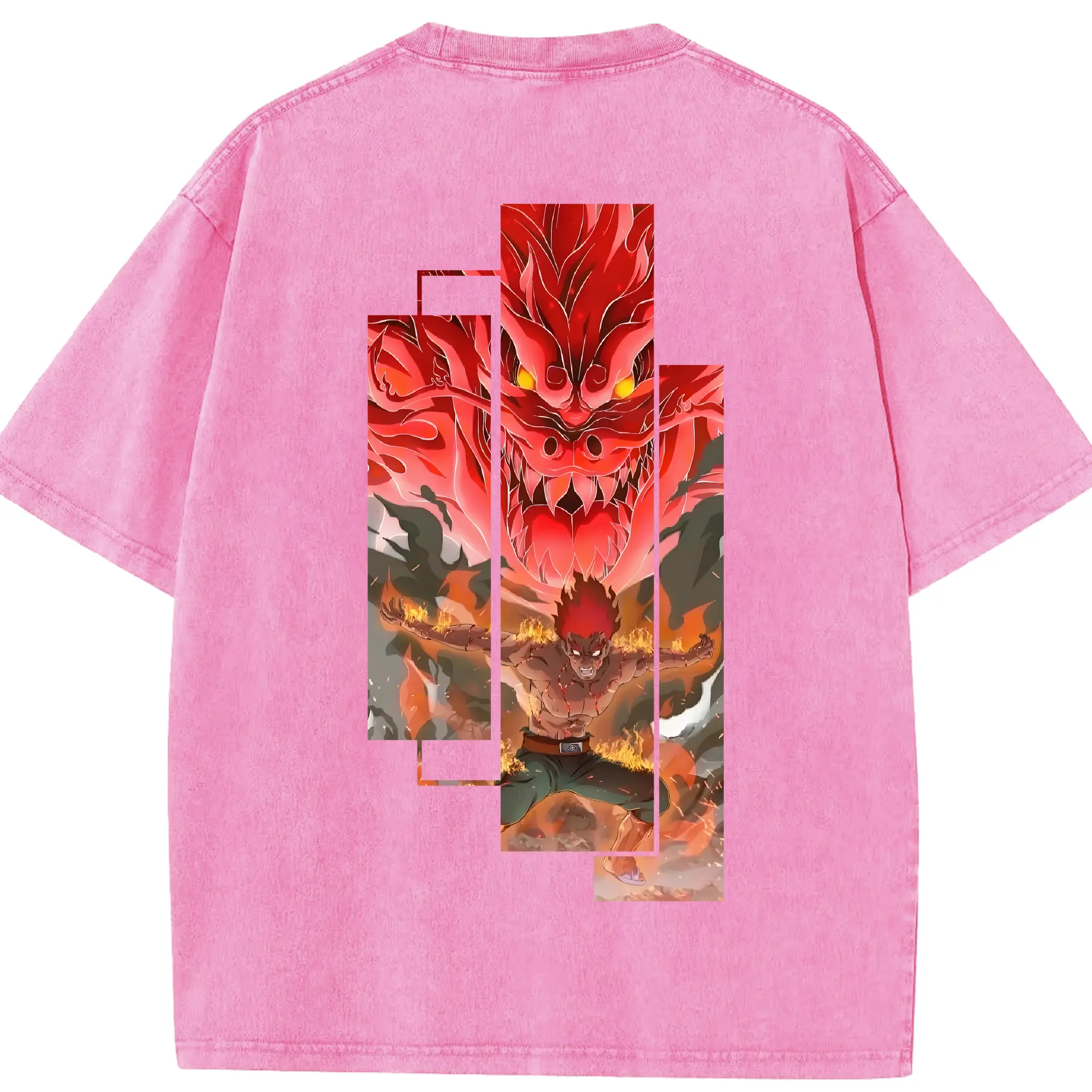 ナルト グッズ マイト・ガイ - 綿100% ヴィンテージ風 半袖Tシャツ ・ フロントプリント ・ 柔らか肌触り ・ 通気性 快適 ・ スポーツ カジュアル 外出用