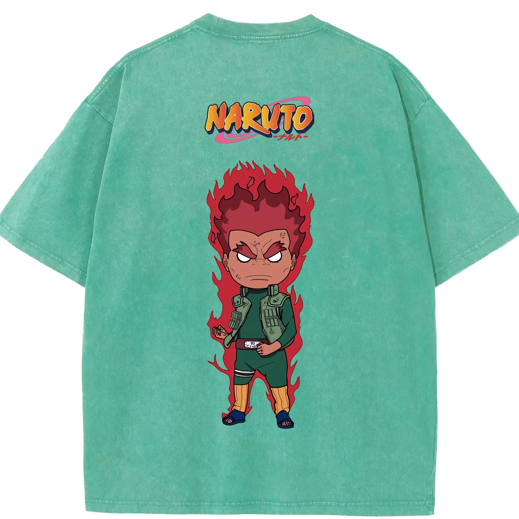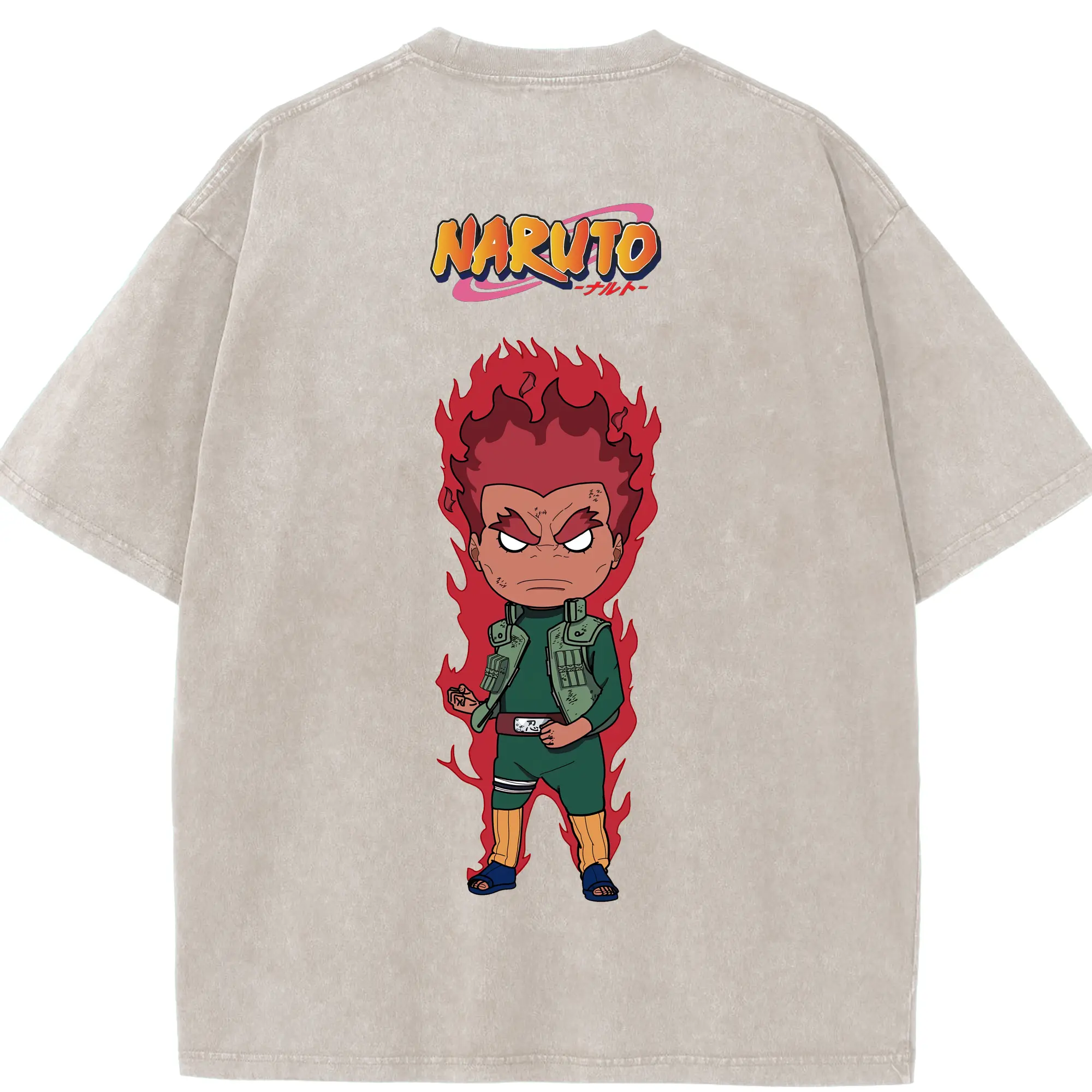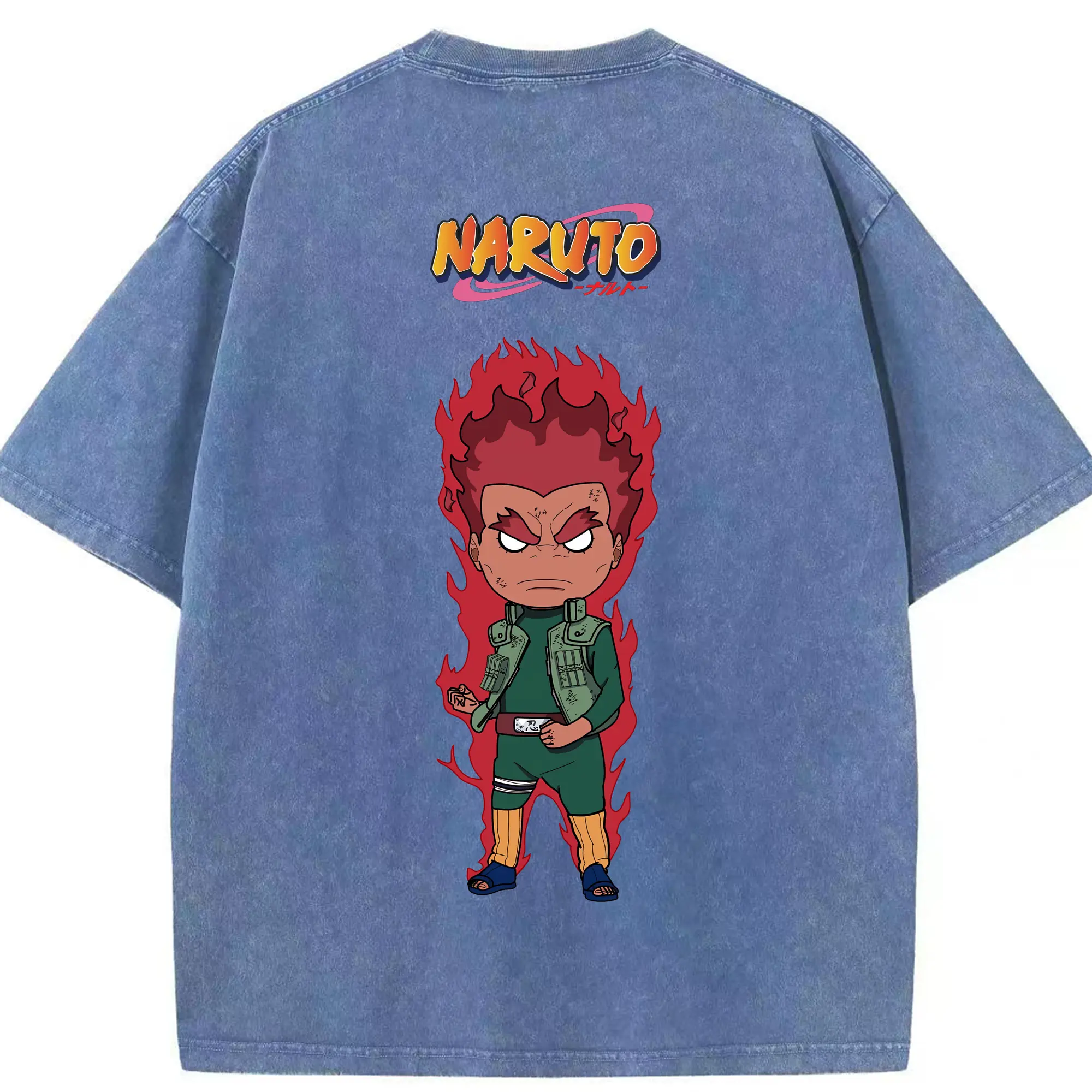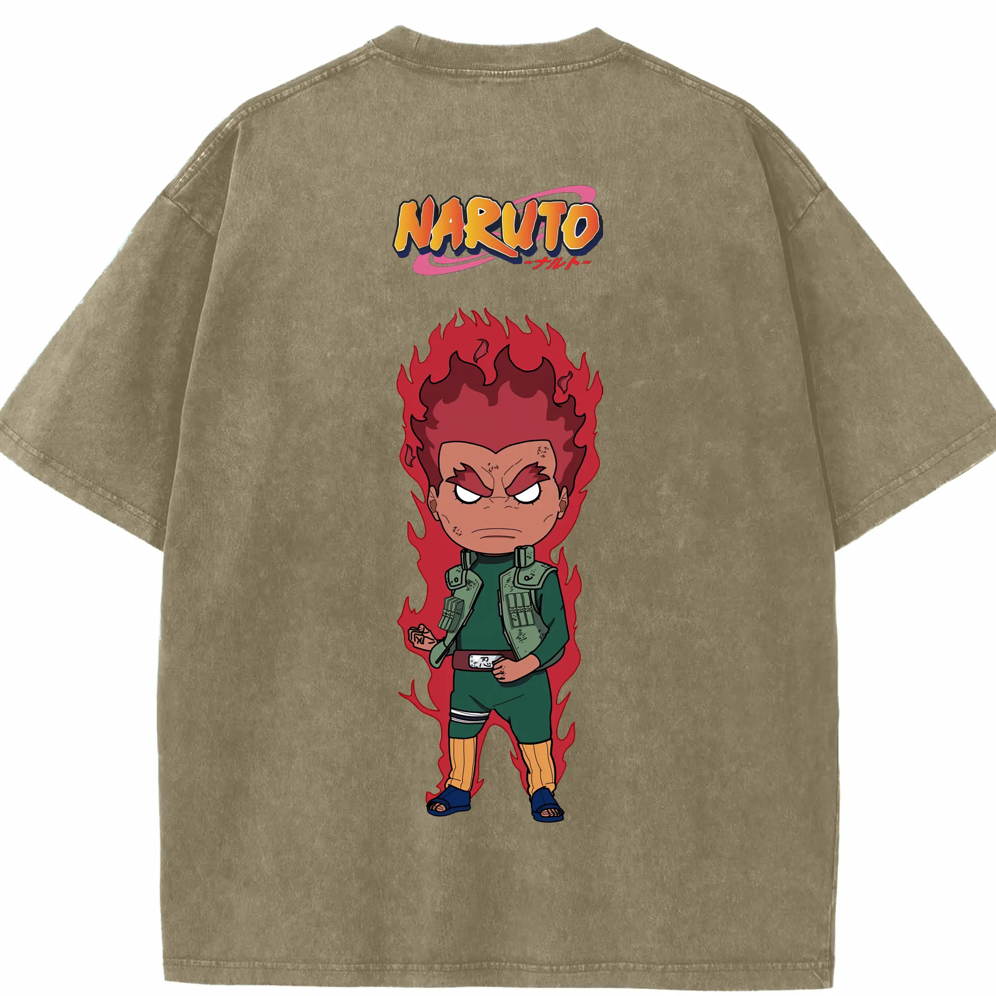 ナルト グッズ マイト・ガイ - 綿100% ヴィンテージ風 半袖Tシャツ ・ フロントプリント ・ 柔らか肌触り ・ 通気性 快適 ・ スポーツ カジュアル 外出用