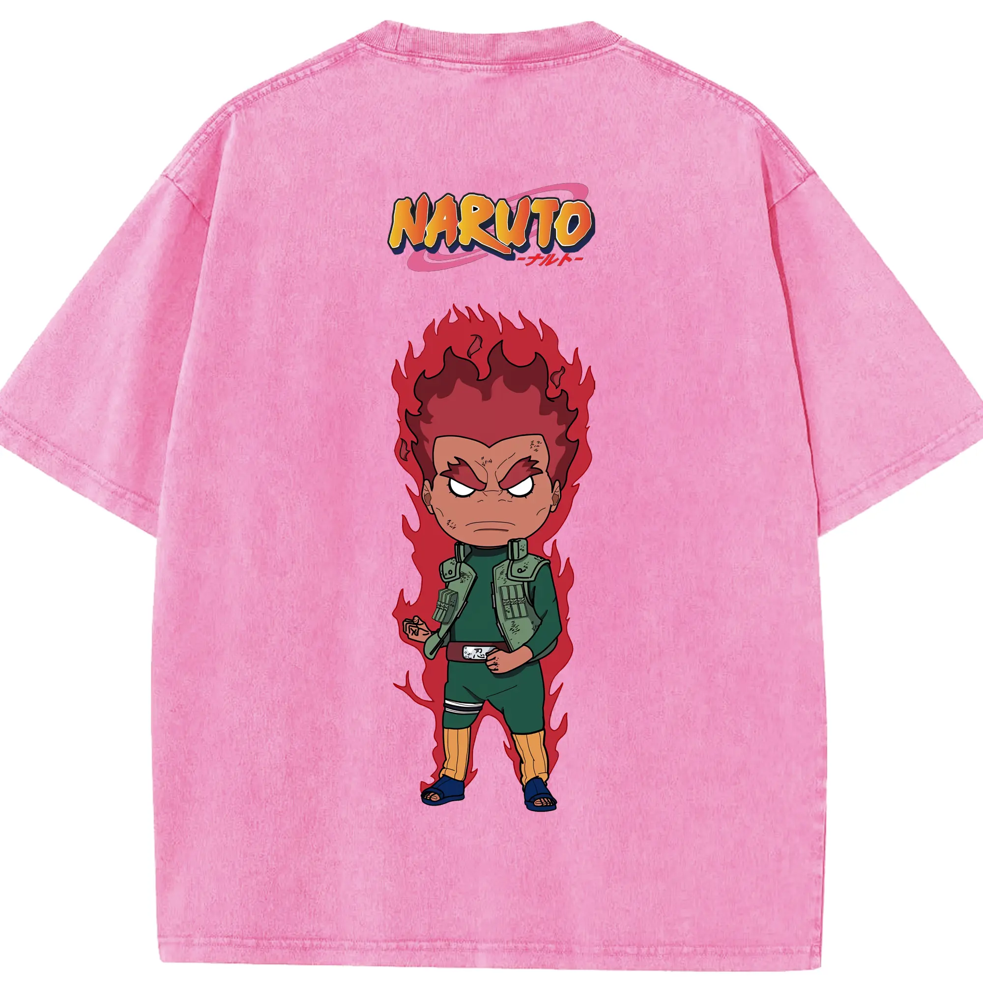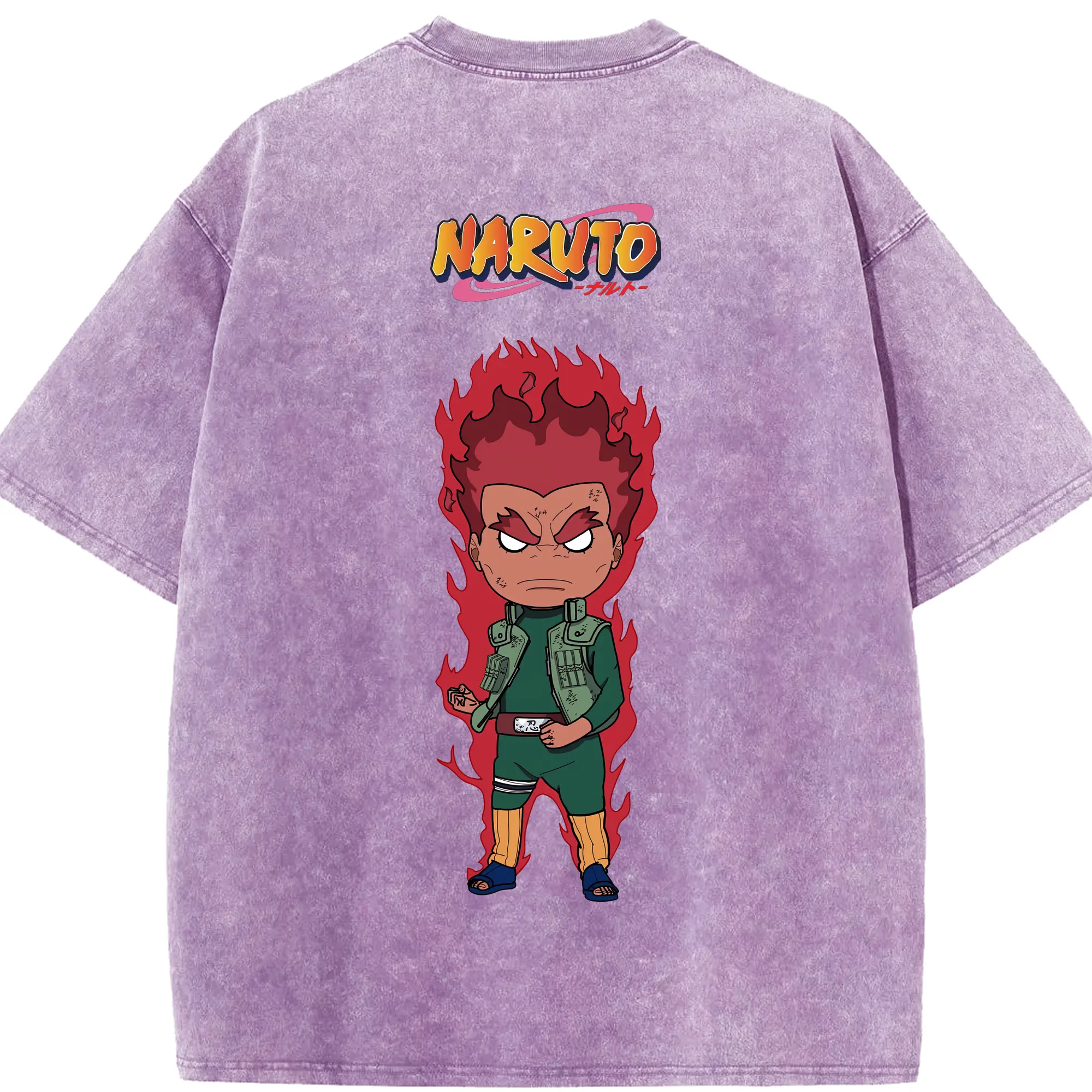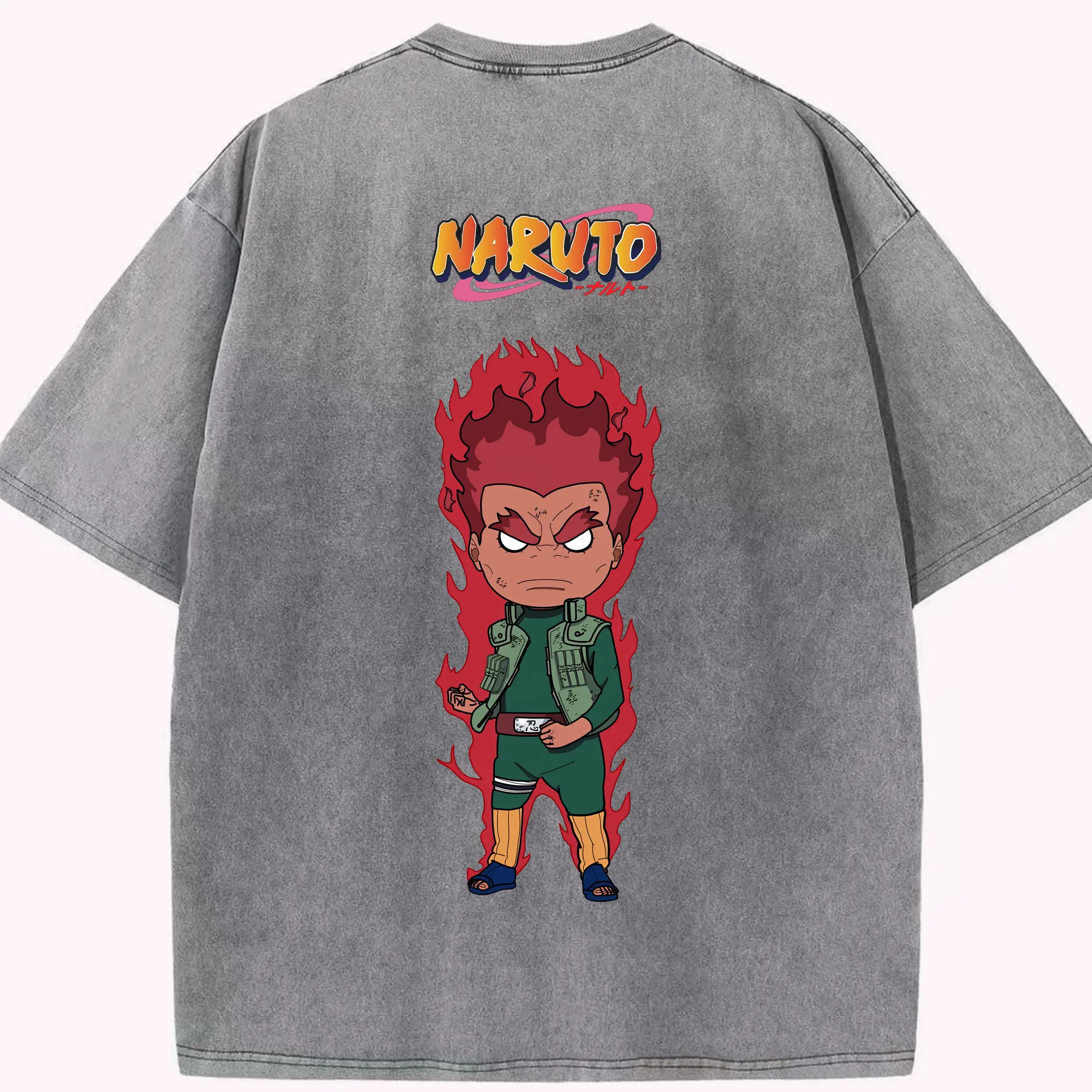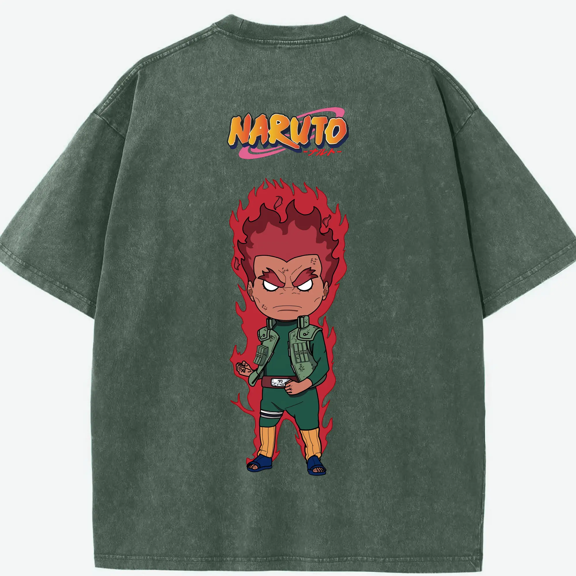 ナルト グッズ マイト・ガイ - 綿100% ヴィンテージ風 半袖Tシャツ ・ フロントプリント ・ 柔らか肌触り ・ 通気性 快適 ・ スポーツ カジュアル 外出用
