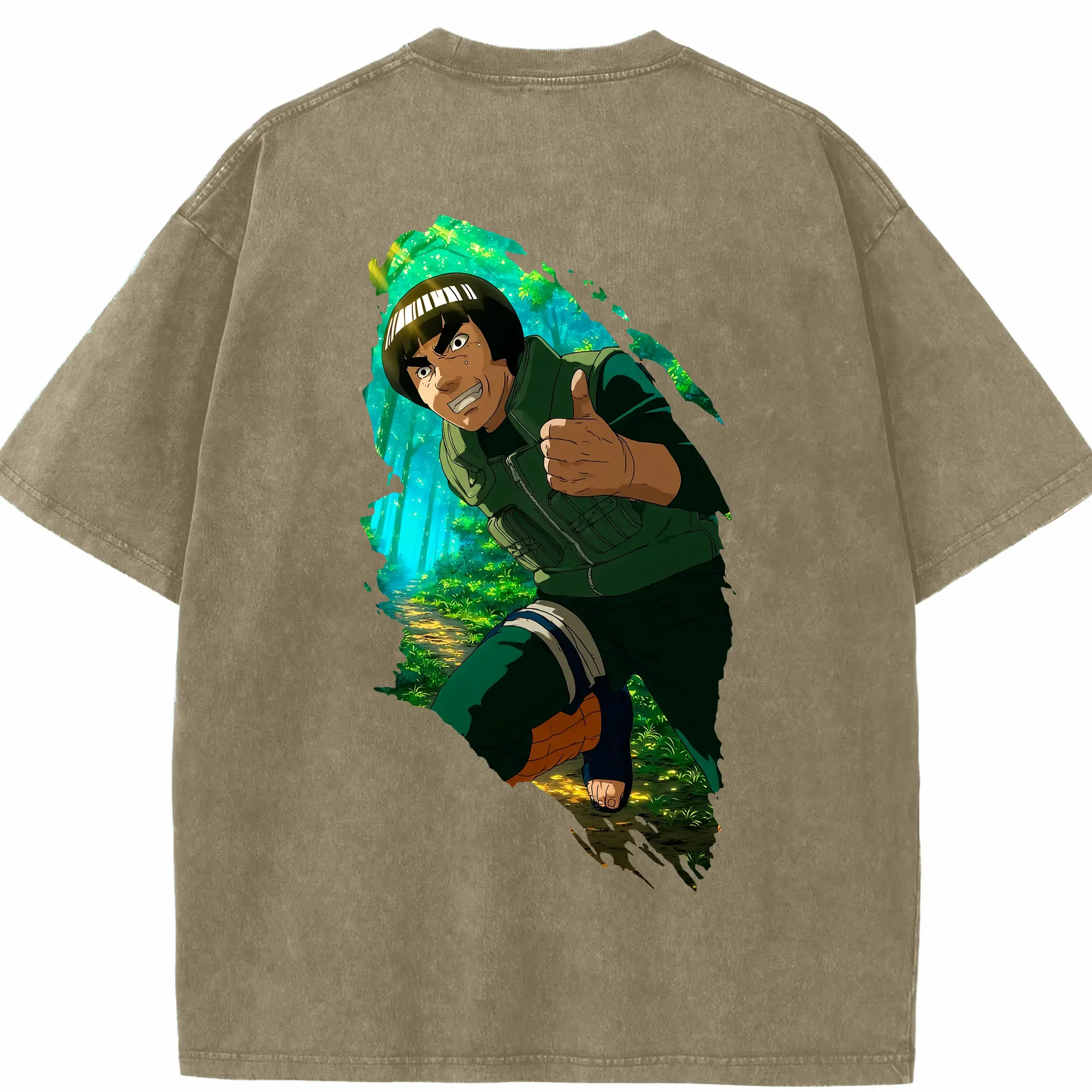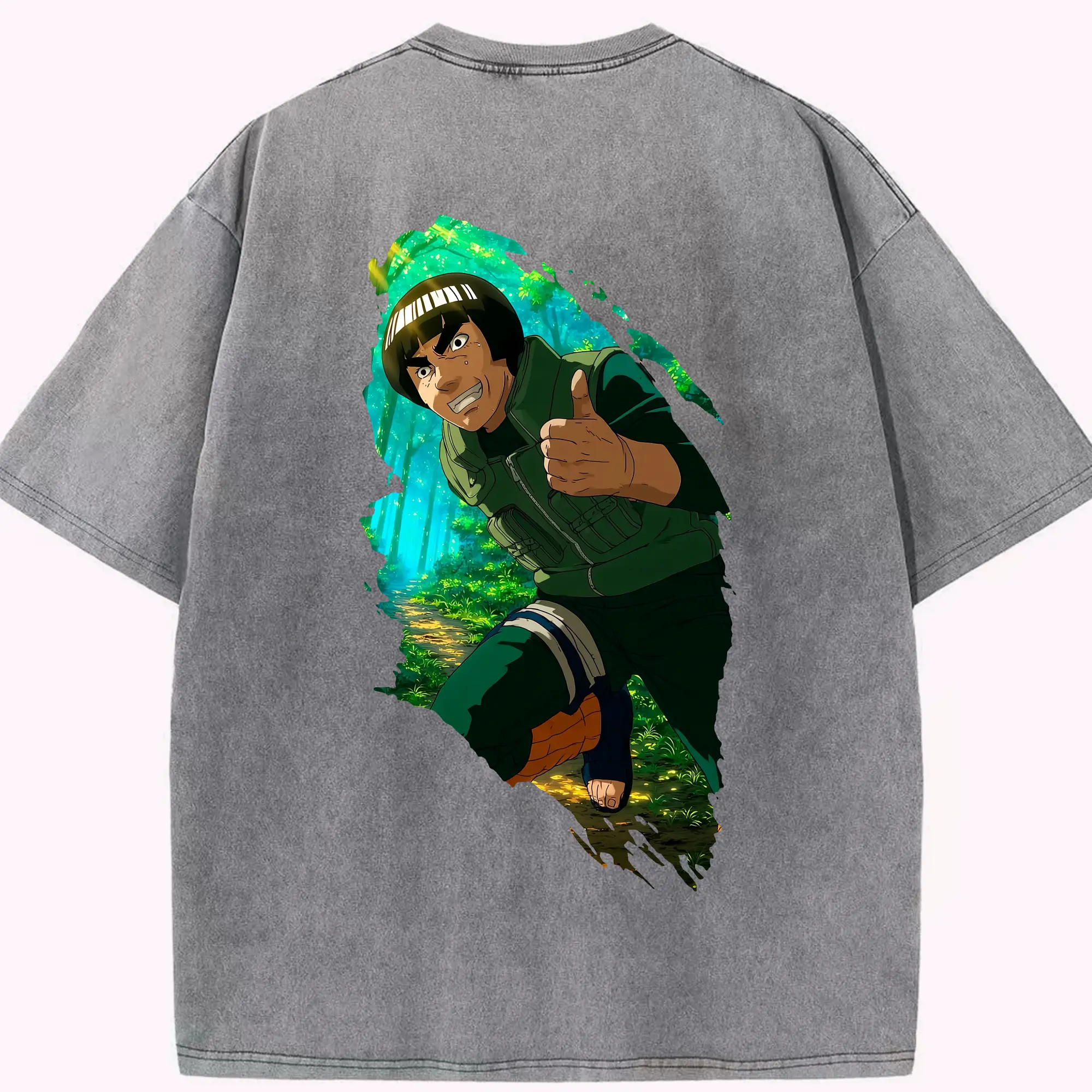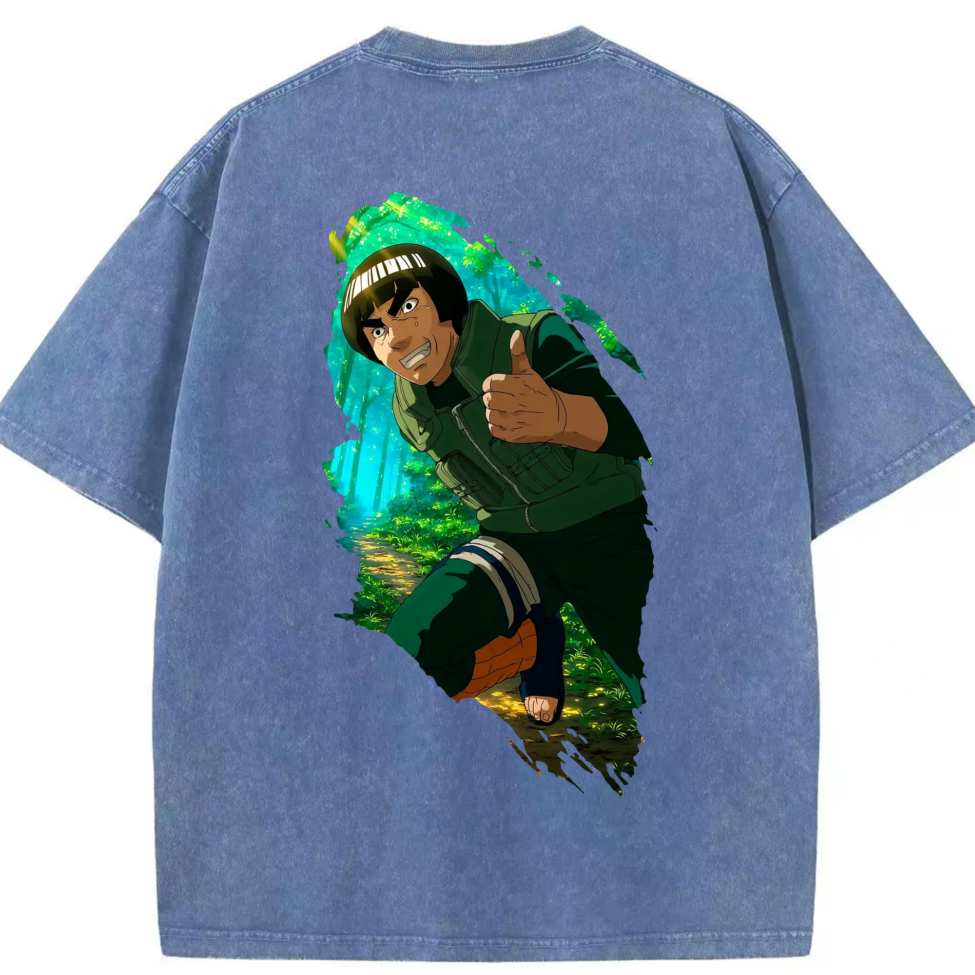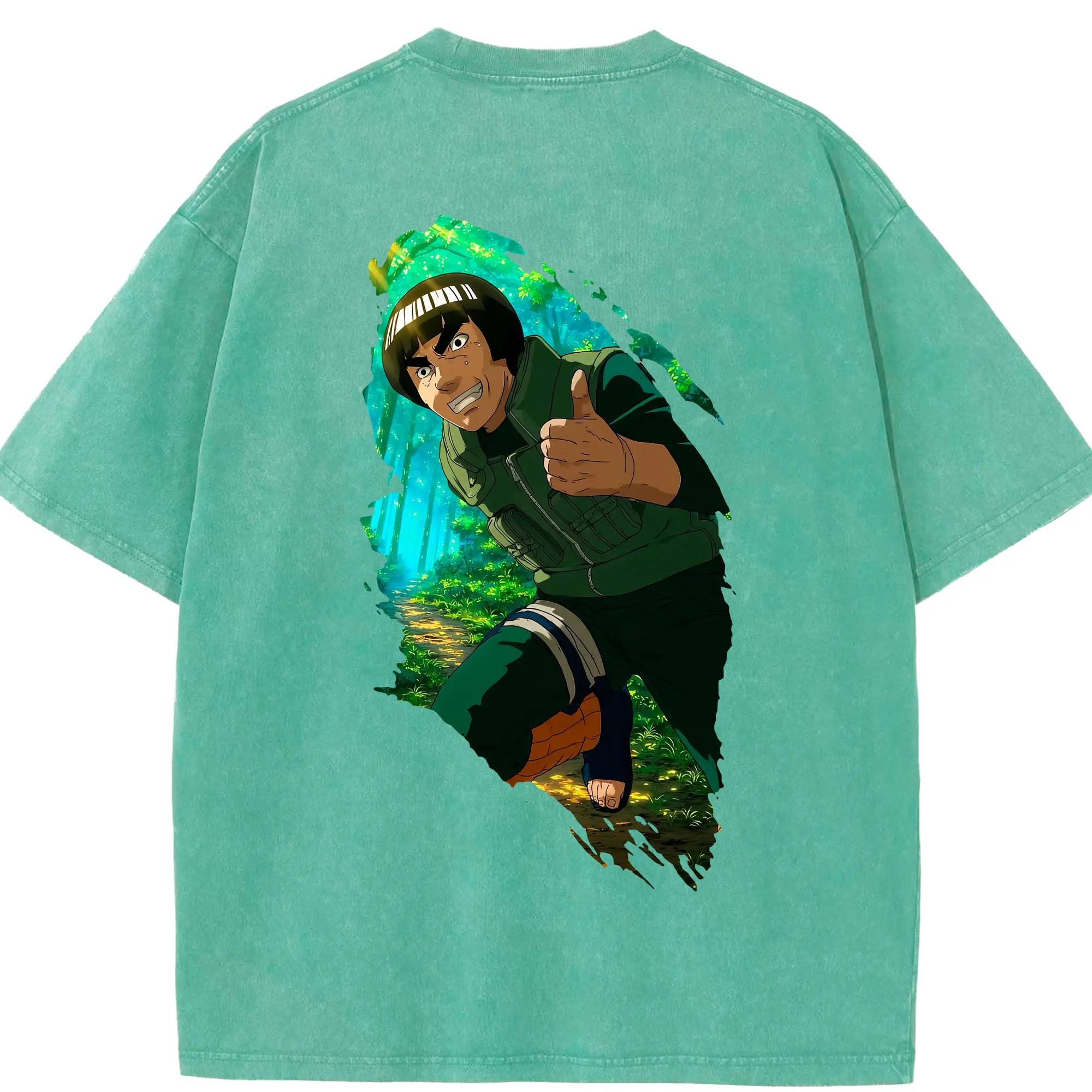 ナルト グッズ マイト・ガイ - 綿100% ヴィンテージ風 半袖Tシャツ ・ フロントプリント ・ 柔らか肌触り ・ 通気性 快適 ・ スポーツ カジュアル 外出用