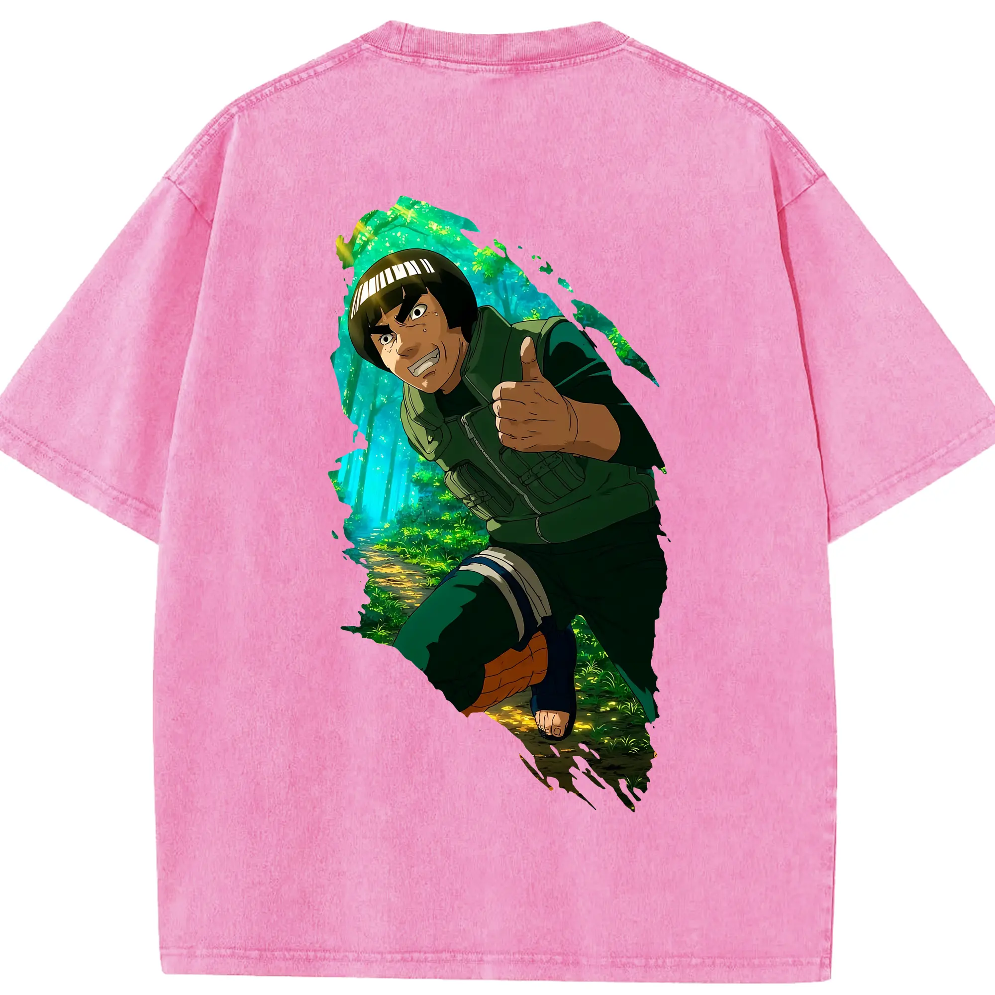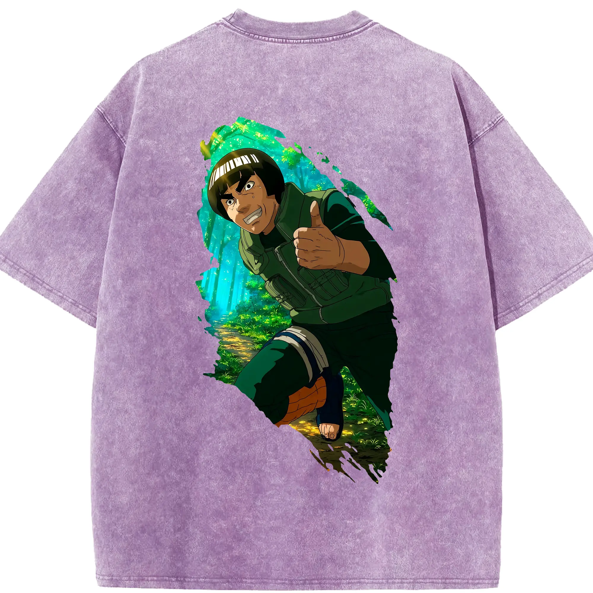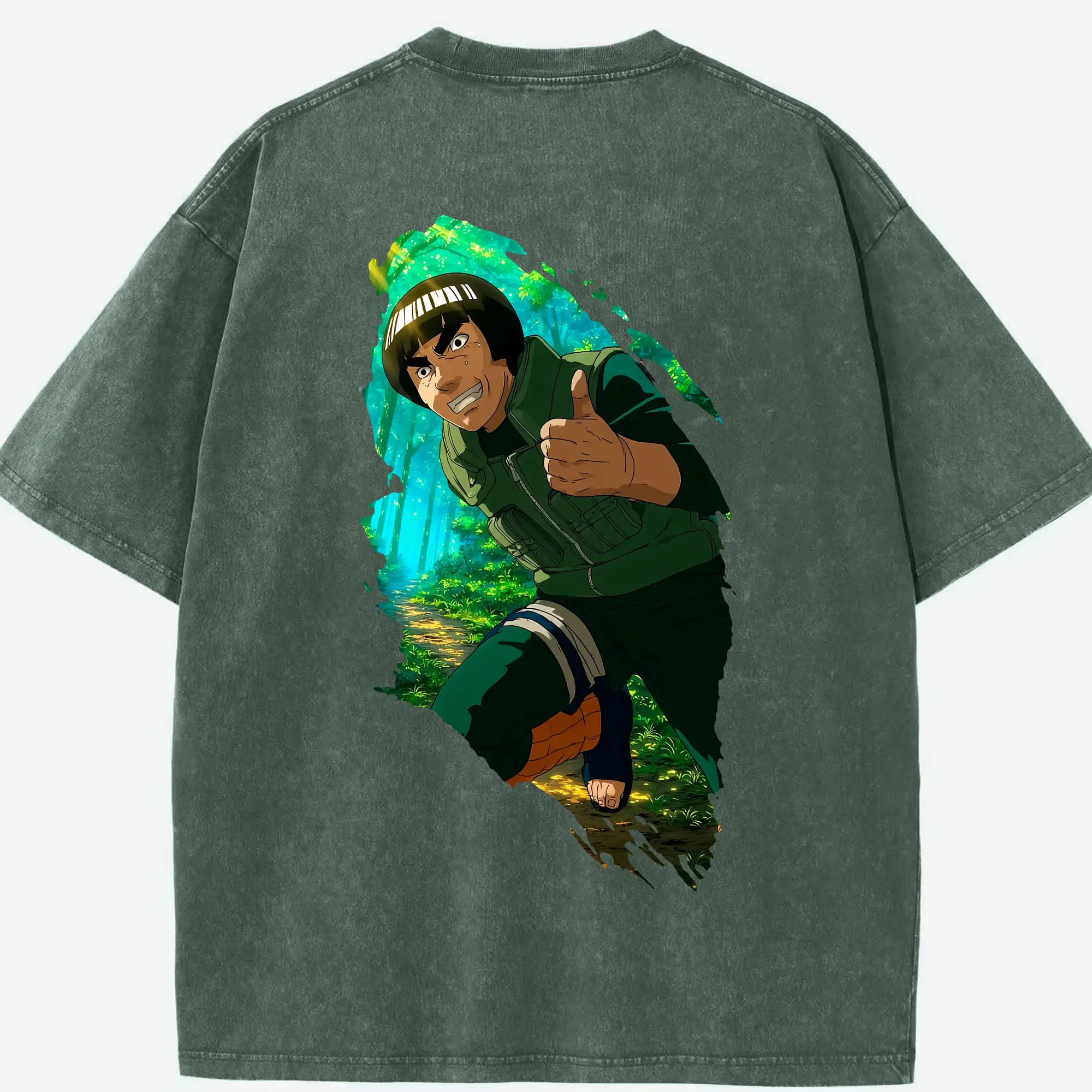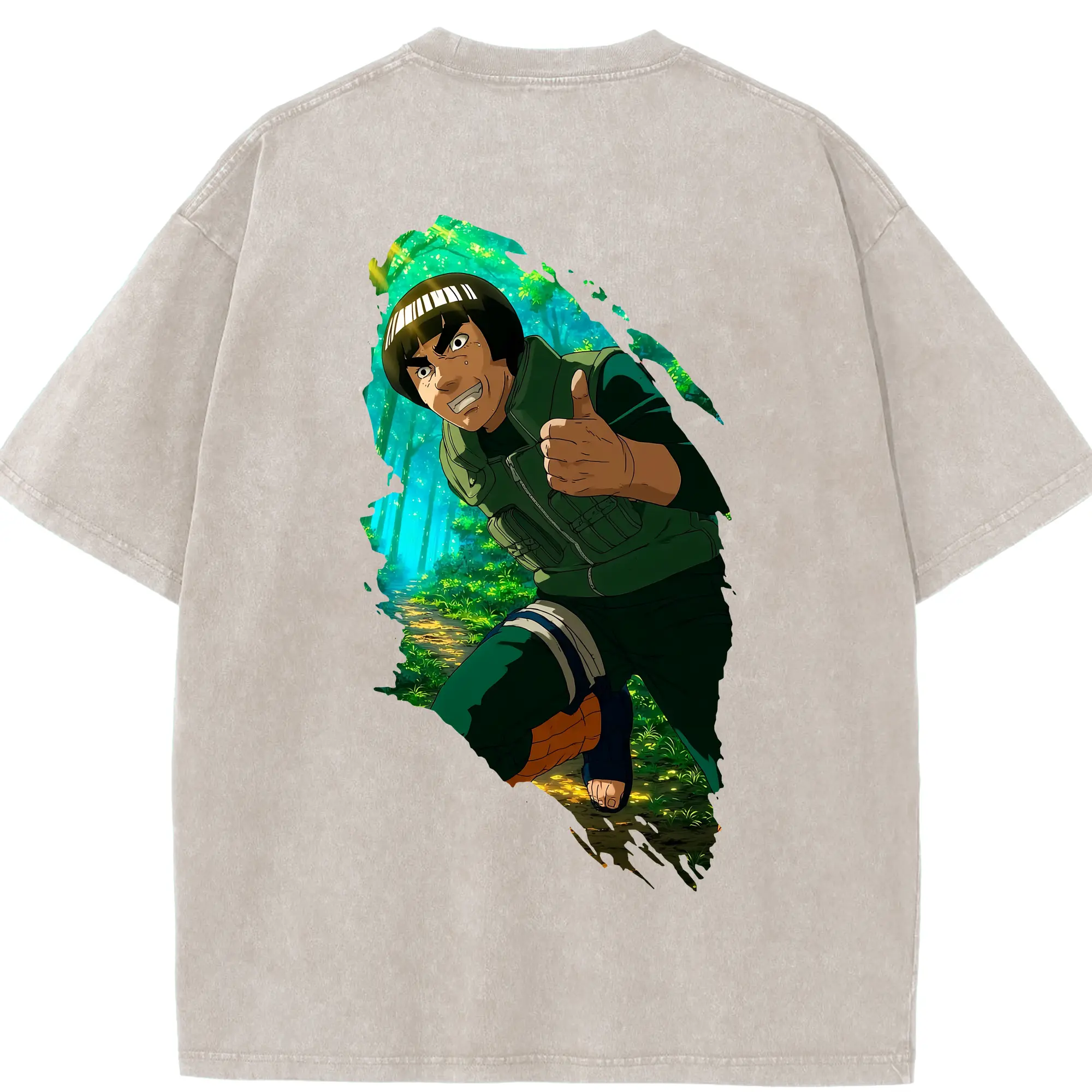 ナルト グッズ マイト・ガイ - 綿100% ヴィンテージ風 半袖Tシャツ ・ フロントプリント ・ 柔らか肌触り ・ 通気性 快適 ・ スポーツ カジュアル 外出用