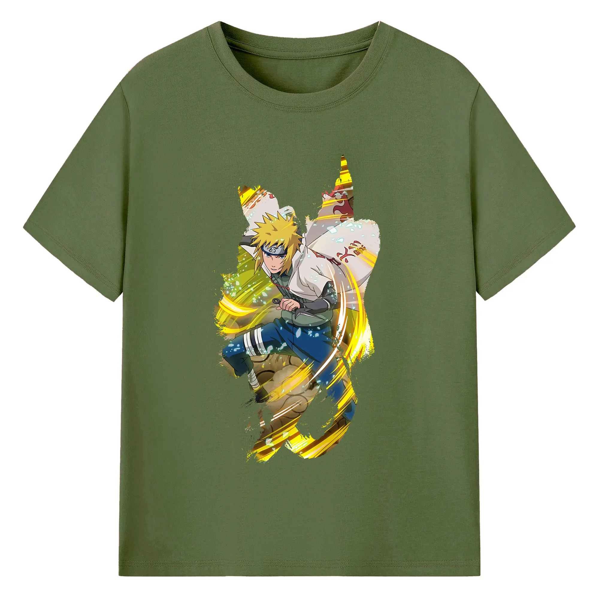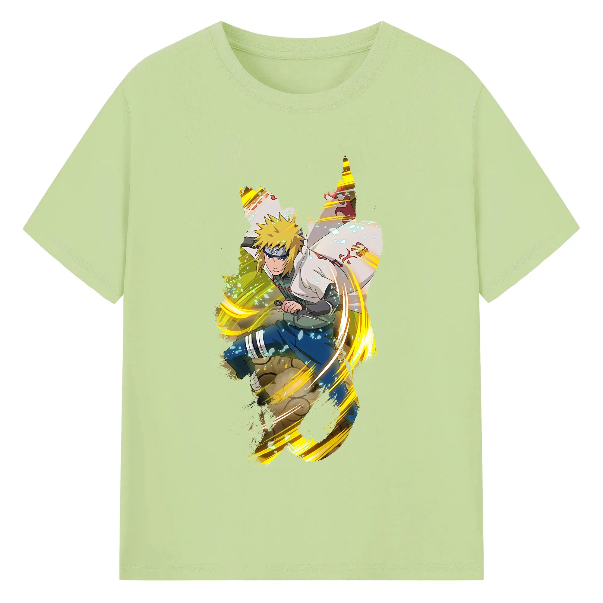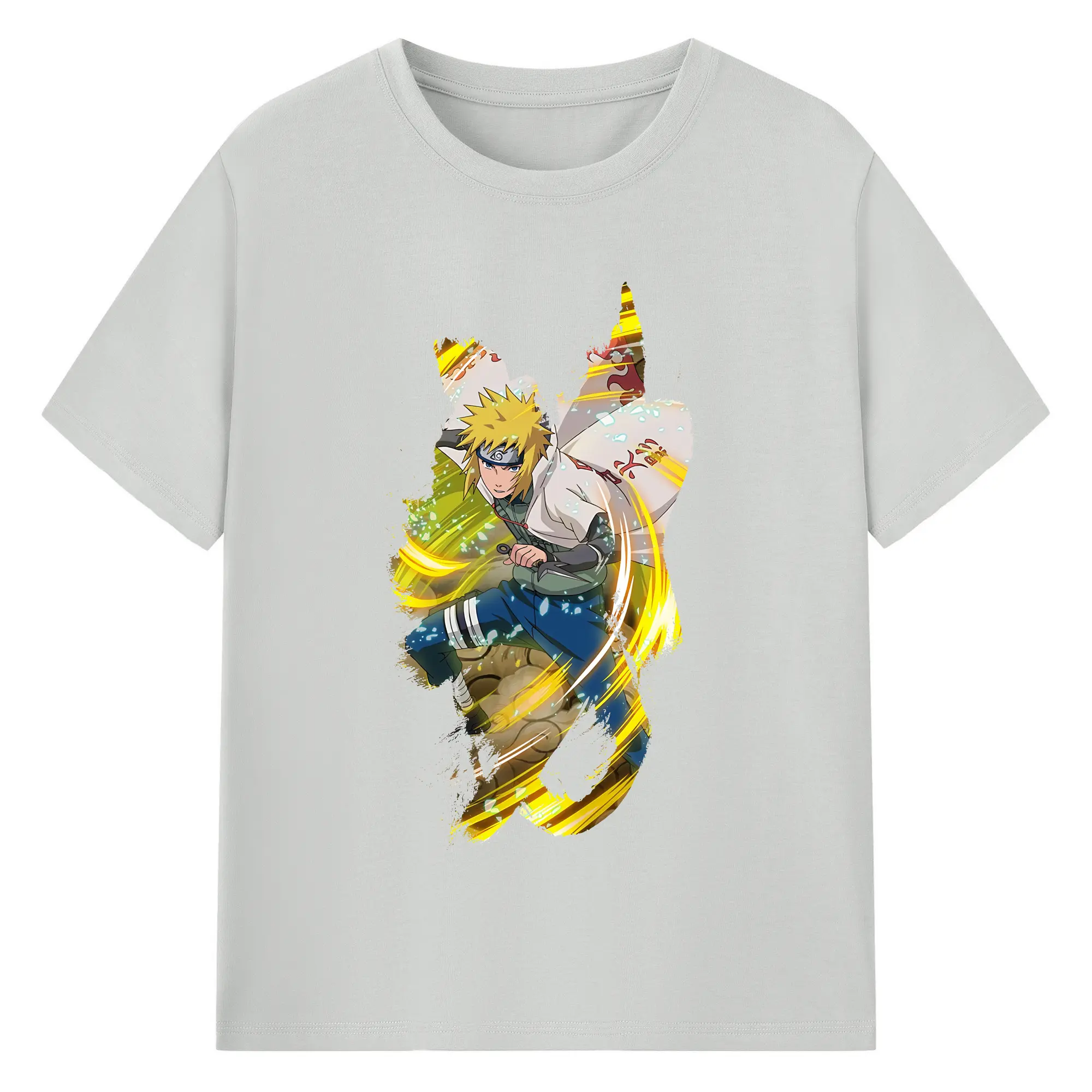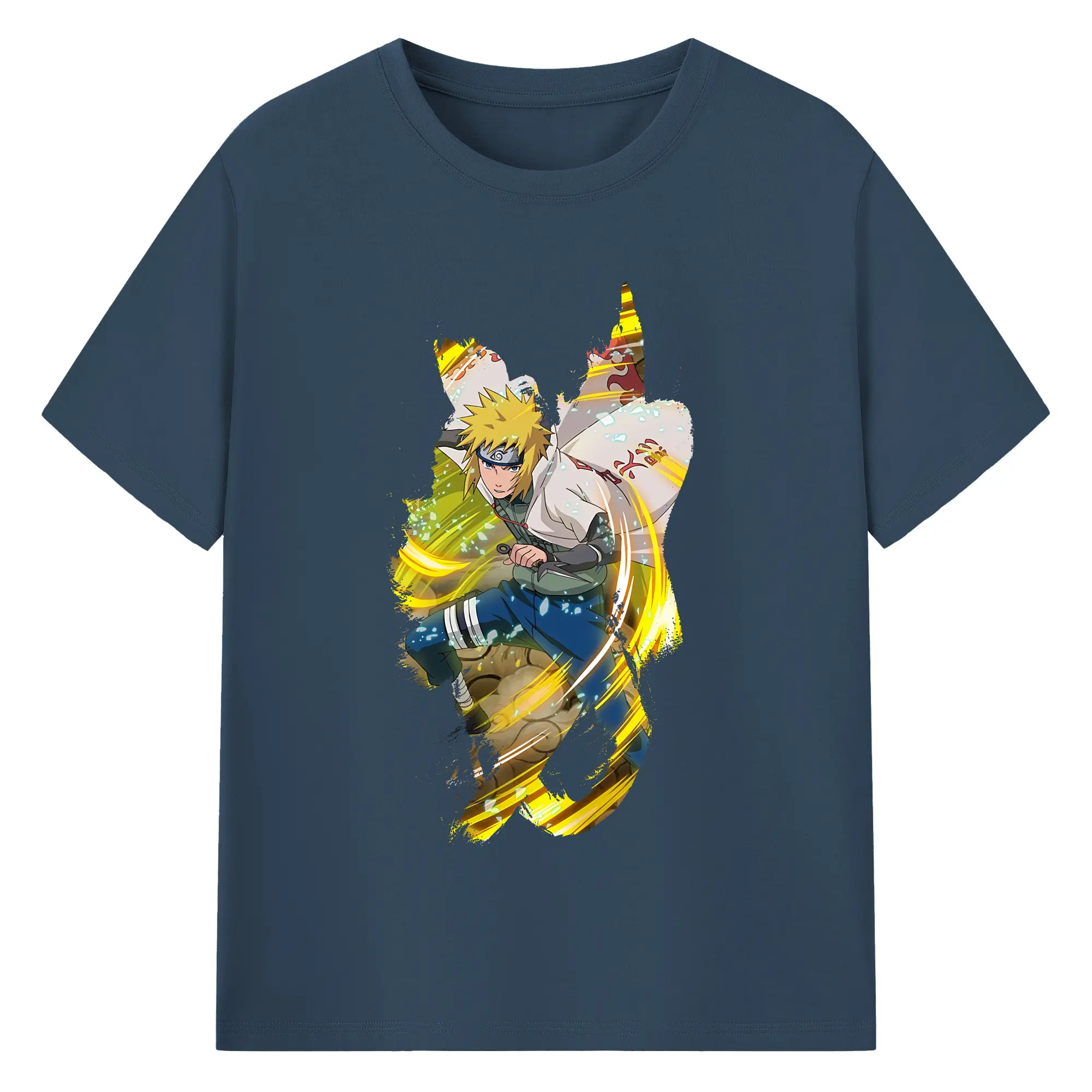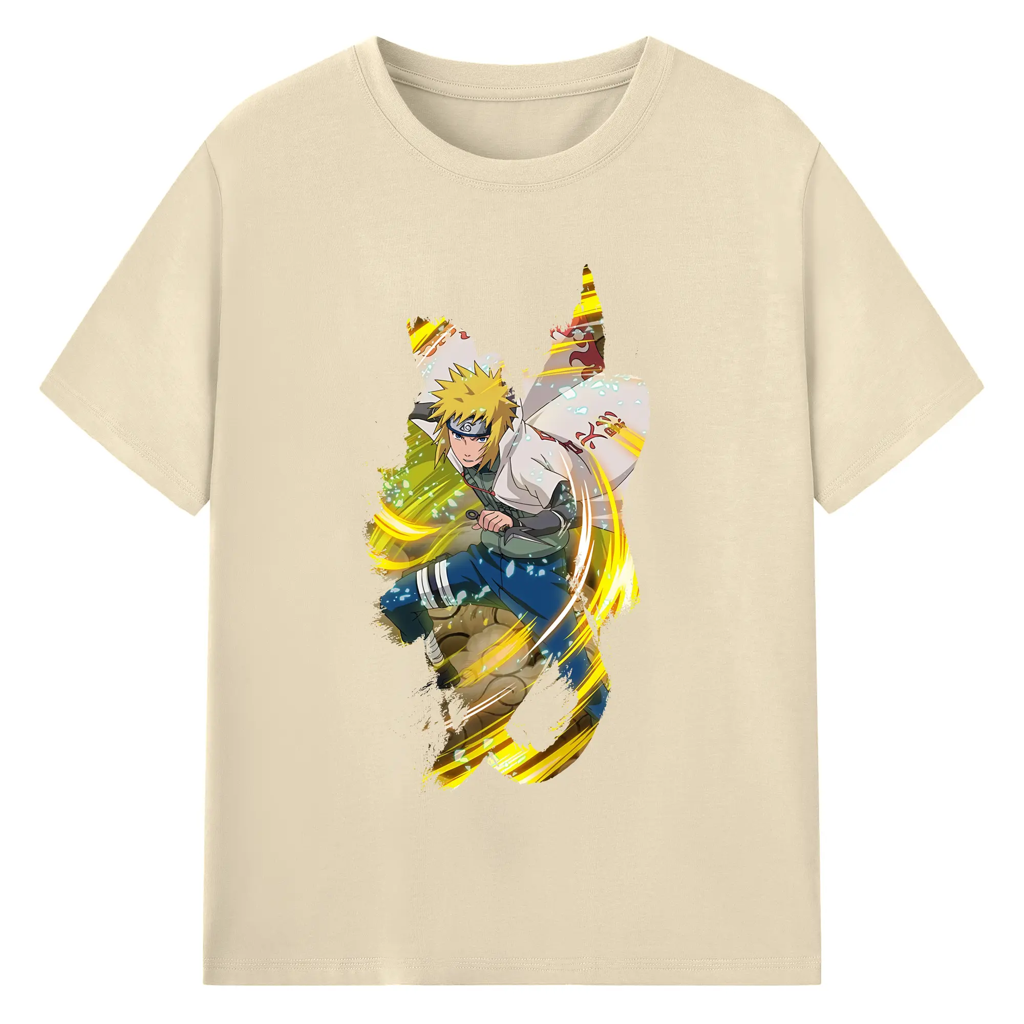 ナルト グッズ 波風 ミナト - 綿100% ヴィンテージ風 半袖Tシャツ ・ フロントプリント ・ 柔らか肌触り ・ 通気性 快適 ・ スポーツ カジュアル 外出用