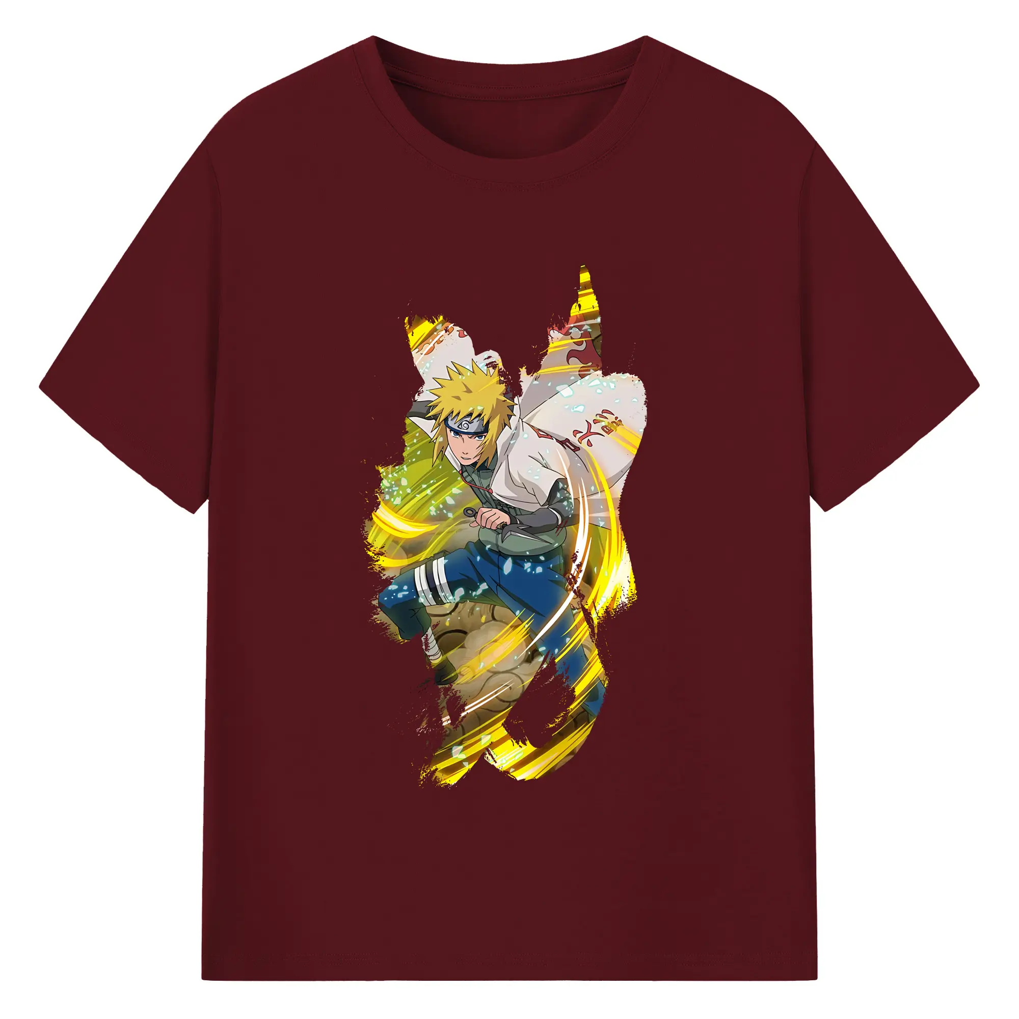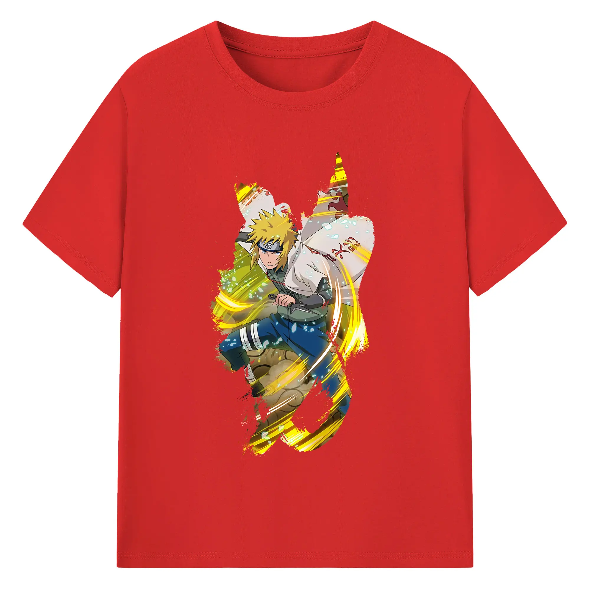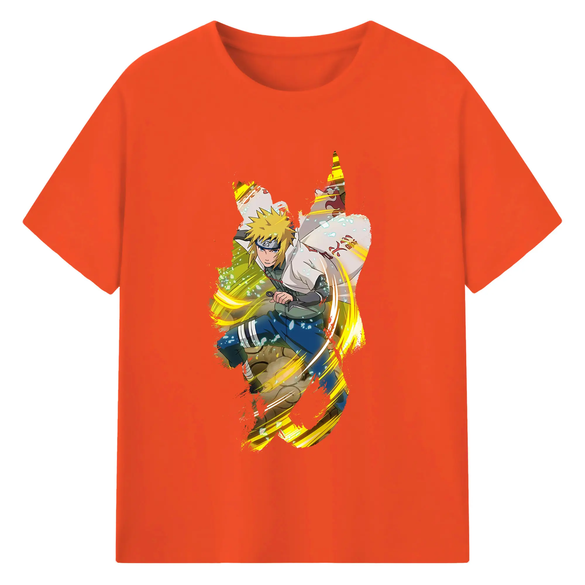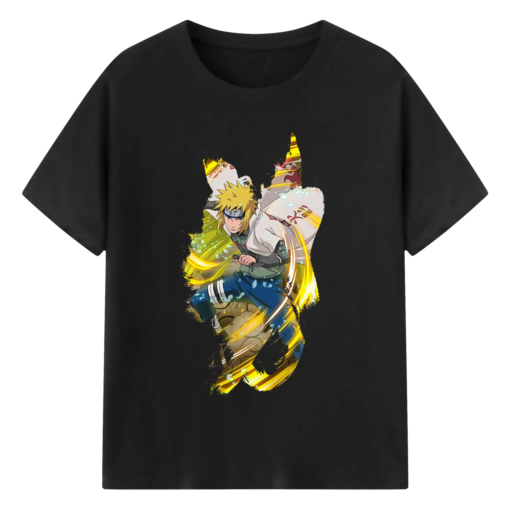 ナルト グッズ 波風 ミナト - 綿100% 半袖Tシャツ ・ バックプリント ・ 快適 通気性 ・ 日常使い 散歩 スポーツ用
