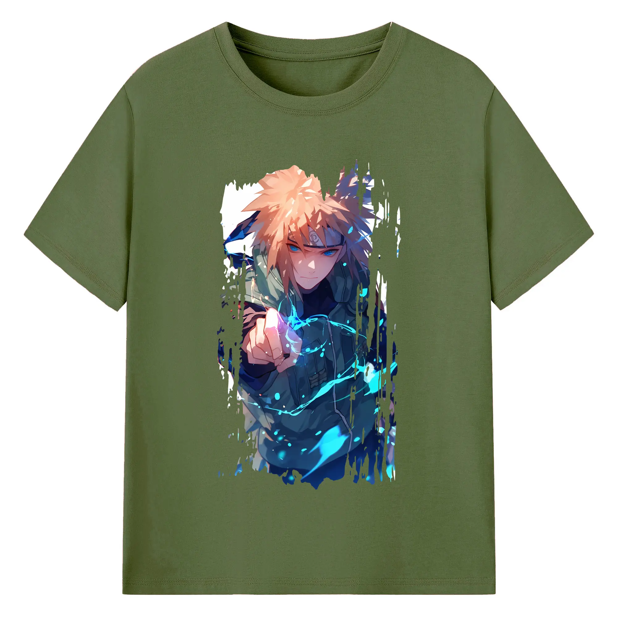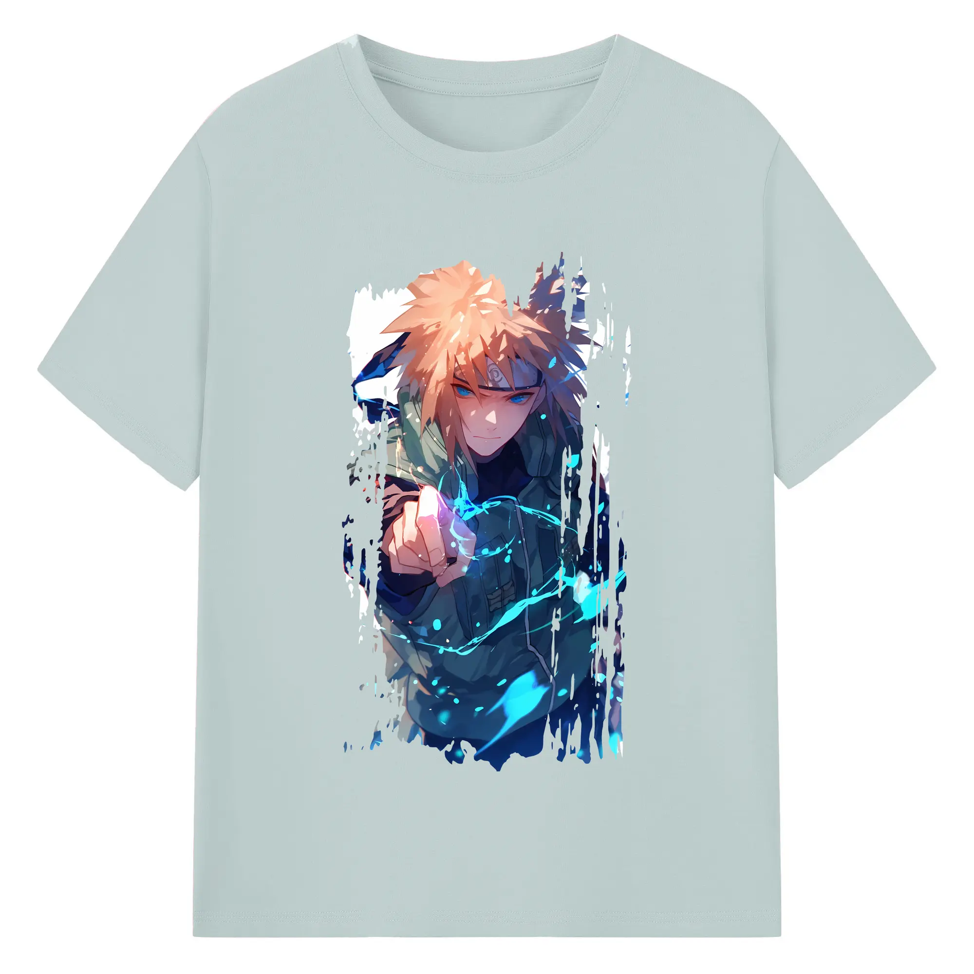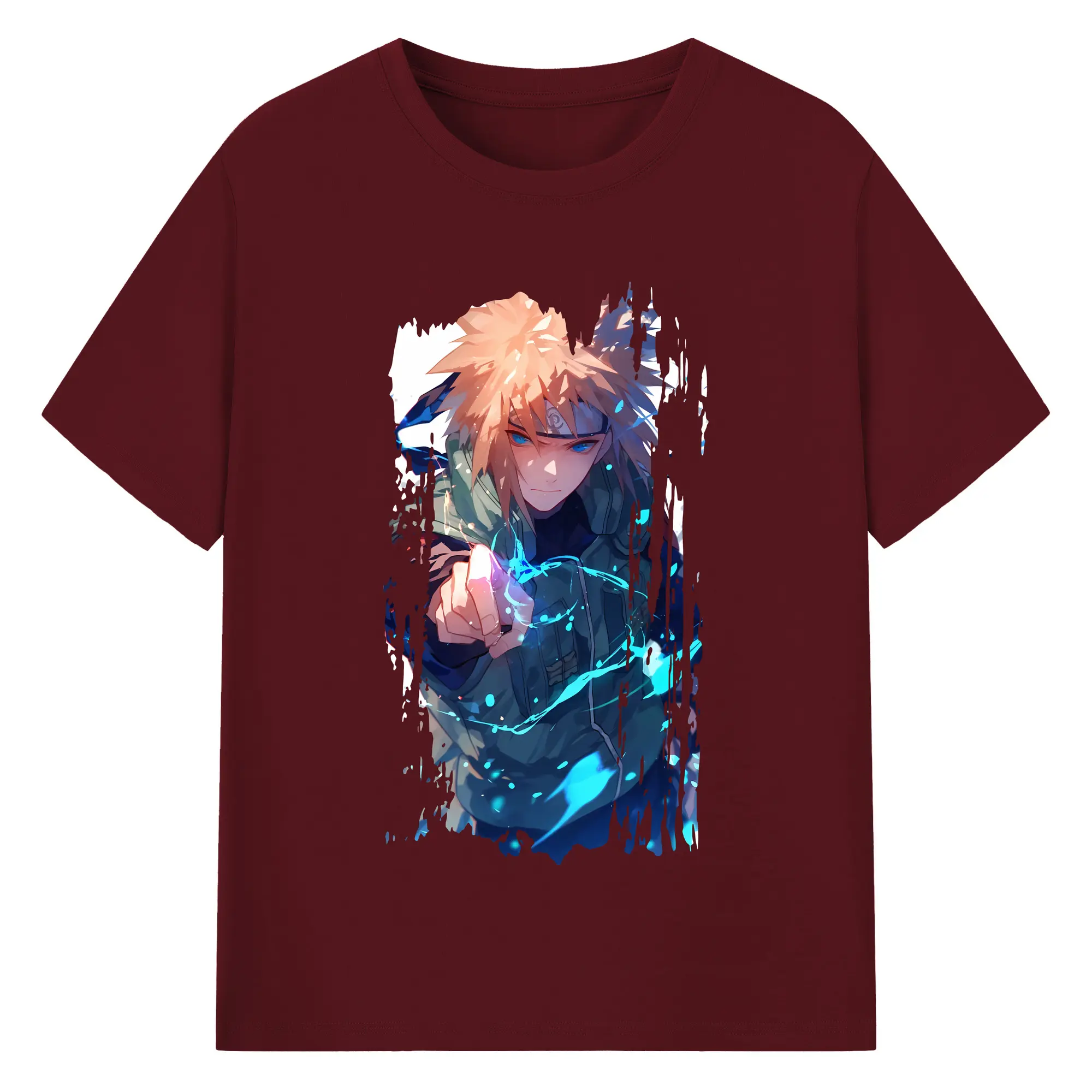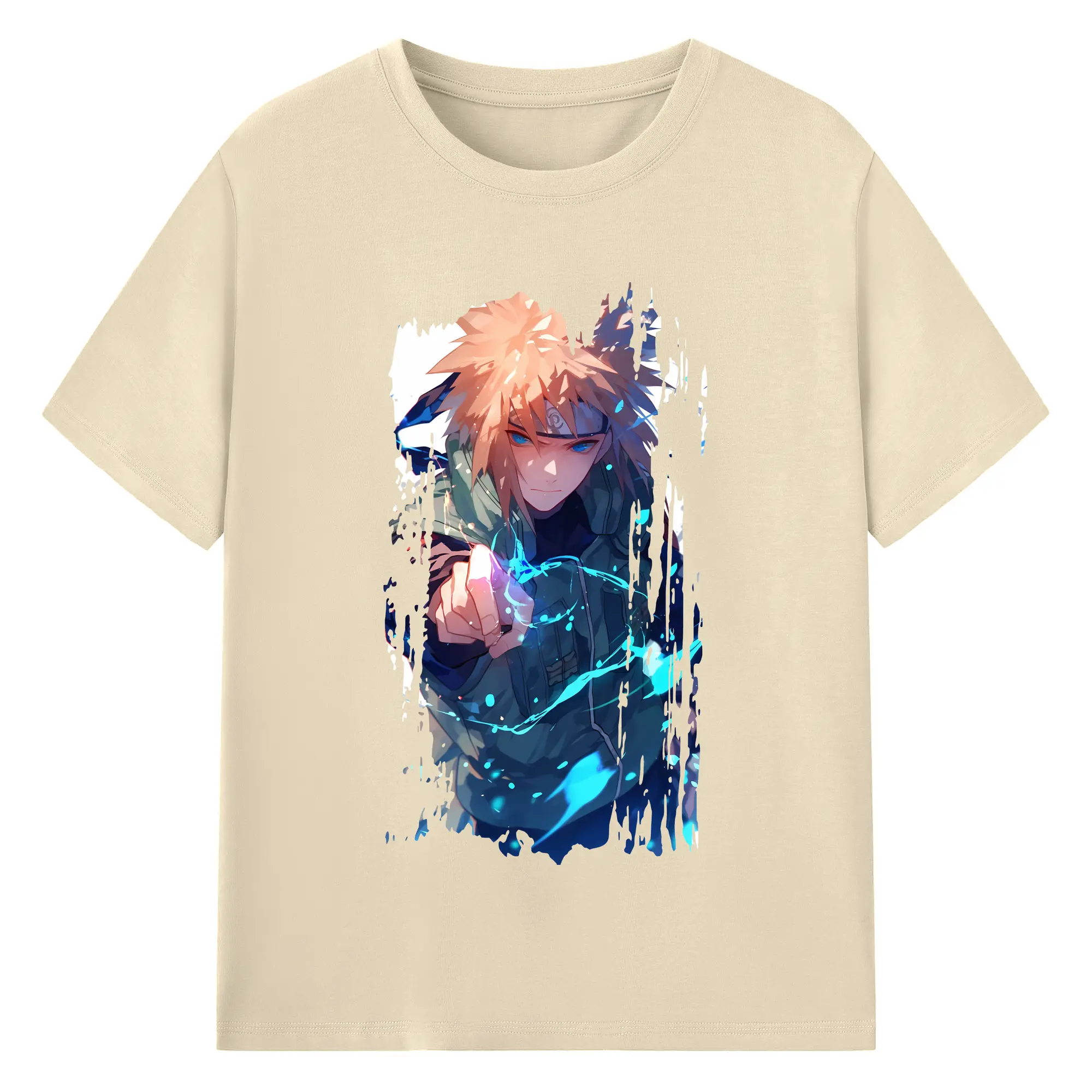 ナルト グッズ 波風 ミナト - 綿100% 半袖Tシャツ ・ バックプリント ・ 快適 通気性 ・ 日常使い 散歩 スポーツ用