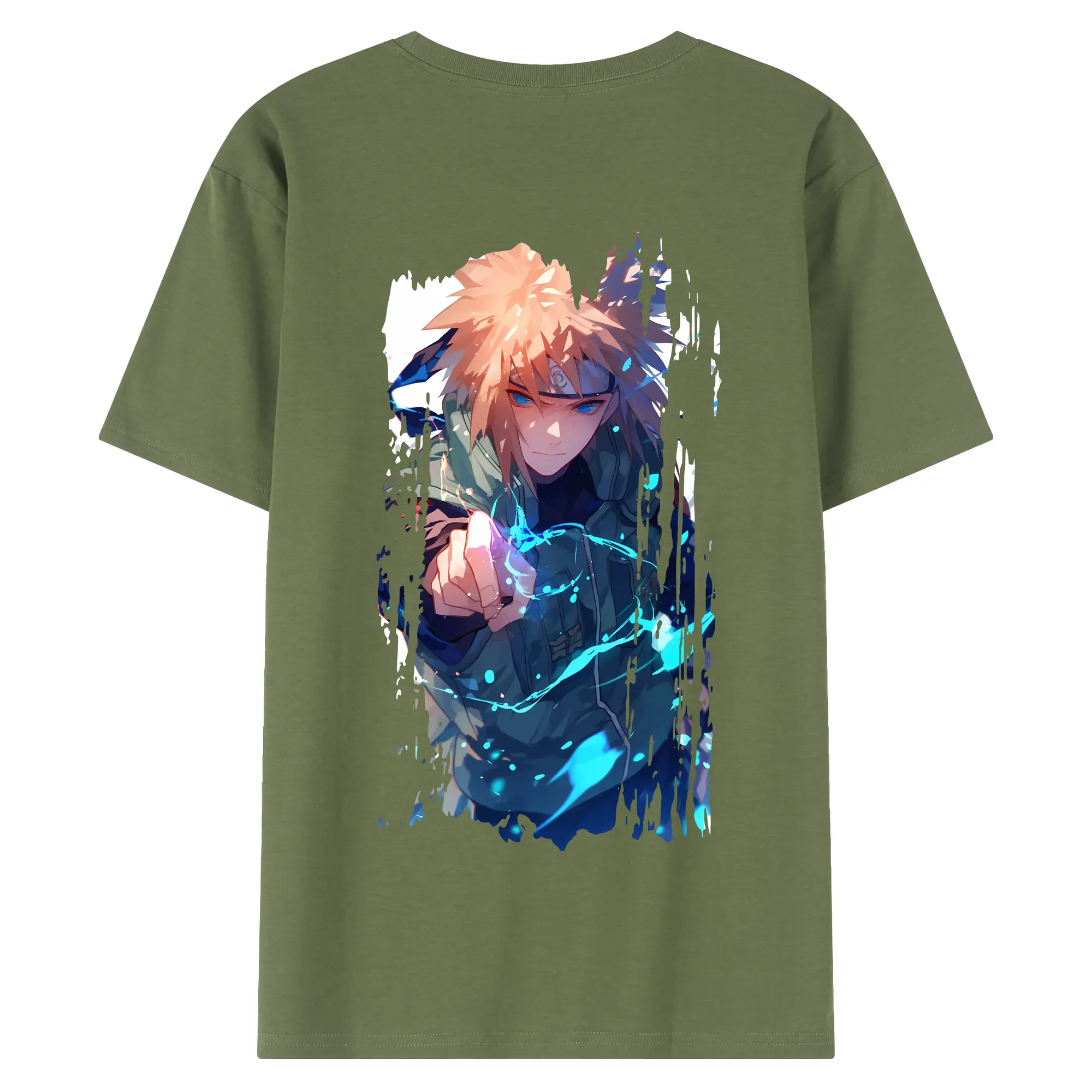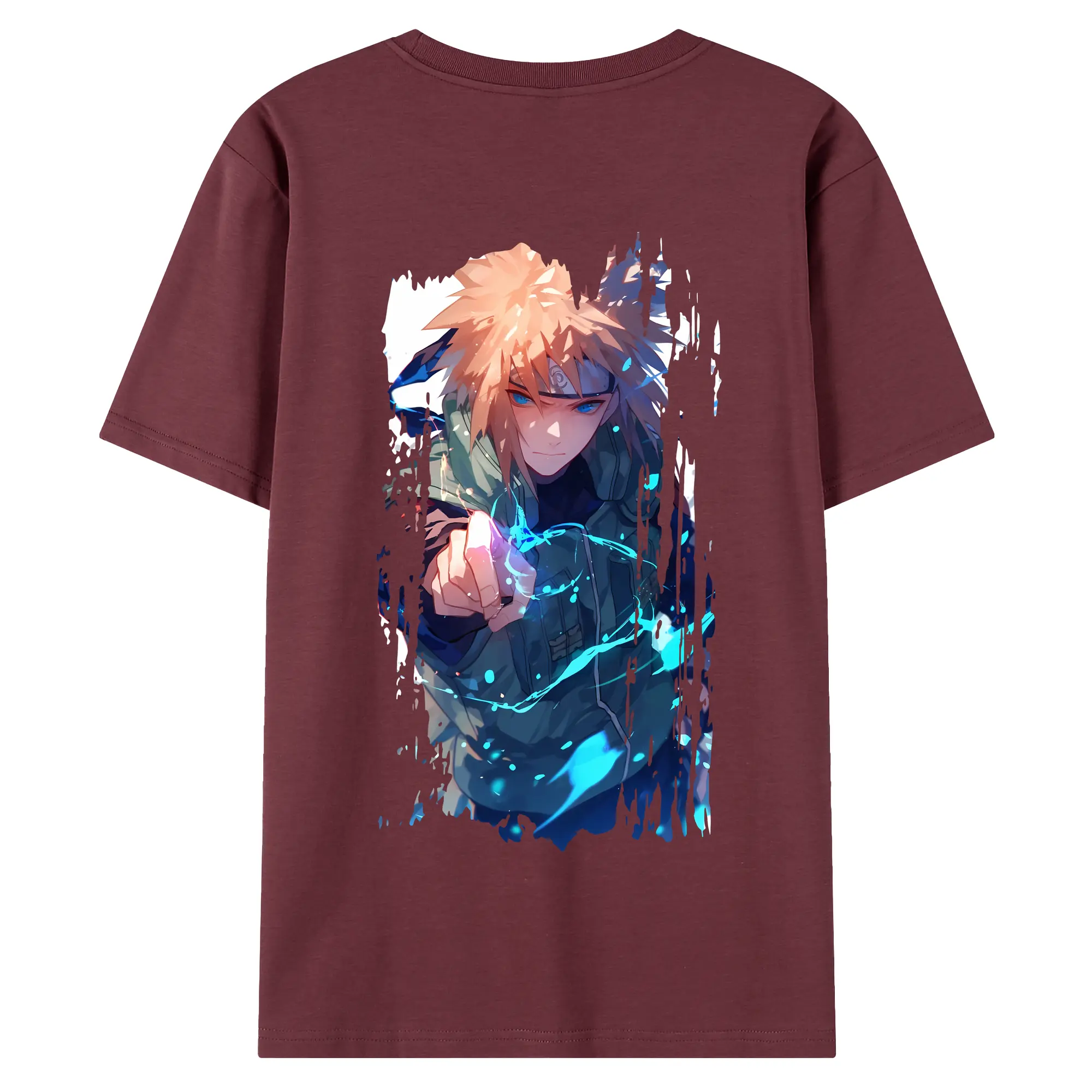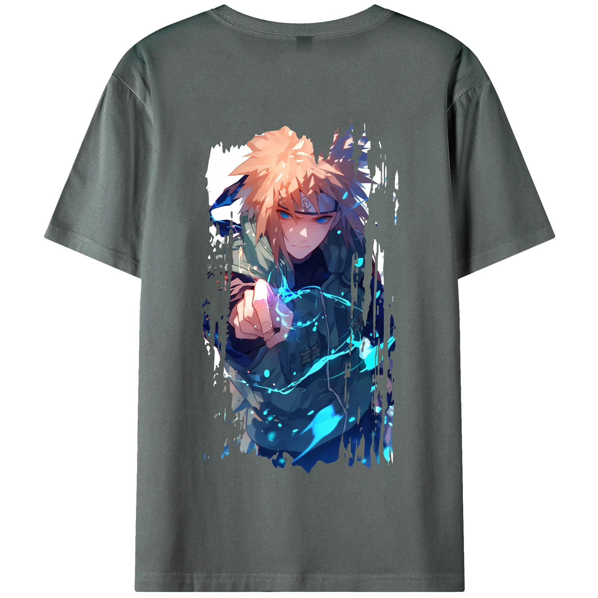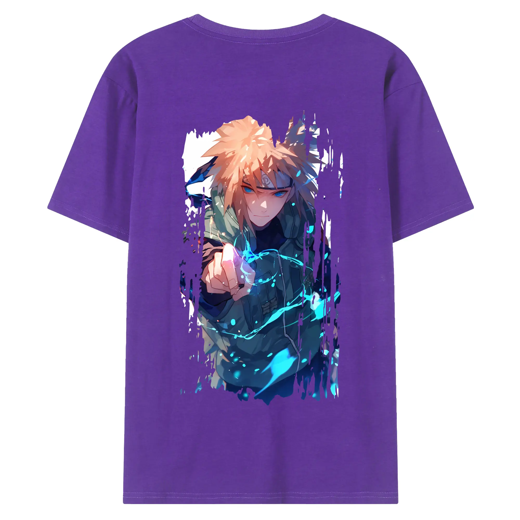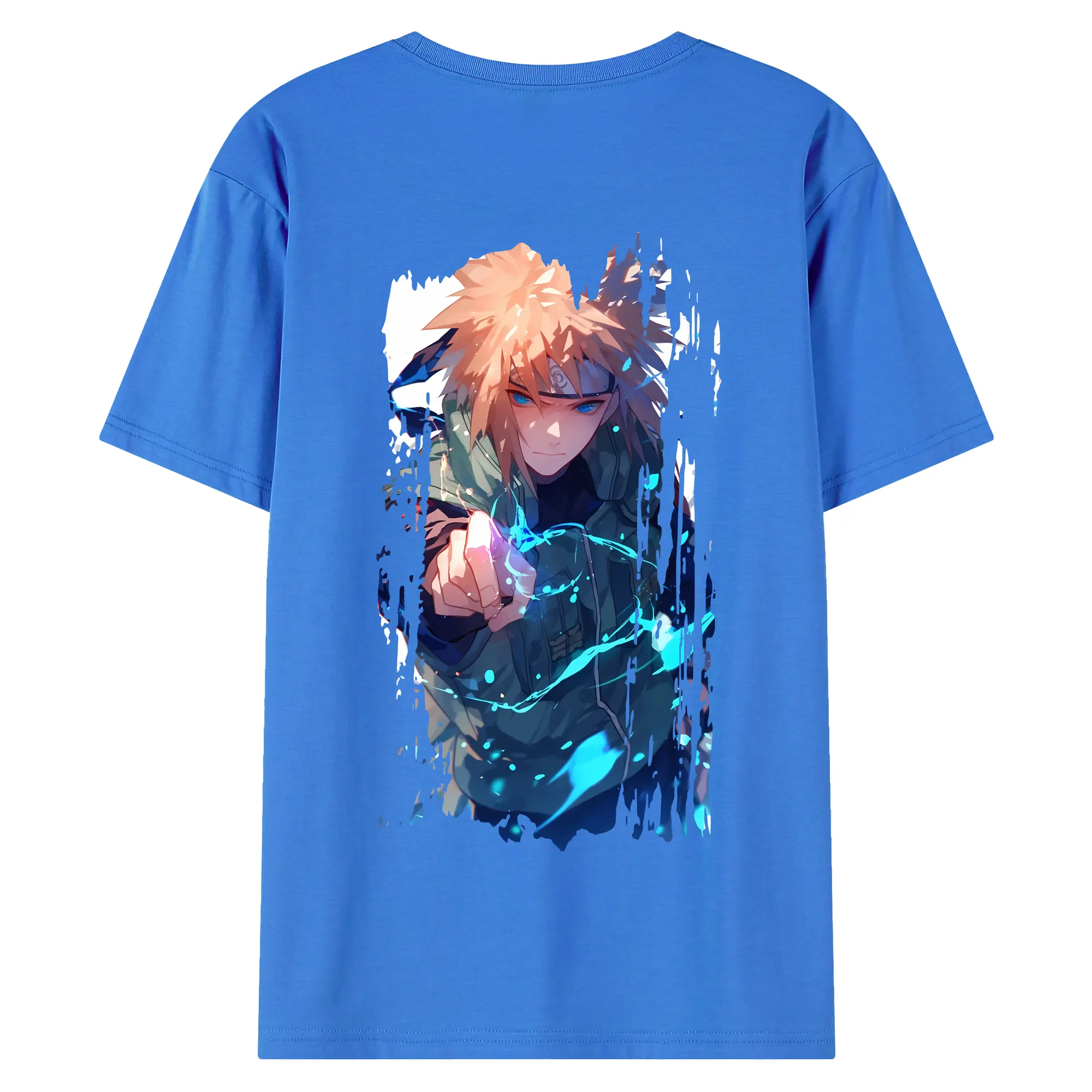 ナルト グッズ 波風 ミナト - 綿100% 半袖Tシャツ ・ フロントプリント ・ 快適 通気性 ・ 日常使い 散歩 スポーツ用
