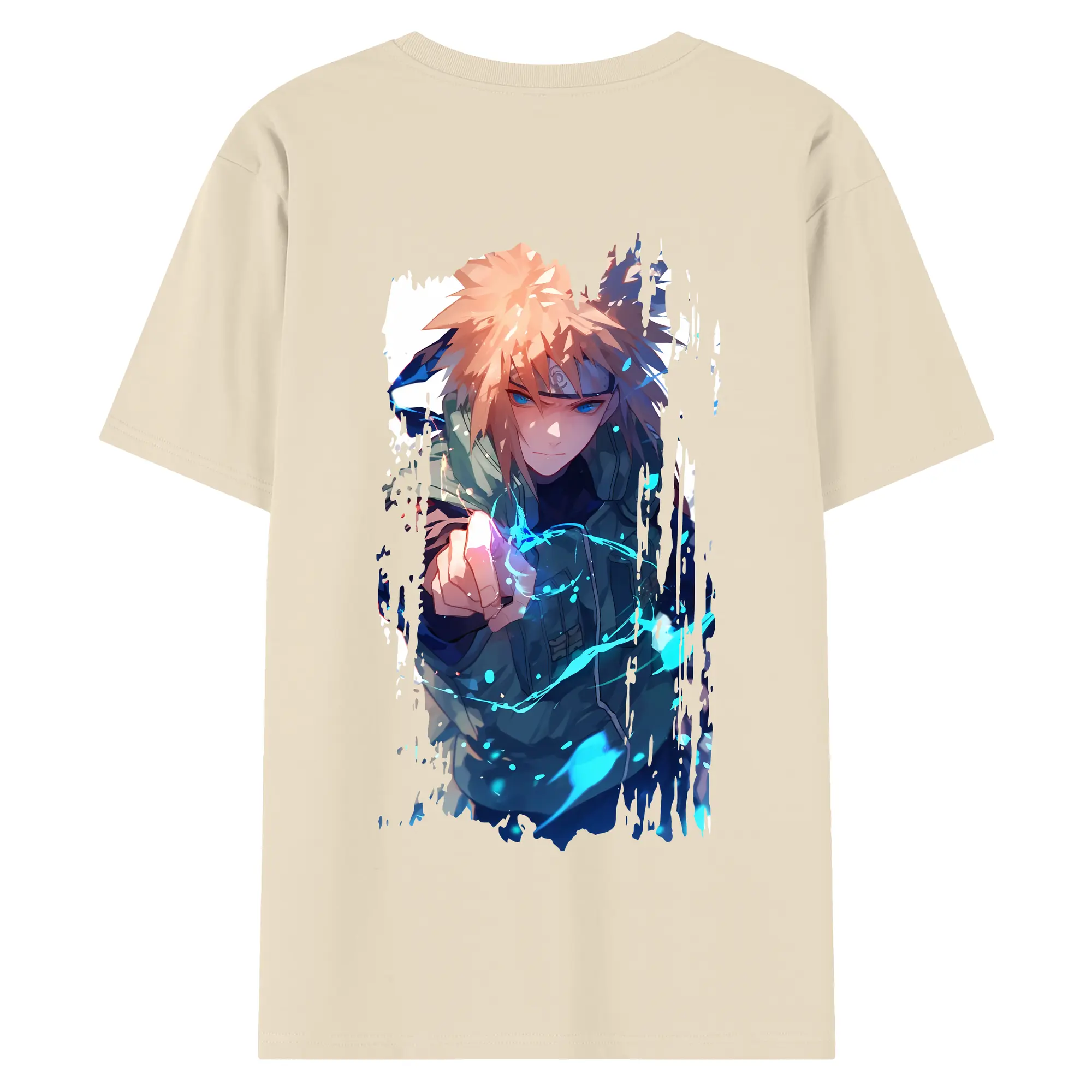 ナルト グッズ 波風 ミナト - 綿100% ヴィンテージ風 半袖Tシャツ ・ 背面プリント ・ 柔らか肌触り ・ 通気性 快適 ・ スポーツ カジュアル 外出用