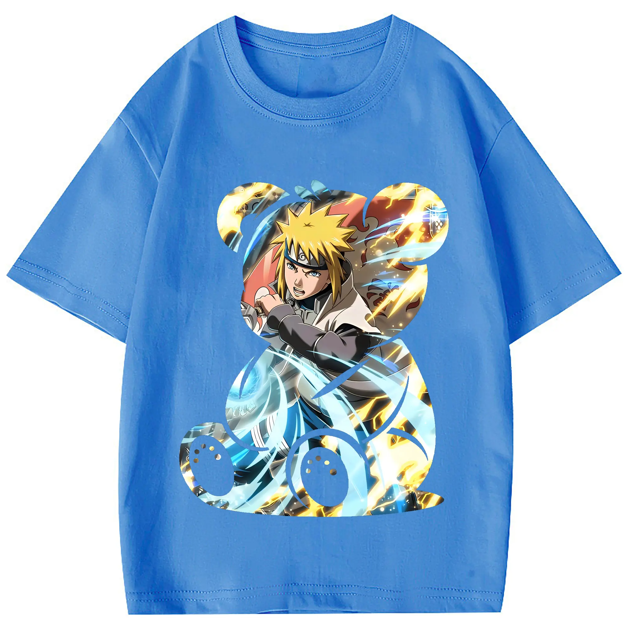 ナルト グッズ 波風 ミナト - 綿100% 半袖Tシャツ ・ フロントプリント ・ 快適 通気性 ・ 日常使い 散歩 スポーツ用