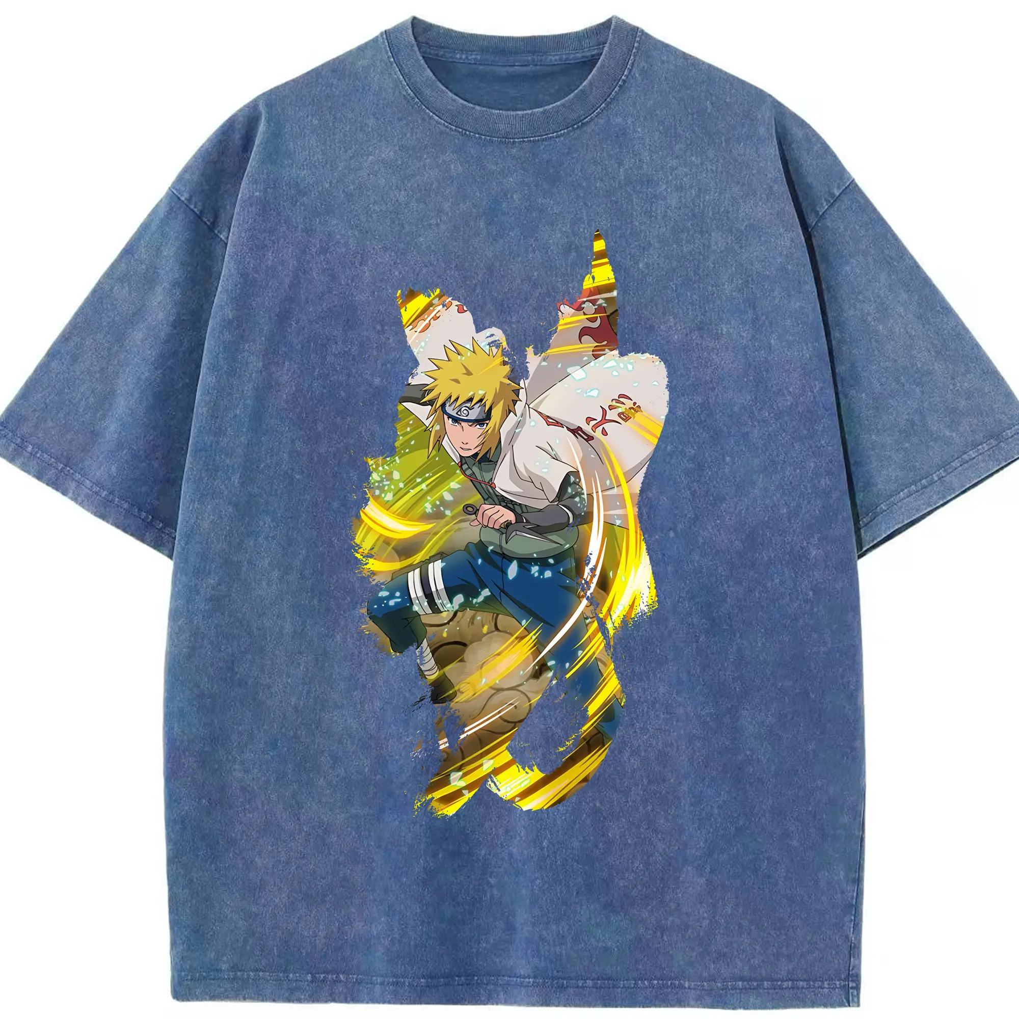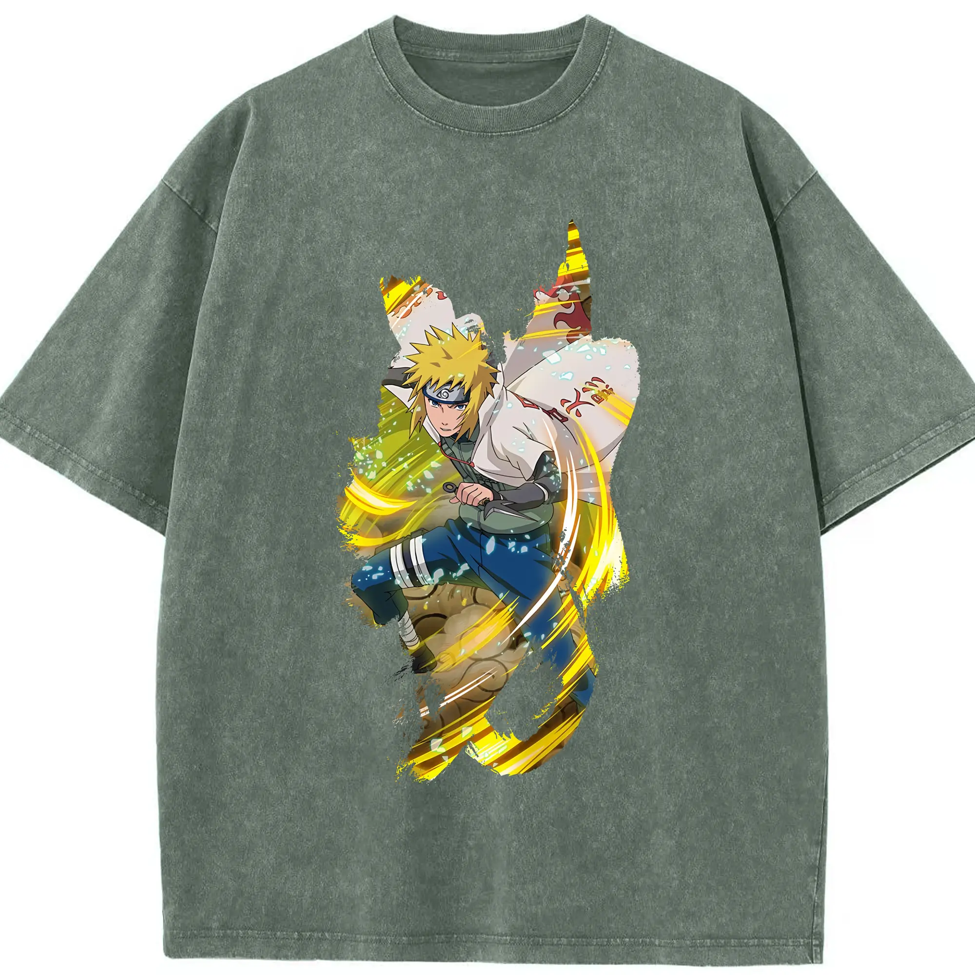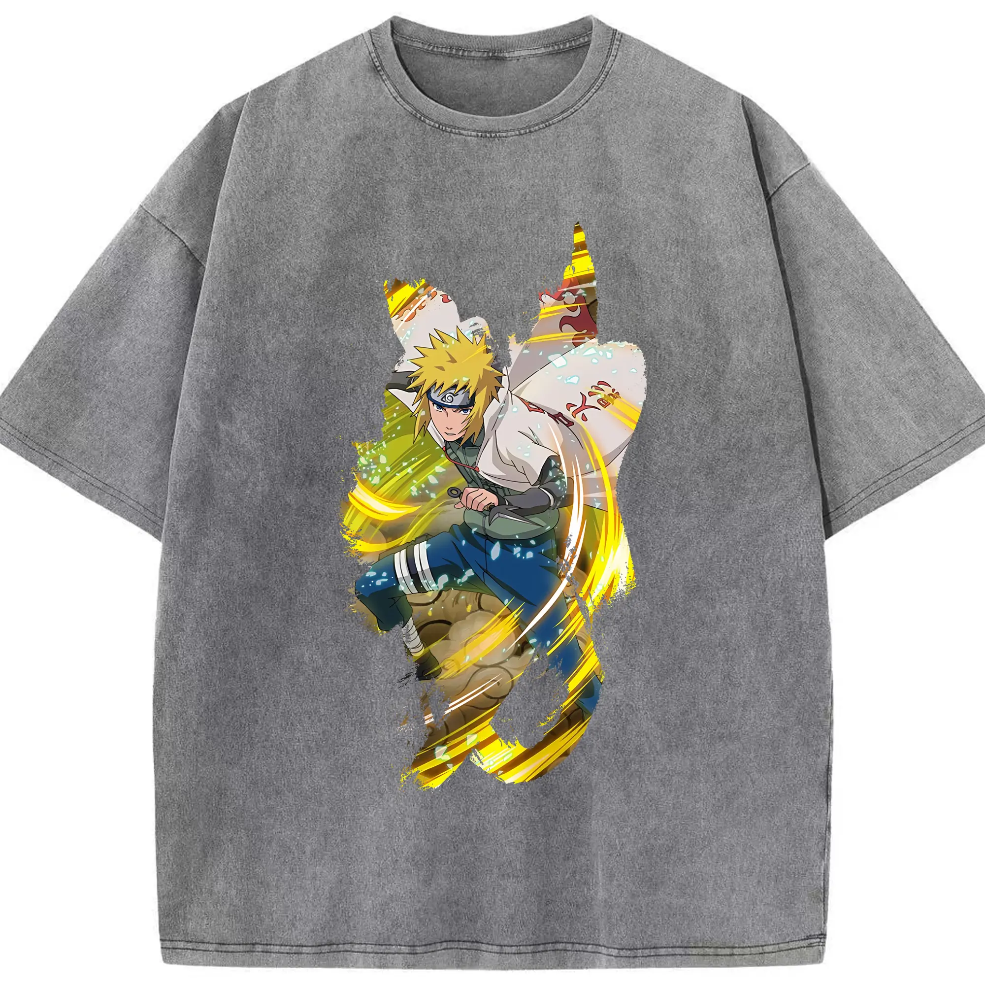 ナルト グッズ 波風 ミナト - 綿100% ヴィンテージ風 半袖Tシャツ ・ 背面プリント ・ 柔らか肌触り ・ 通気性 快適 ・ スポーツ カジュアル 外出用