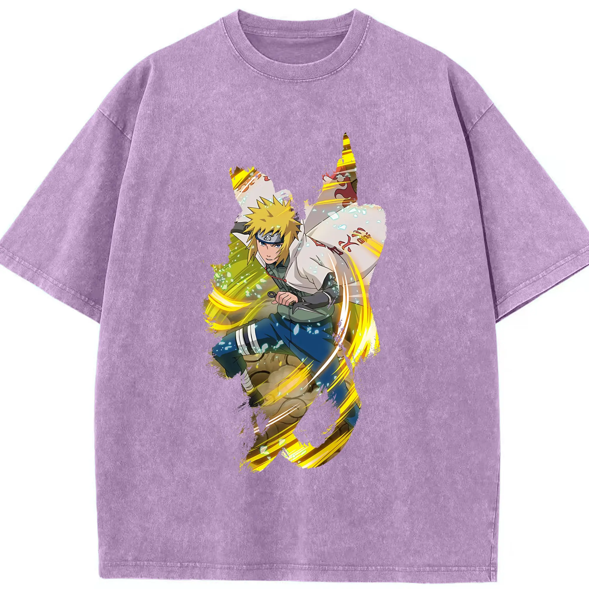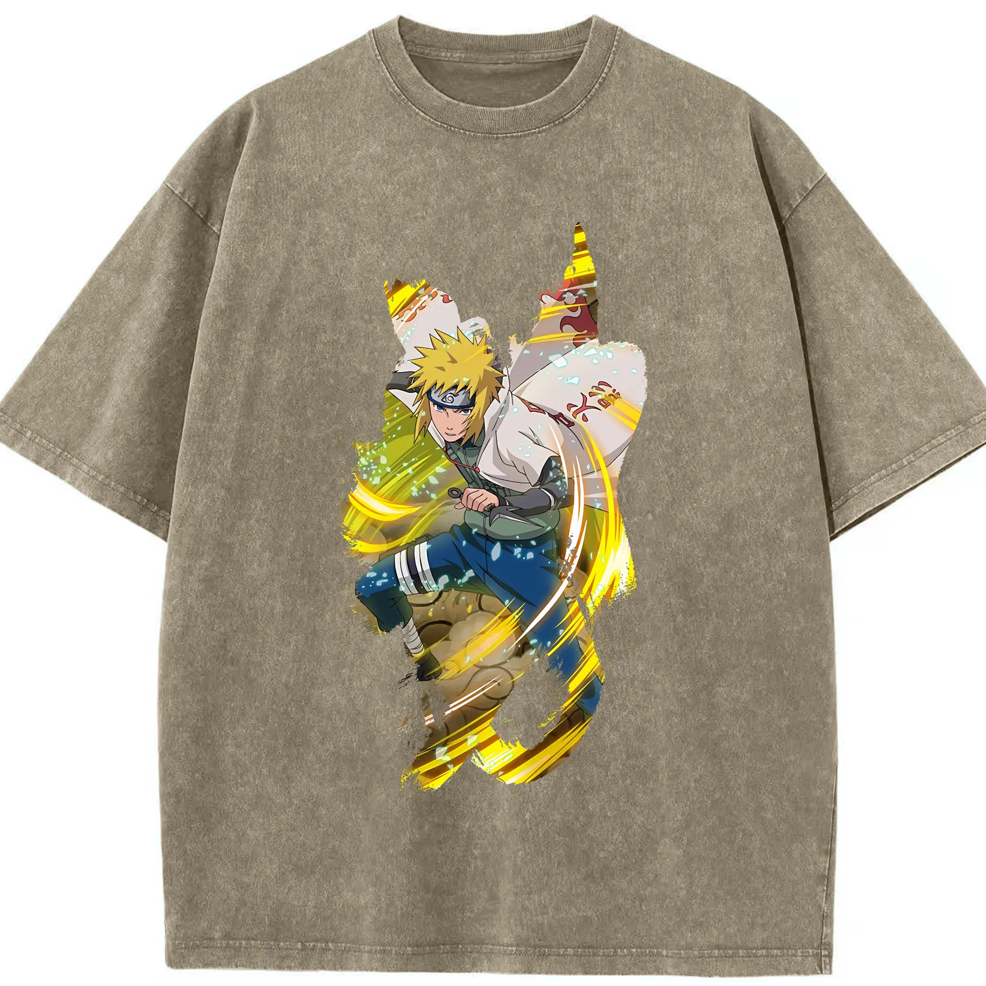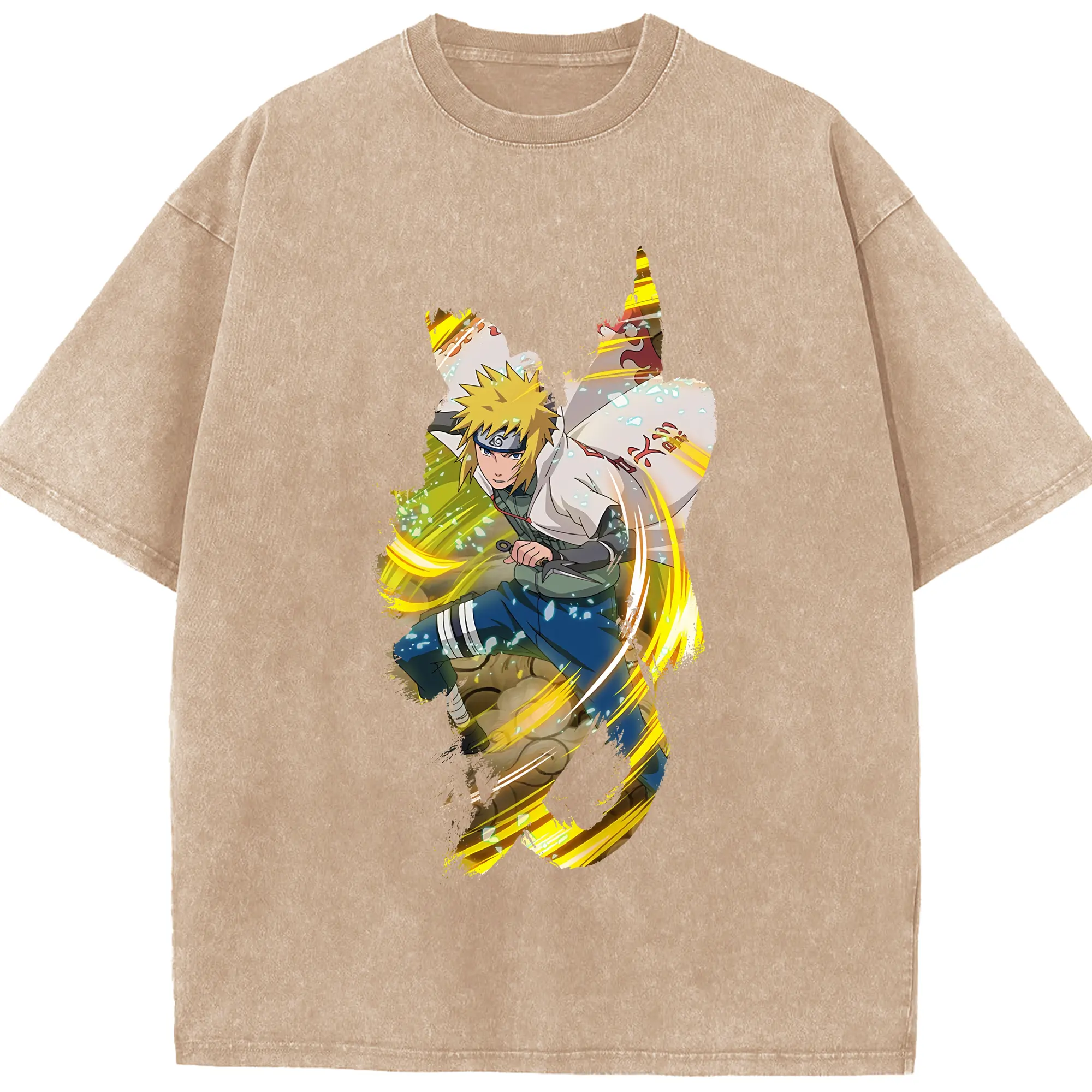 ナルト グッズ 波風 ミナト - 綿100% ヴィンテージ風 半袖Tシャツ ・ 背面プリント ・ 柔らか肌触り ・ 通気性 快適 ・ スポーツ カジュアル 外出用