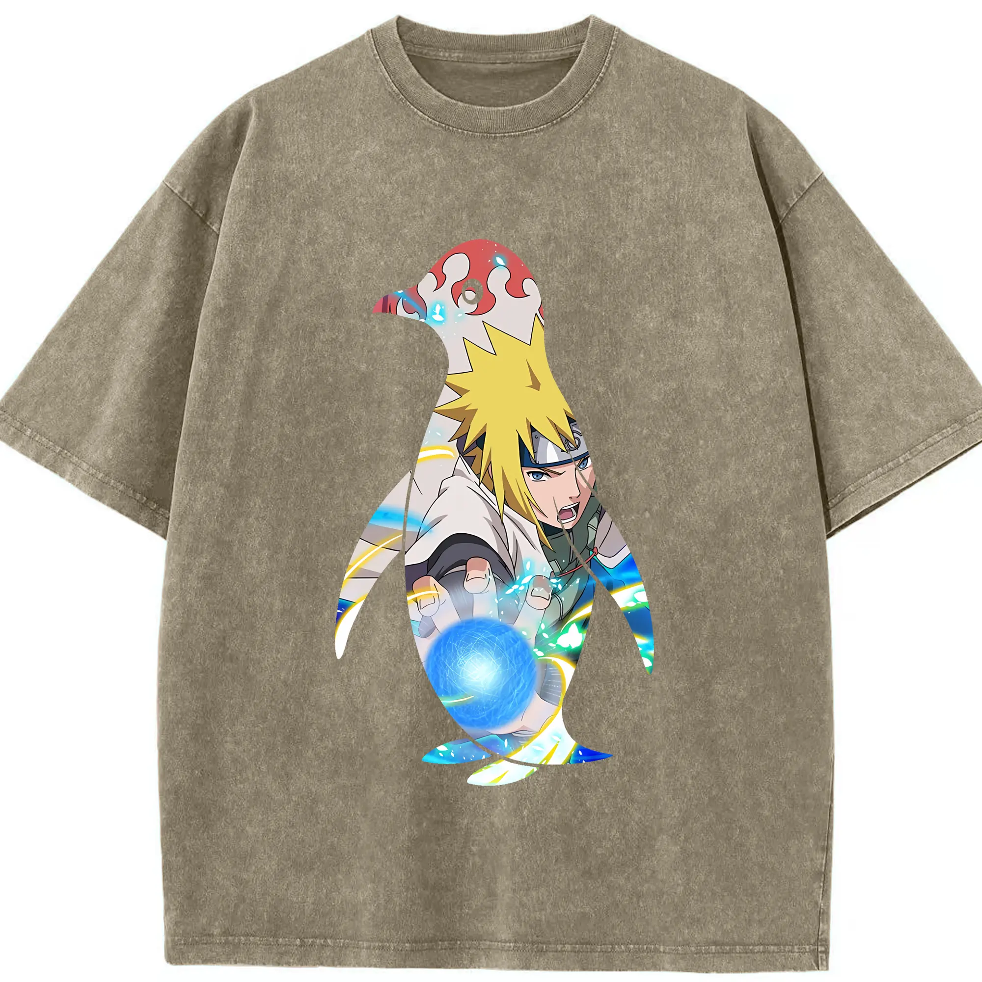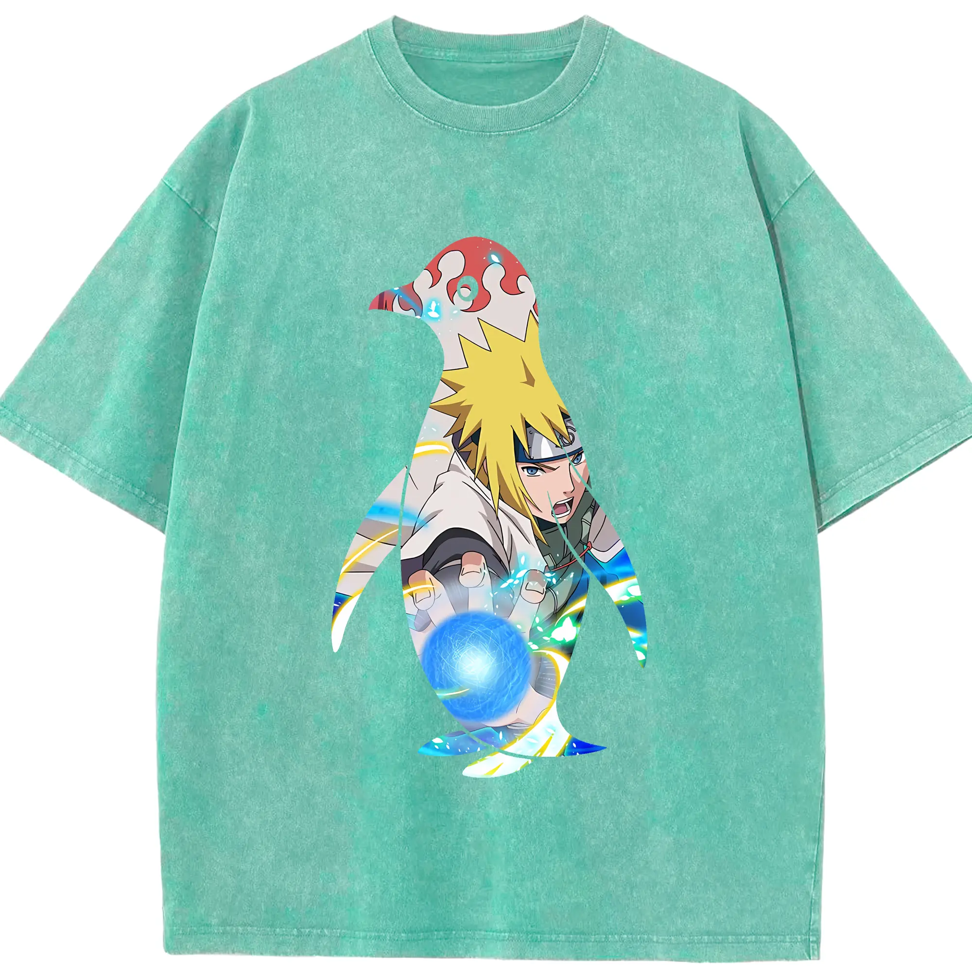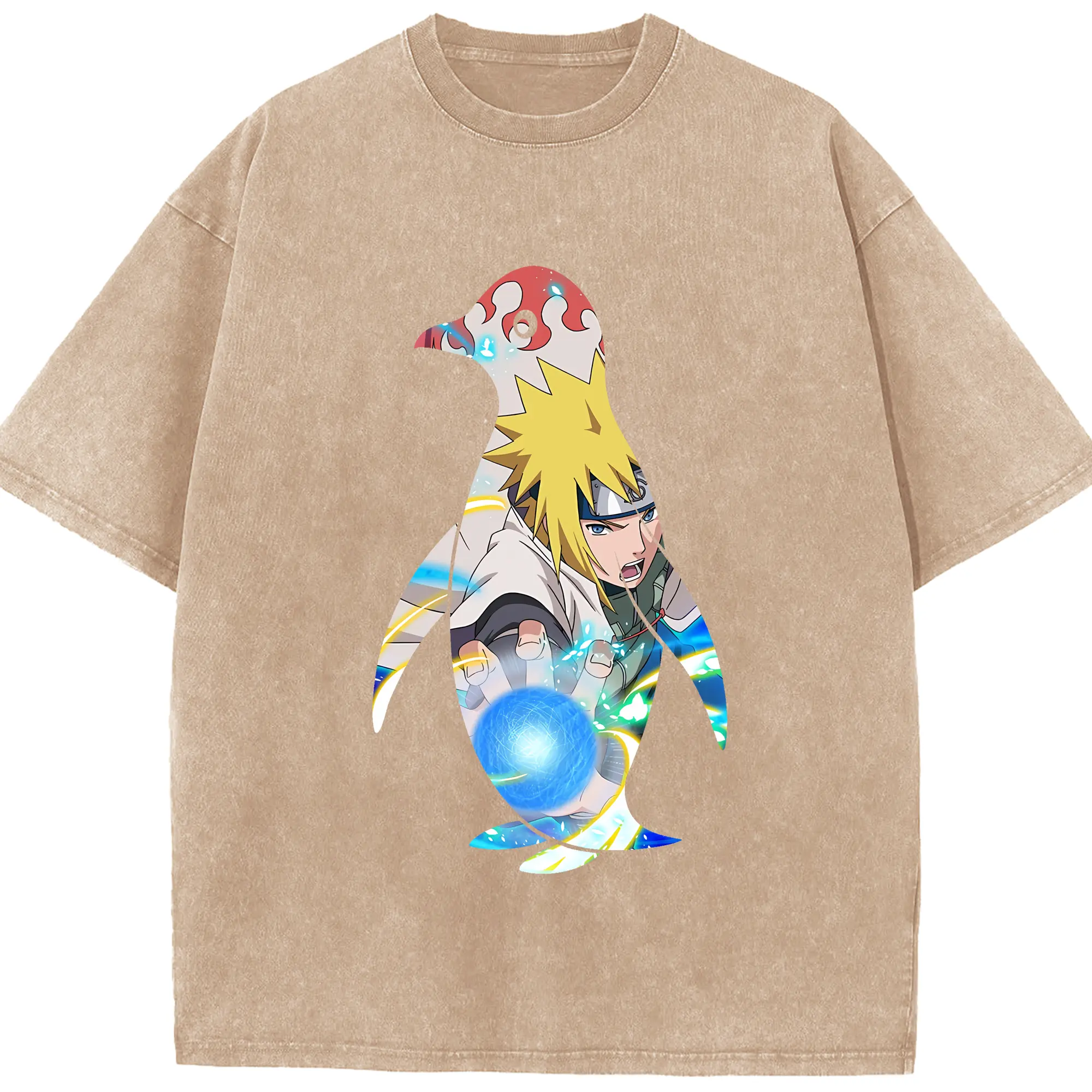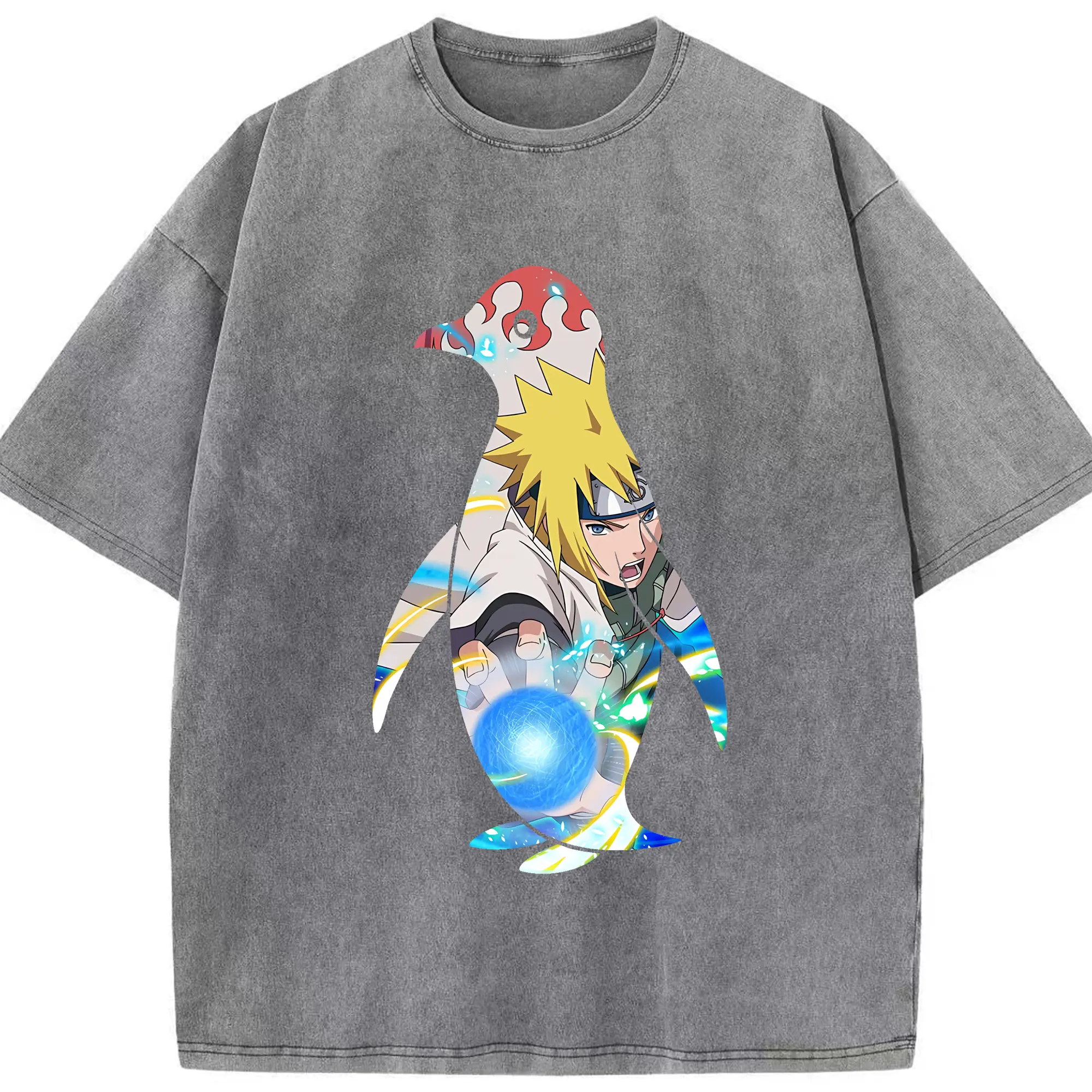 ナルト グッズ 波風 ミナト - 綿100% ヴィンテージ風 半袖Tシャツ ・ 背面プリント ・ 柔らか肌触り ・ 通気性 快適 ・ スポーツ カジュアル 外出用