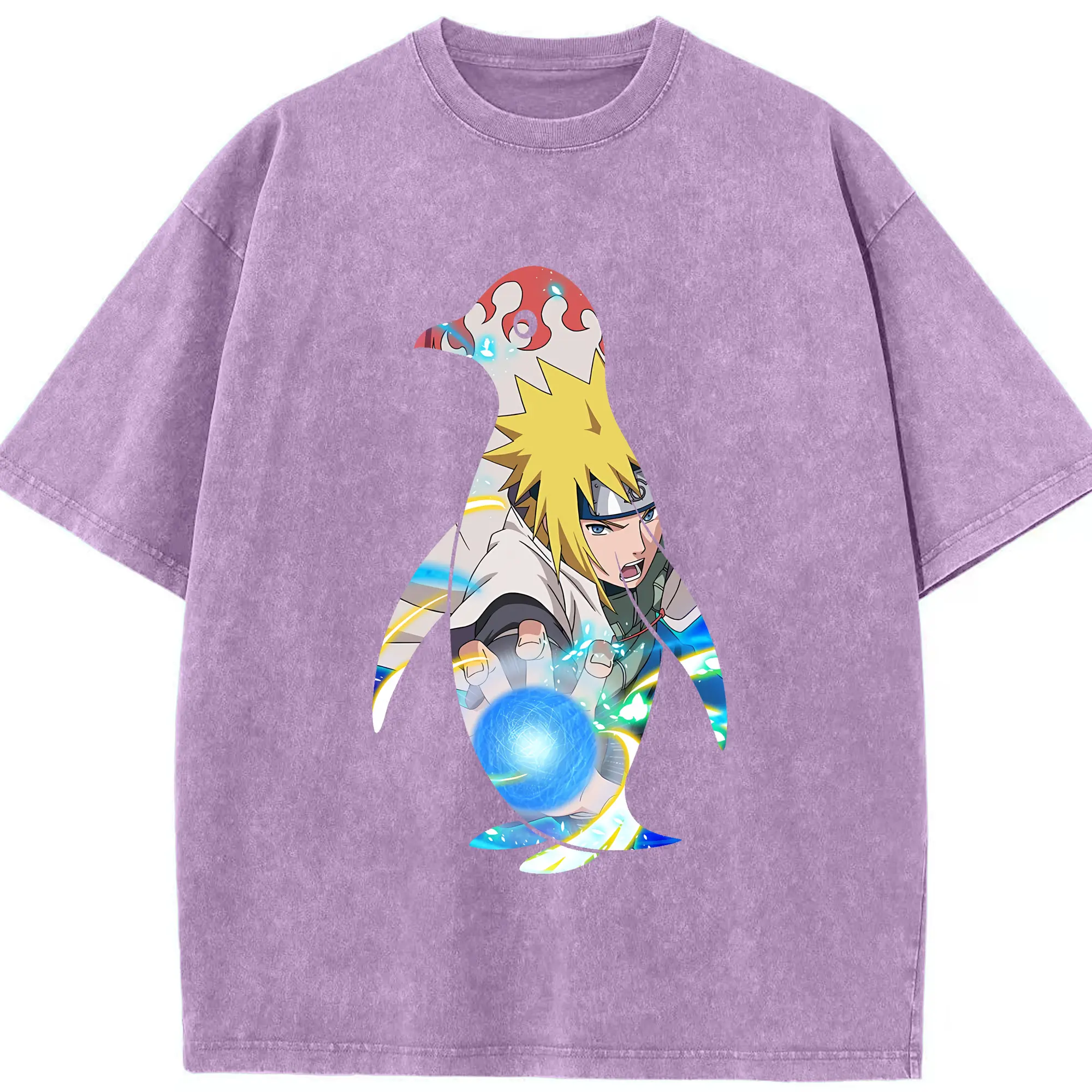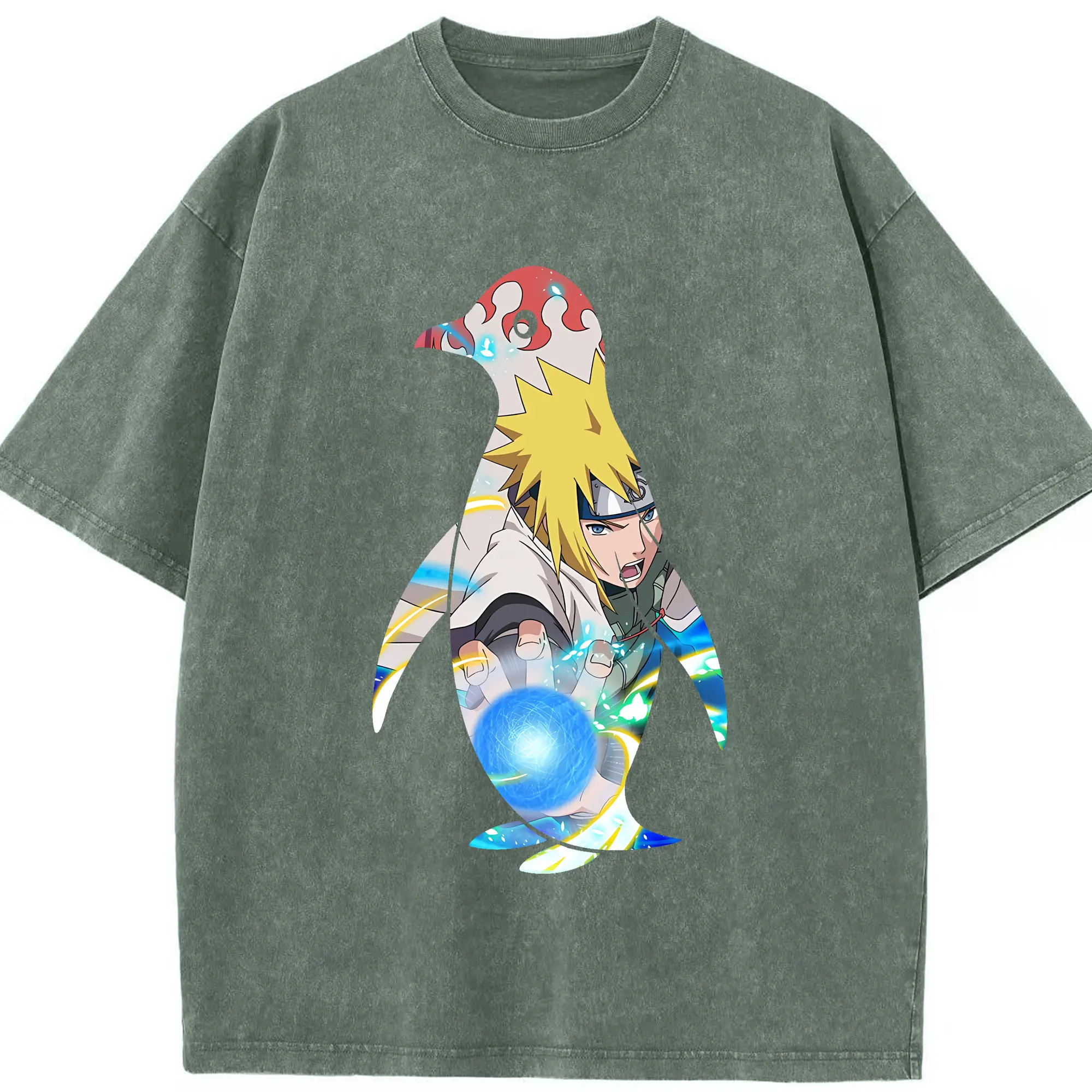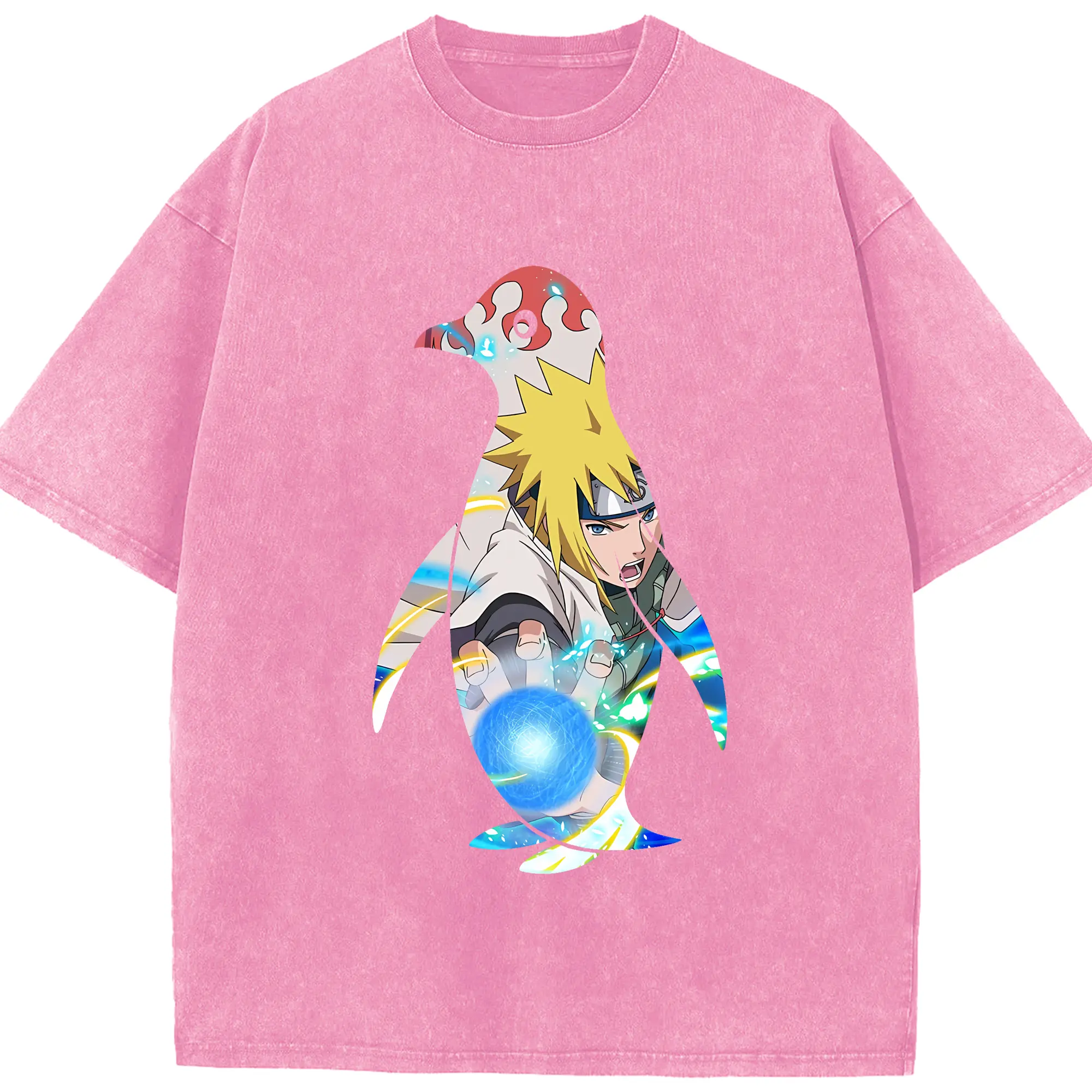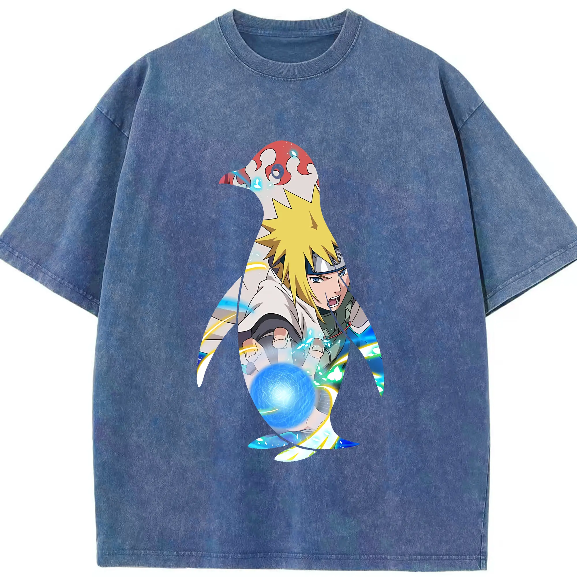 ナルト グッズ 波風 ミナト - 綿100% ヴィンテージ風 半袖Tシャツ ・ 背面プリント ・ 柔らか肌触り ・ 通気性 快適 ・ スポーツ カジュアル 外出用