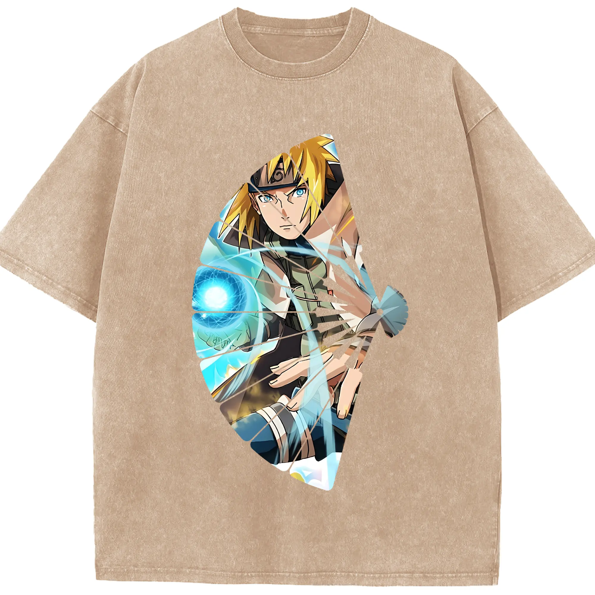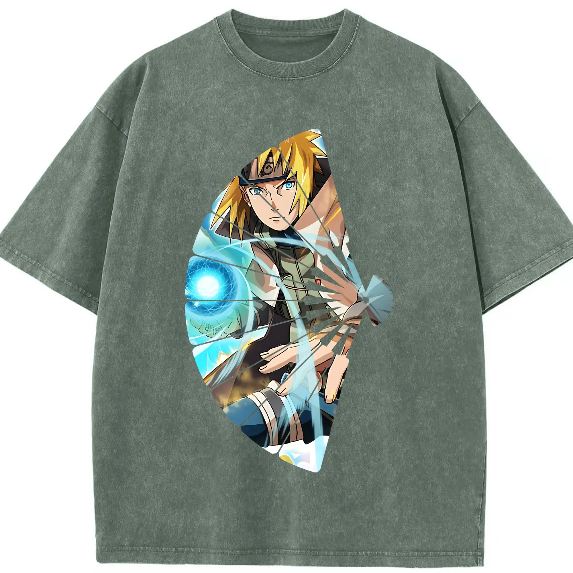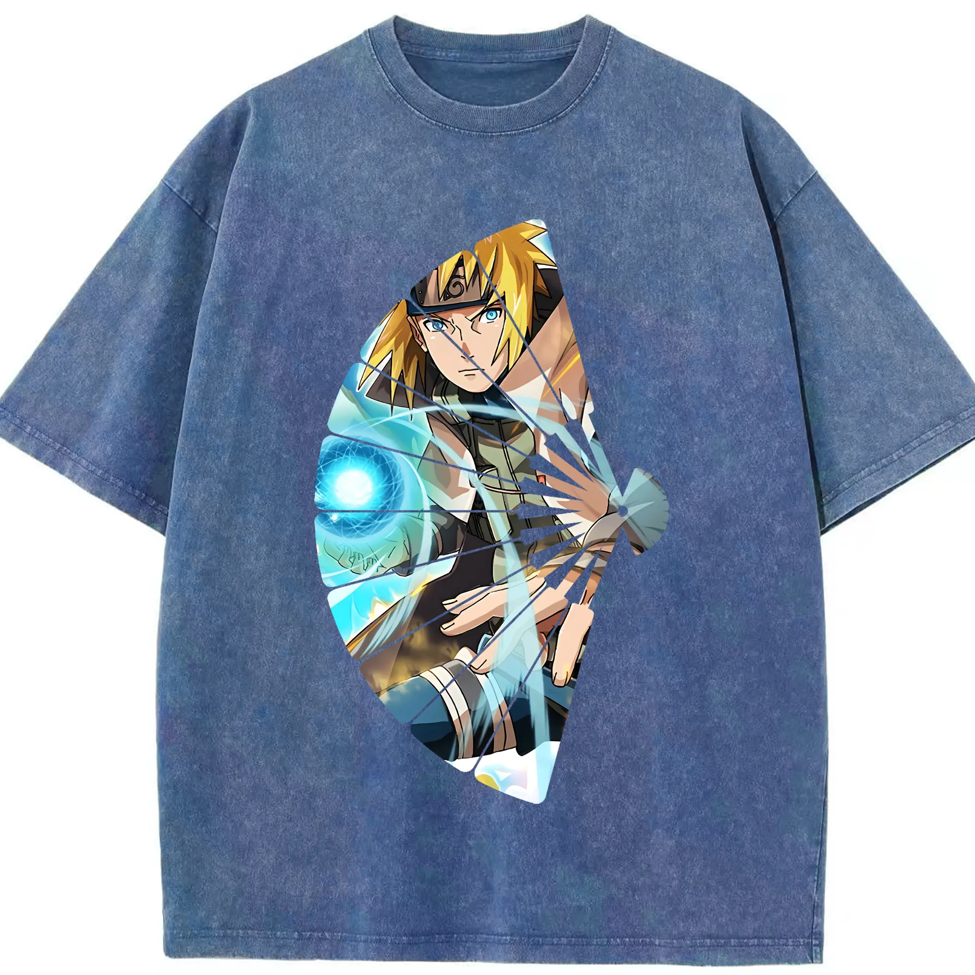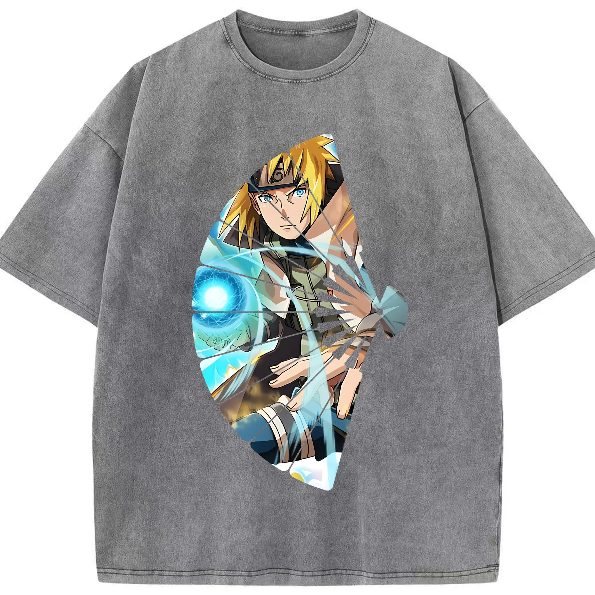 ナルト グッズ 波風 ミナト - 綿100% ヴィンテージ風 半袖Tシャツ ・ 背面プリント ・ 柔らか肌触り ・ 通気性 快適 ・ スポーツ カジュアル 外出用