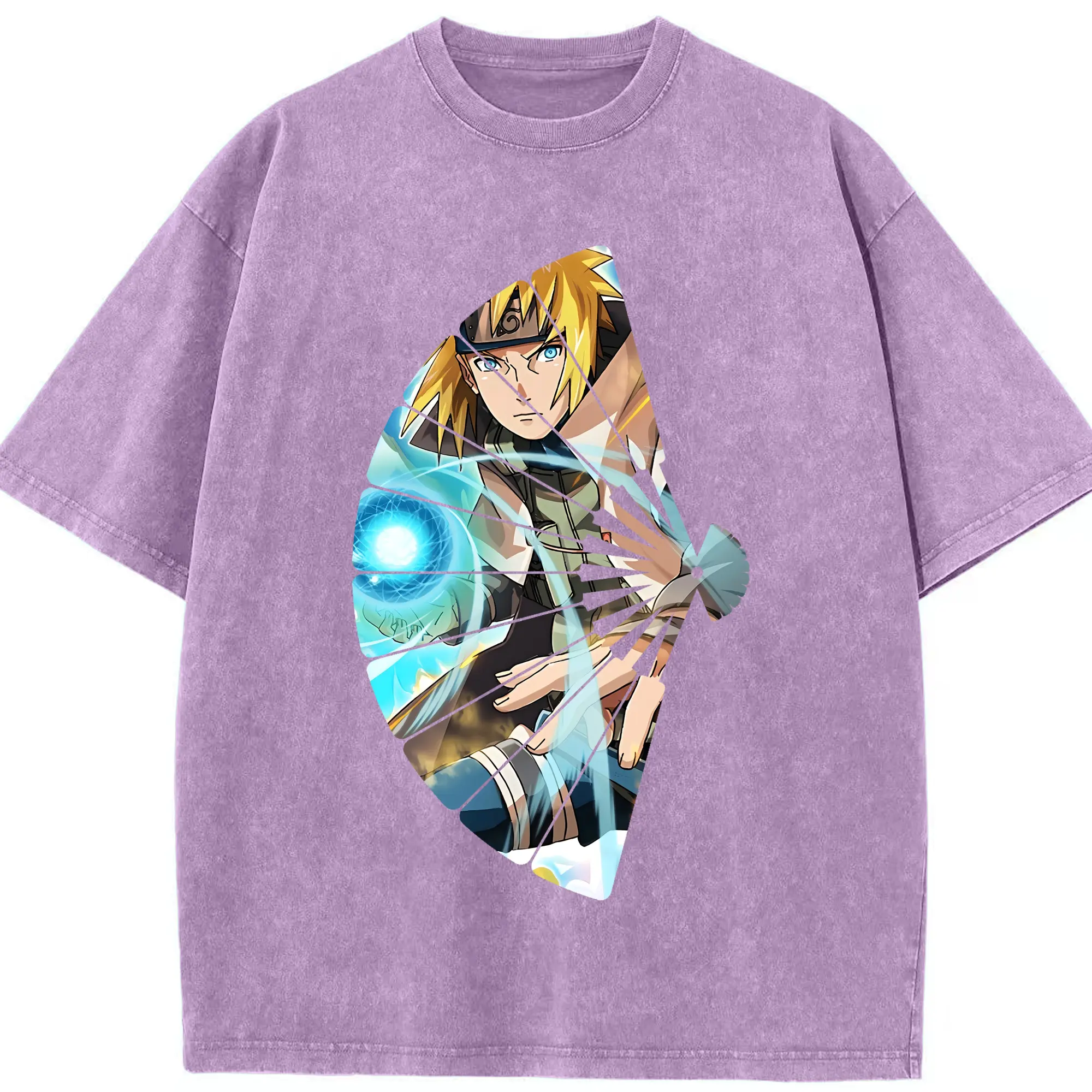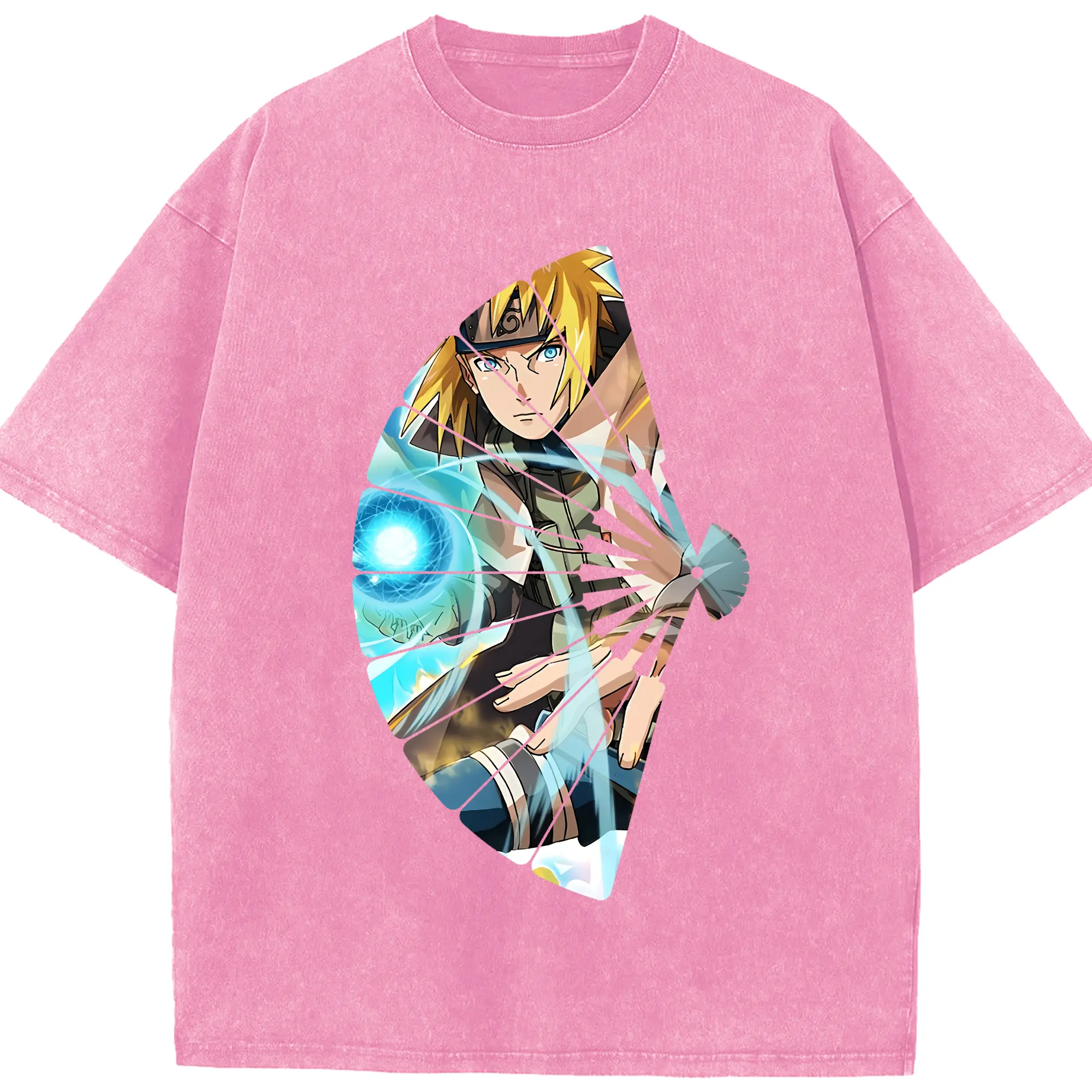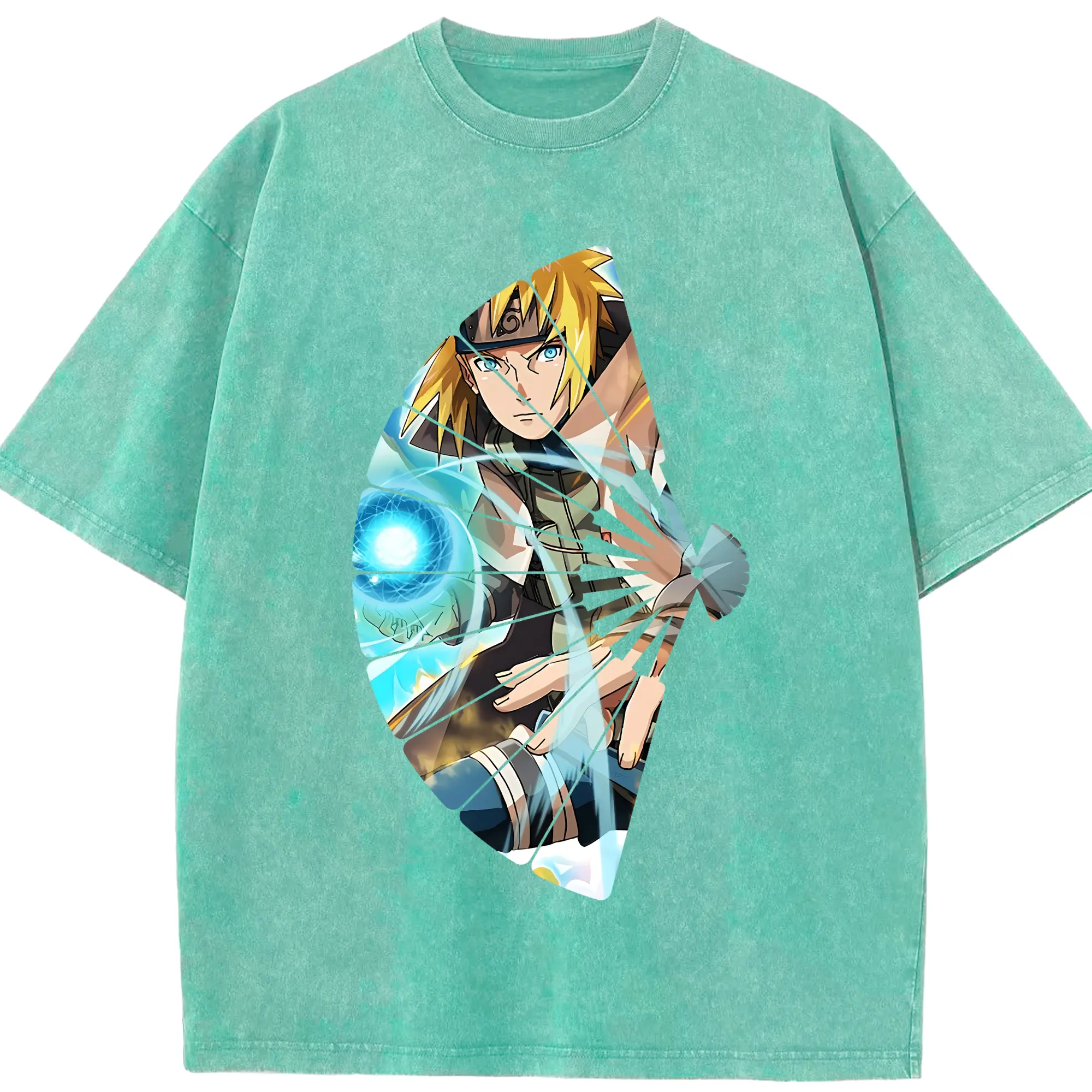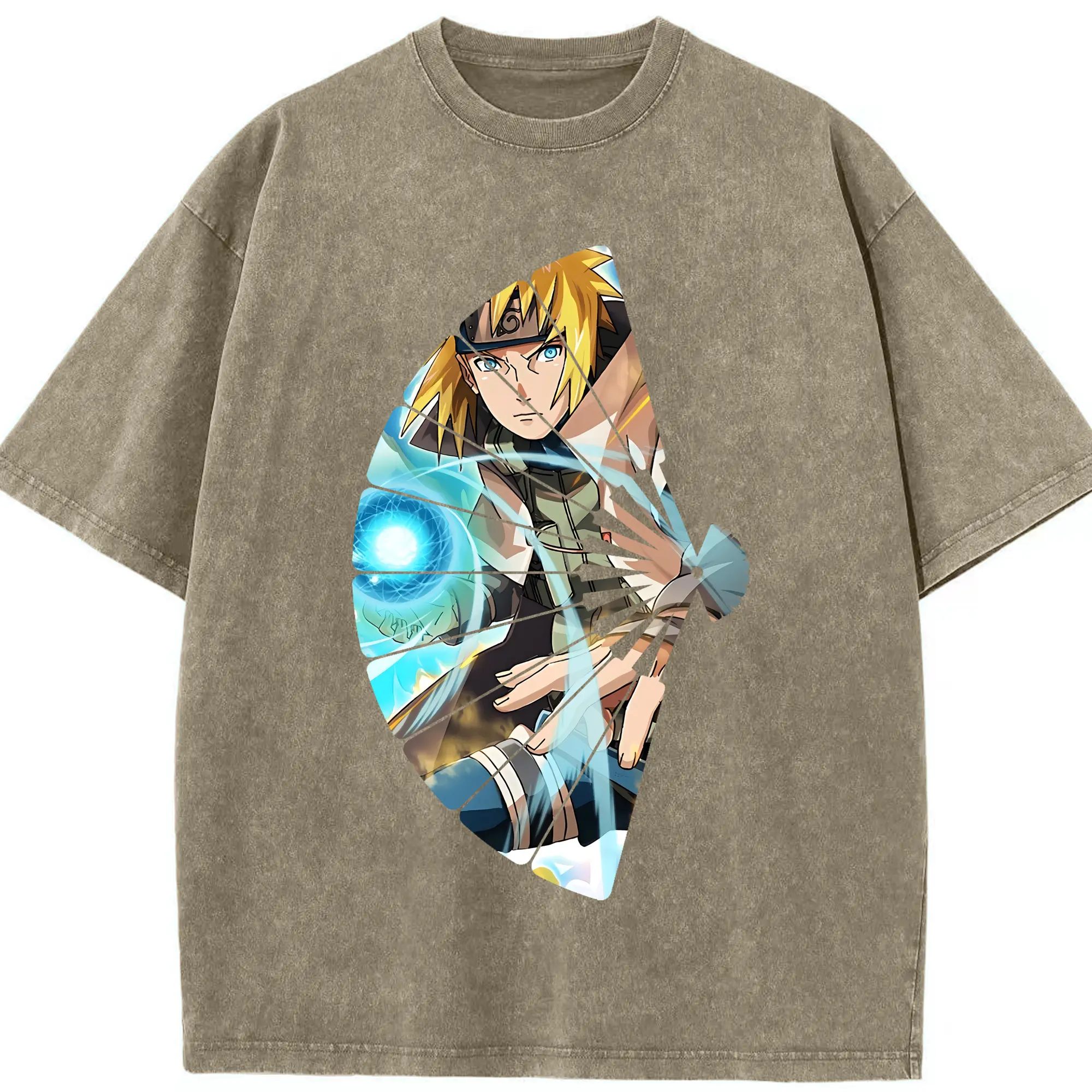 ナルト グッズ 波風 ミナト - 綿100% ヴィンテージ風 半袖Tシャツ ・ 背面プリント ・ 柔らか肌触り ・ 通気性 快適 ・ スポーツ カジュアル 外出用