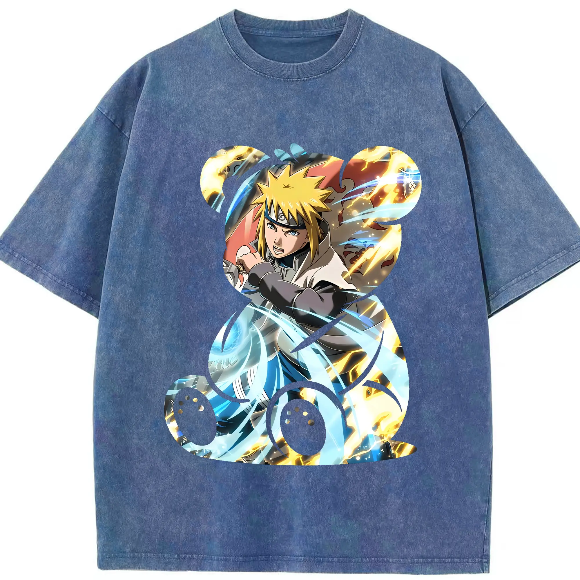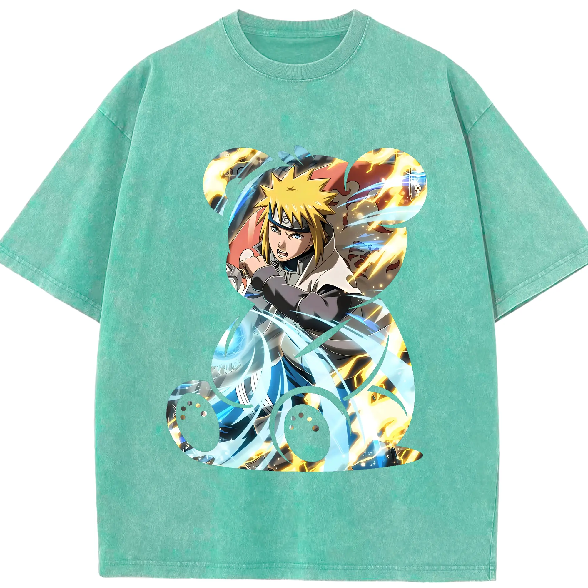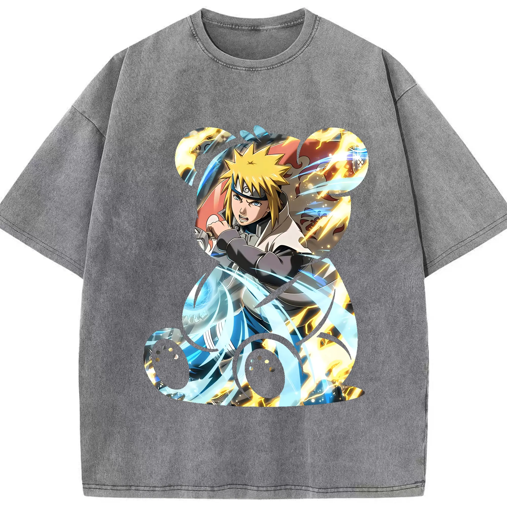ナルト グッズ 波風 ミナト - 綿100% ヴィンテージ風 半袖Tシャツ ・ 背面プリント ・ 柔らか肌触り ・ 通気性 快適 ・ スポーツ カジュアル 外出用