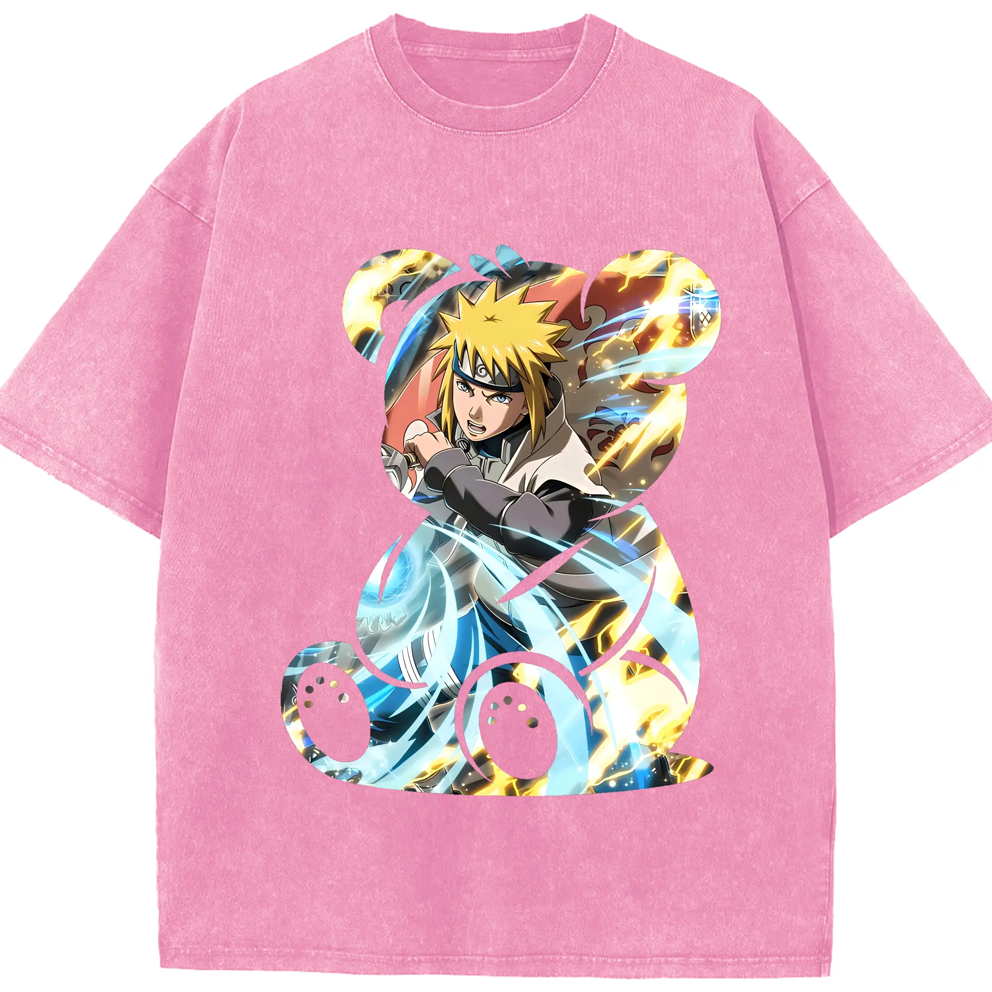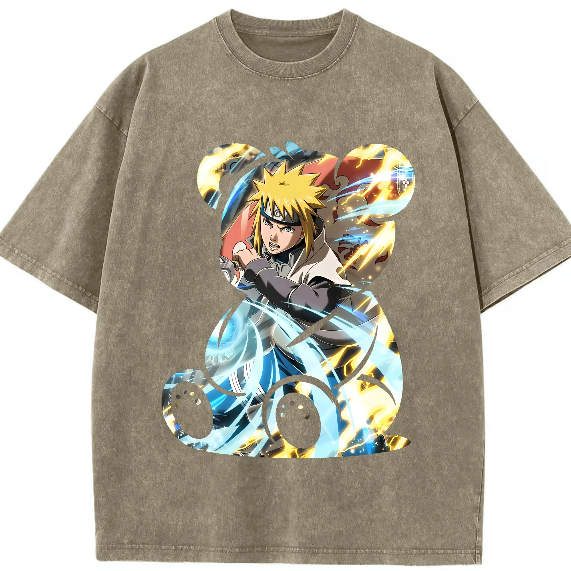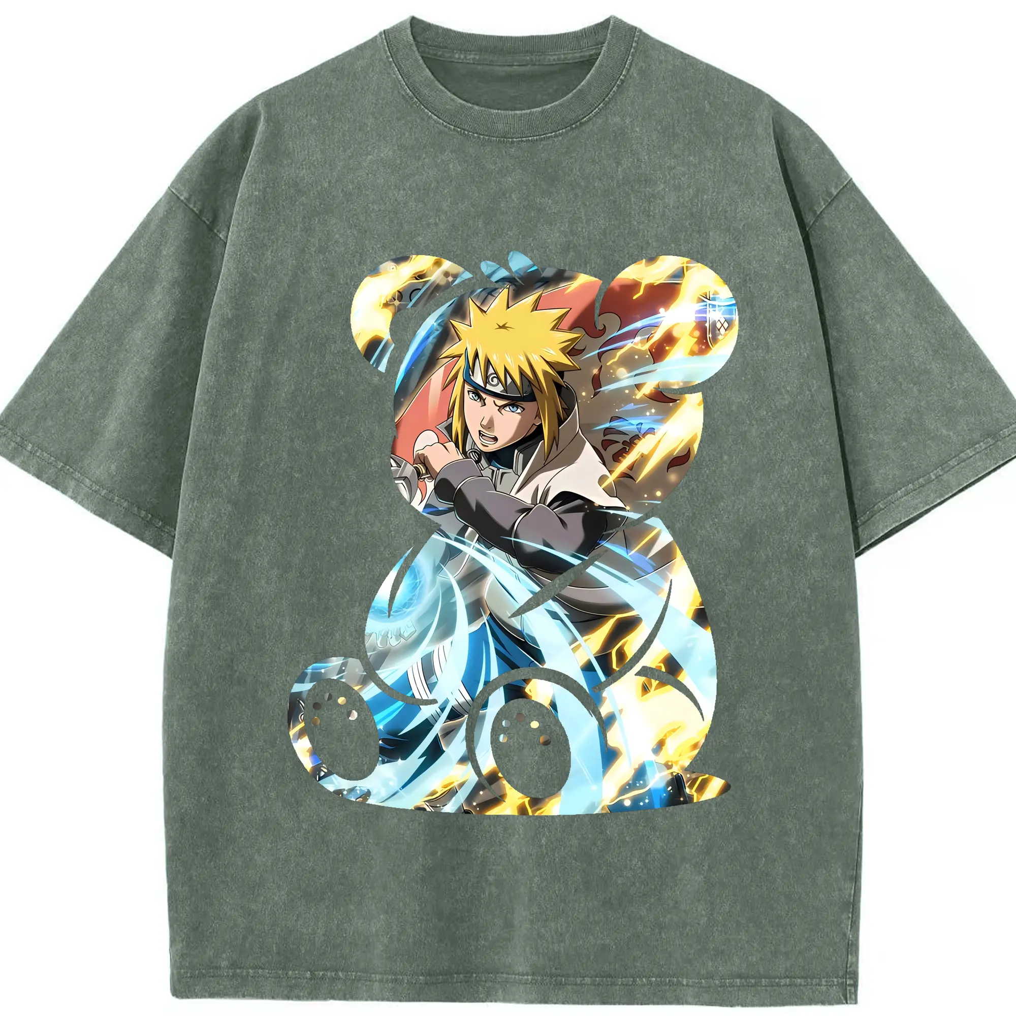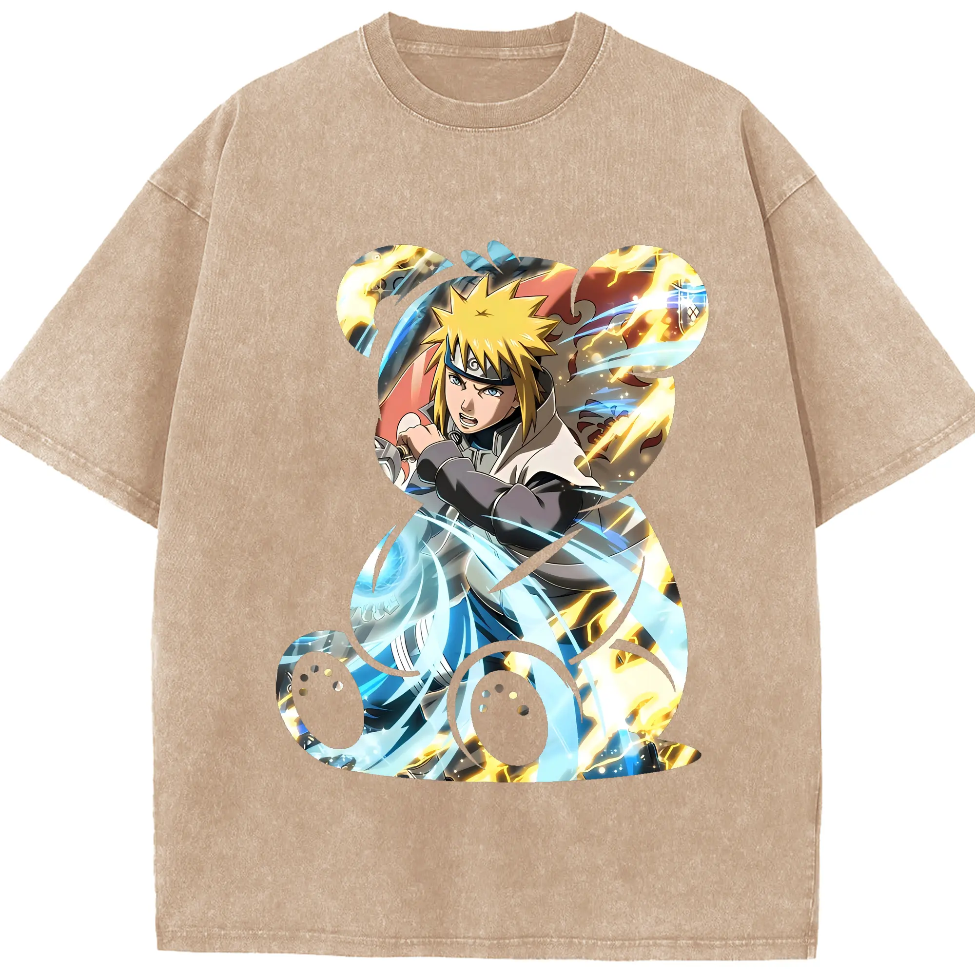 ナルト グッズ 波風 ミナト - 綿100% ヴィンテージ風 半袖Tシャツ ・ 背面プリント ・ 柔らか肌触り ・ 通気性 快適 ・ スポーツ カジュアル 外出用