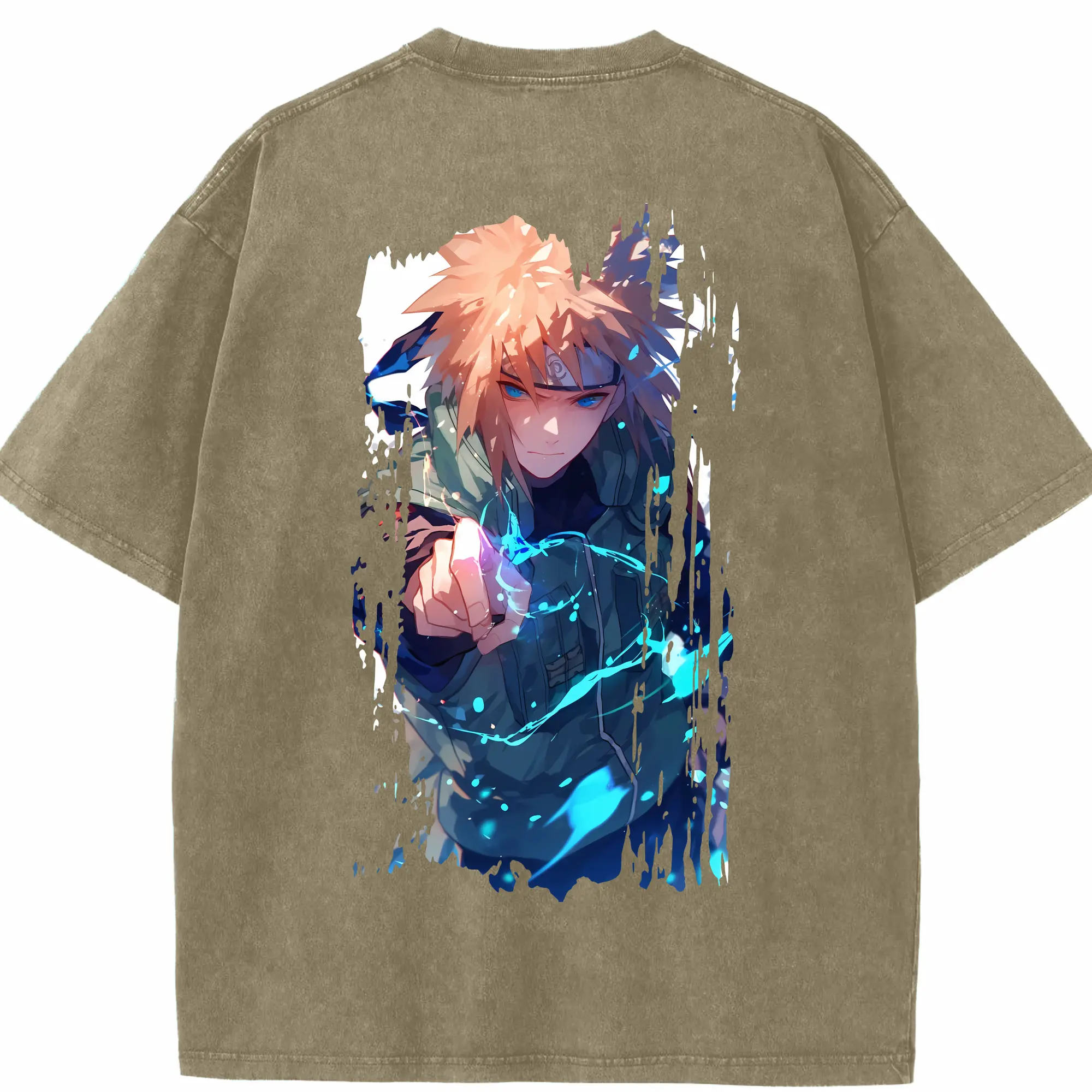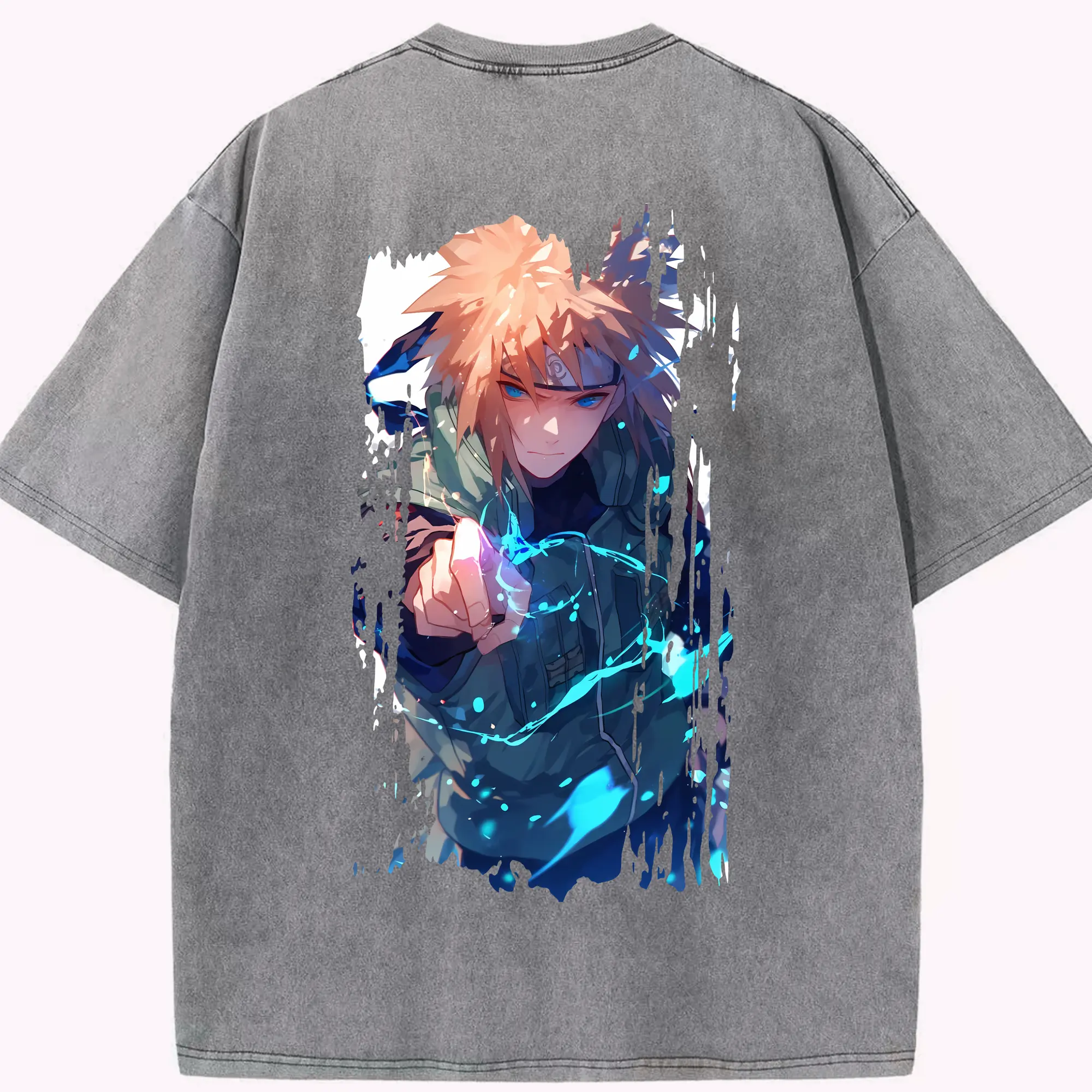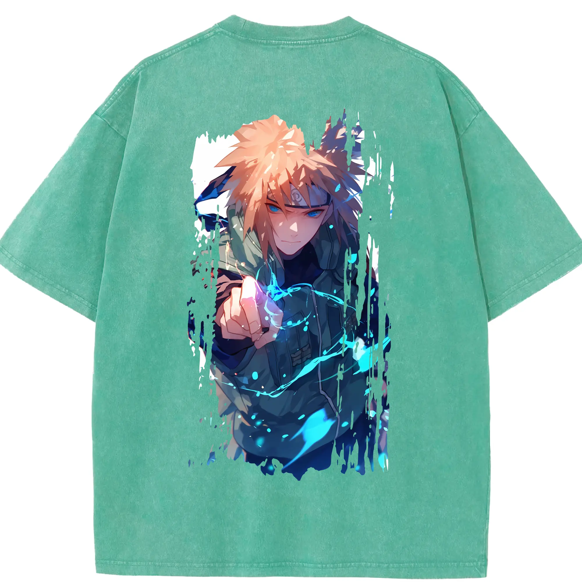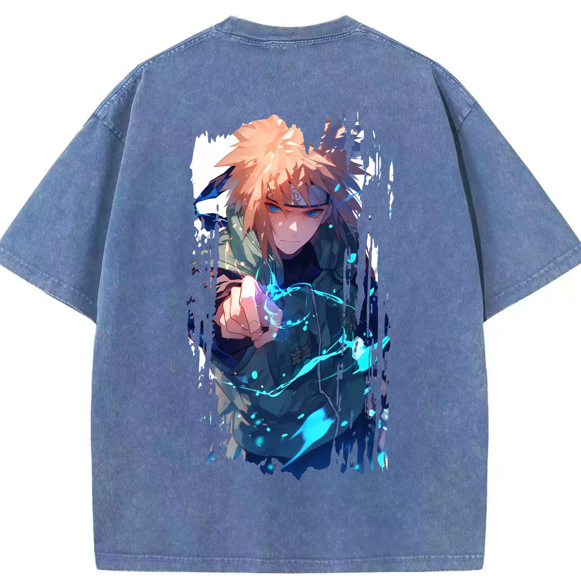 ナルト グッズ 波風 ミナト - 綿100% ヴィンテージ風 半袖Tシャツ ・ フロントプリント ・ 柔らか肌触り ・ 通気性 快適 ・ スポーツ カジュアル 外出用