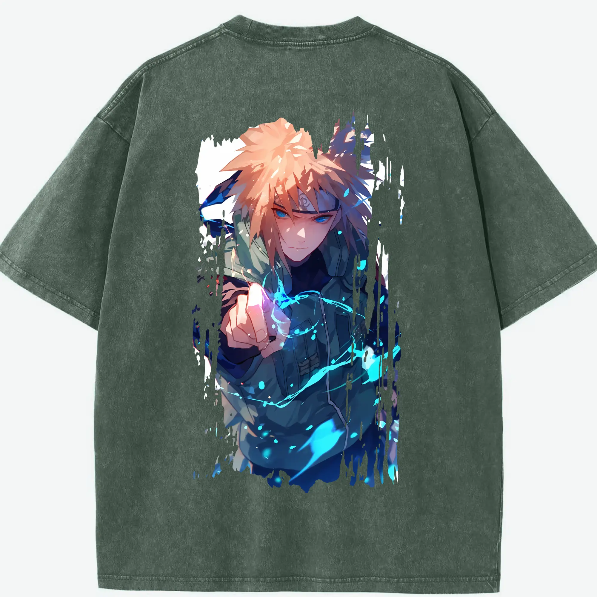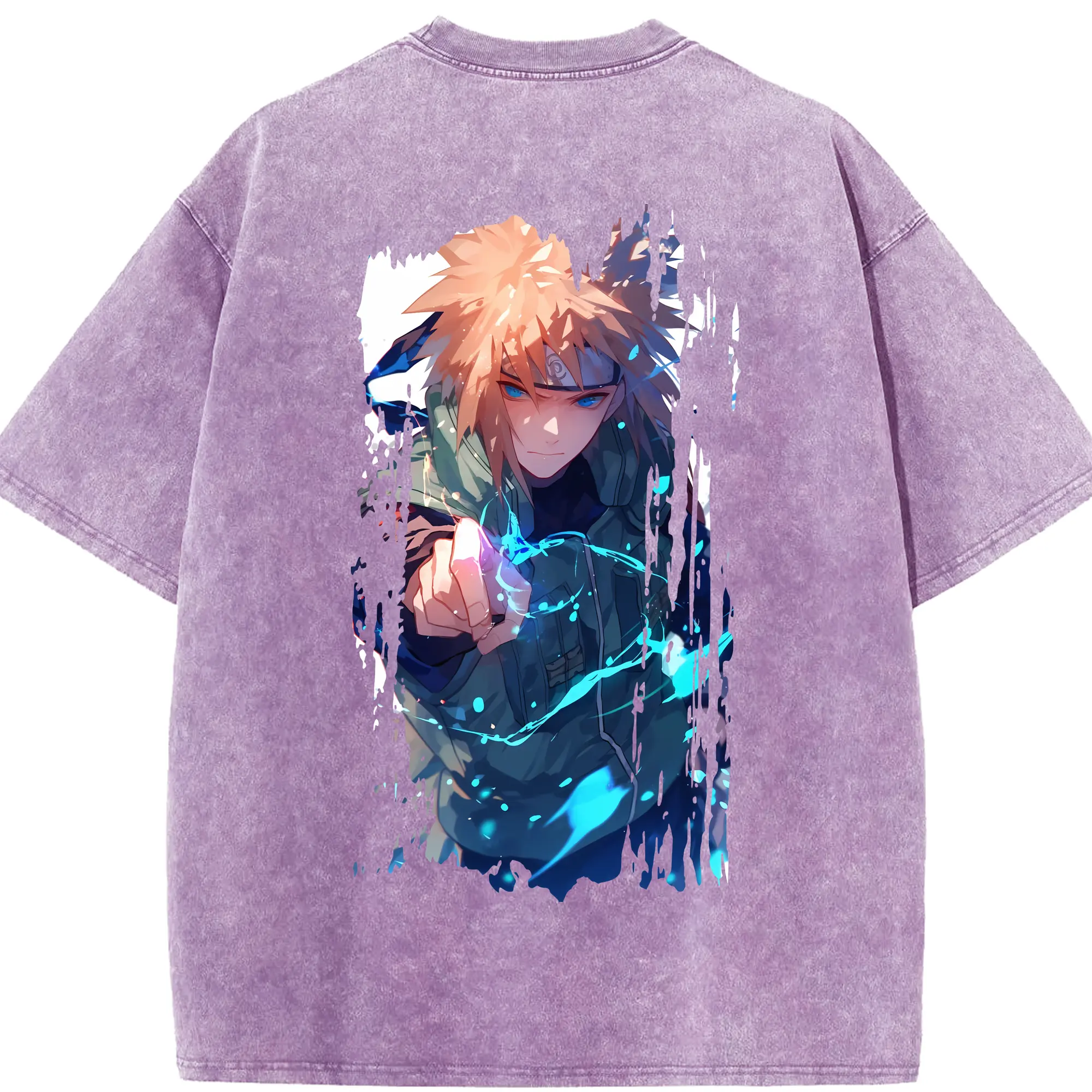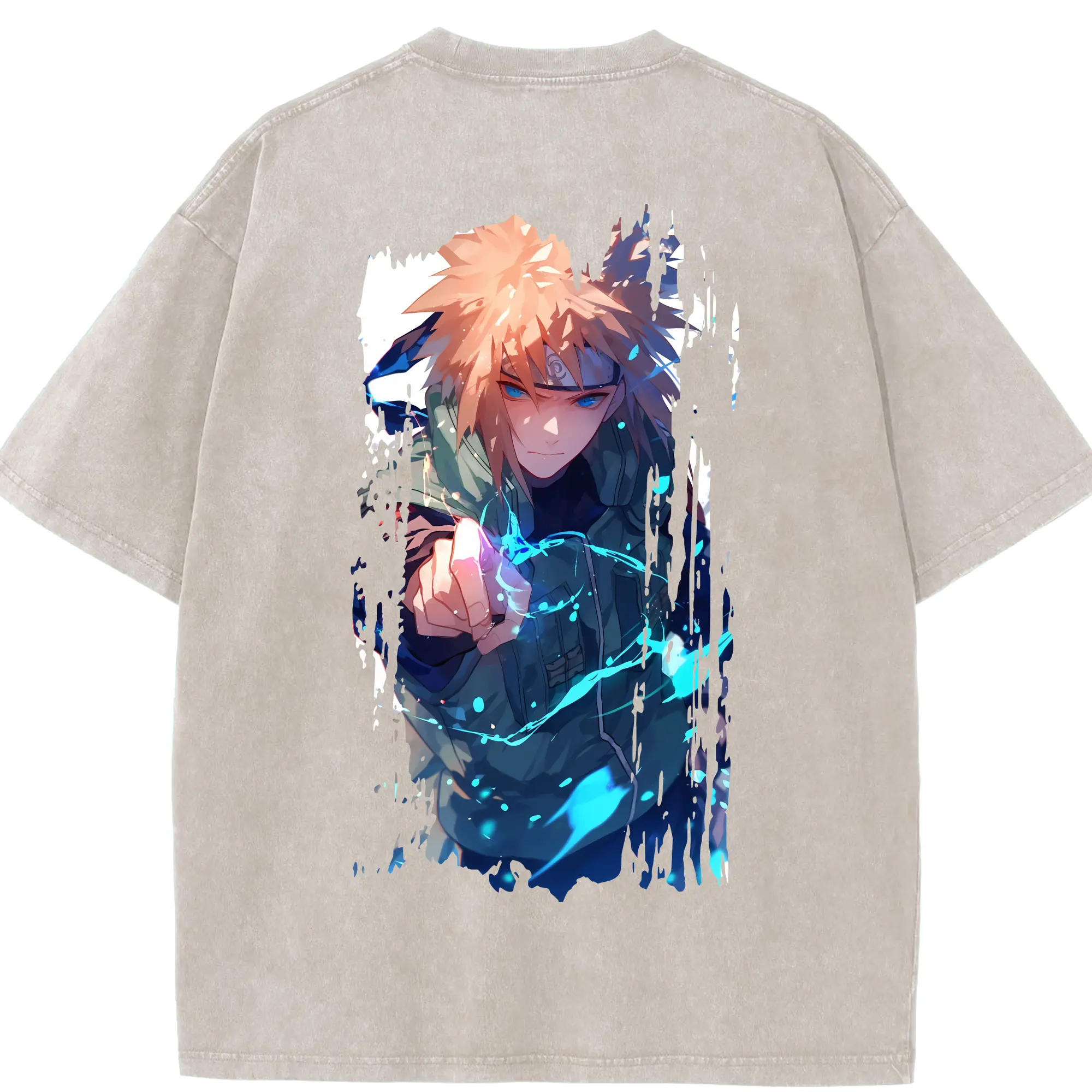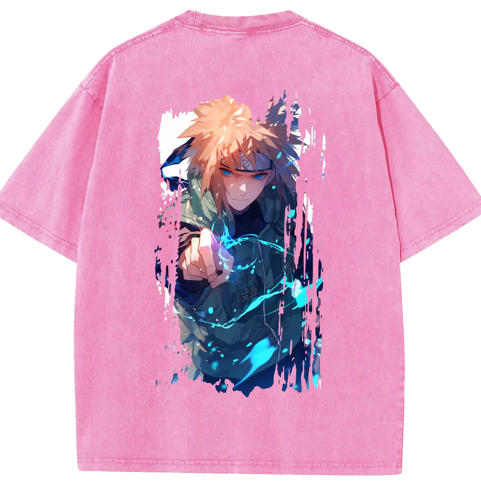 ナルト グッズ 波風 ミナト - 綿100% ヴィンテージ風 半袖Tシャツ ・ フロントプリント ・ 柔らか肌触り ・ 通気性 快適 ・ スポーツ カジュアル 外出用