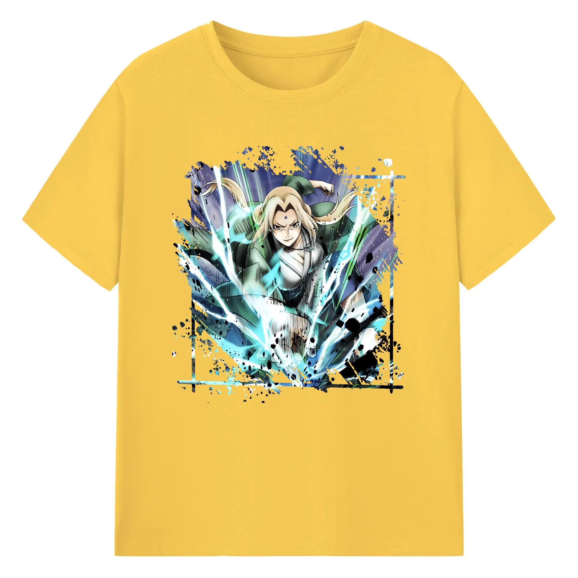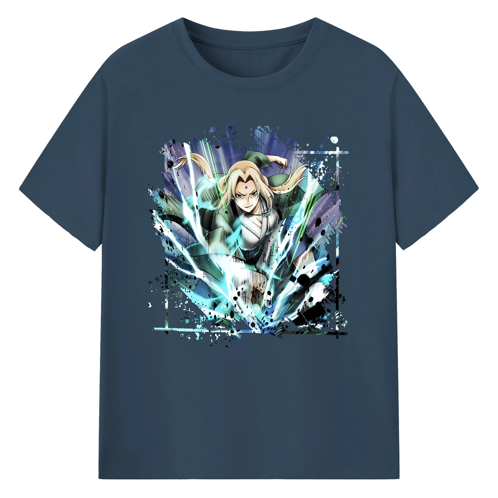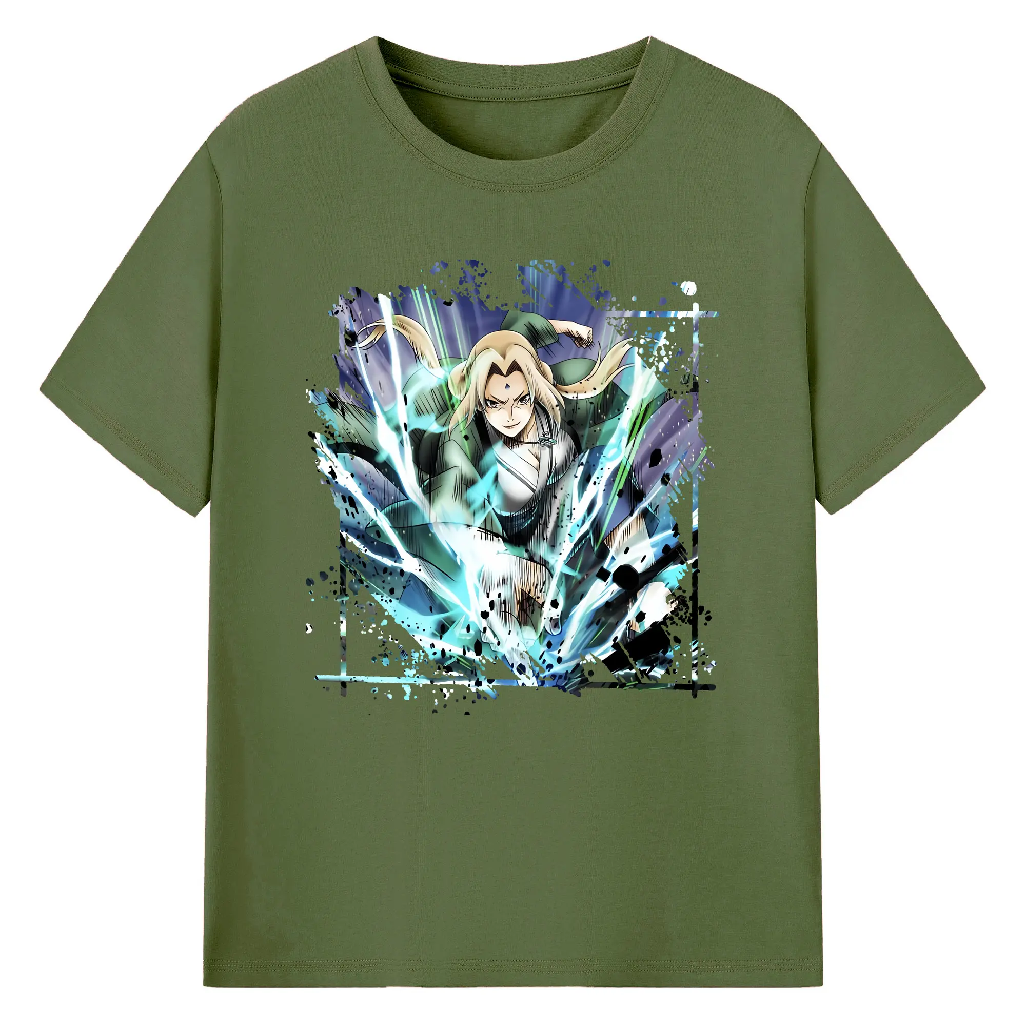 ナルト グッズ 綱手 - 綿100% ヴィンテージ風 半袖Tシャツ ・ フロントプリント ・ 柔らか肌触り ・ 通気性 快適 ・ スポーツ カジュアル 外出用