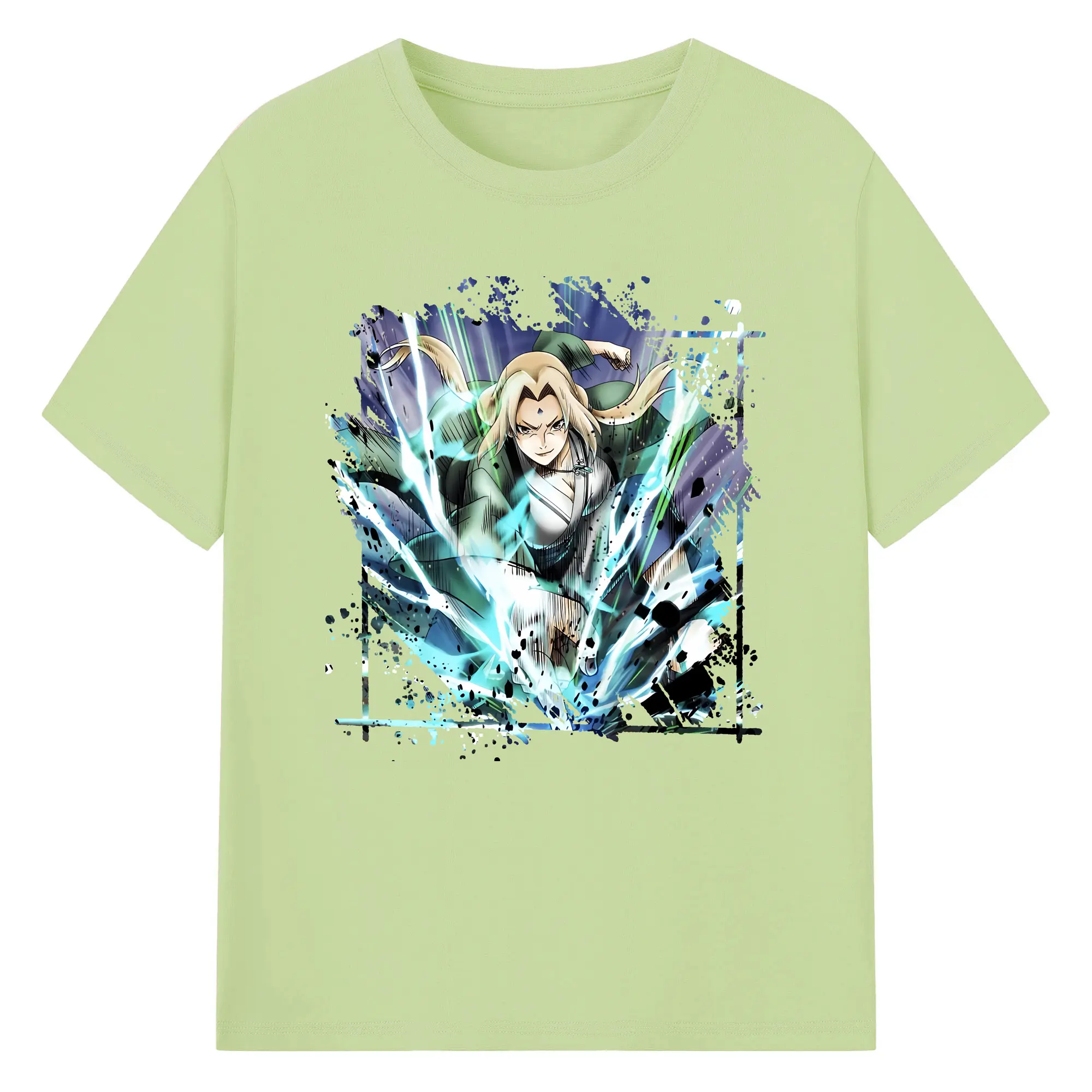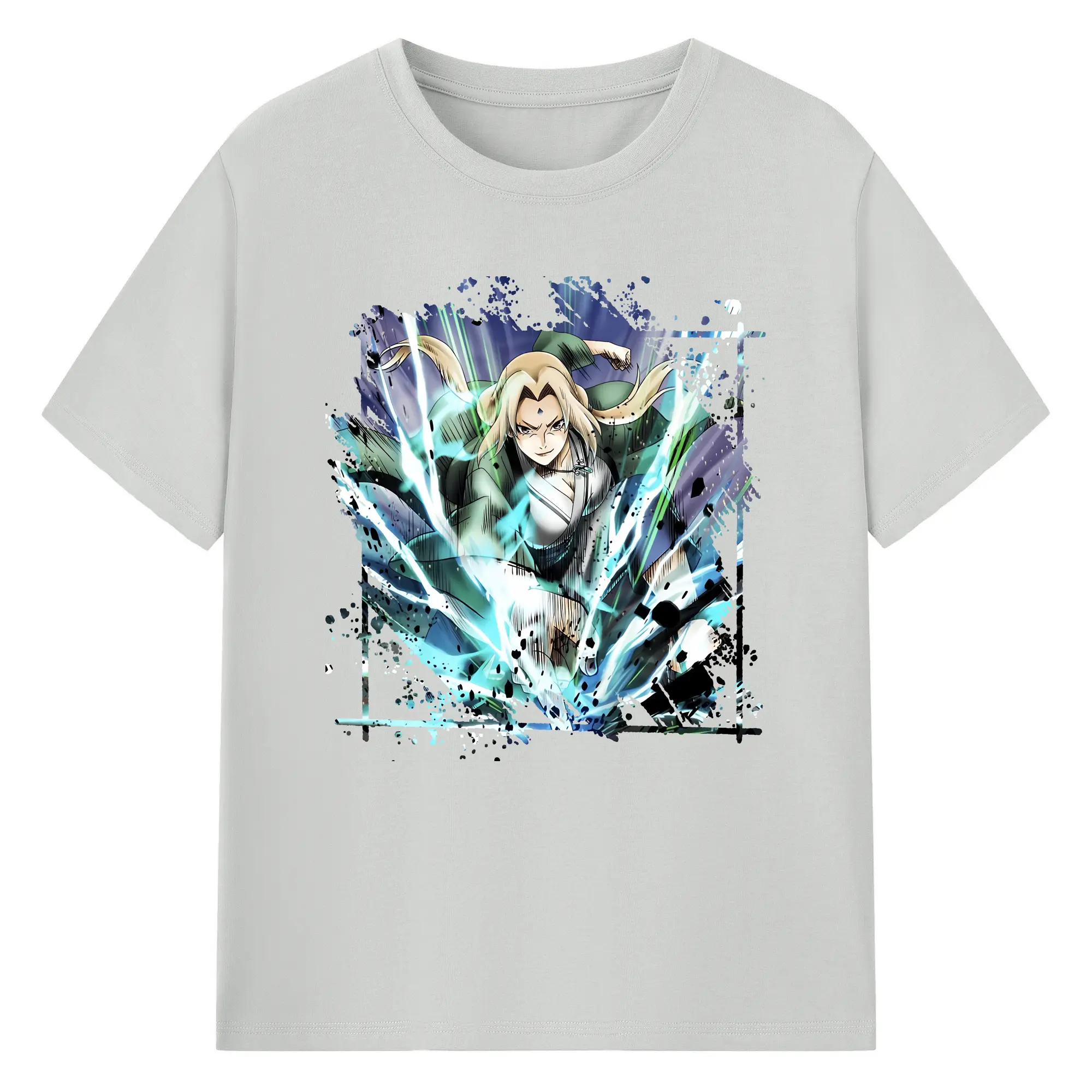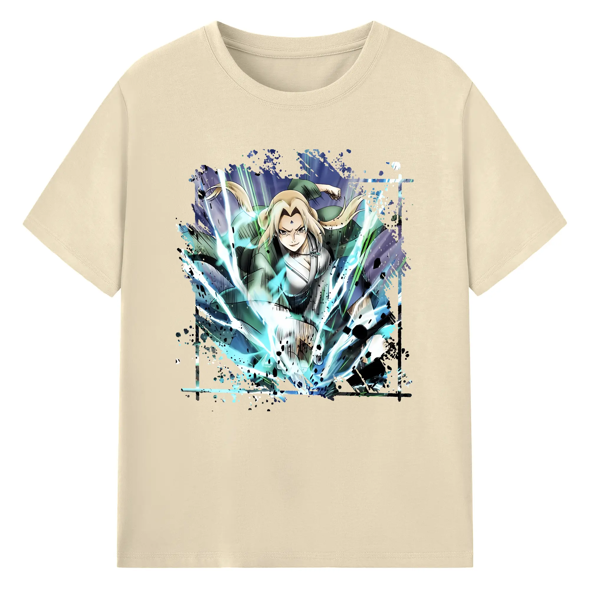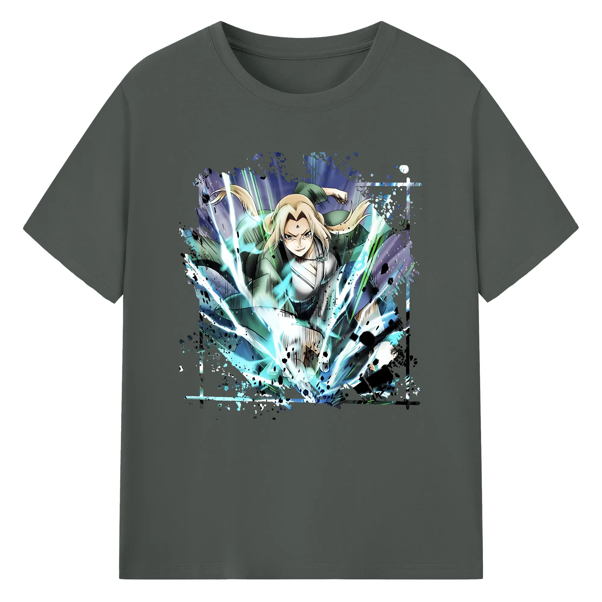 ナルト グッズ 綱手 - 綿100% ヴィンテージ風 半袖Tシャツ ・ フロントプリント ・ 柔らか肌触り ・ 通気性 快適 ・ スポーツ カジュアル 外出用
