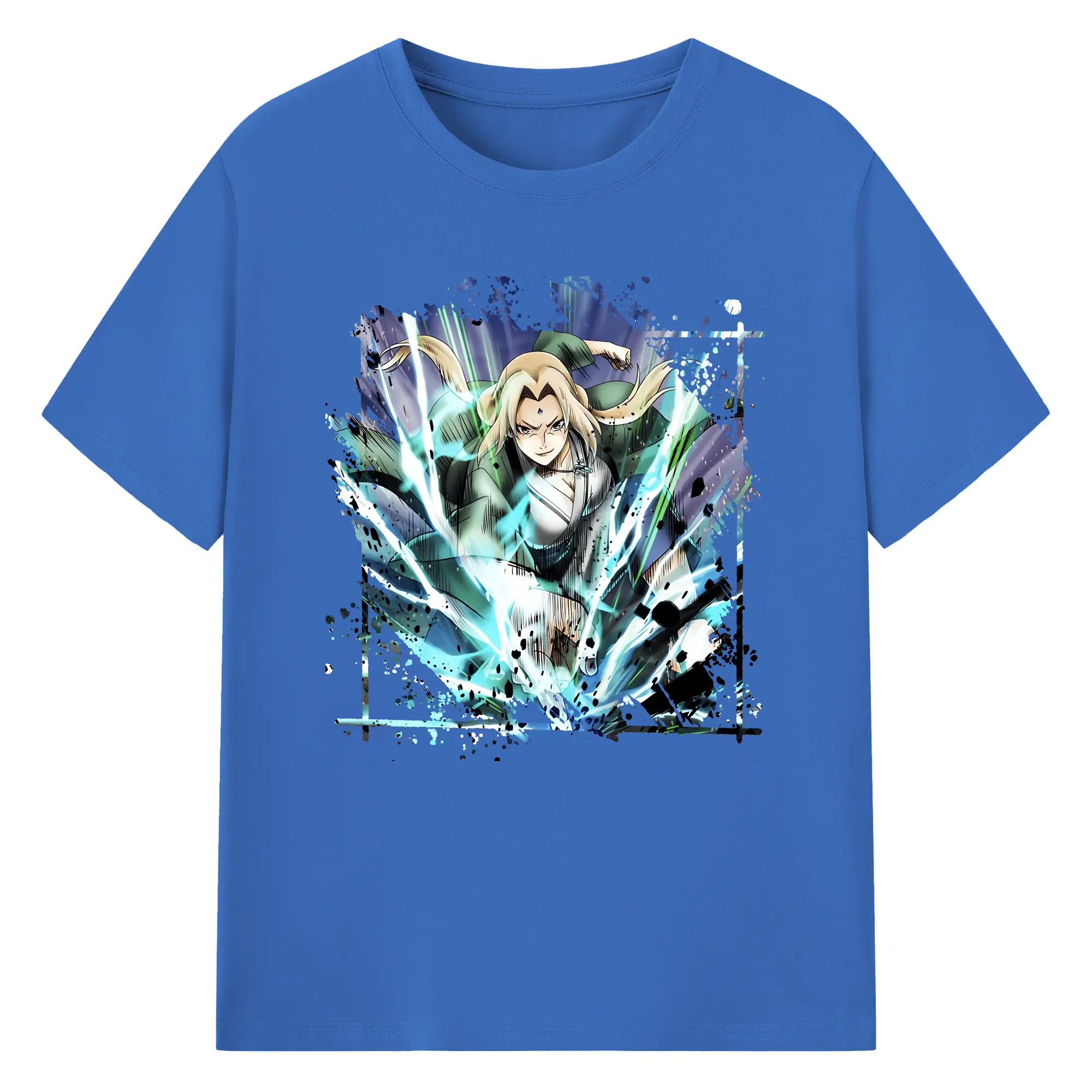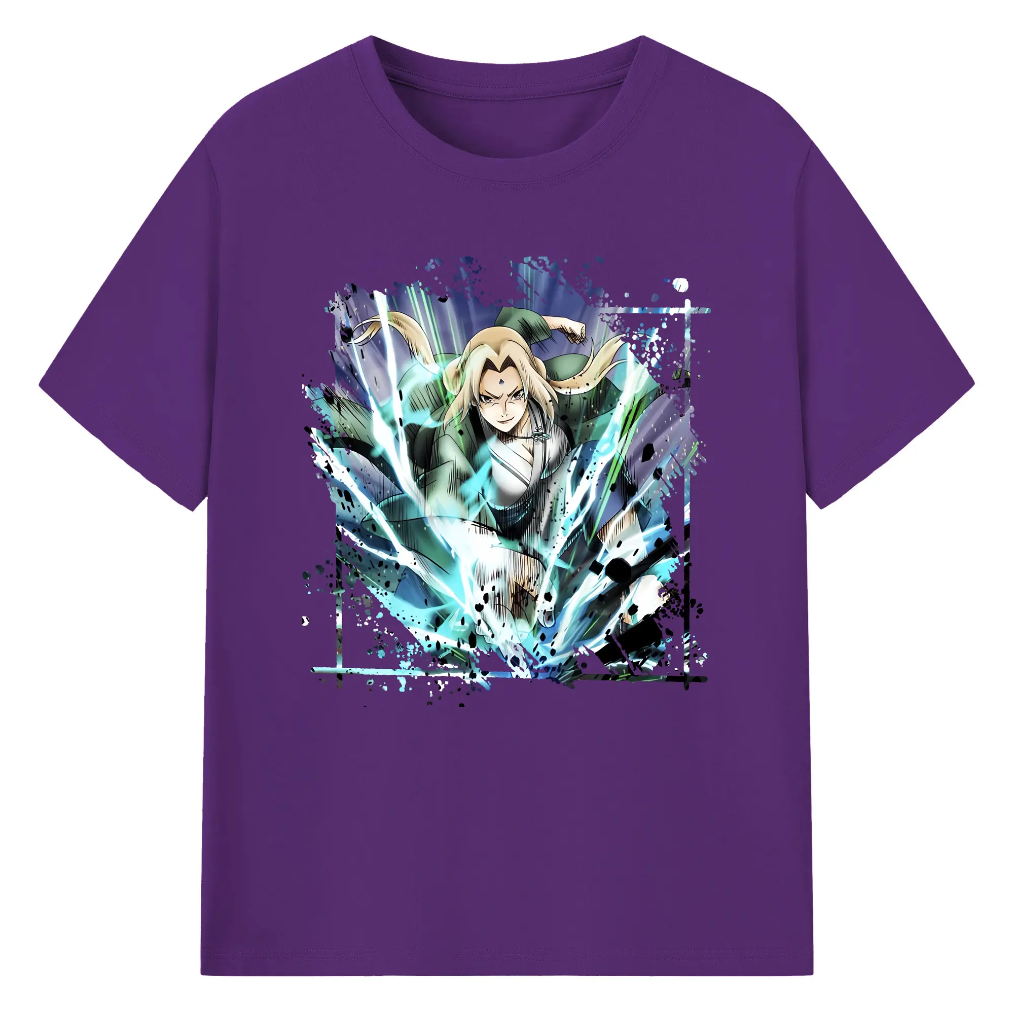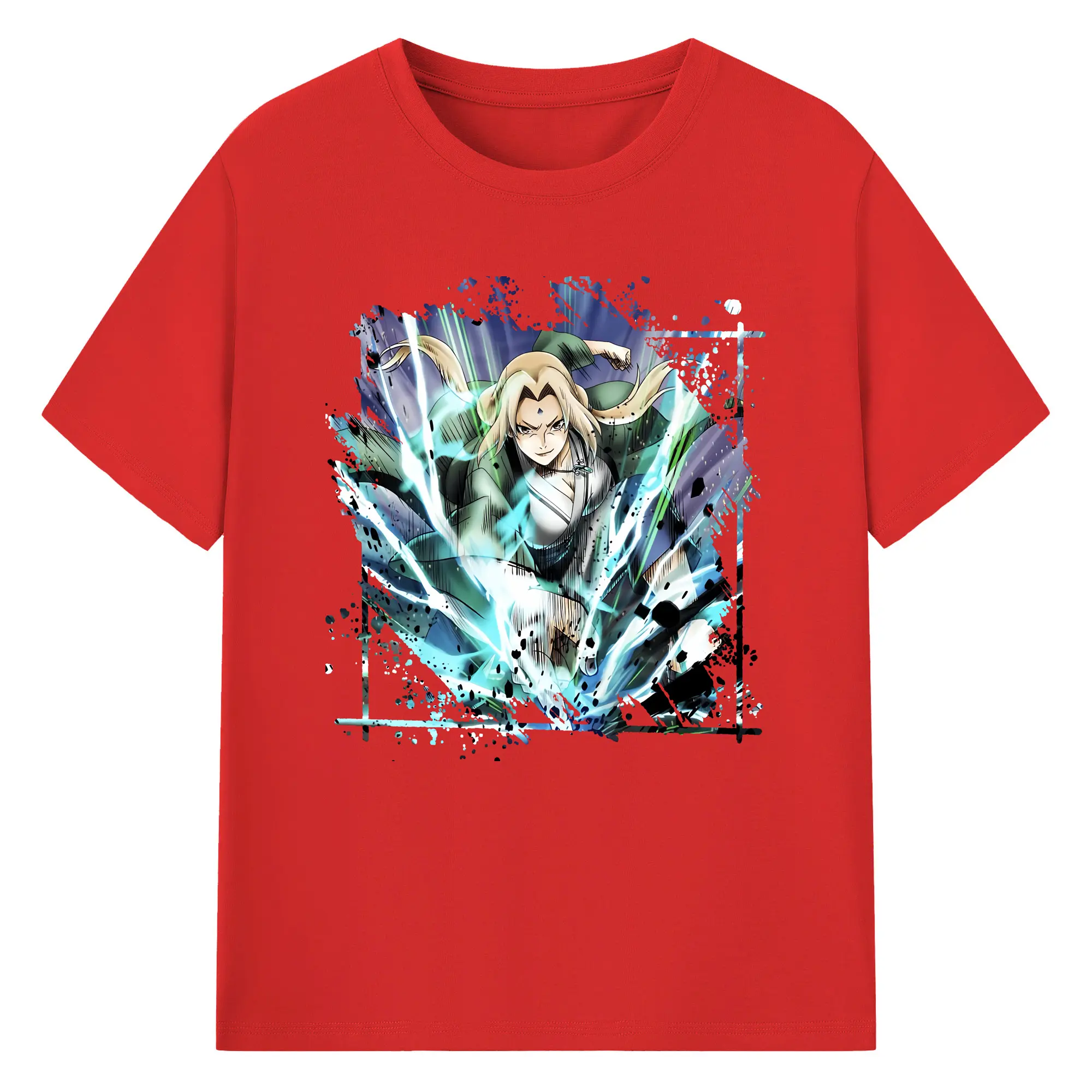 ナルト グッズ 綱手 - 綿100% 半袖Tシャツ ・ バックプリント ・ 快適 通気性 ・ 日常使い 散歩 スポーツ用