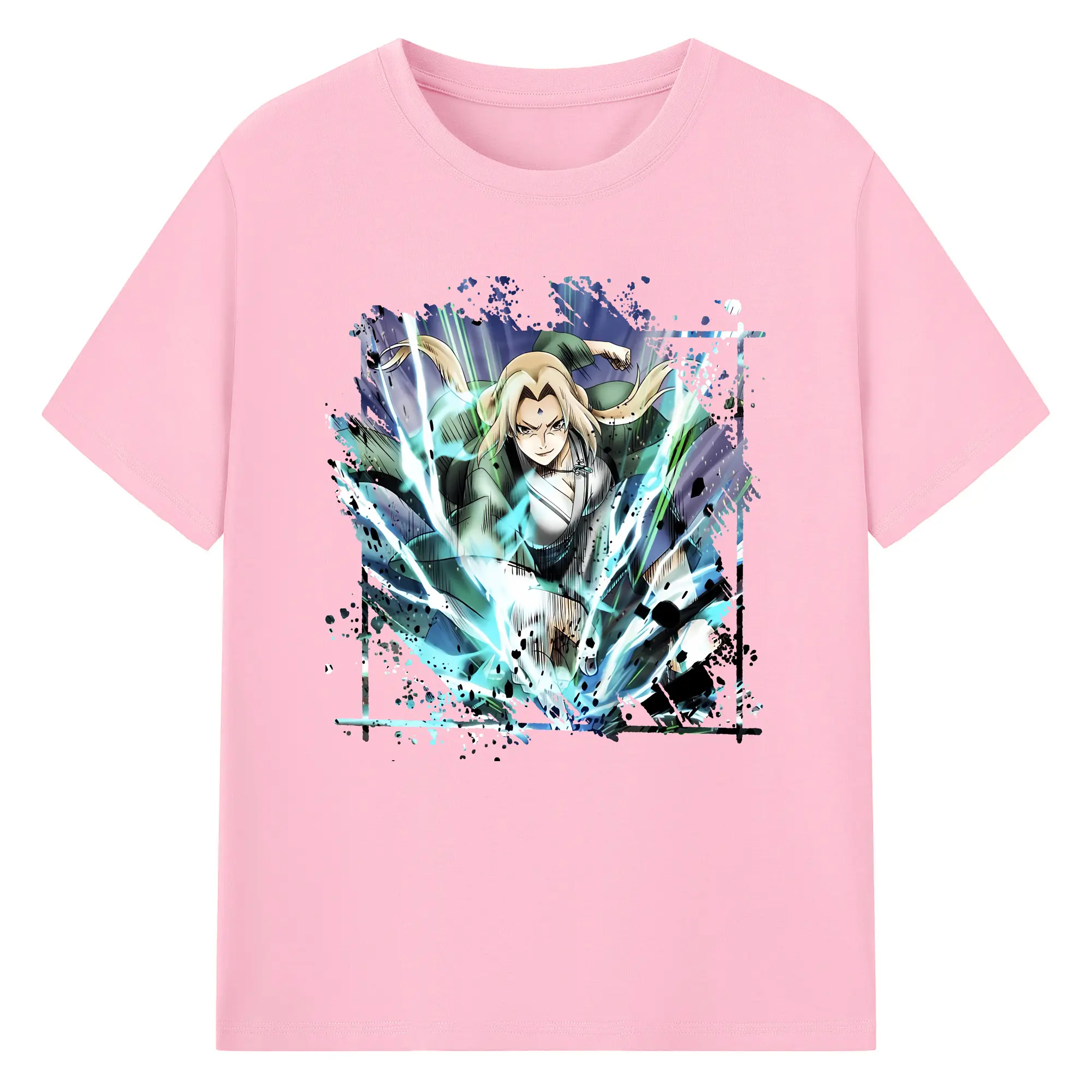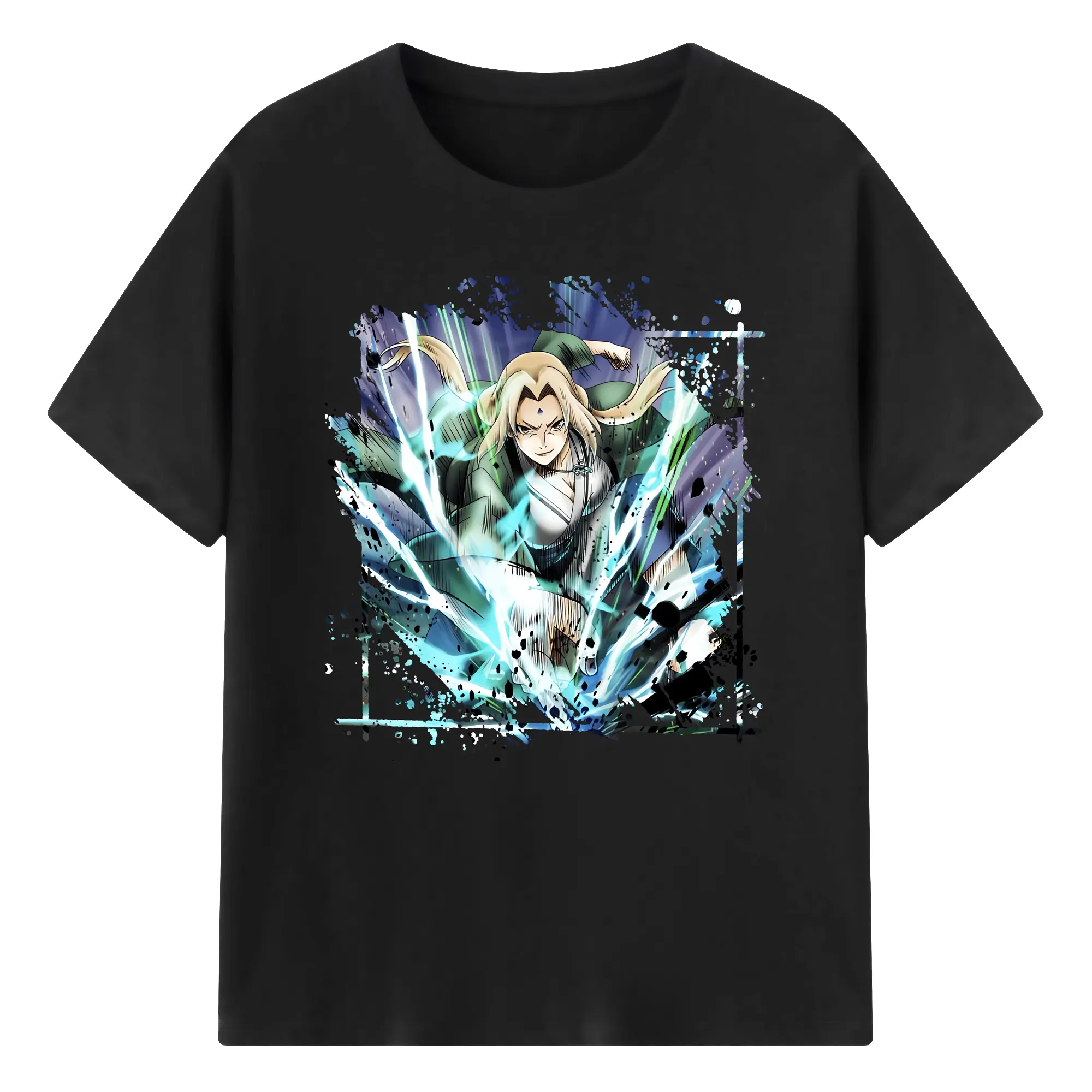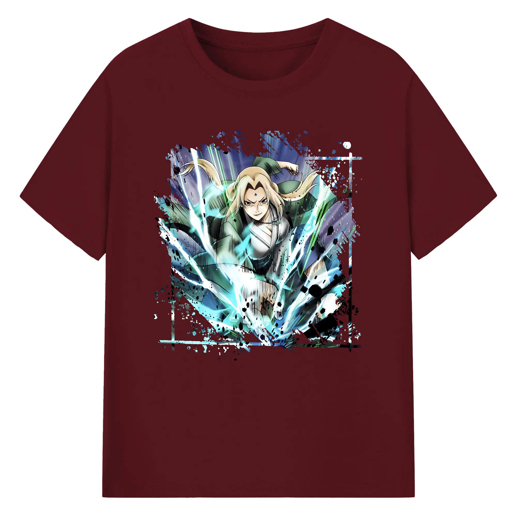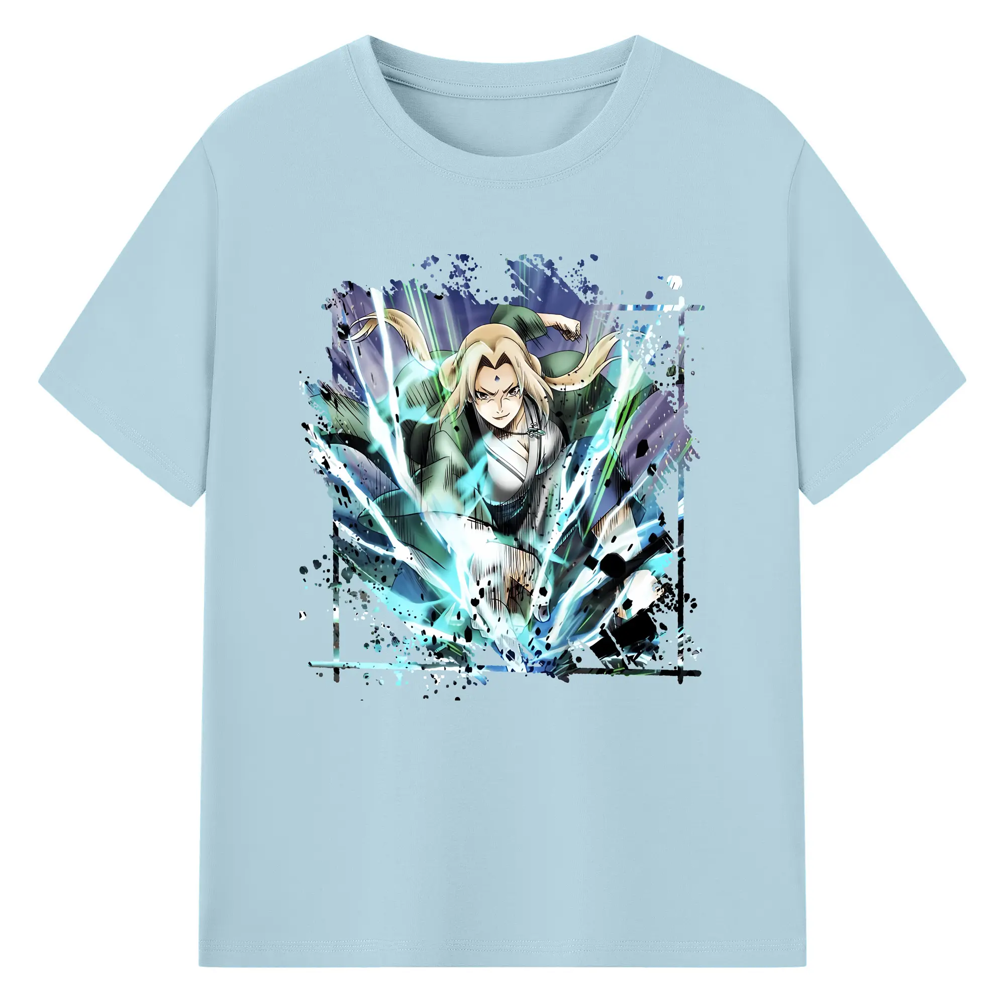 ナルト グッズ 綱手 - 綿100% 半袖Tシャツ ・ バックプリント ・ 快適 通気性 ・ 日常使い 散歩 スポーツ用