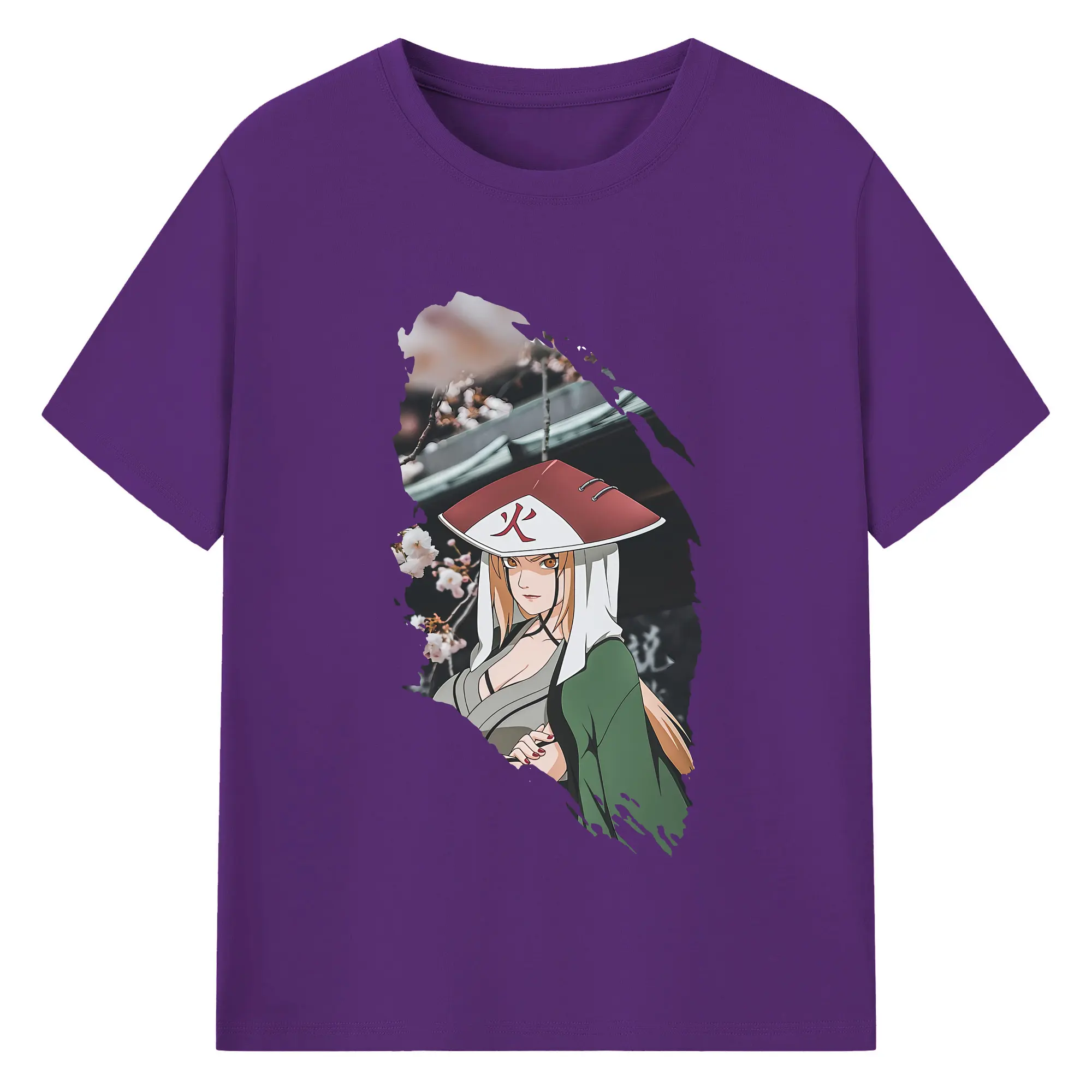 ナルト グッズ 綱手 - 綿100% 半袖Tシャツ ・ バックプリント ・ 快適 通気性 ・ 日常使い 散歩 スポーツ用