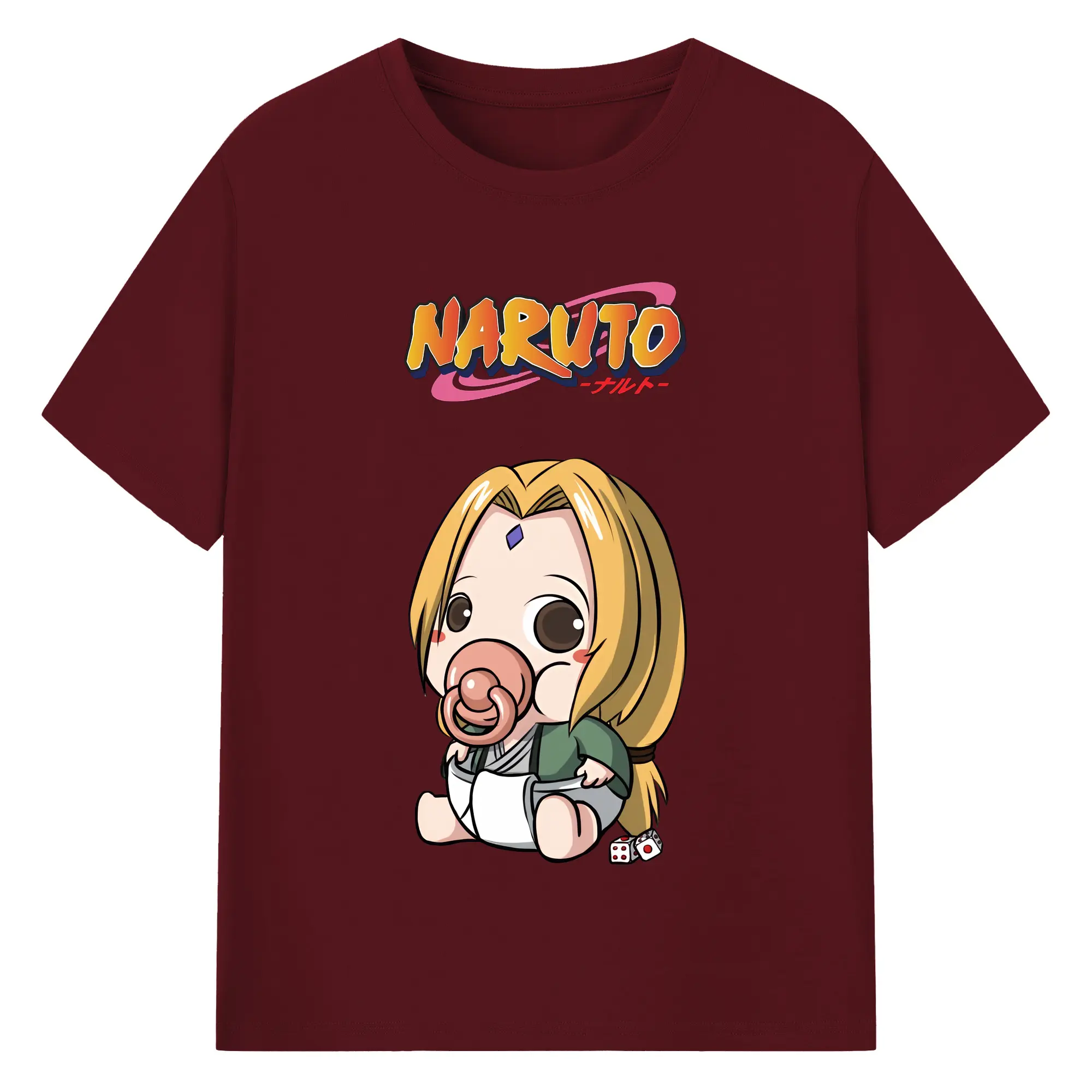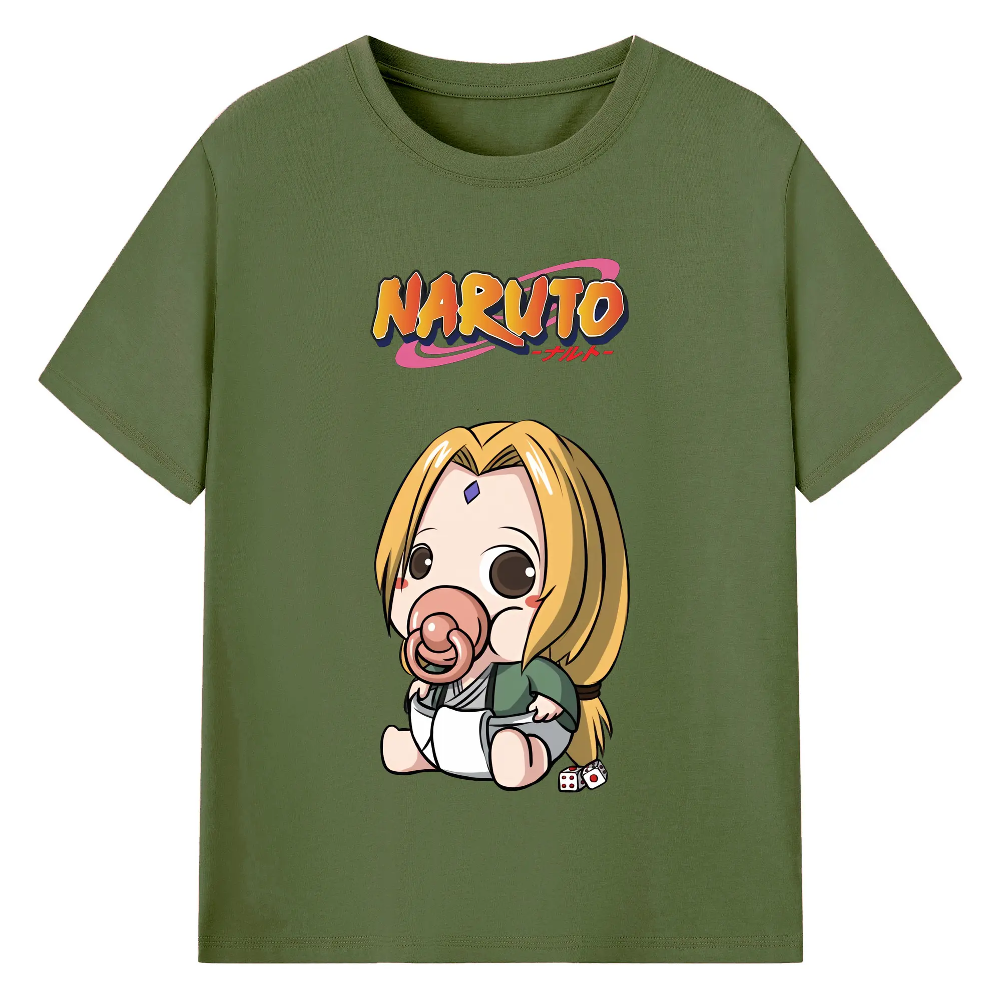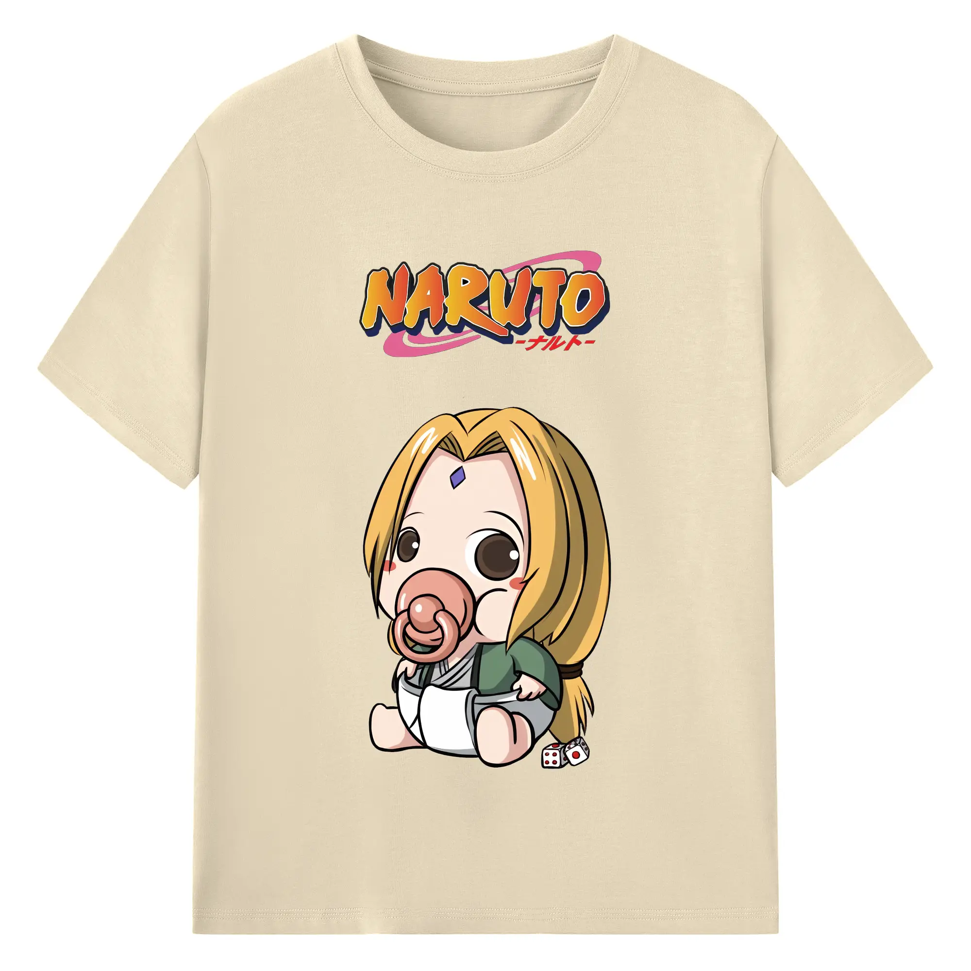 ナルト グッズ 綱手 - 綿100% ヴィンテージ風 半袖Tシャツ ・ フロントプリント ・ 柔らか肌触り ・ 通気性 快適 ・ スポーツ カジュアル 外出用