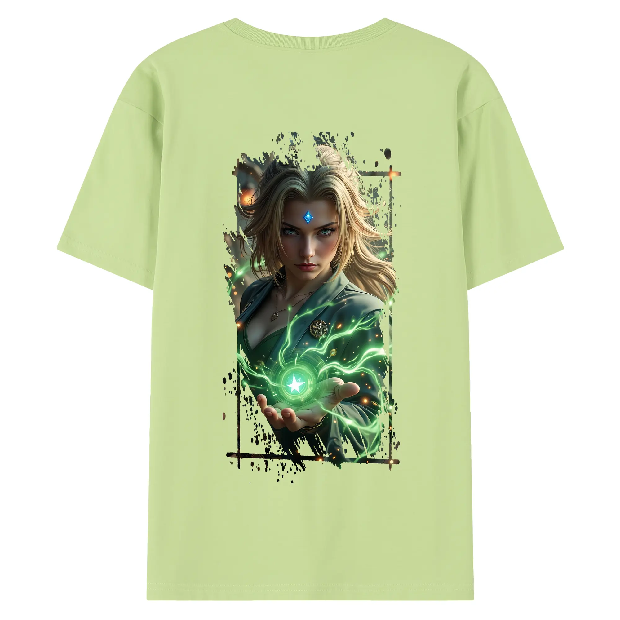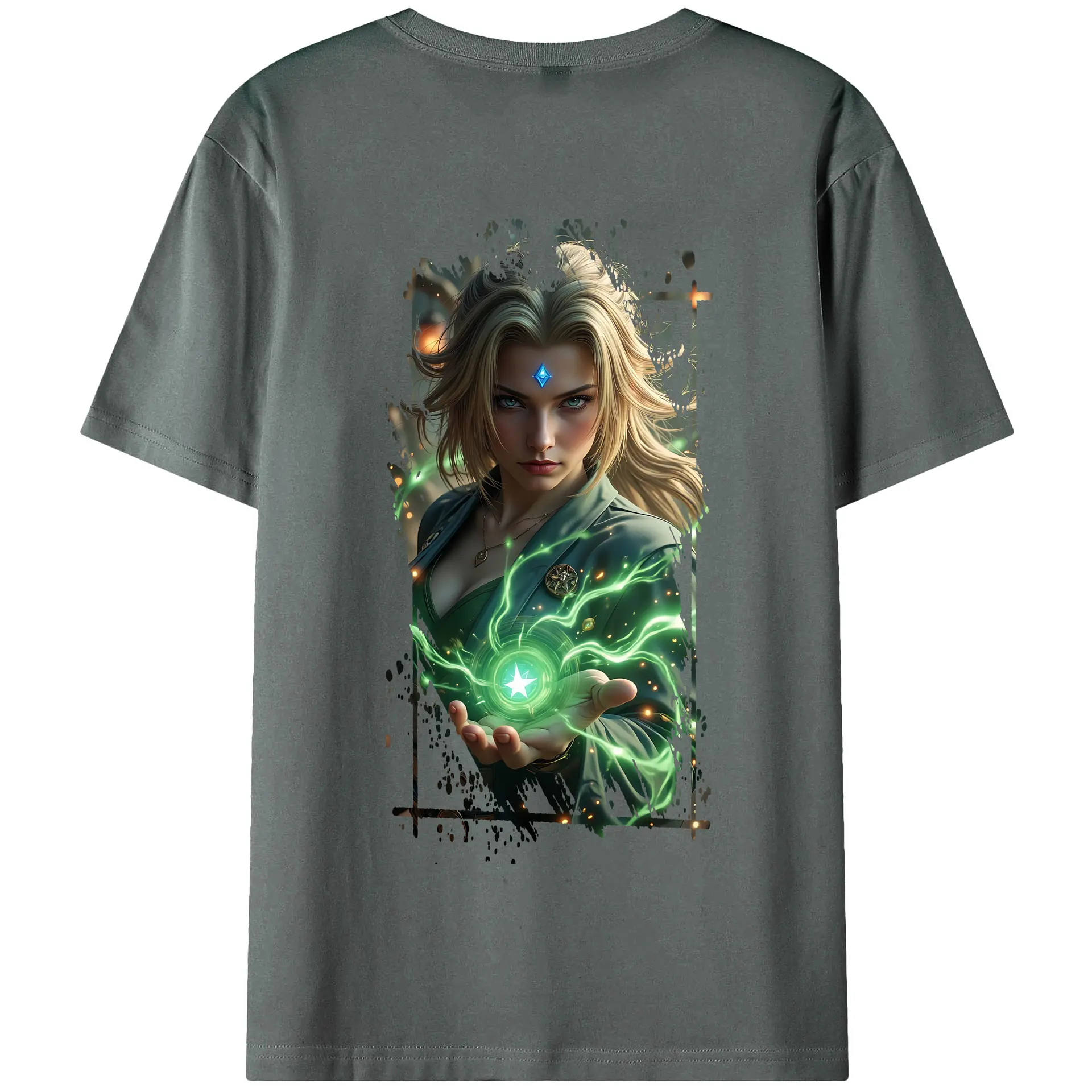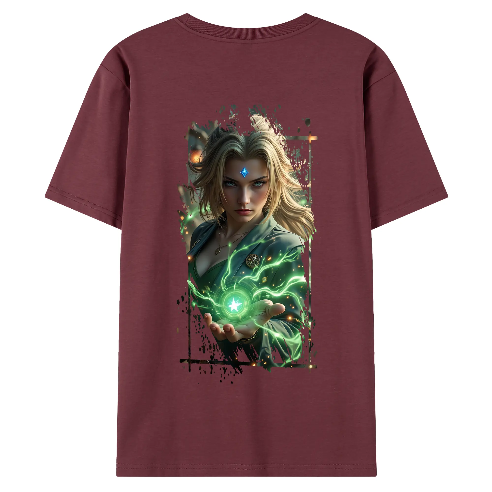 ナルト グッズ 綱手 - 綿100% ヴィンテージ風 半袖Tシャツ ・ 背面プリント ・ 柔らか肌触り ・ 通気性 快適 ・ スポーツ カジュアル 外出用