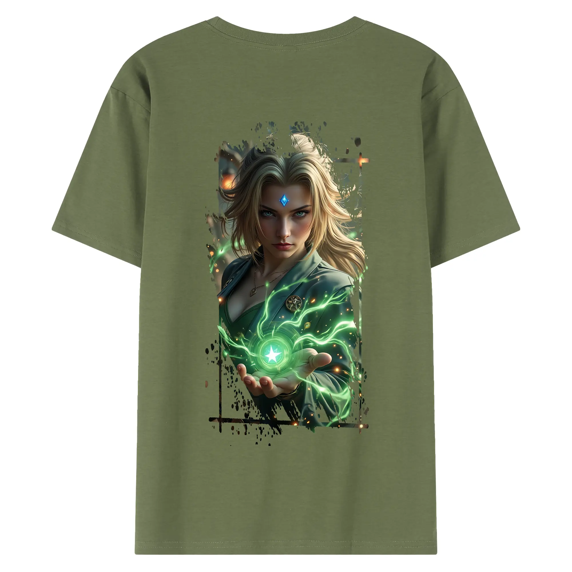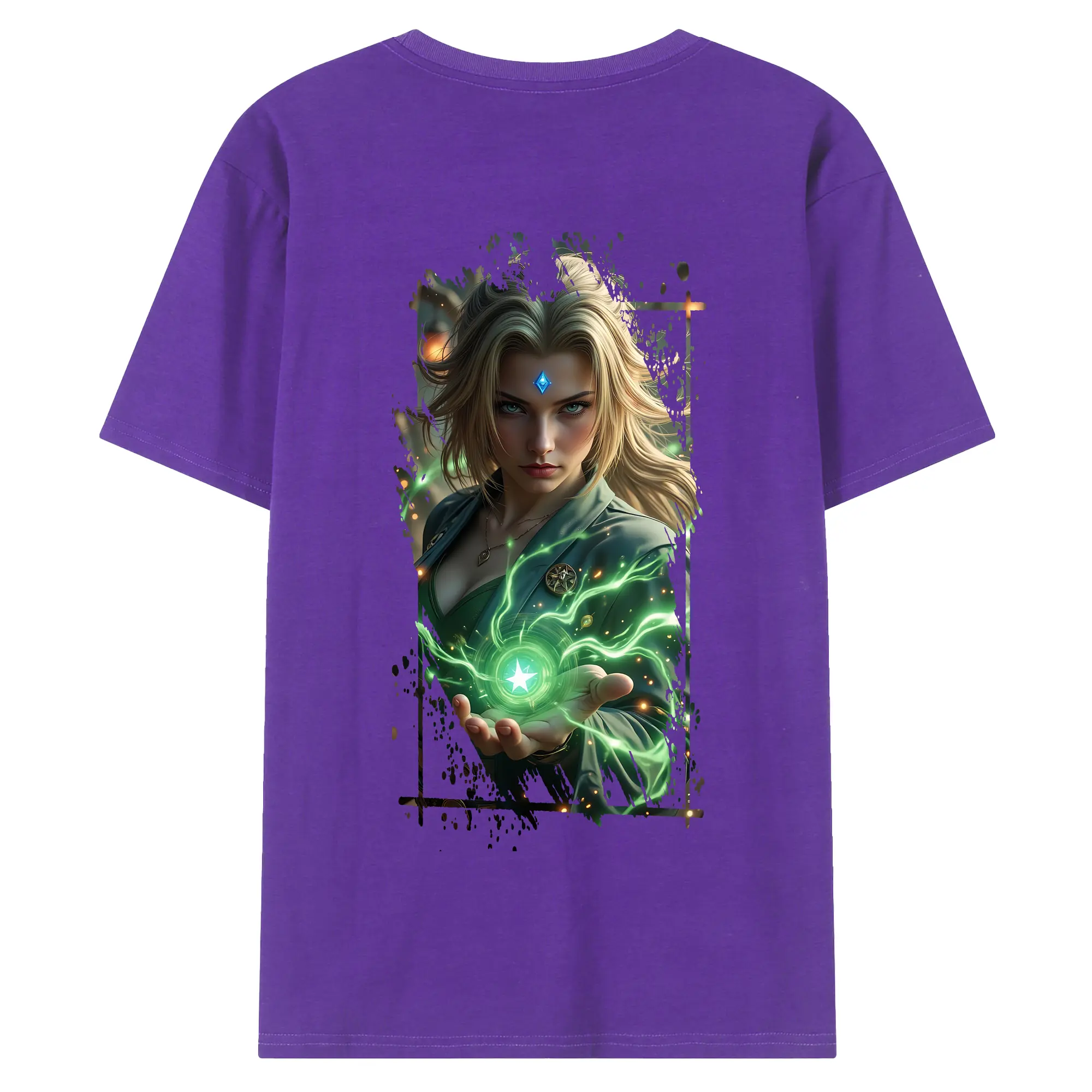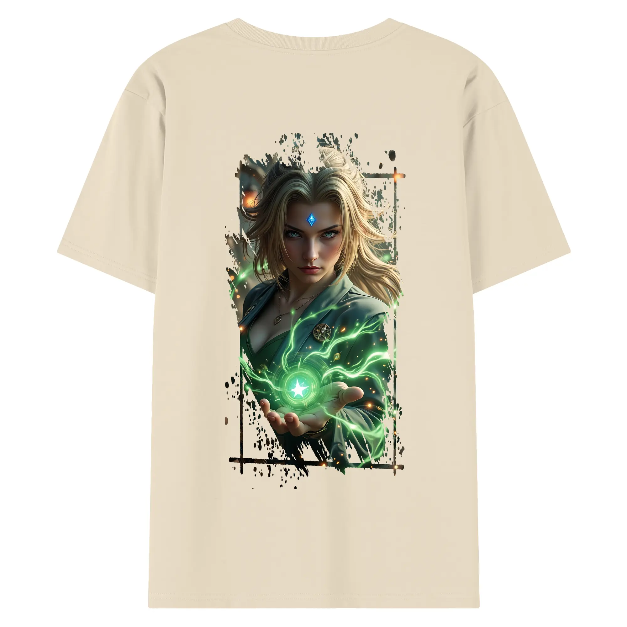 ナルト グッズ 綱手 - 綿100% ヴィンテージ風 半袖Tシャツ ・ 背面プリント ・ 柔らか肌触り ・ 通気性 快適 ・ スポーツ カジュアル 外出用