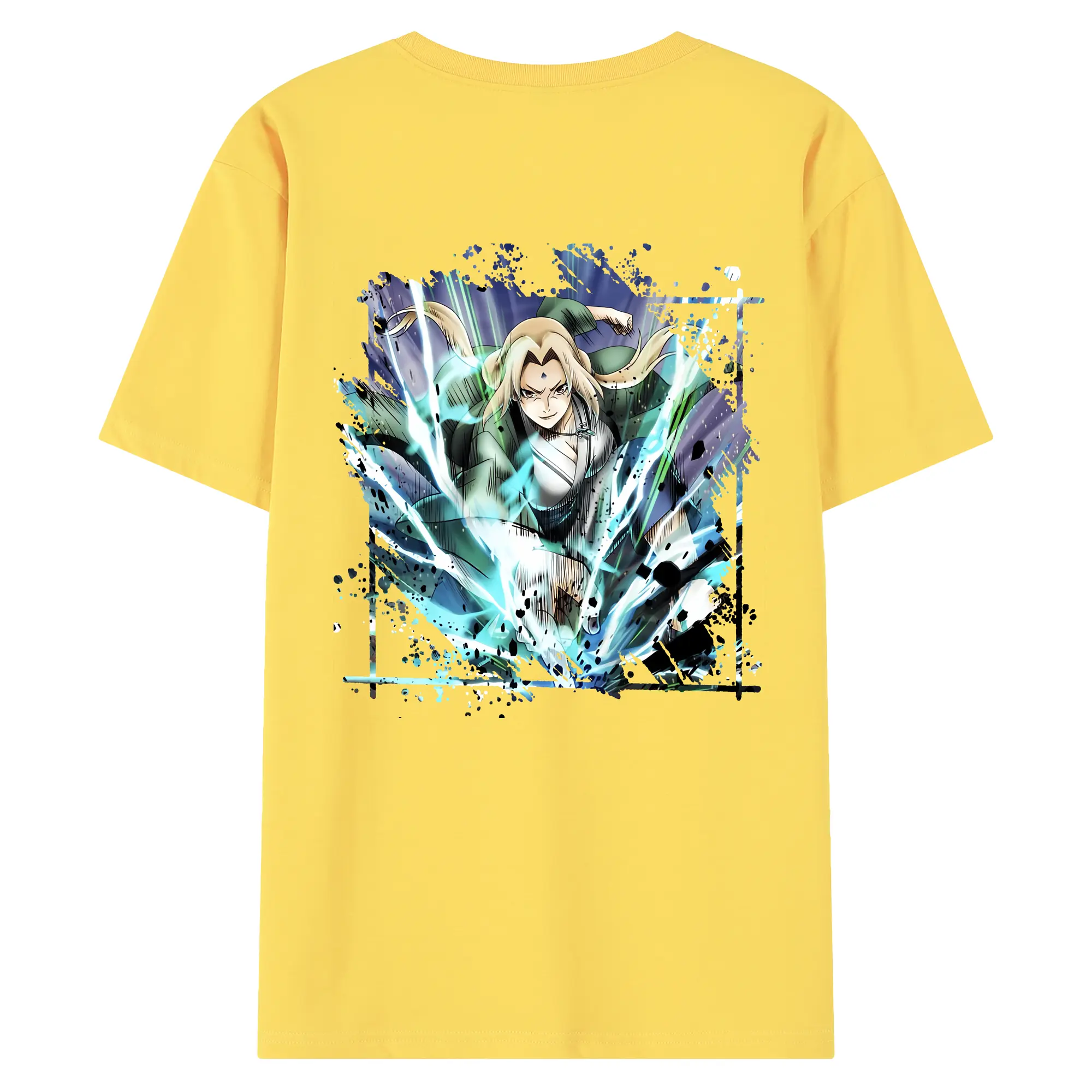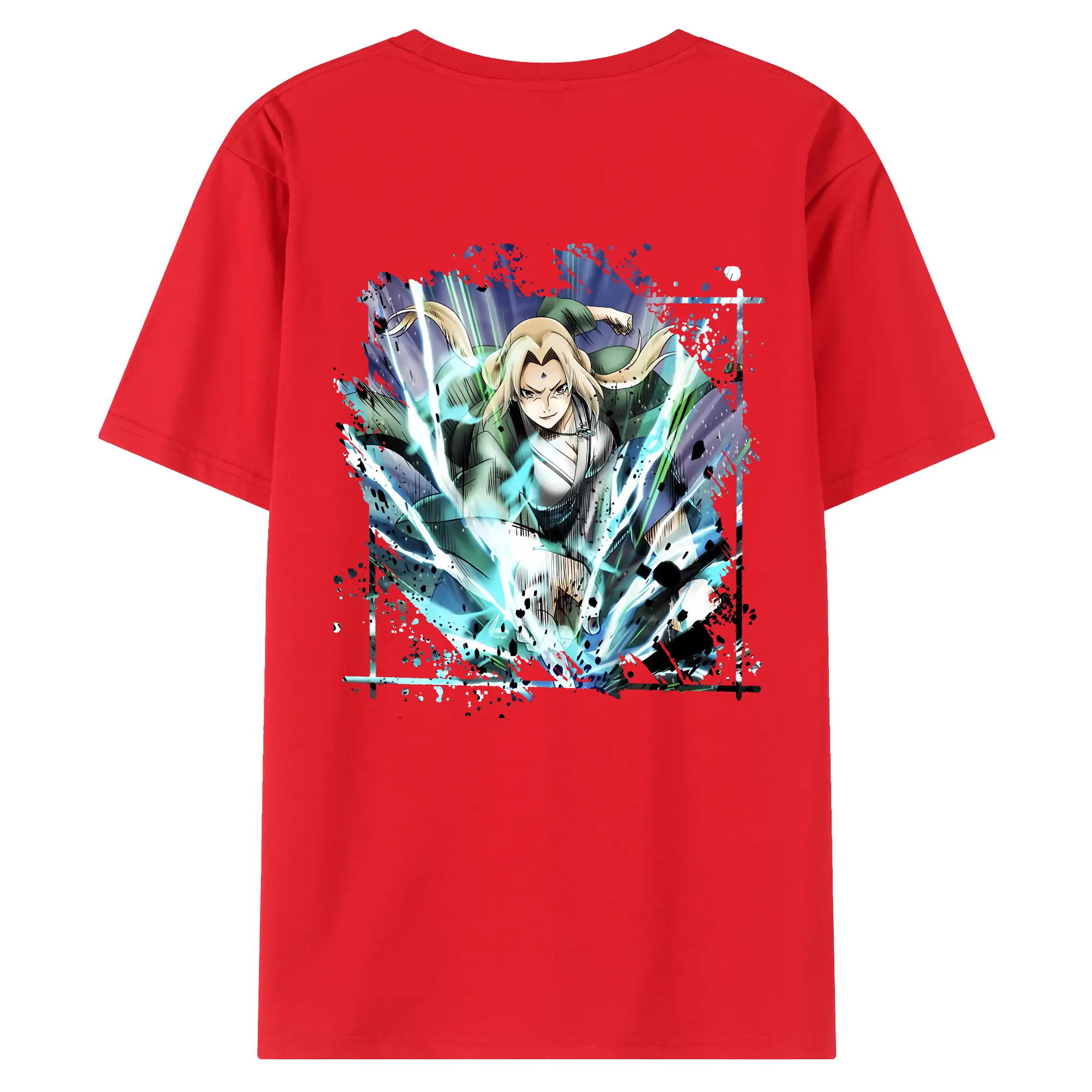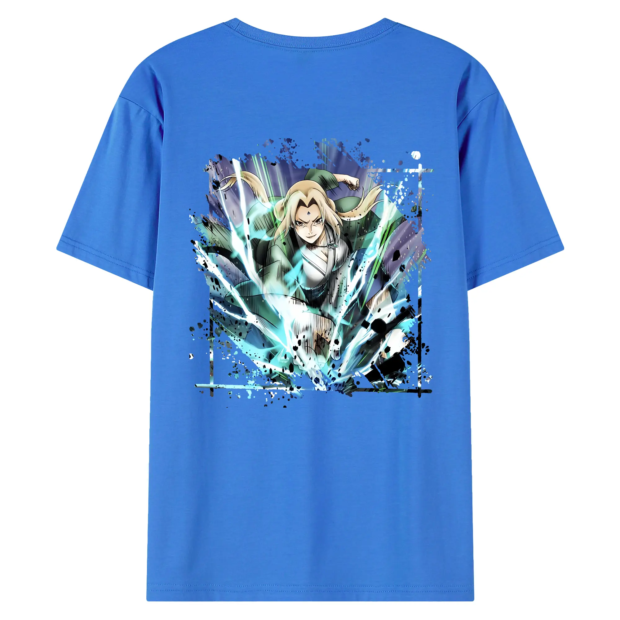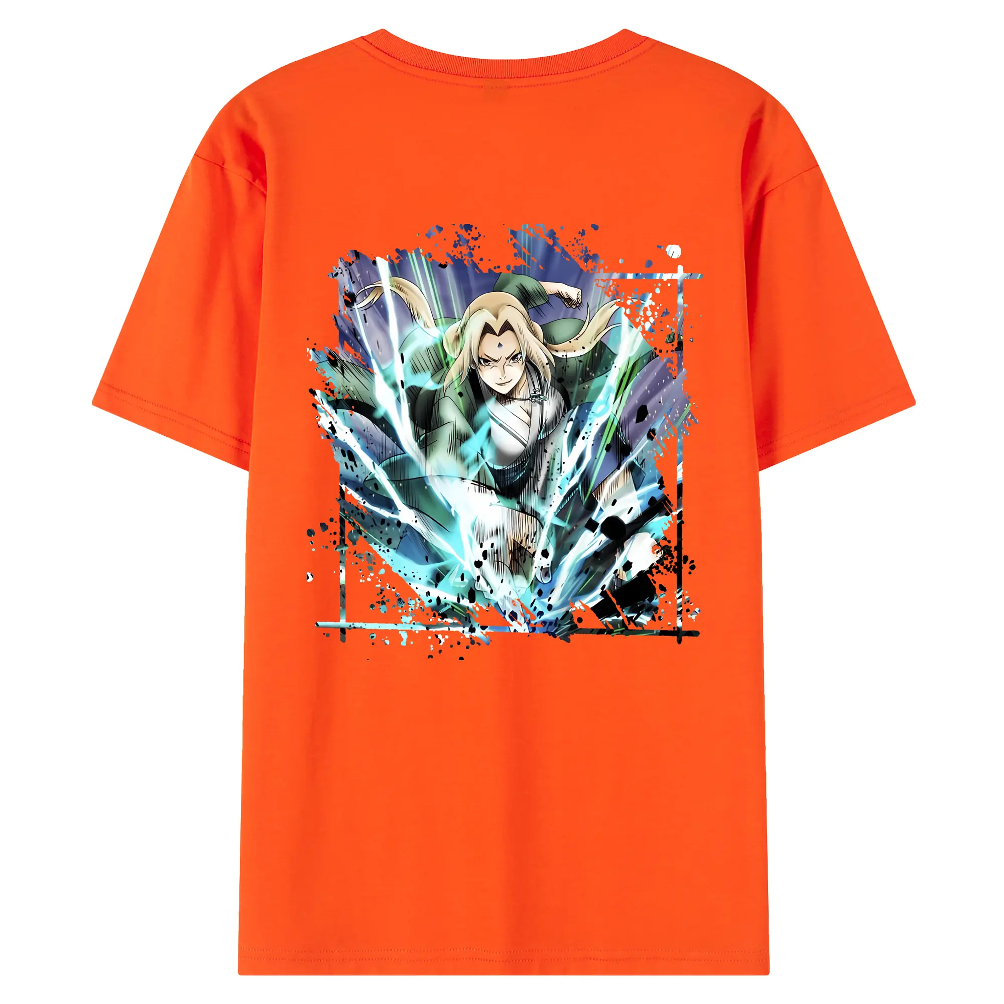 ナルト グッズ 綱手 - 綿100% 半袖Tシャツ ・ フロントプリント ・ 快適 通気性 ・ 日常使い 散歩 スポーツ用