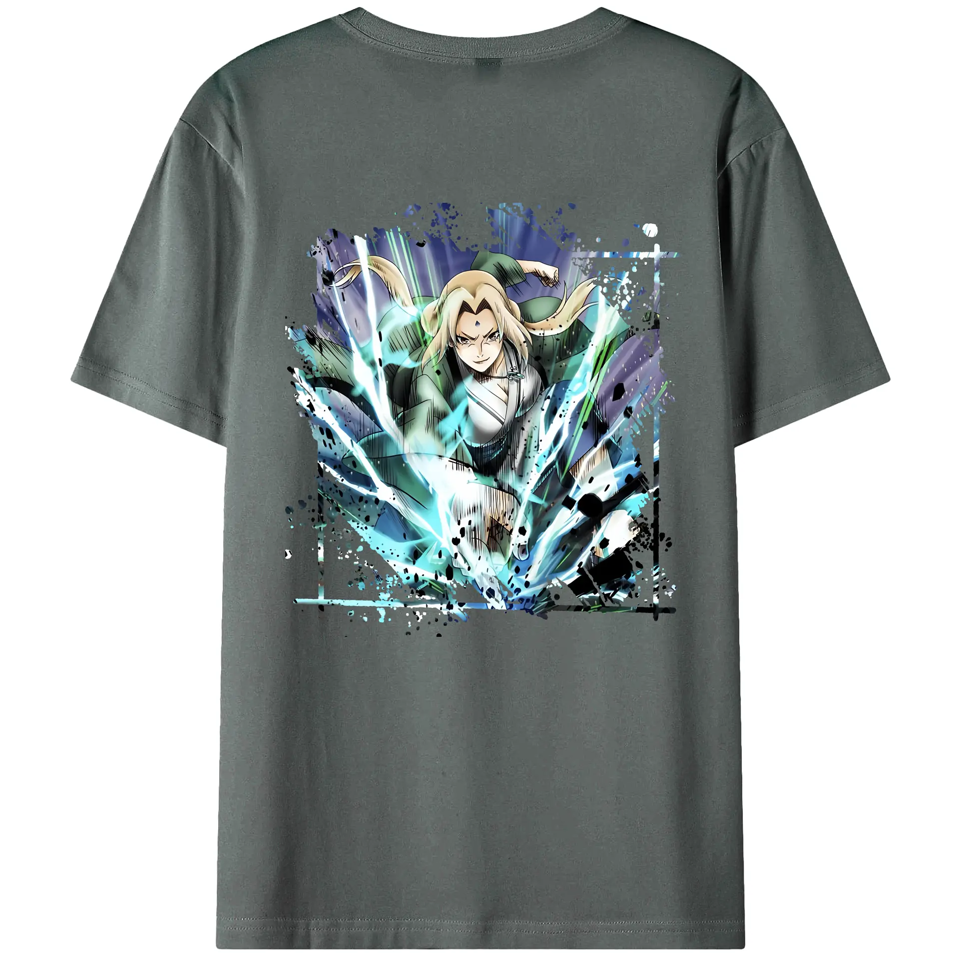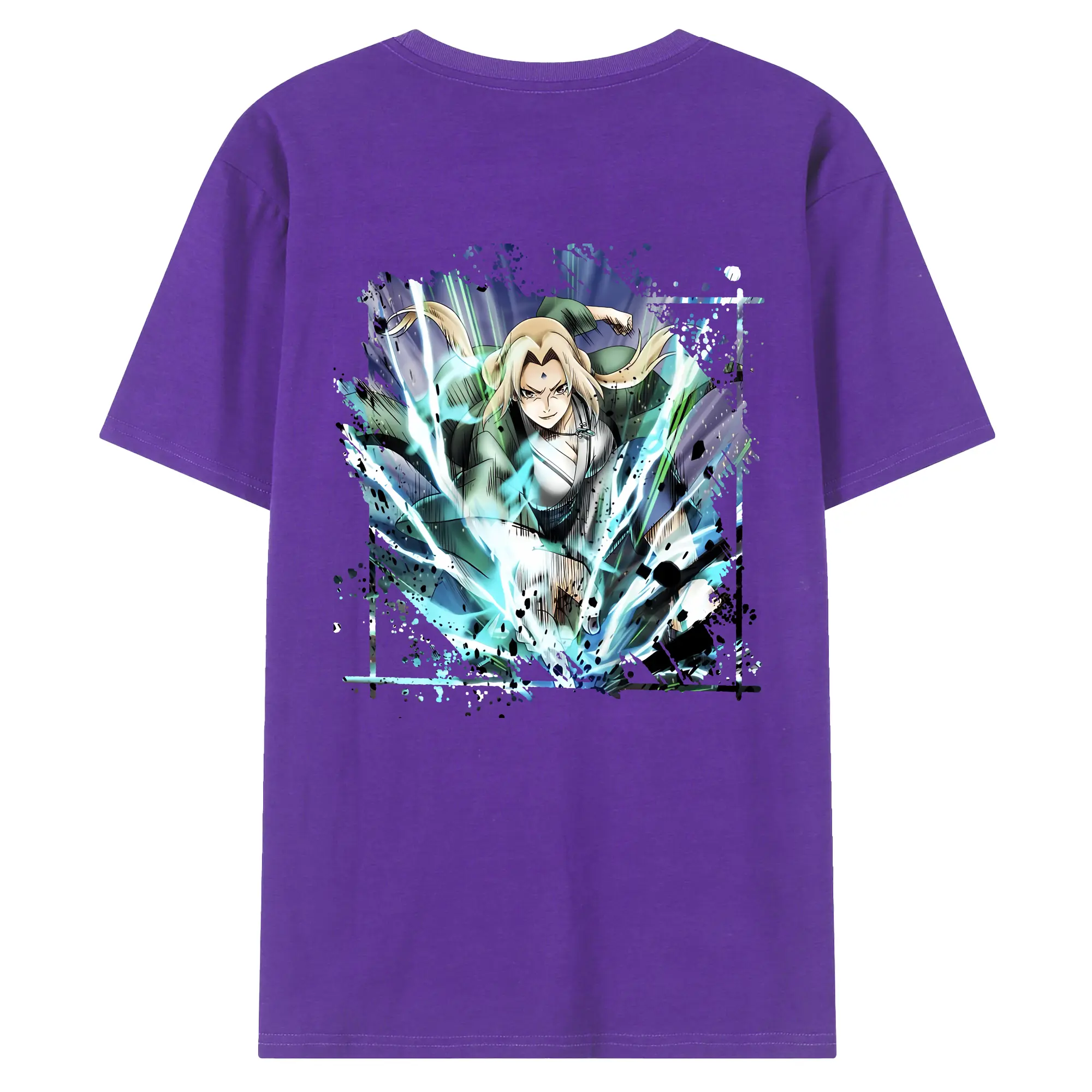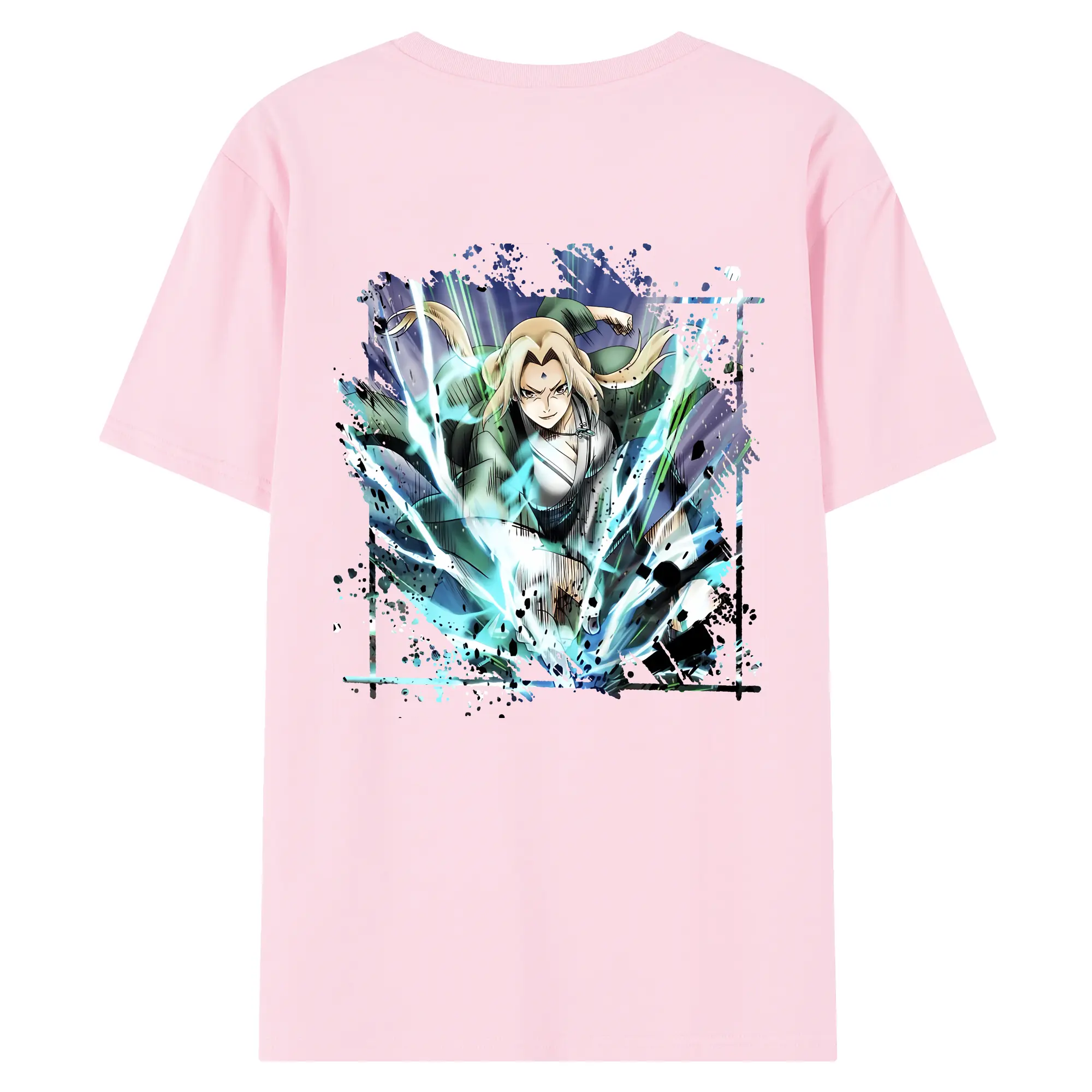 ナルト グッズ 綱手 - 綿100% 半袖Tシャツ ・ フロントプリント ・ 快適 通気性 ・ 日常使い 散歩 スポーツ用