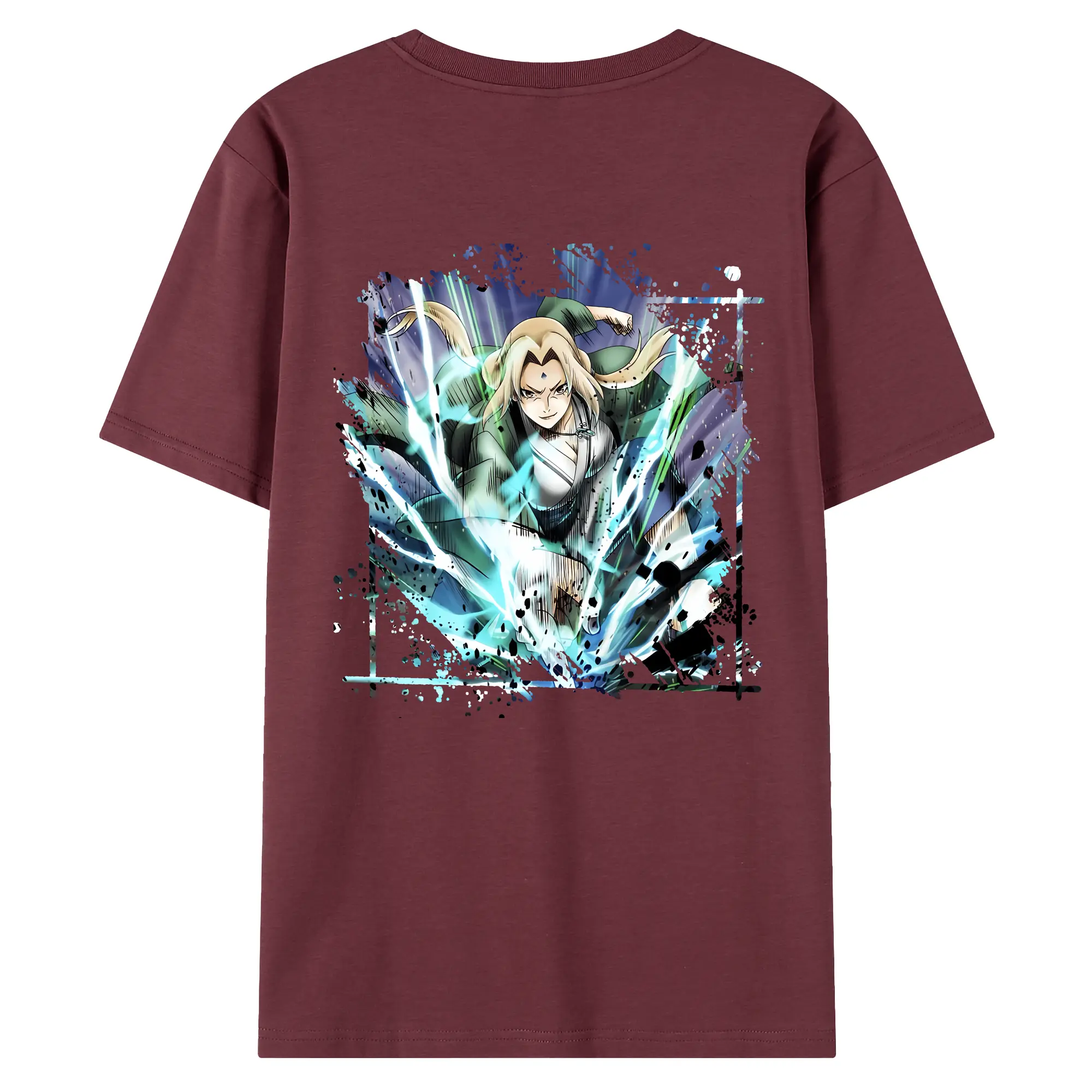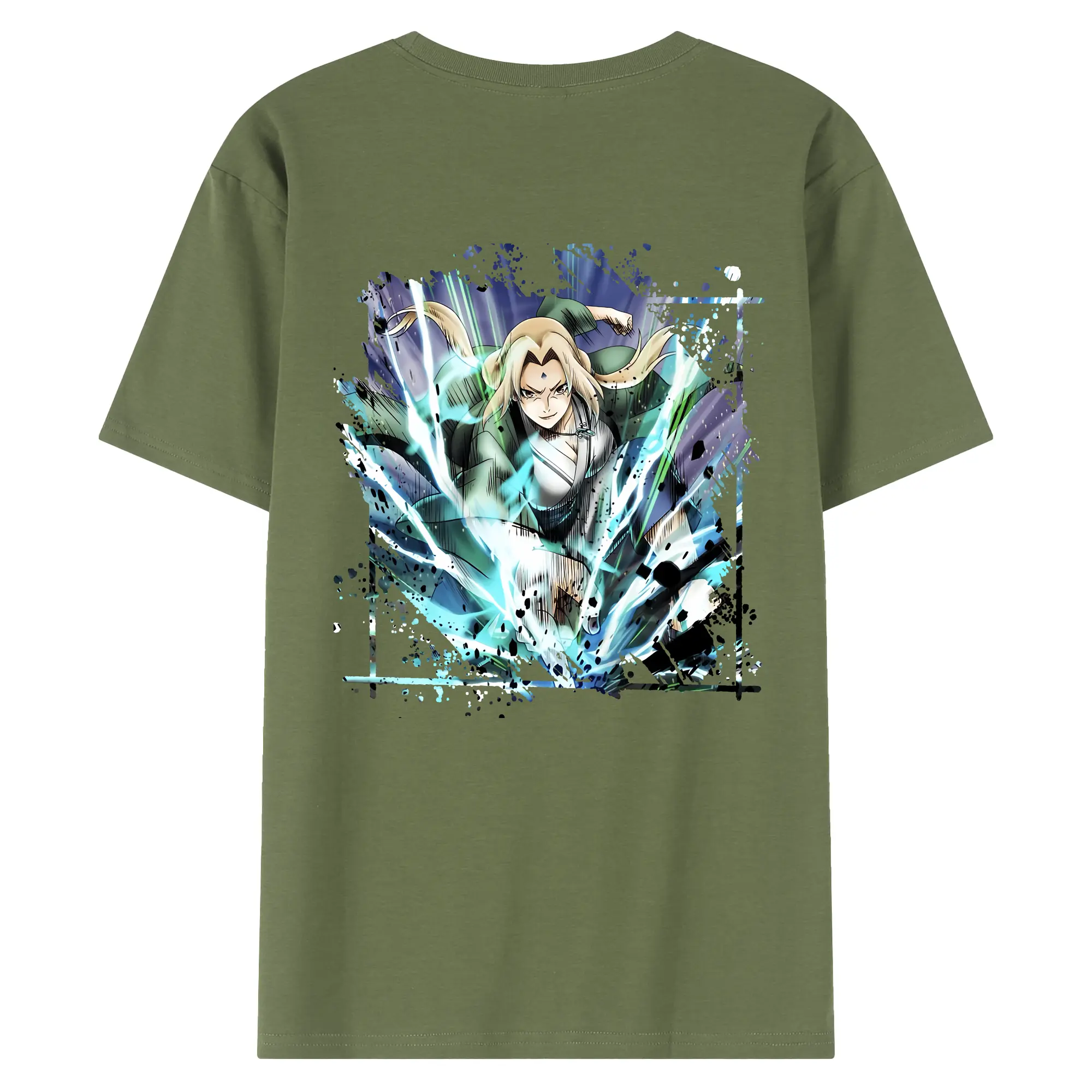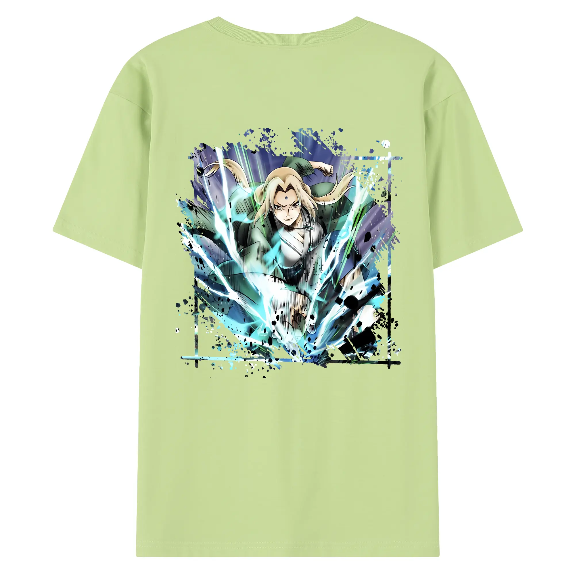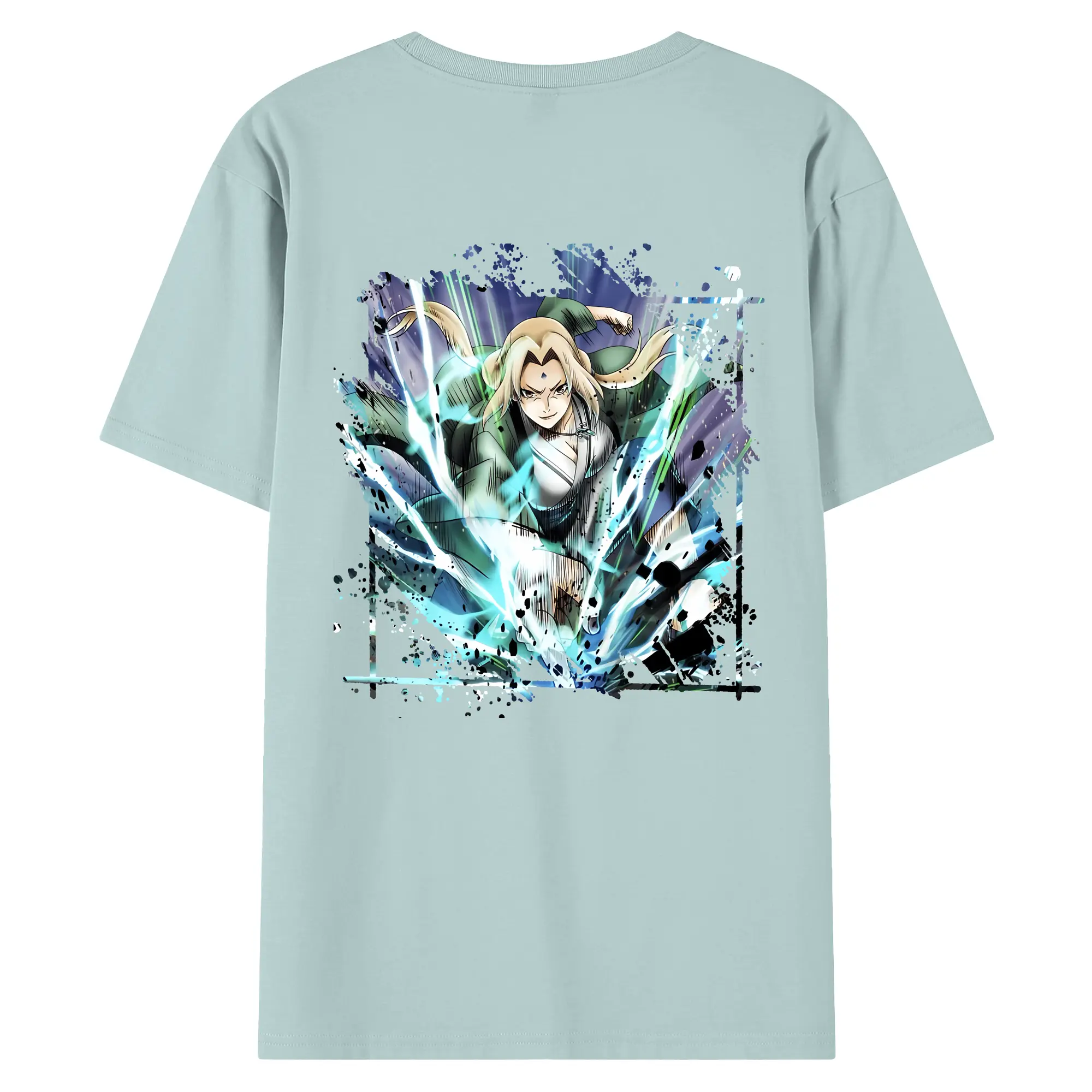 ナルト グッズ 綱手 - 綿100% 半袖Tシャツ ・ フロントプリント ・ 快適 通気性 ・ 日常使い 散歩 スポーツ用