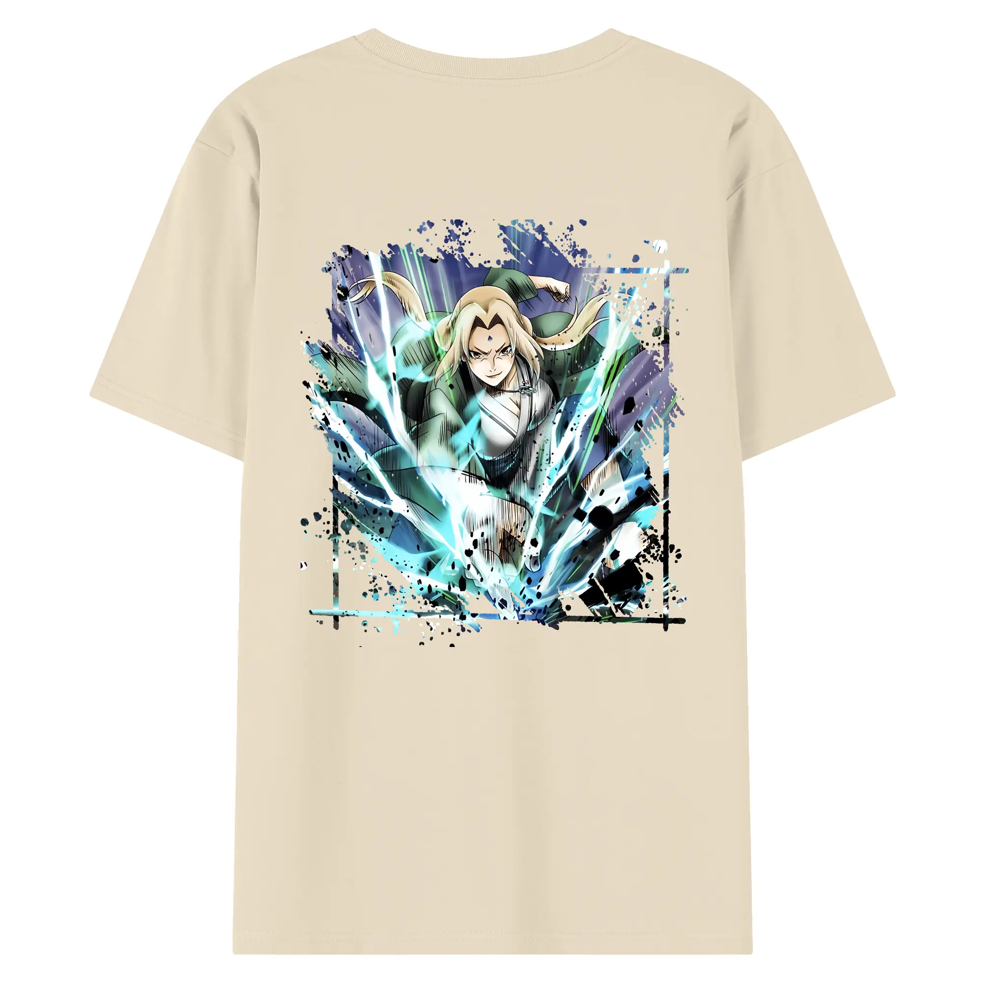 ナルト グッズ 綱手 - 綿100% ヴィンテージ風 半袖Tシャツ ・ フロントプリント ・ 柔らか肌触り ・ 通気性 快適 ・ スポーツ カジュアル 外出用