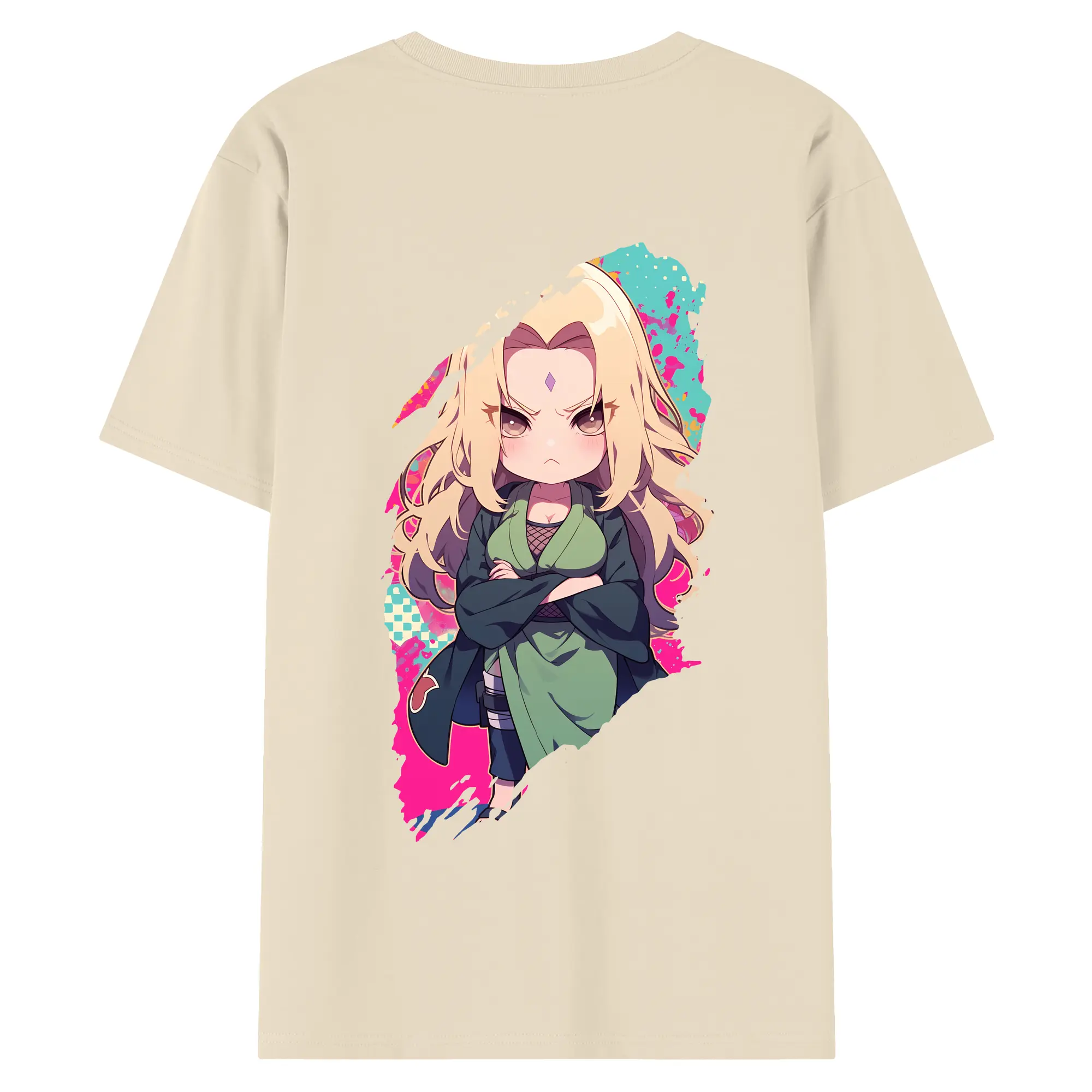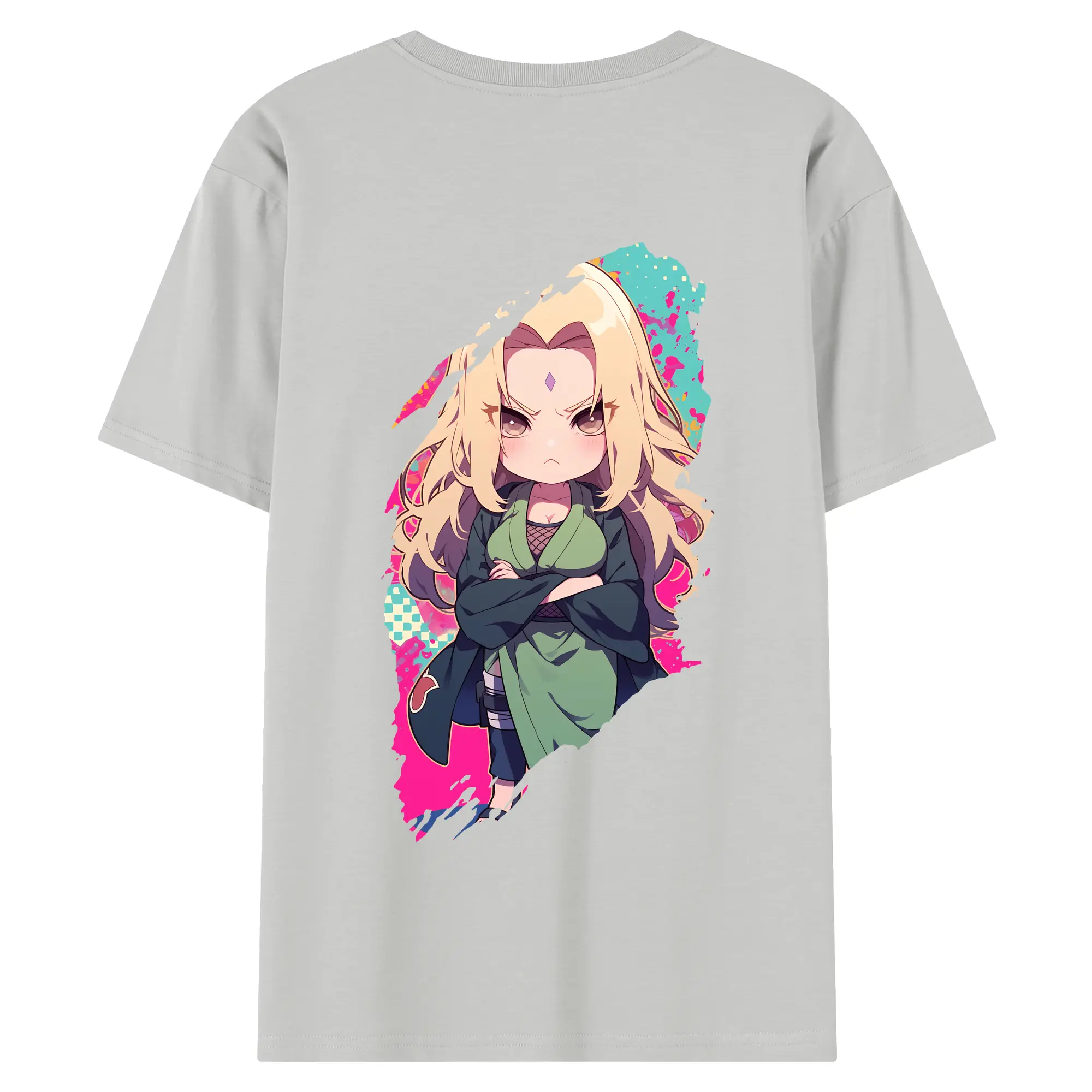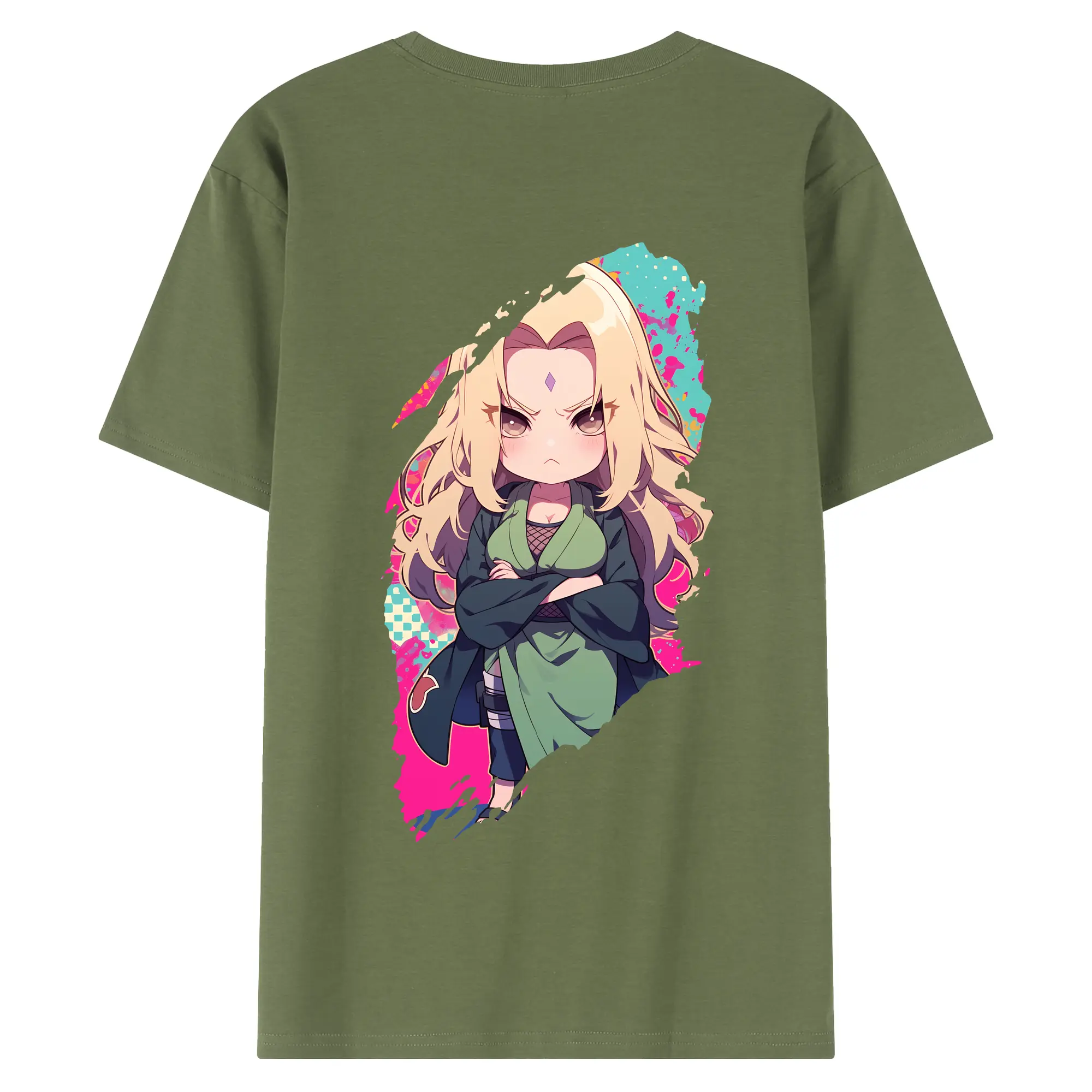 ナルト グッズ 綱手 - 綿100% ヴィンテージ風 半袖Tシャツ ・ 背面プリント ・ 柔らか肌触り ・ 通気性 快適 ・ スポーツ カジュアル 外出用