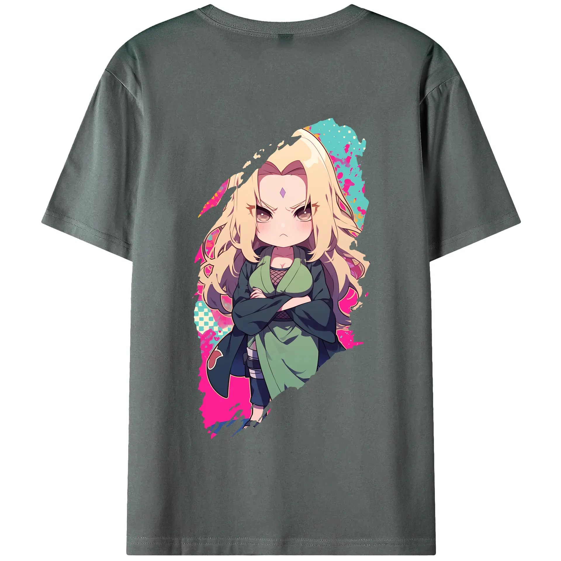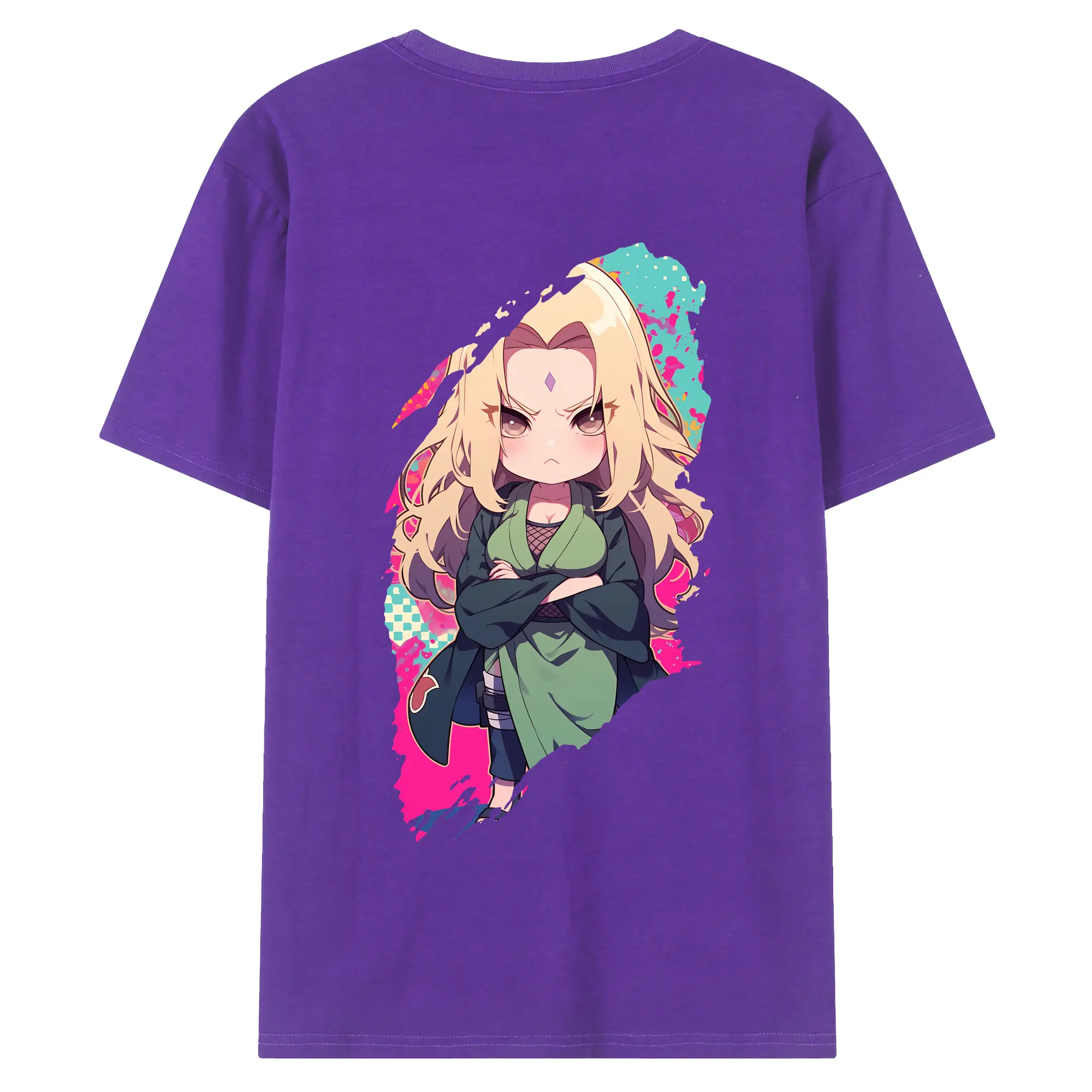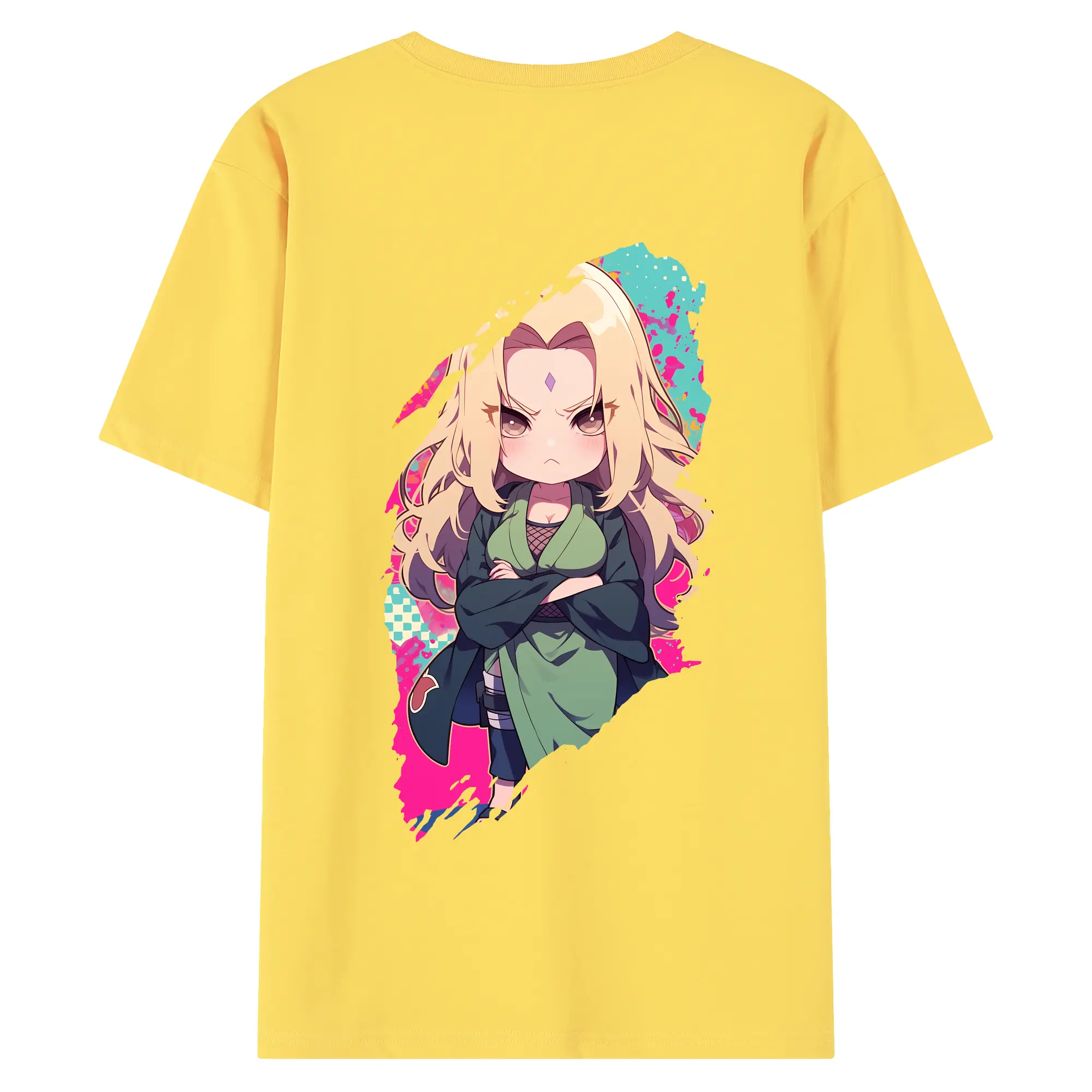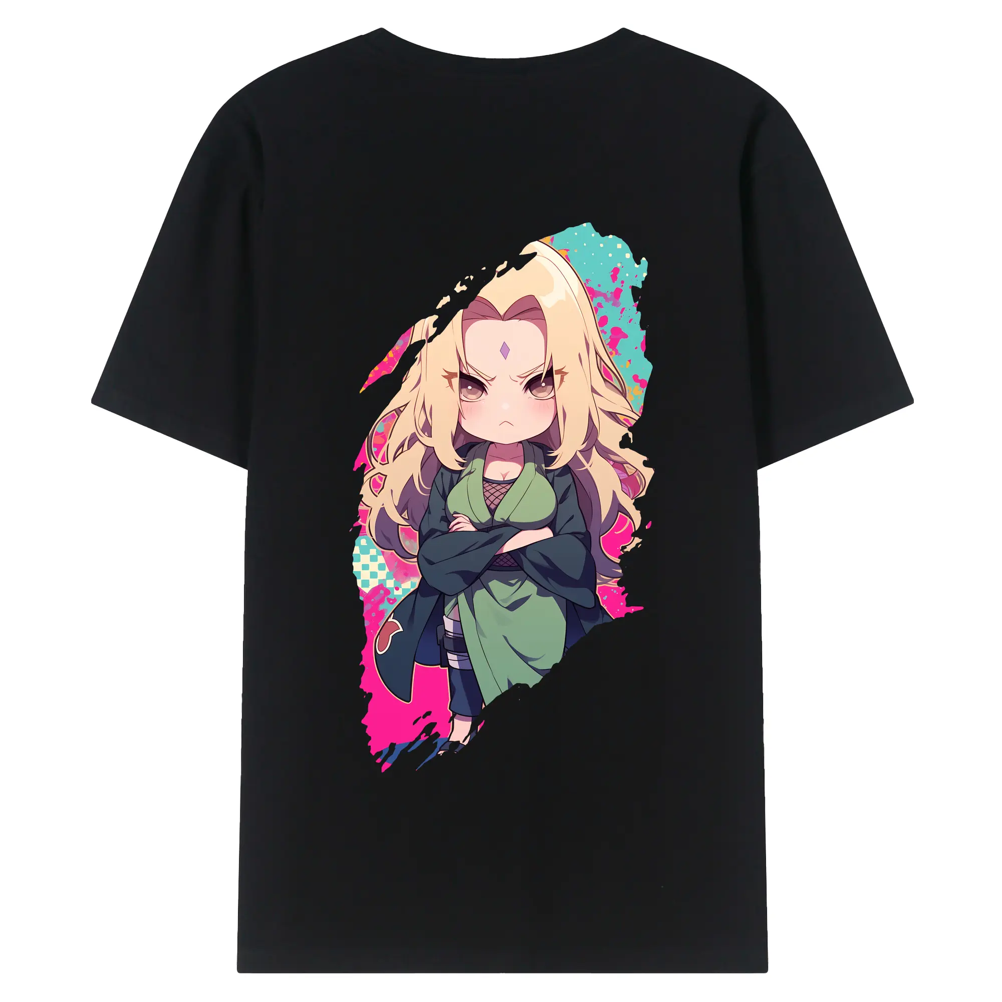 ナルト グッズ 綱手 - 綿100% 半袖Tシャツ ・ フロントプリント ・ 快適 通気性 ・ 日常使い 散歩 スポーツ用
