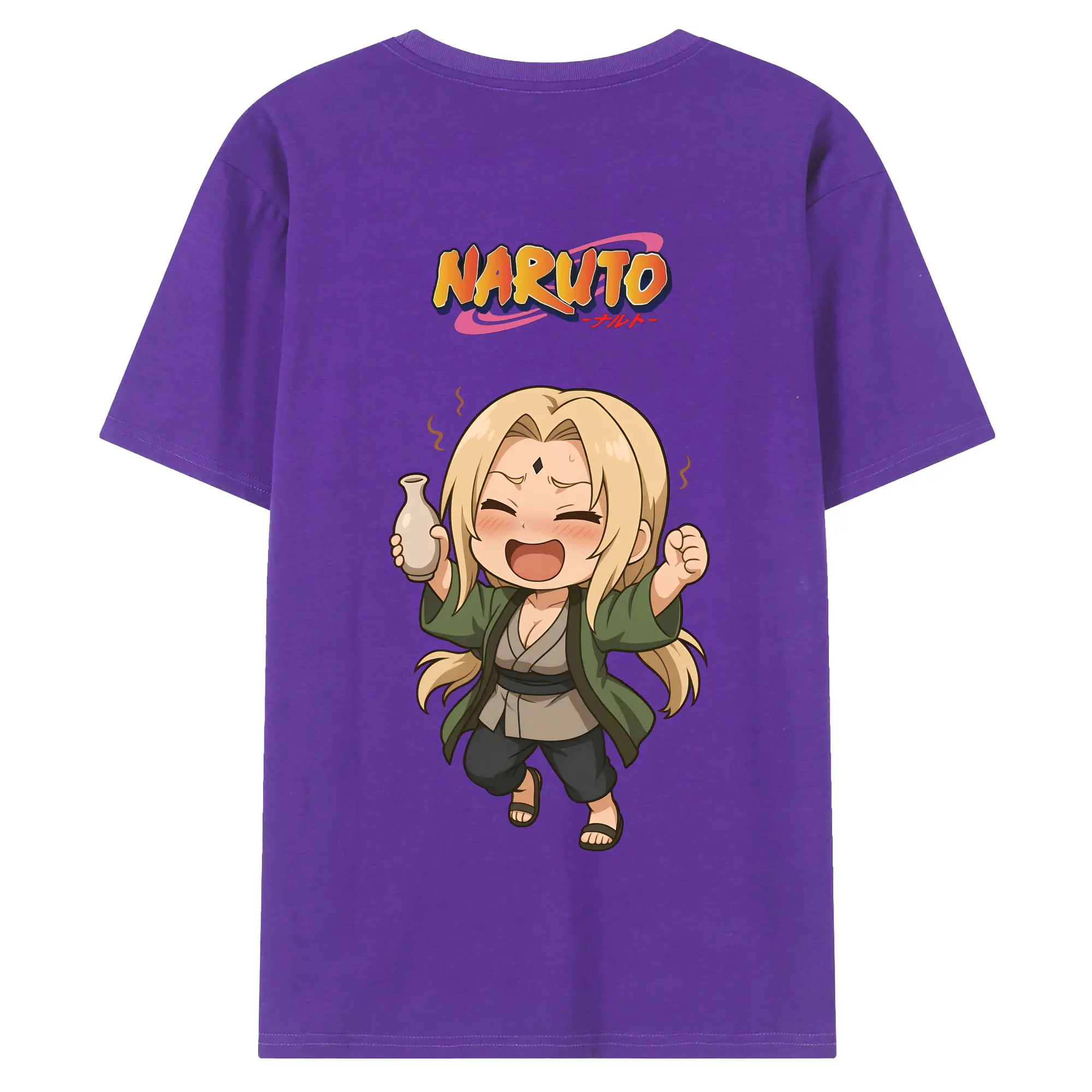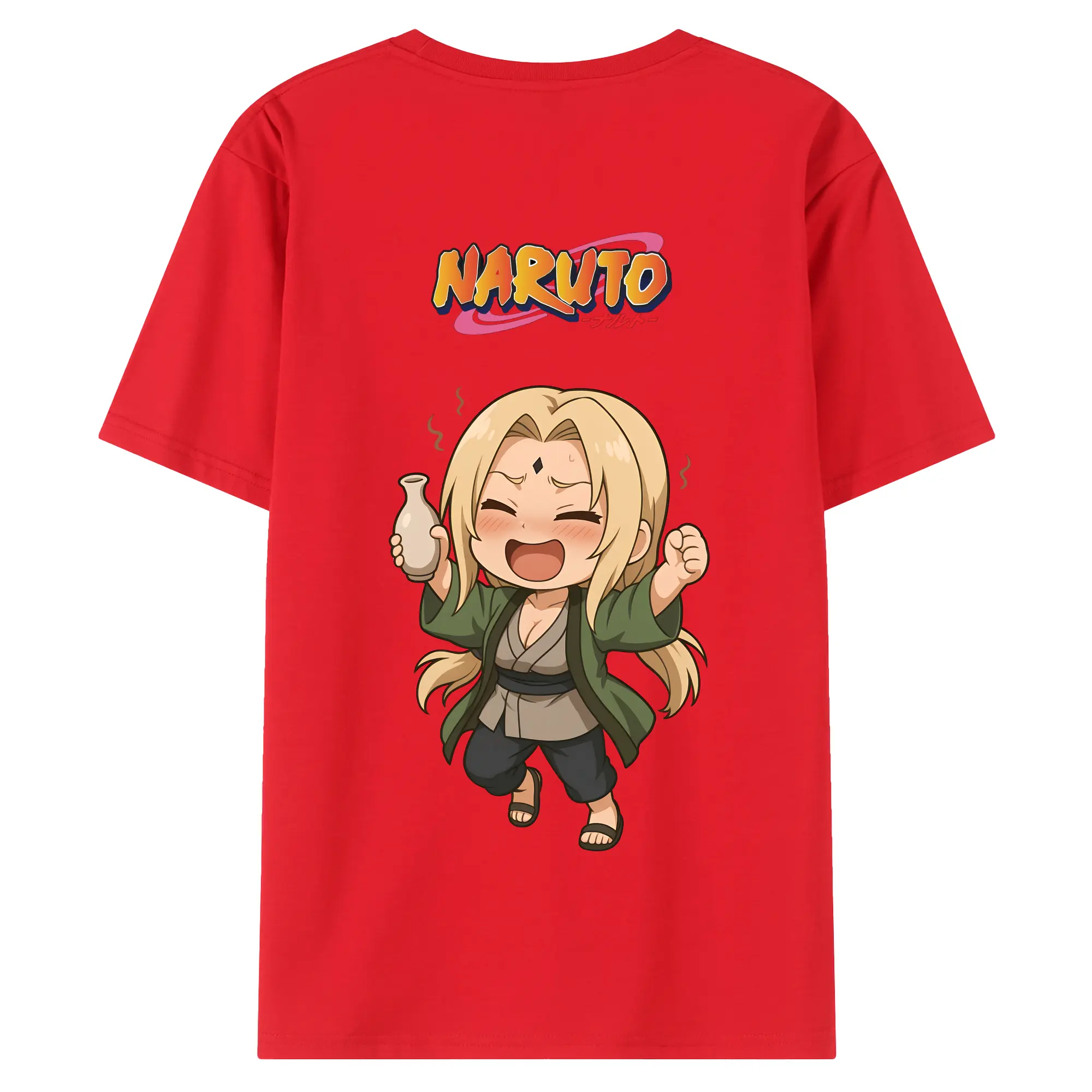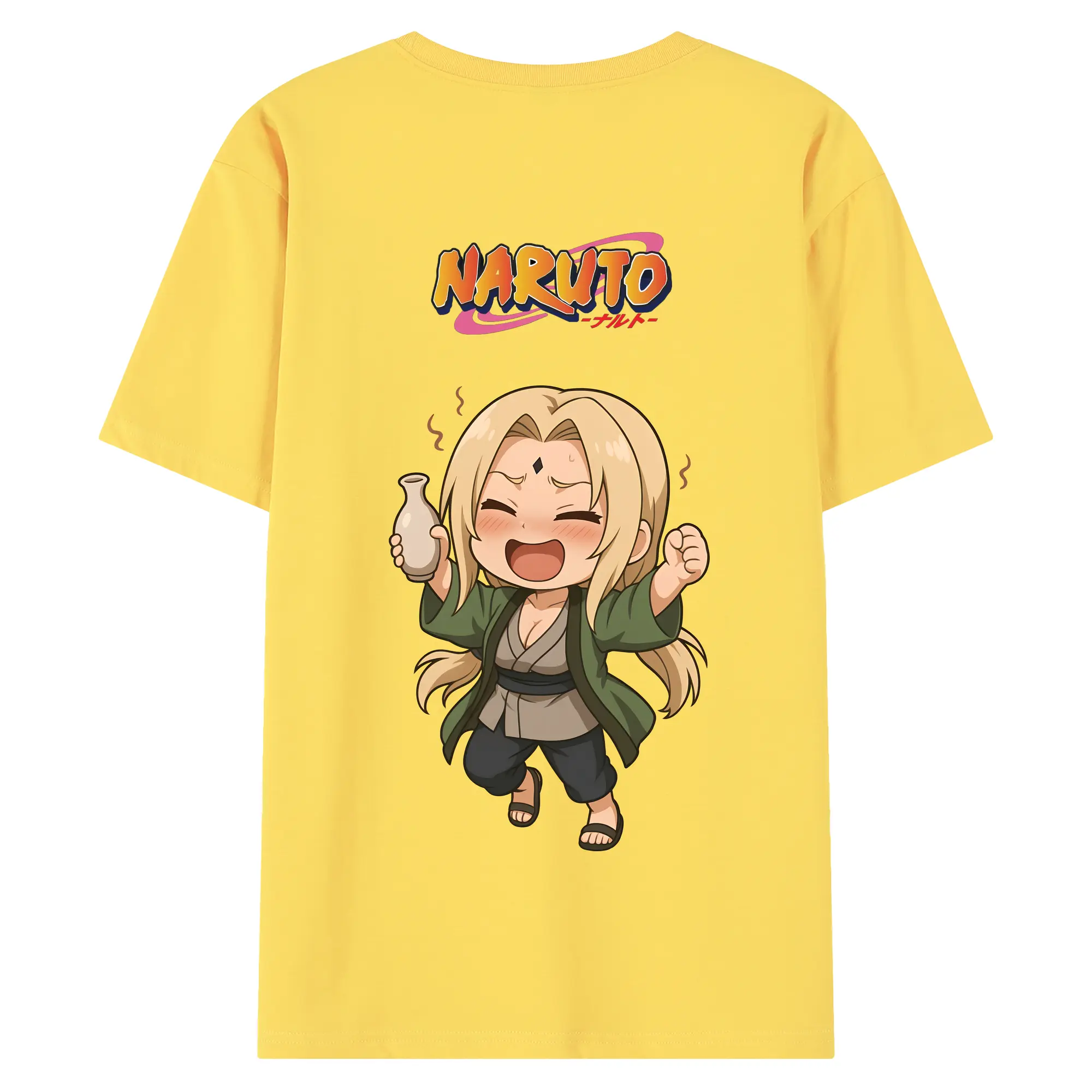 ナルト グッズ 綱手 - 綿100% 半袖Tシャツ ・ フロントプリント ・ 快適 通気性 ・ 日常使い 散歩 スポーツ用