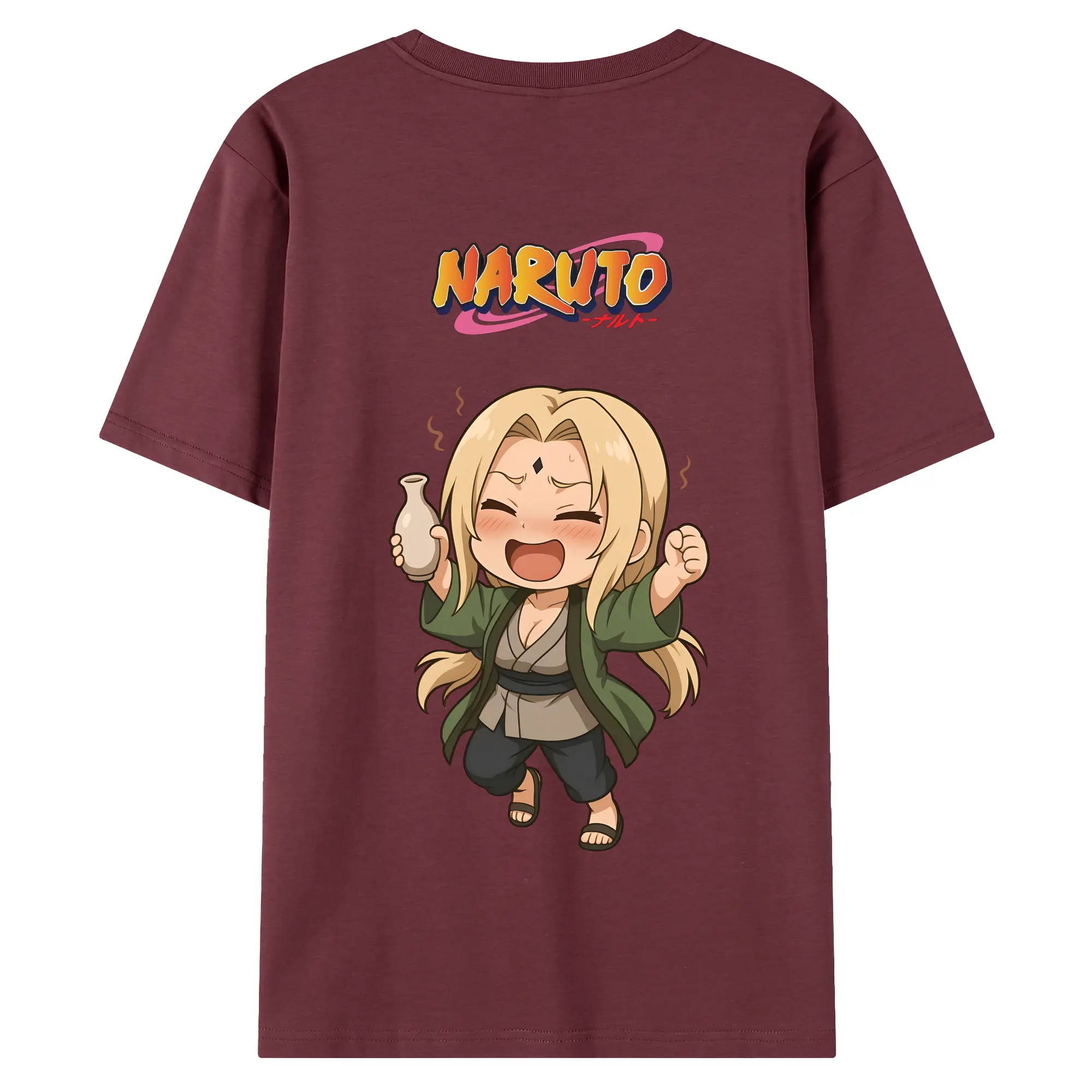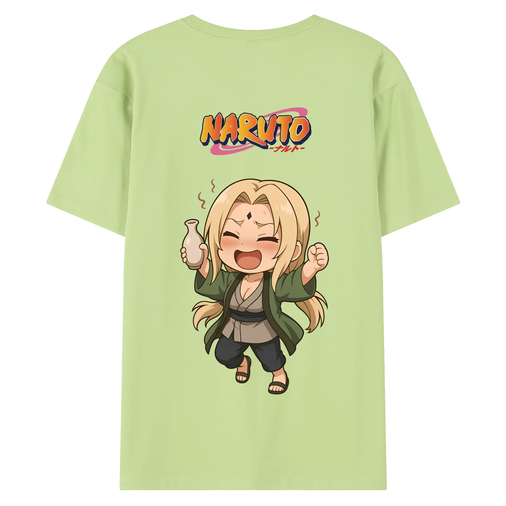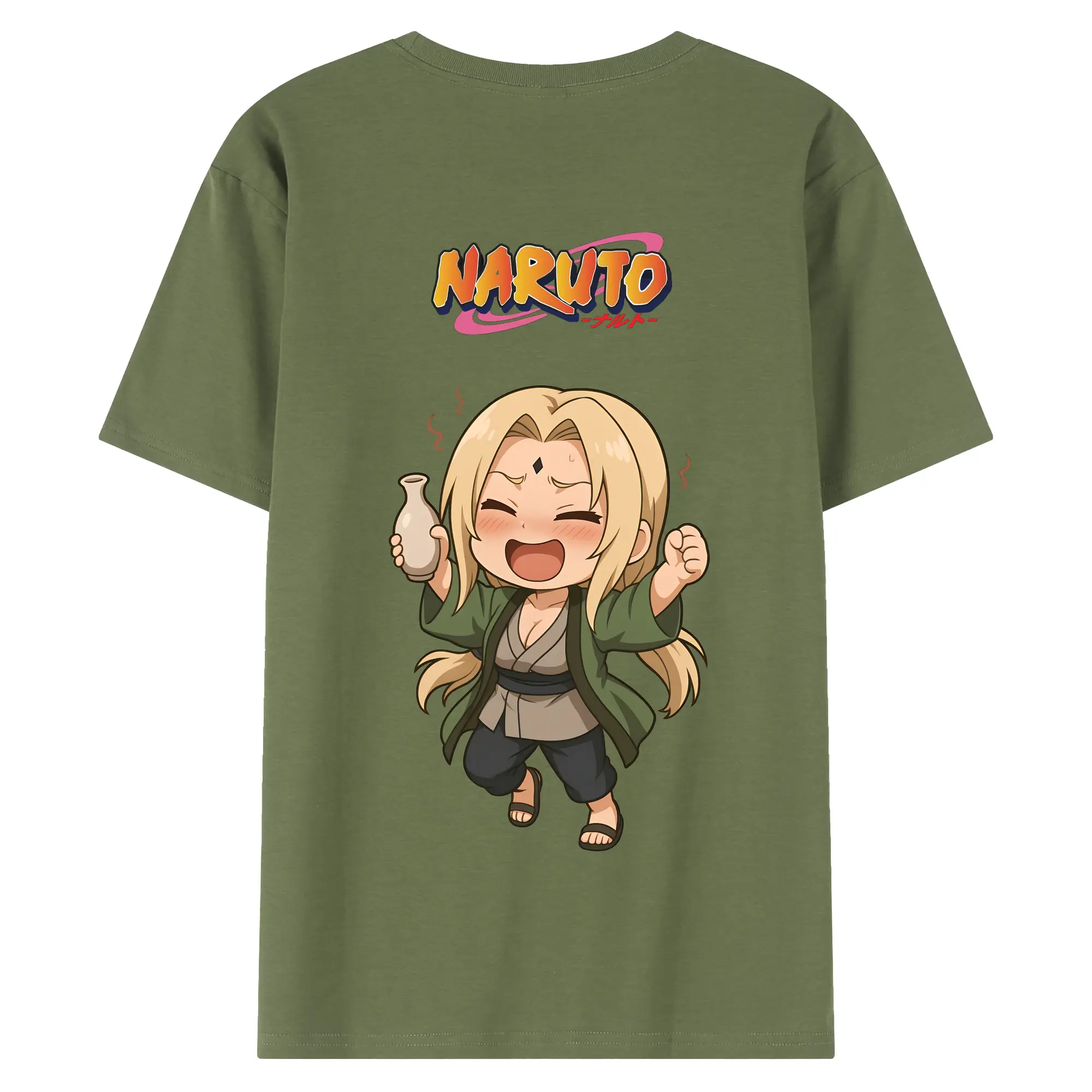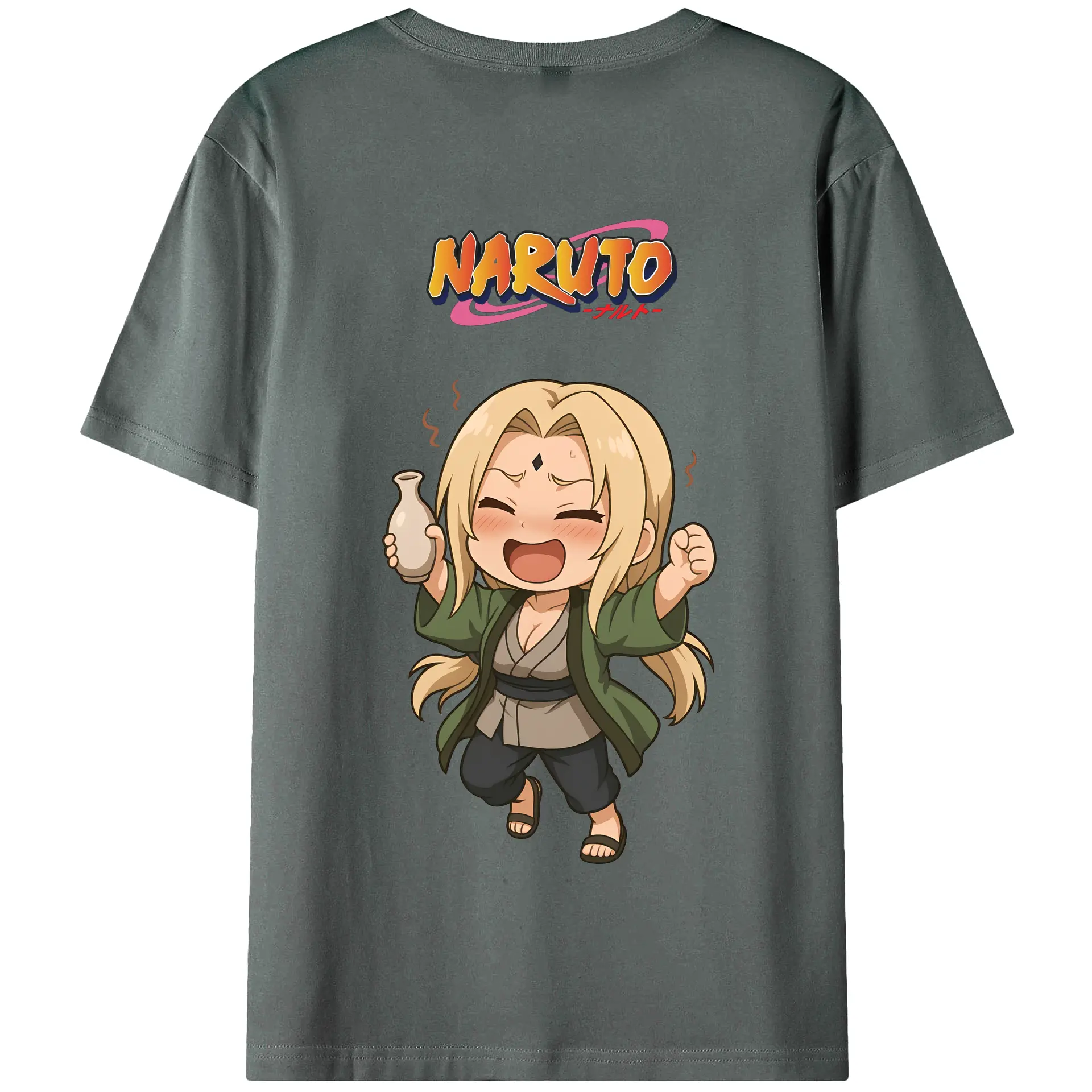 ナルト グッズ 綱手 - 綿100% 半袖Tシャツ ・ フロントプリント ・ 快適 通気性 ・ 日常使い 散歩 スポーツ用