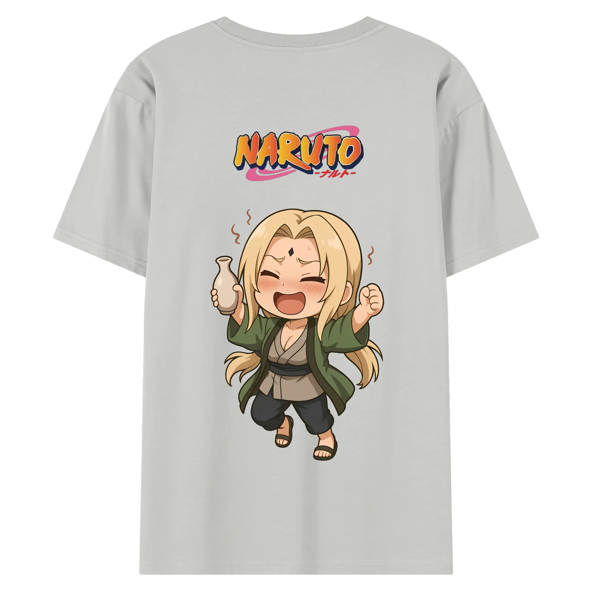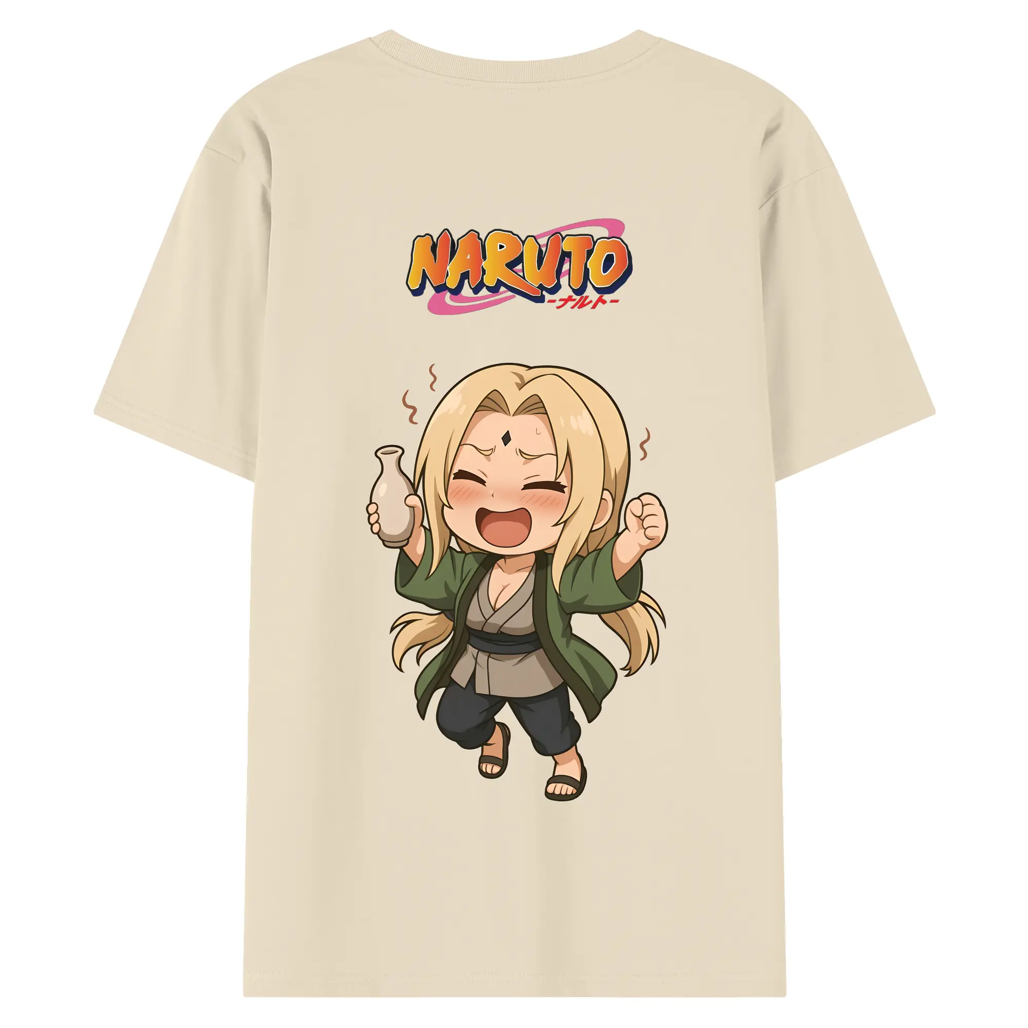 ナルト グッズ 綱手 - 綿100% ヴィンテージ風 半袖Tシャツ ・ 背面プリント ・ 柔らか肌触り ・ 通気性 快適 ・ スポーツ カジュアル 外出用