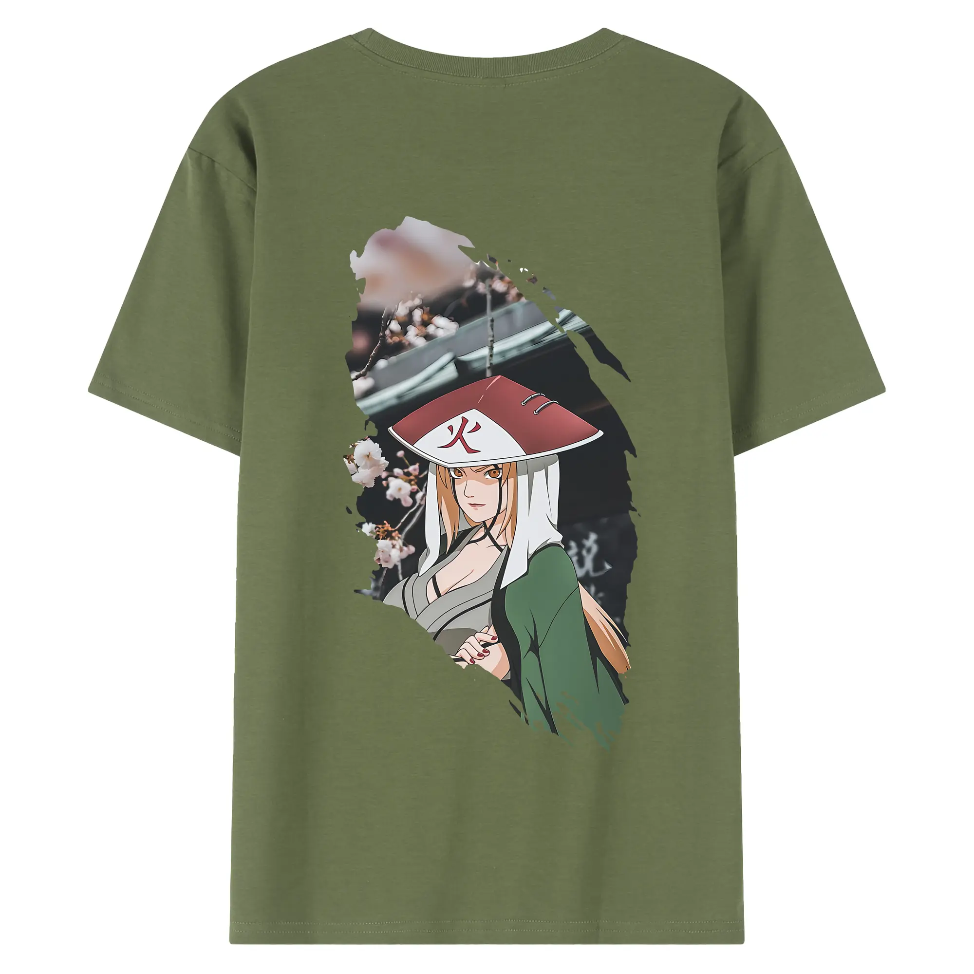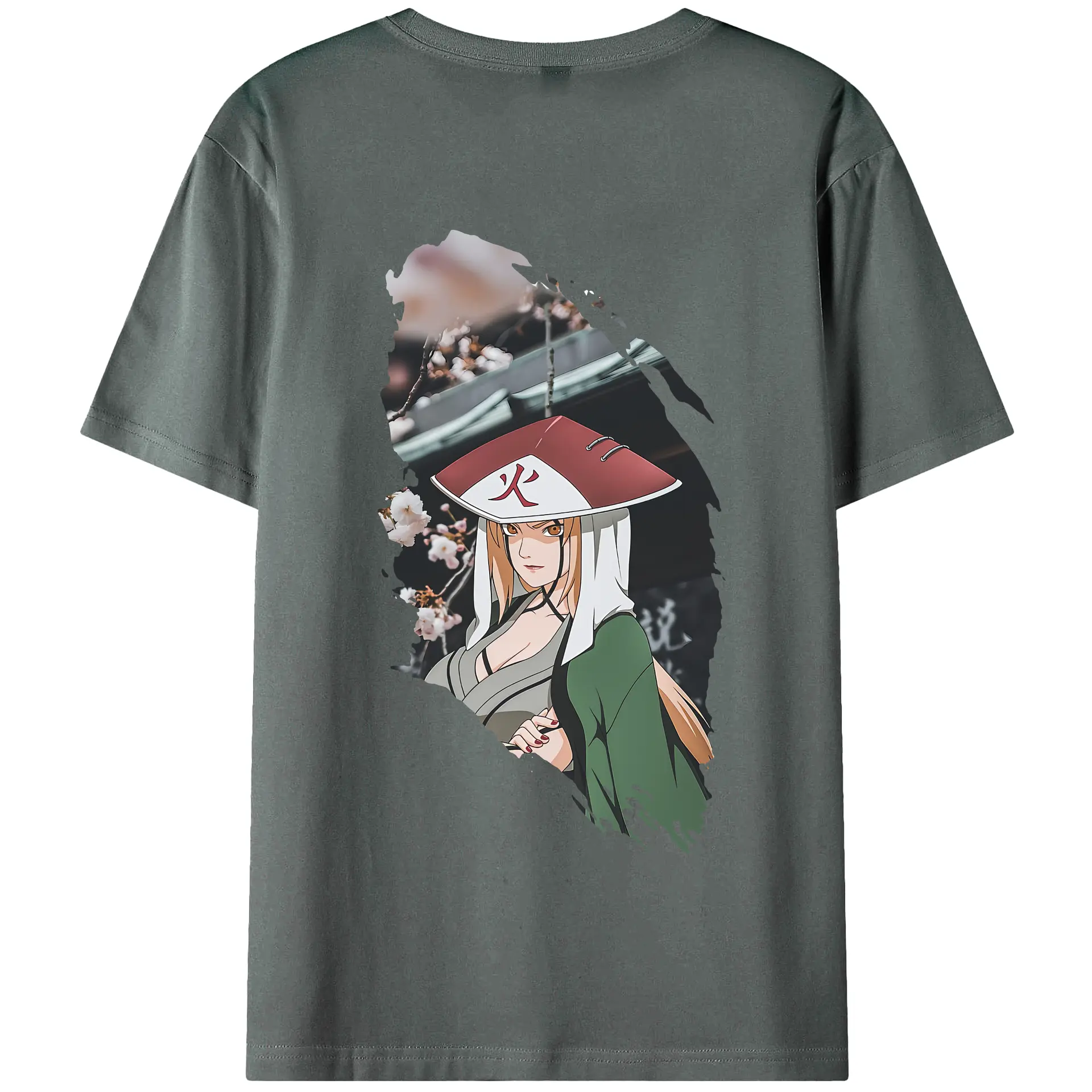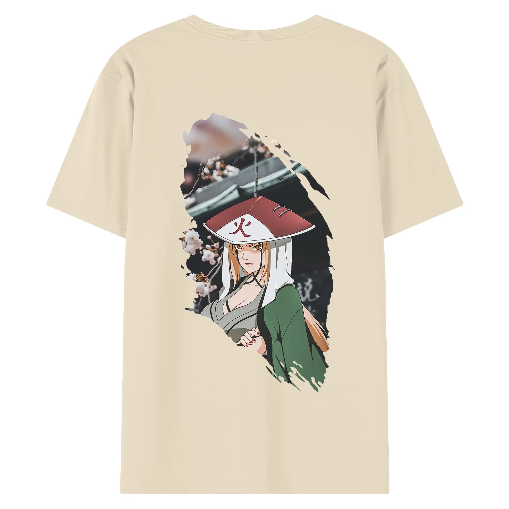 ナルト グッズ 綱手 - 綿100% ヴィンテージ風 半袖Tシャツ ・ 背面プリント ・ 柔らか肌触り ・ 通気性 快適 ・ スポーツ カジュアル 外出用