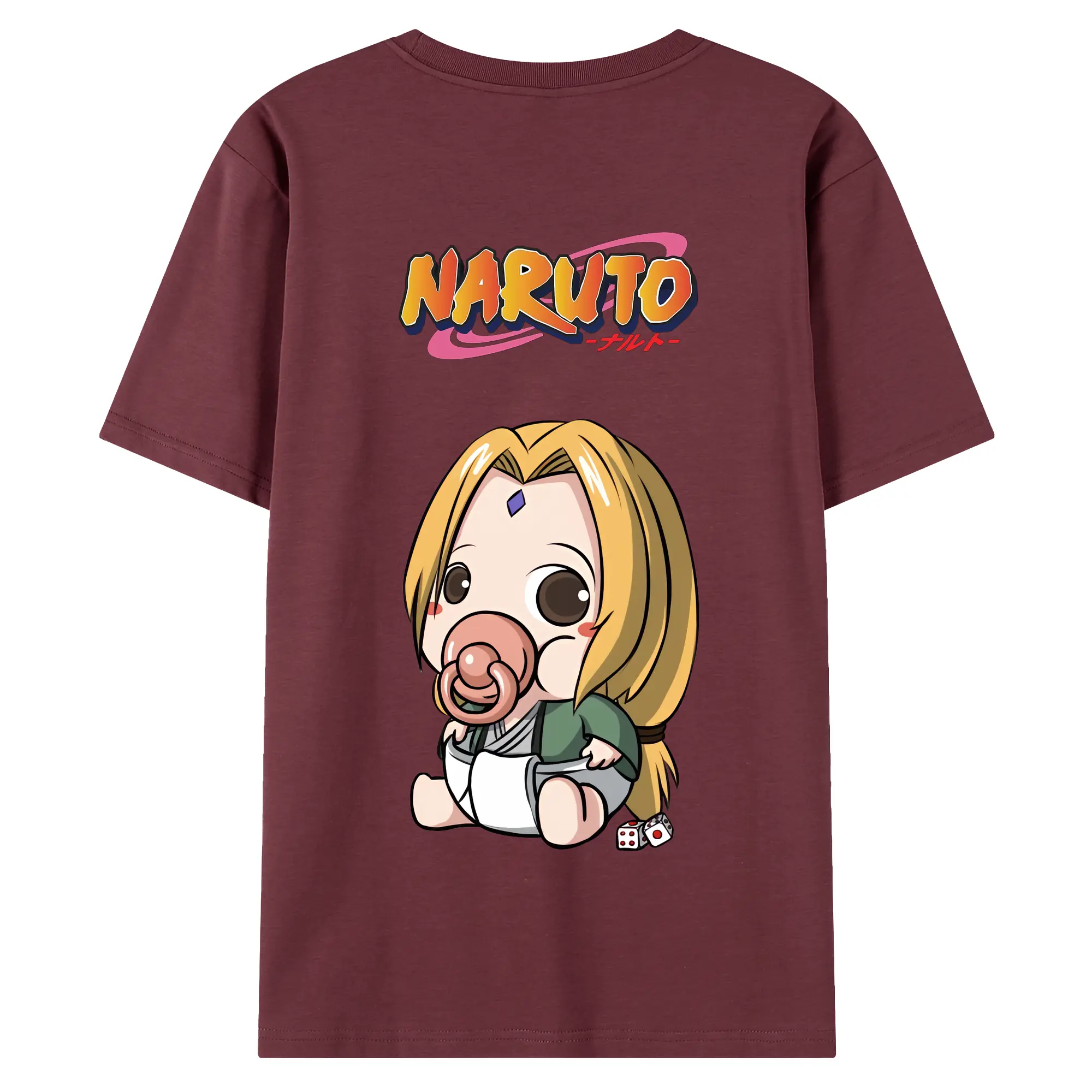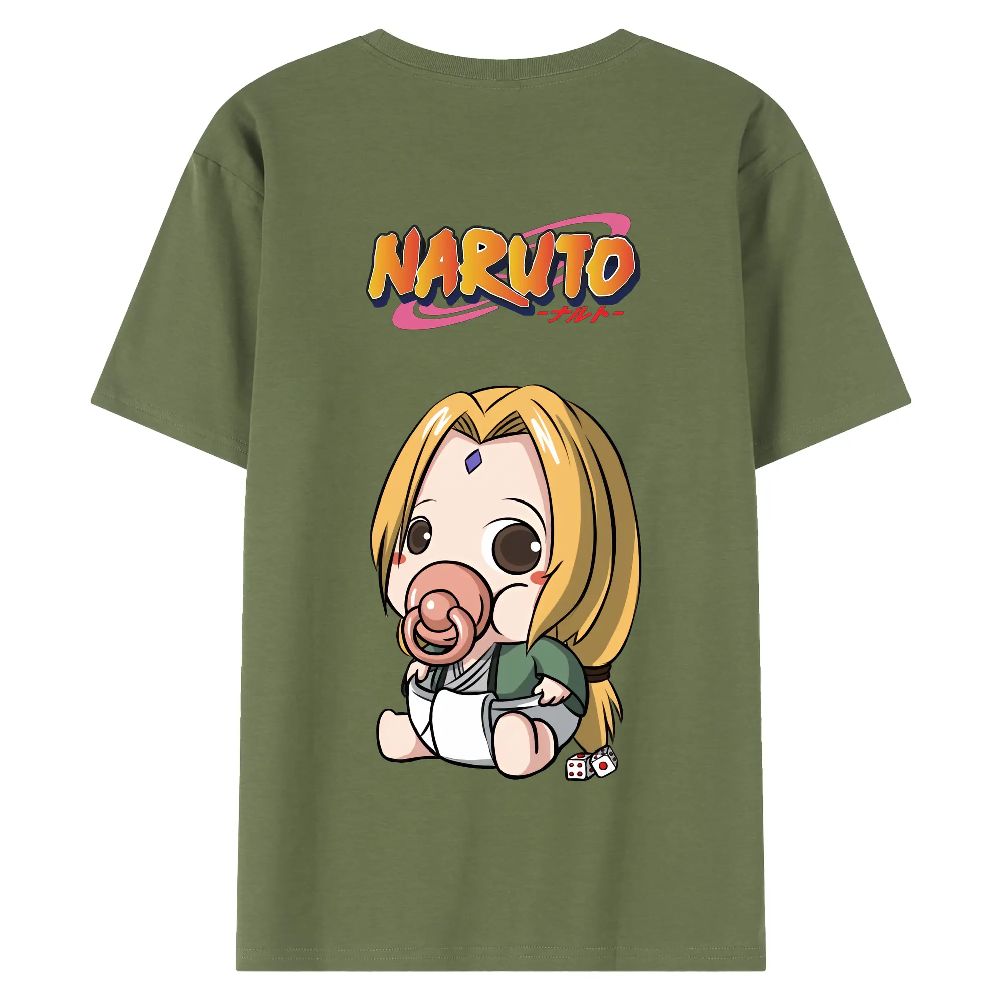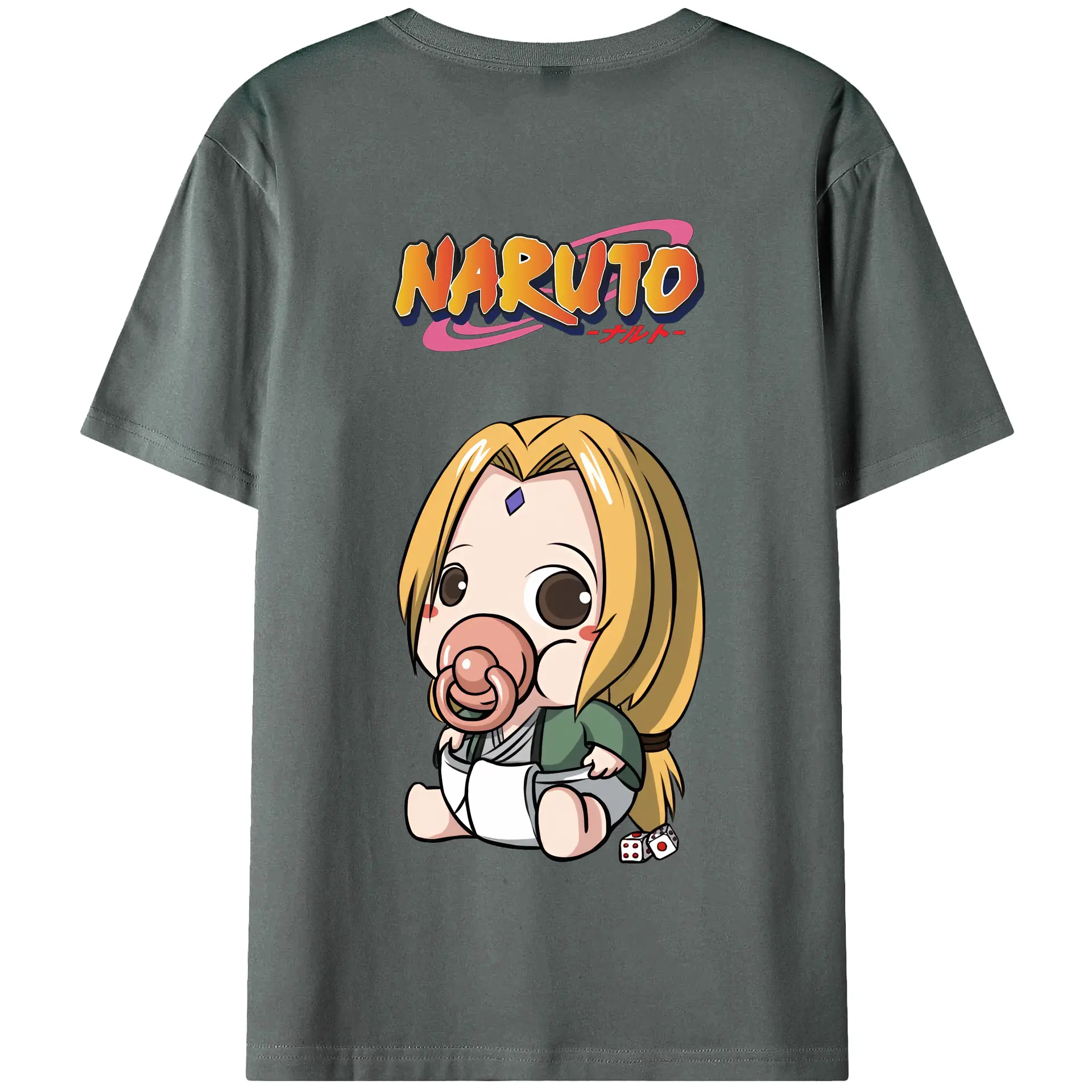 ナルト グッズ 綱手 - 綿100% 半袖Tシャツ ・ フロントプリント ・ 快適 通気性 ・ 日常使い 散歩 スポーツ用