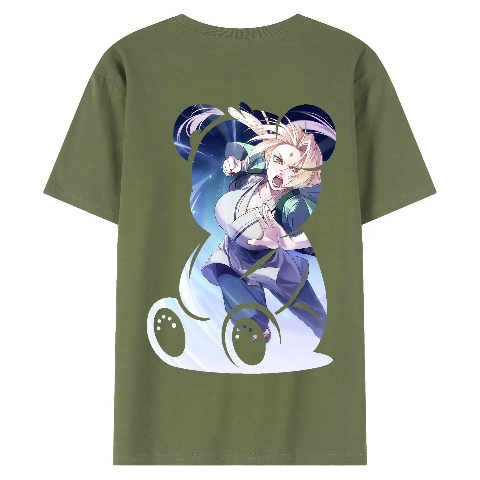 ナルト グッズ 綱手 - 綿100% 半袖Tシャツ ・ フロントプリント ・ 快適 通気性 ・ 日常使い 散歩 スポーツ用