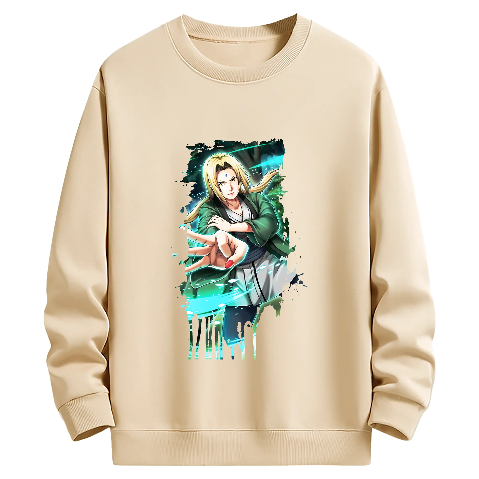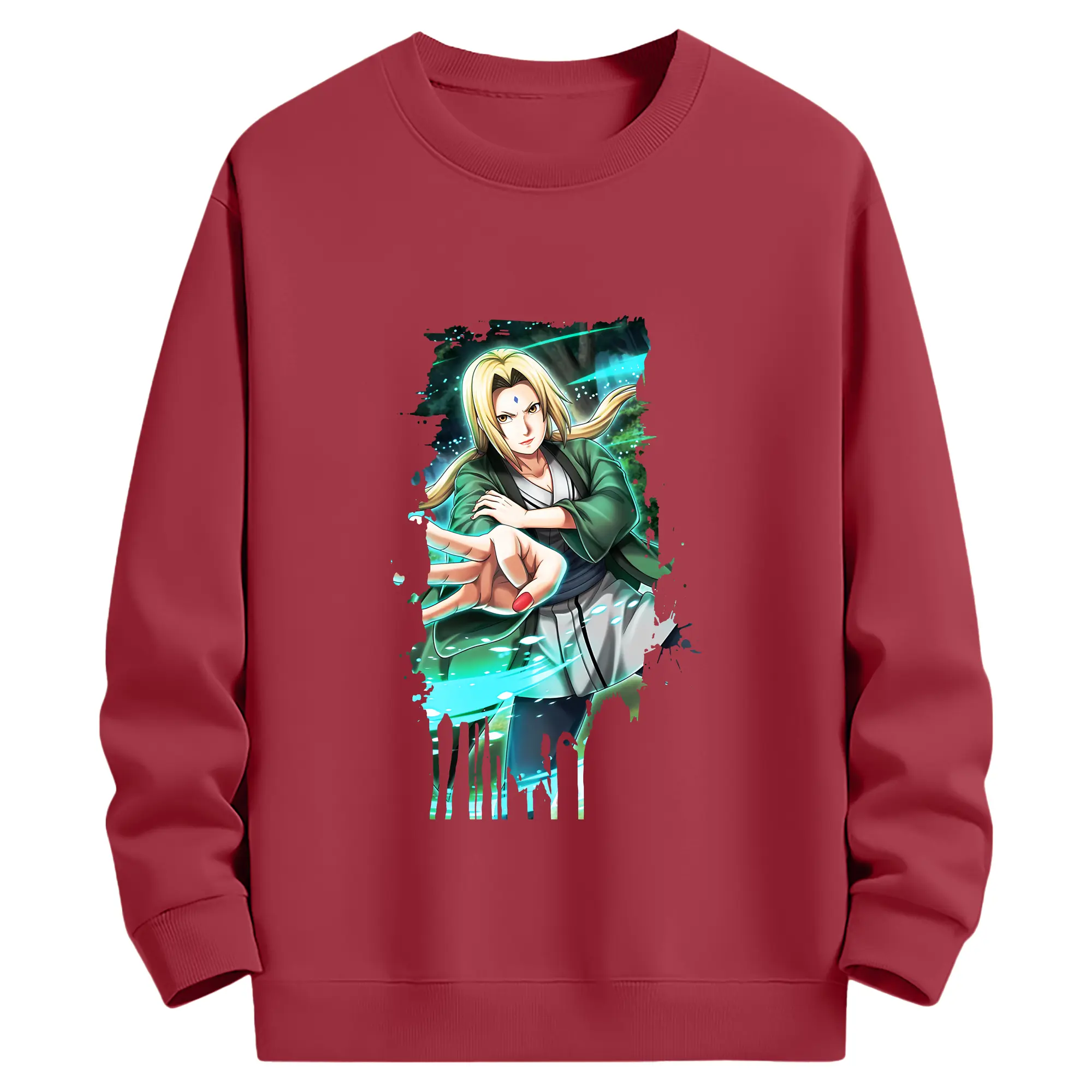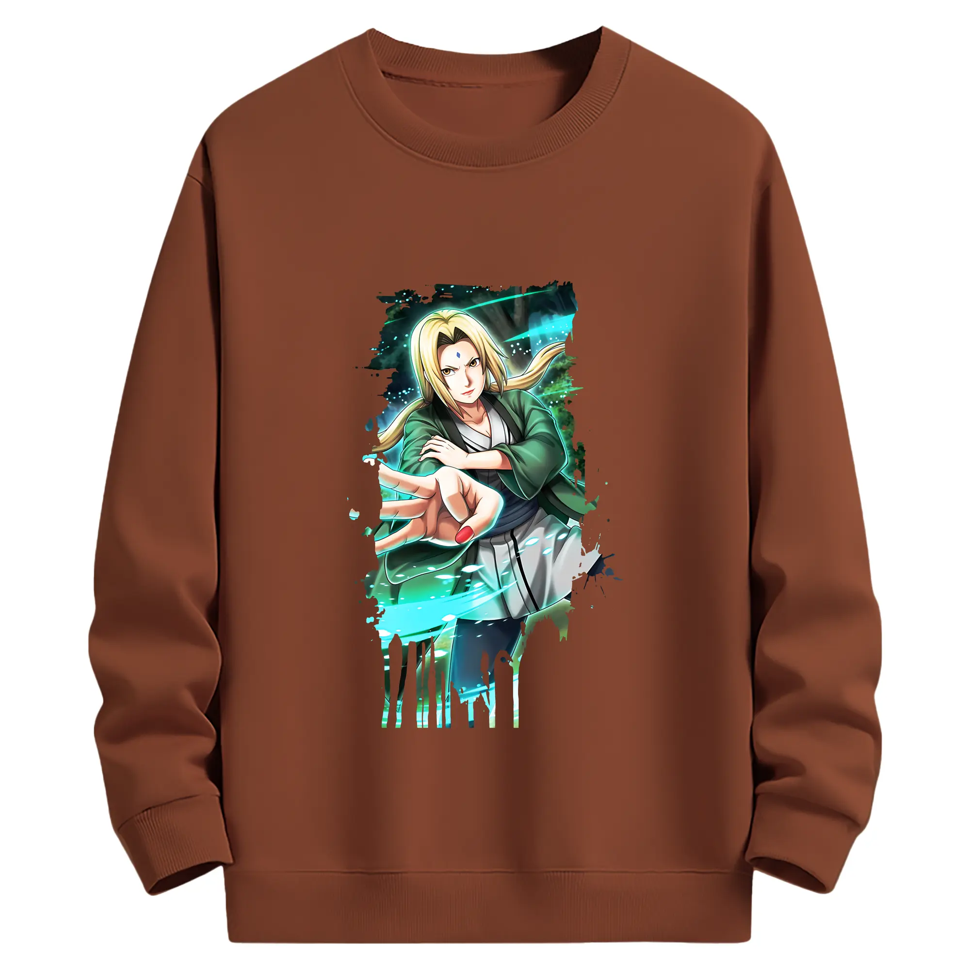 ナルト グッズ 綱手 - 薄手 クルーネック スウェット 裏毛260g · ポリエステル 春秋向け カジュアル 男女兼用 · トレーナー デイリー スポーツ 散歩に最適